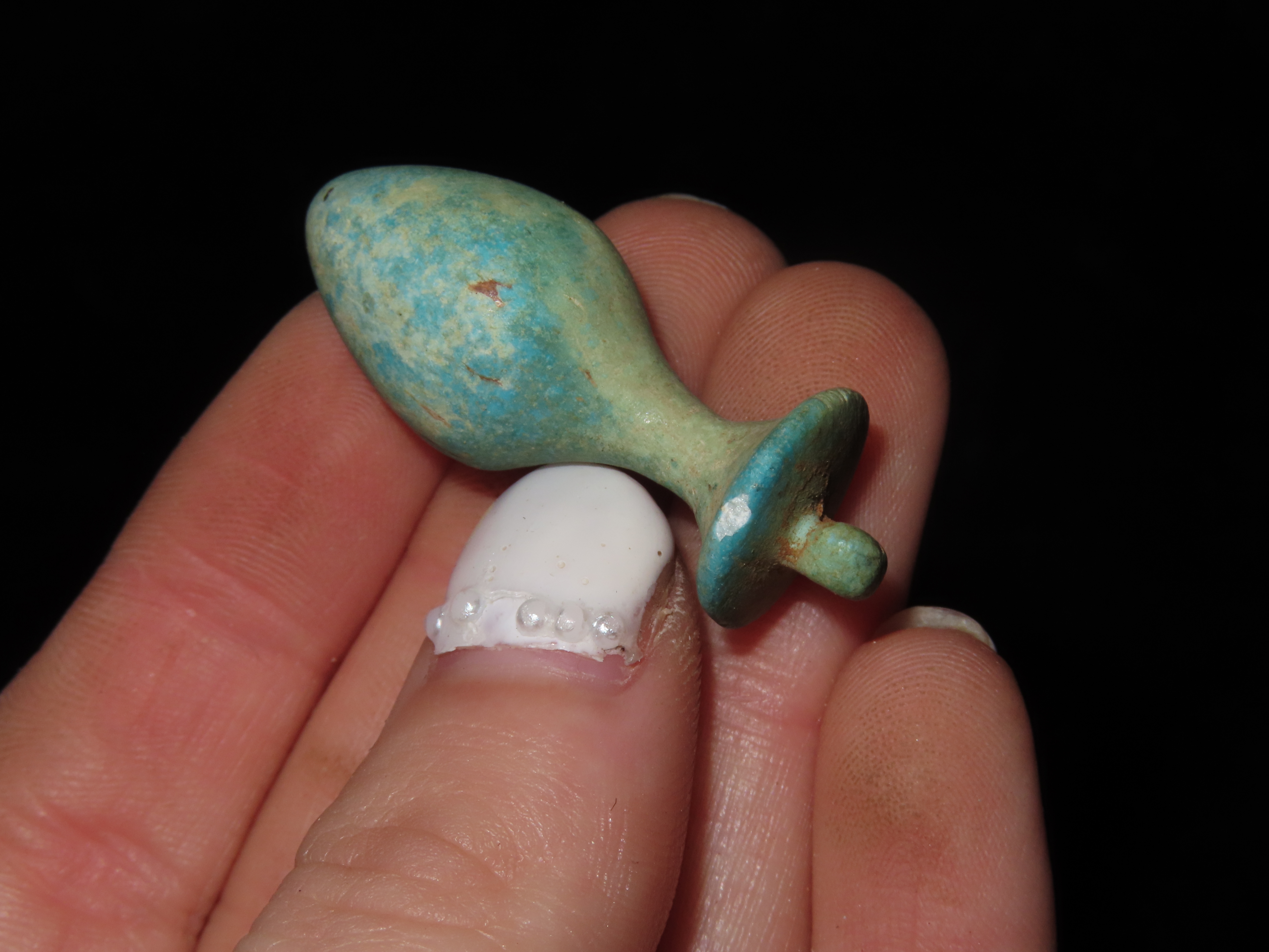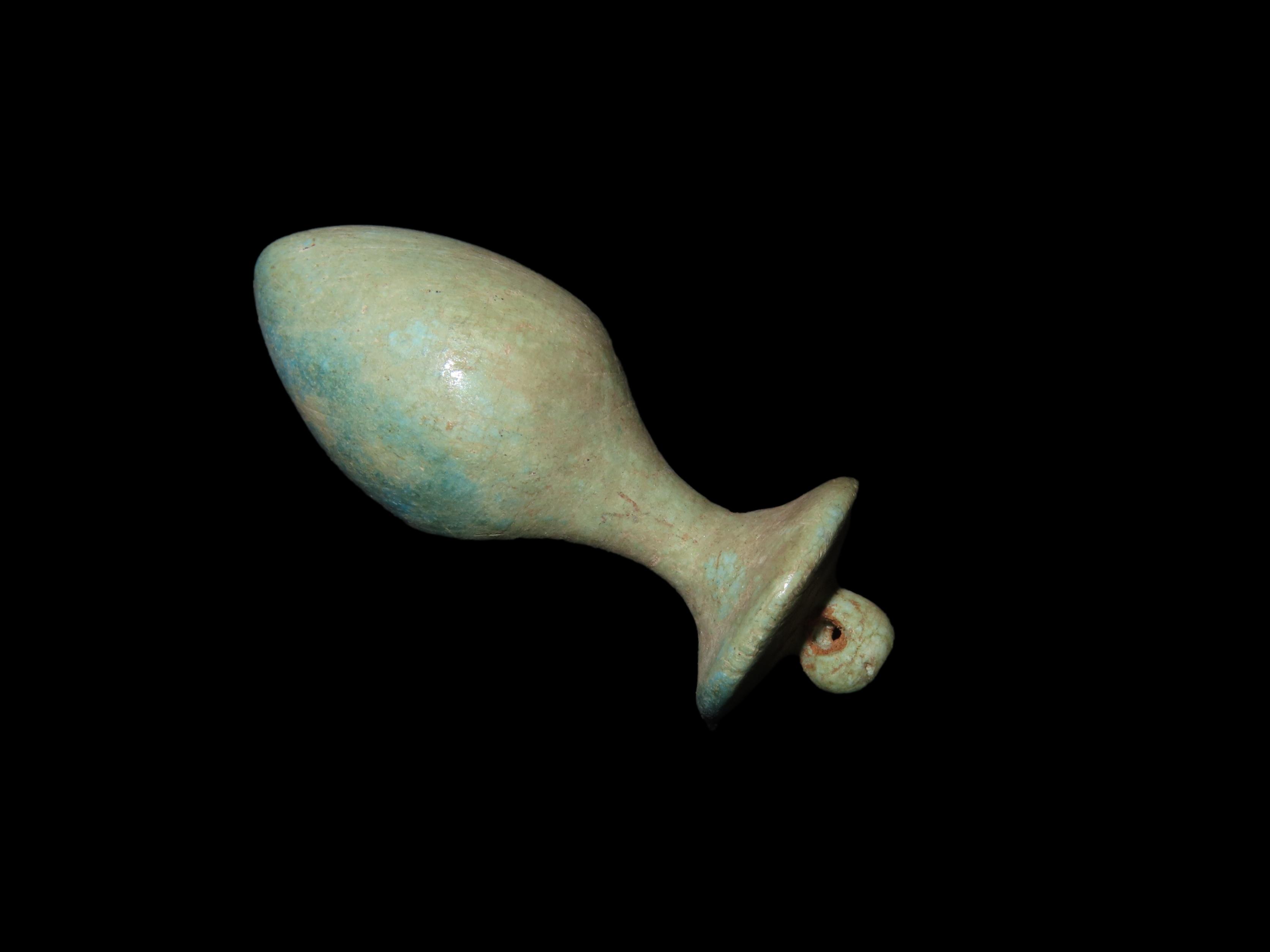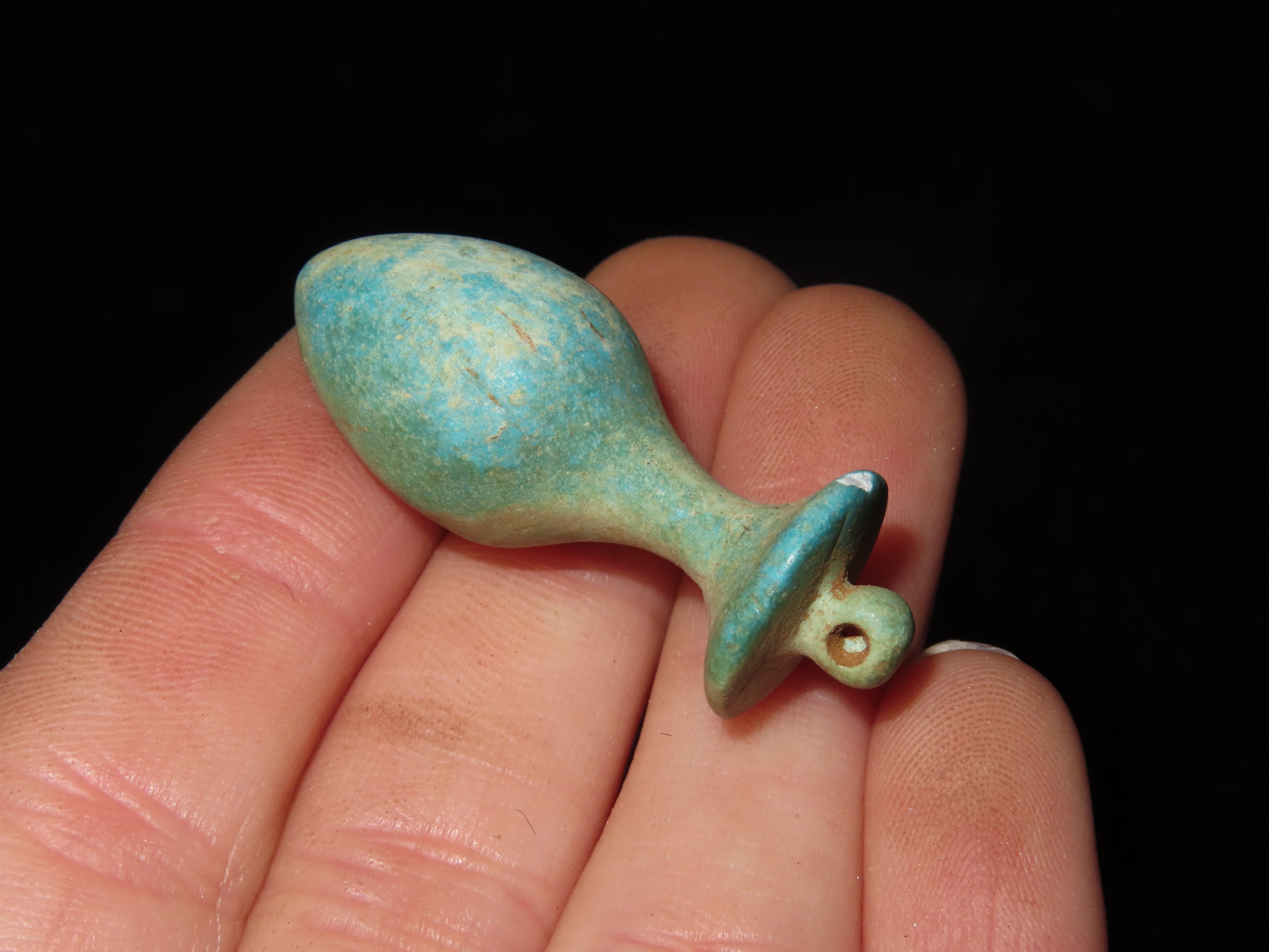 1 1/2″ Antique Wadjet Egyptian Papyrus Sceptre Amulet. Symbolism & Purpose: Regeneration, Eternal Youth & Vitality. Late Period 722 – 332 B.C.