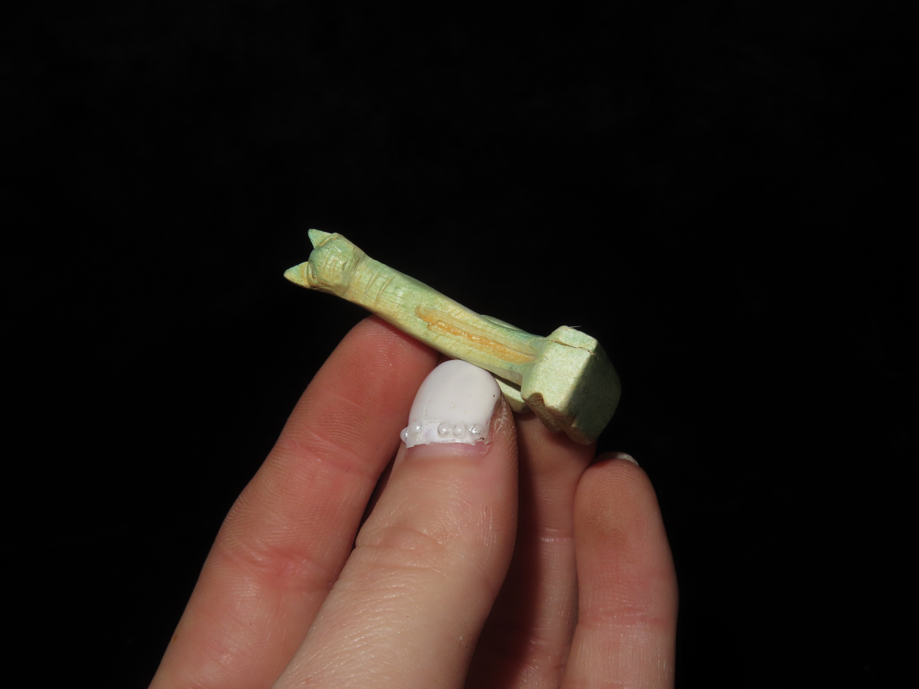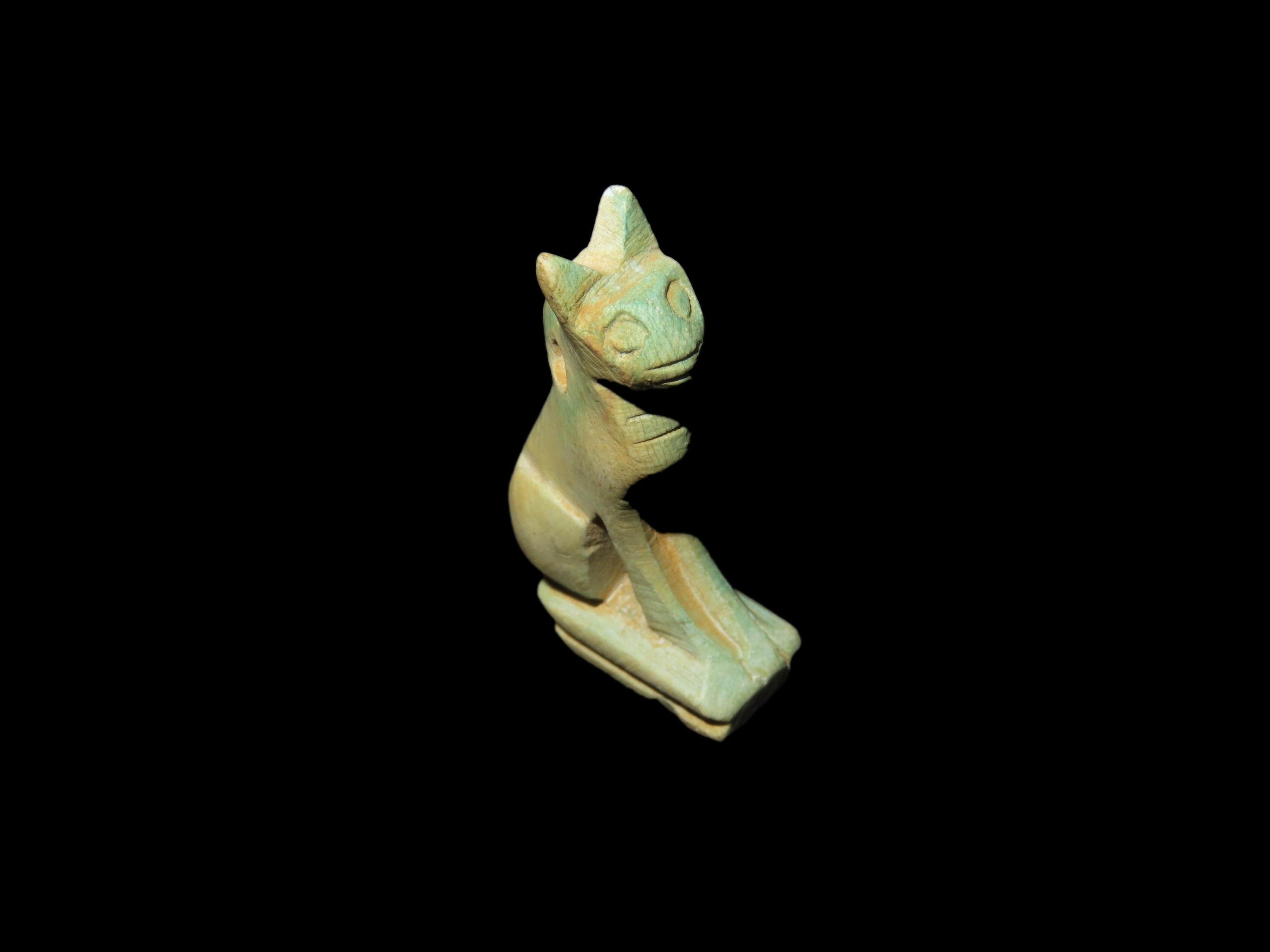 1 3/4″ x 7/8″ Antique Egyptian Stone Cat (Bastet) Amulet. Goddess of Pleasure.