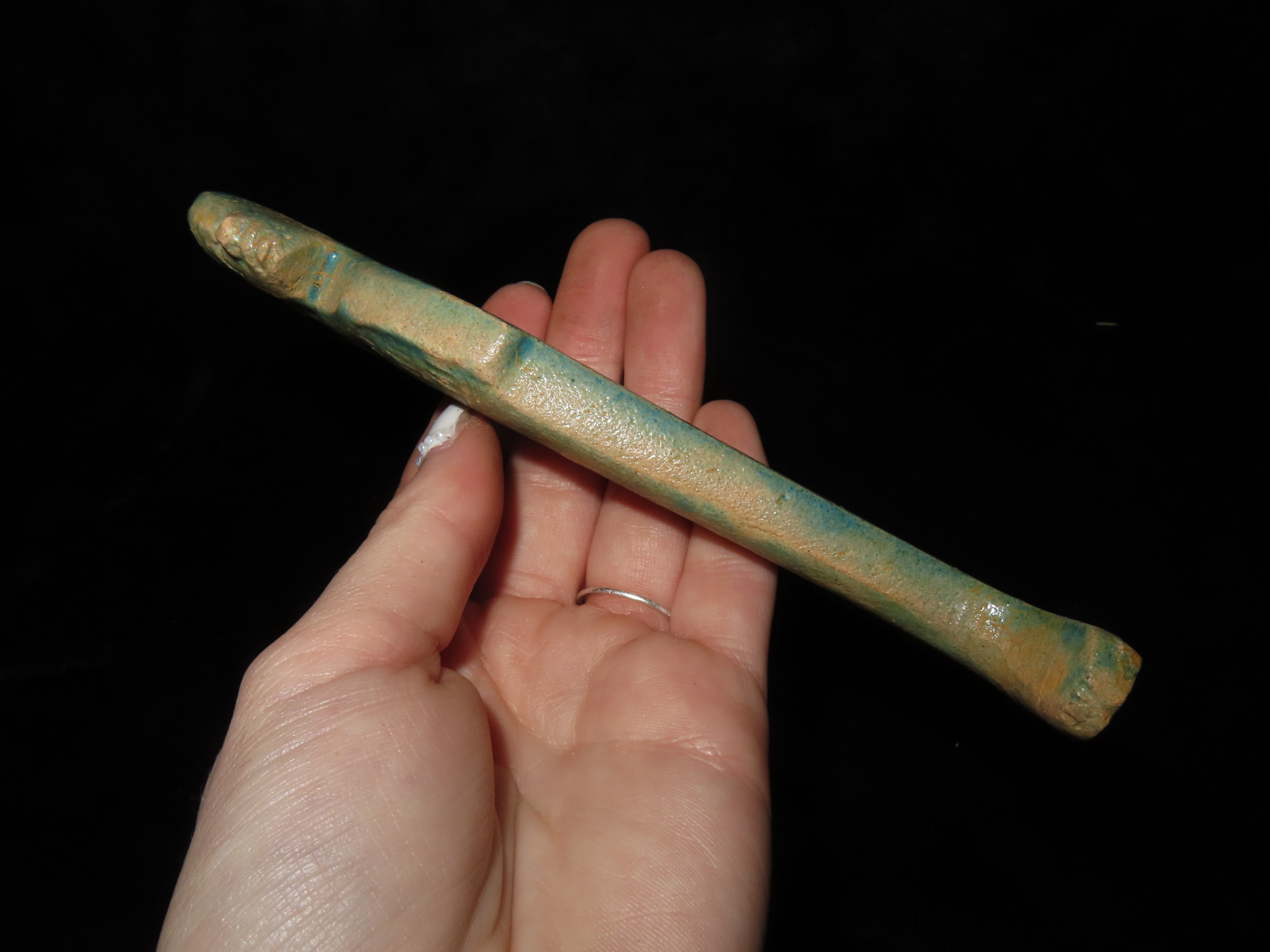 6 1/8″ , Antique Egyptian Amulet. Son of Horus. Canopic Figure. Middle Kingdom 2030 B.C. to 1650 B.C.
