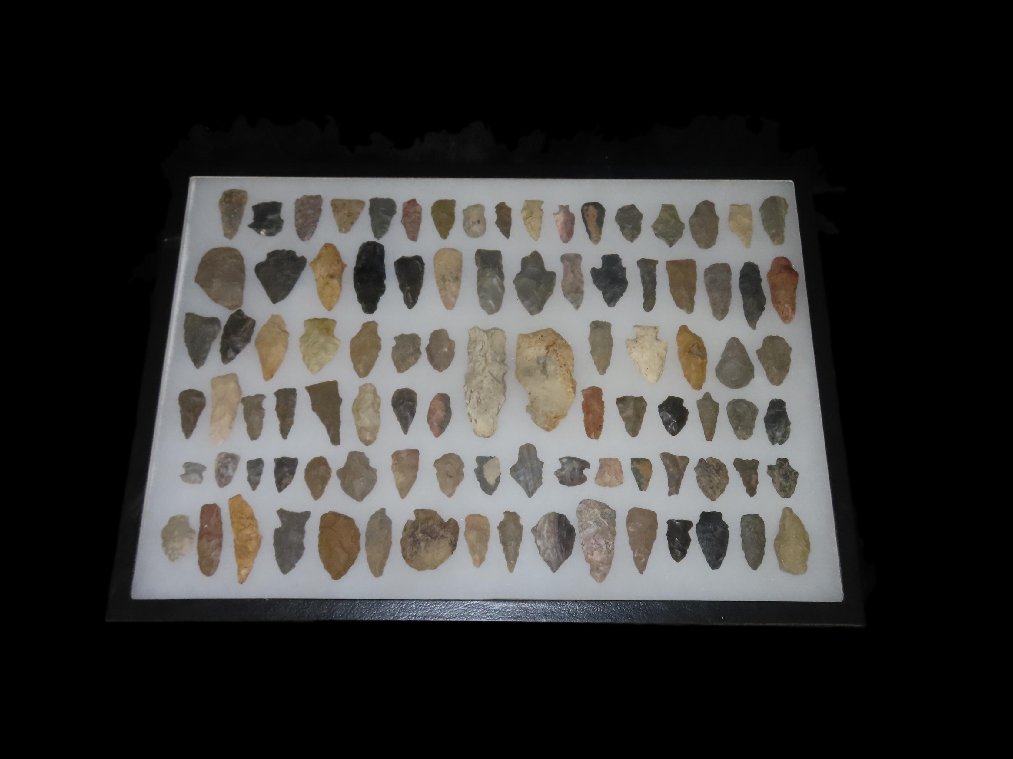 Frame of Miscellaneous Arrowheads, Flint Pieces, Etc.