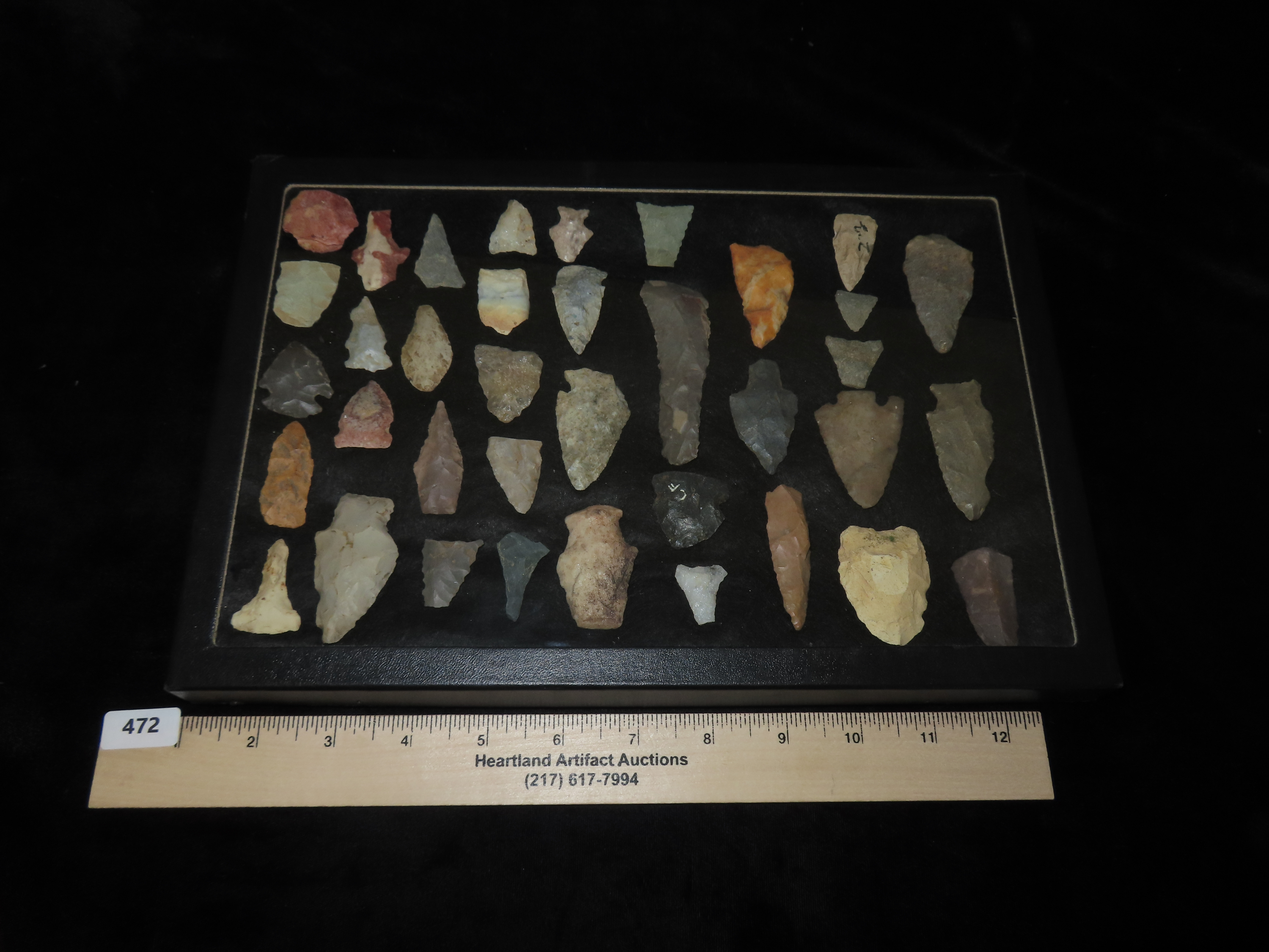 Frame of Miscellaneous Arrowheads, Flint Pieces, Etc.