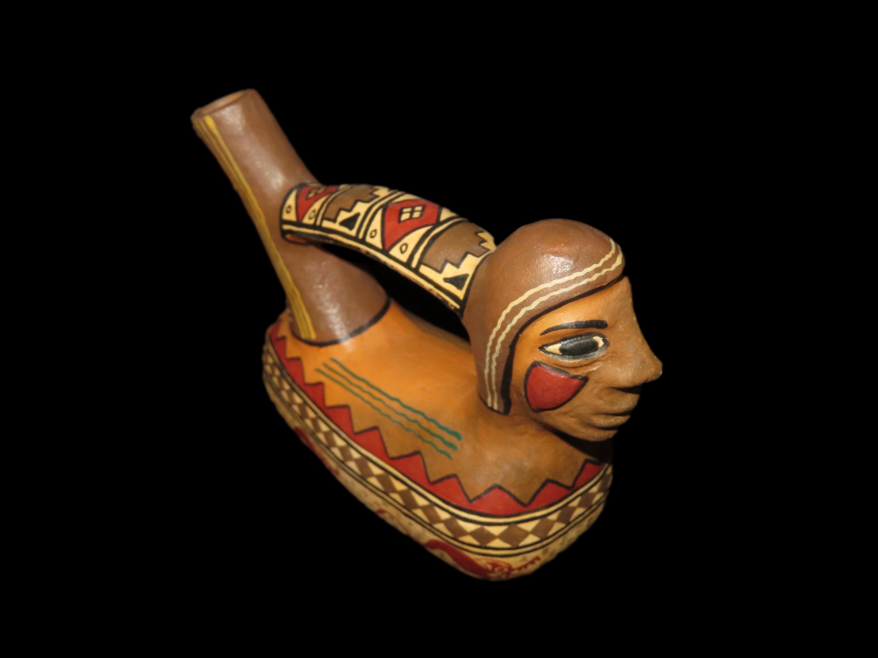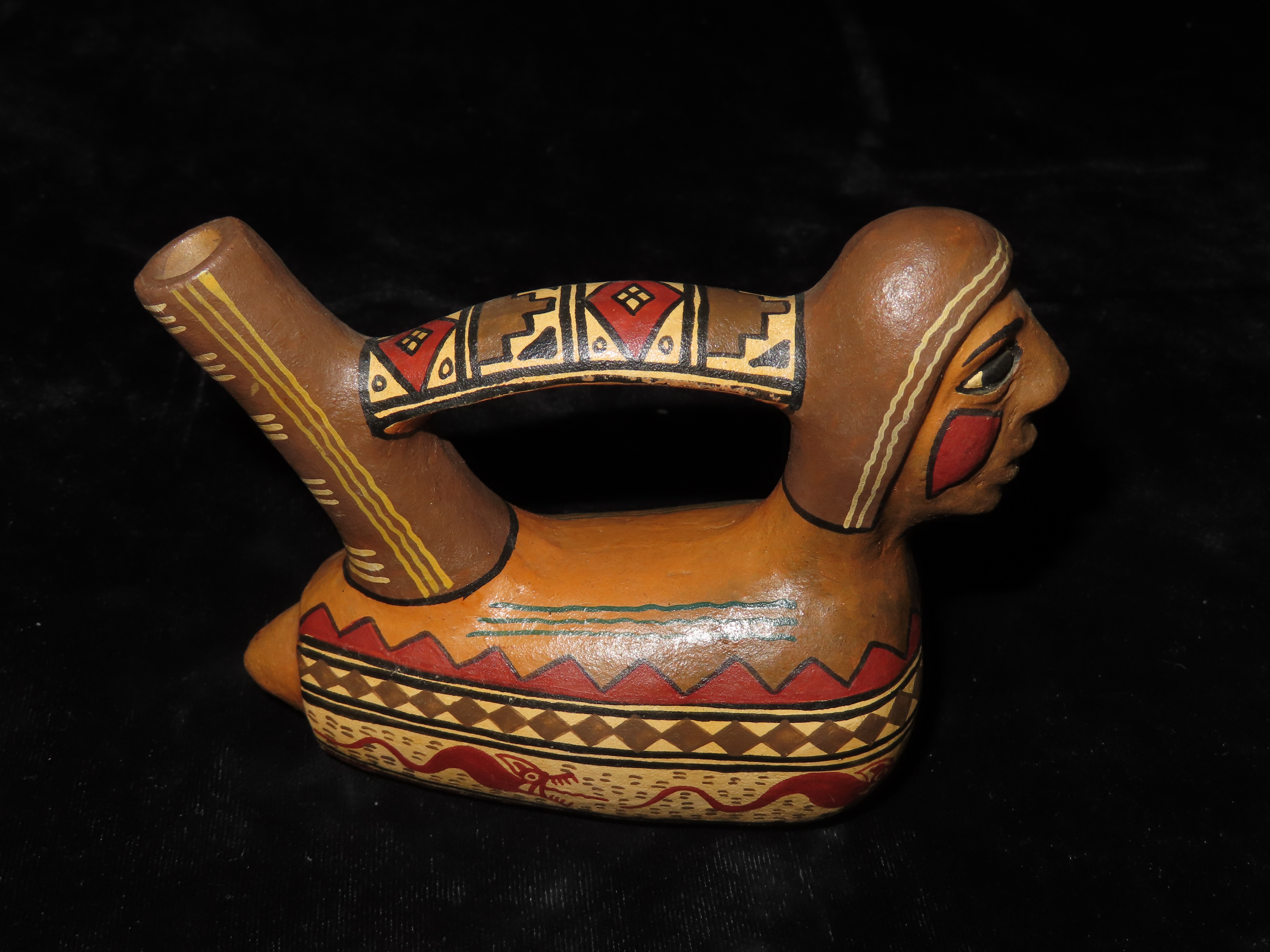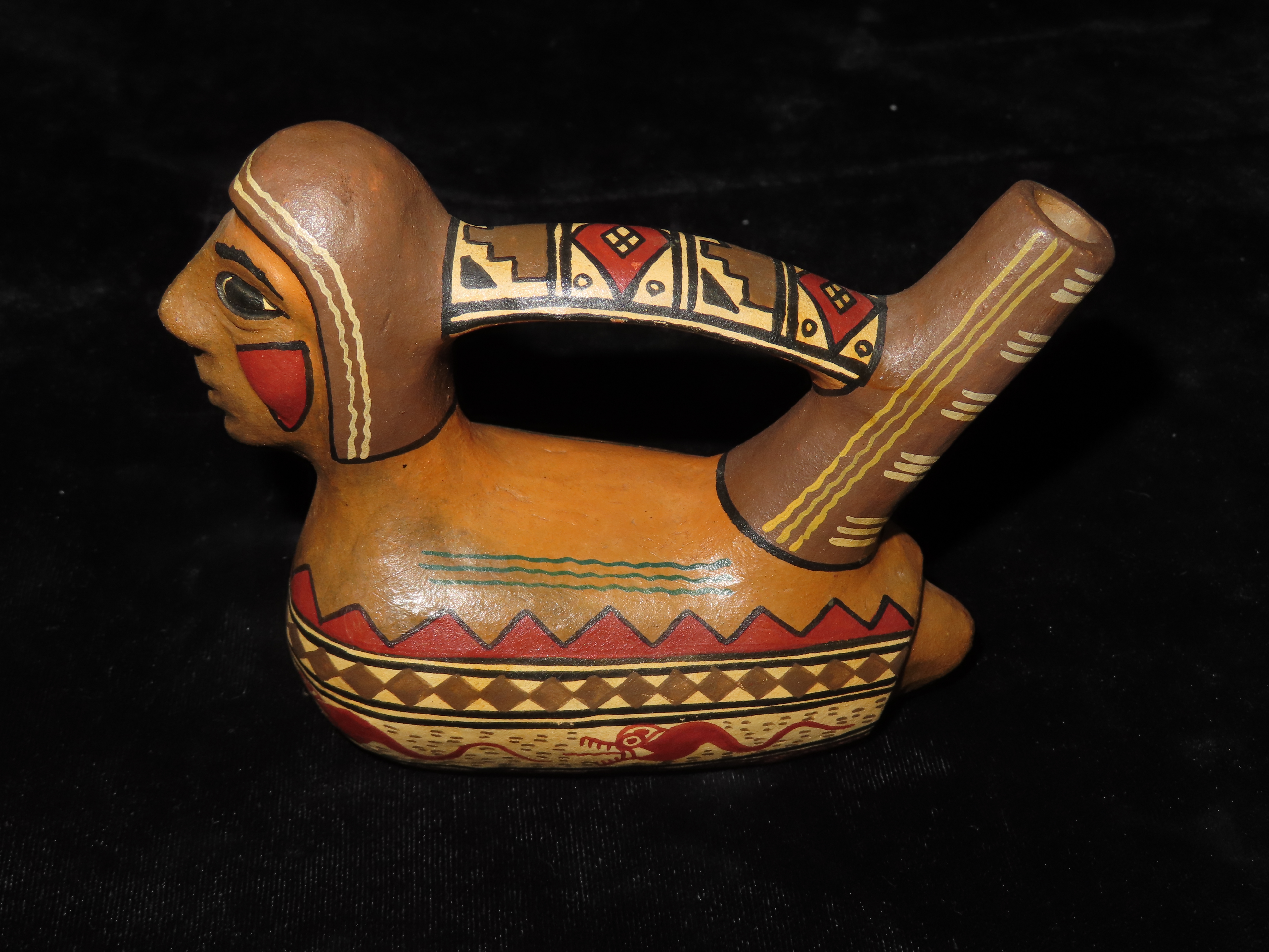 3 3/4″ Neat Pre-Columbian Style Sturrip Bottle, Nice Paint, South America