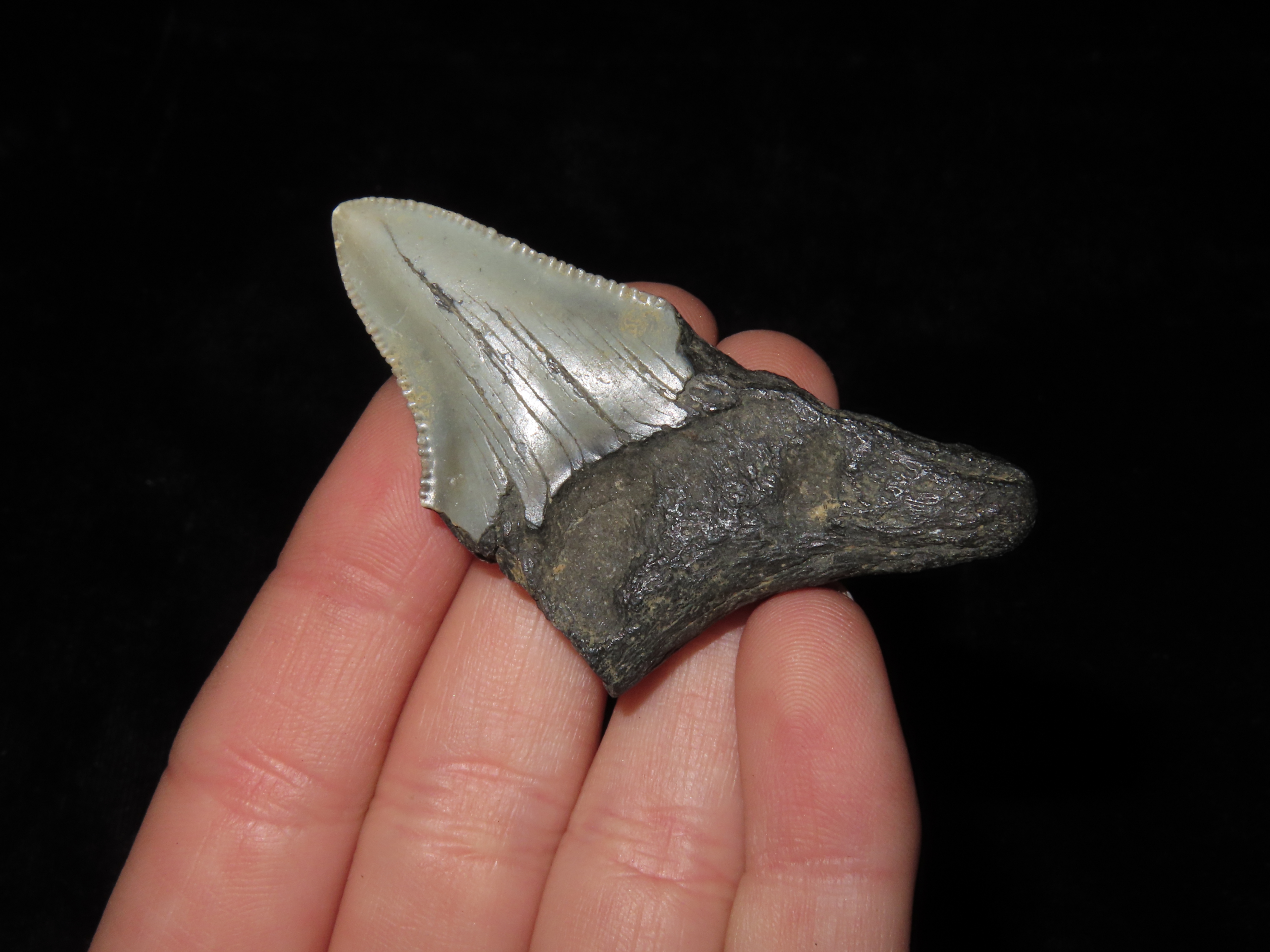 2.244″ Long Megalodon Shark Tooth Fossil, Found off the coast of Florida, Dinosaur Era