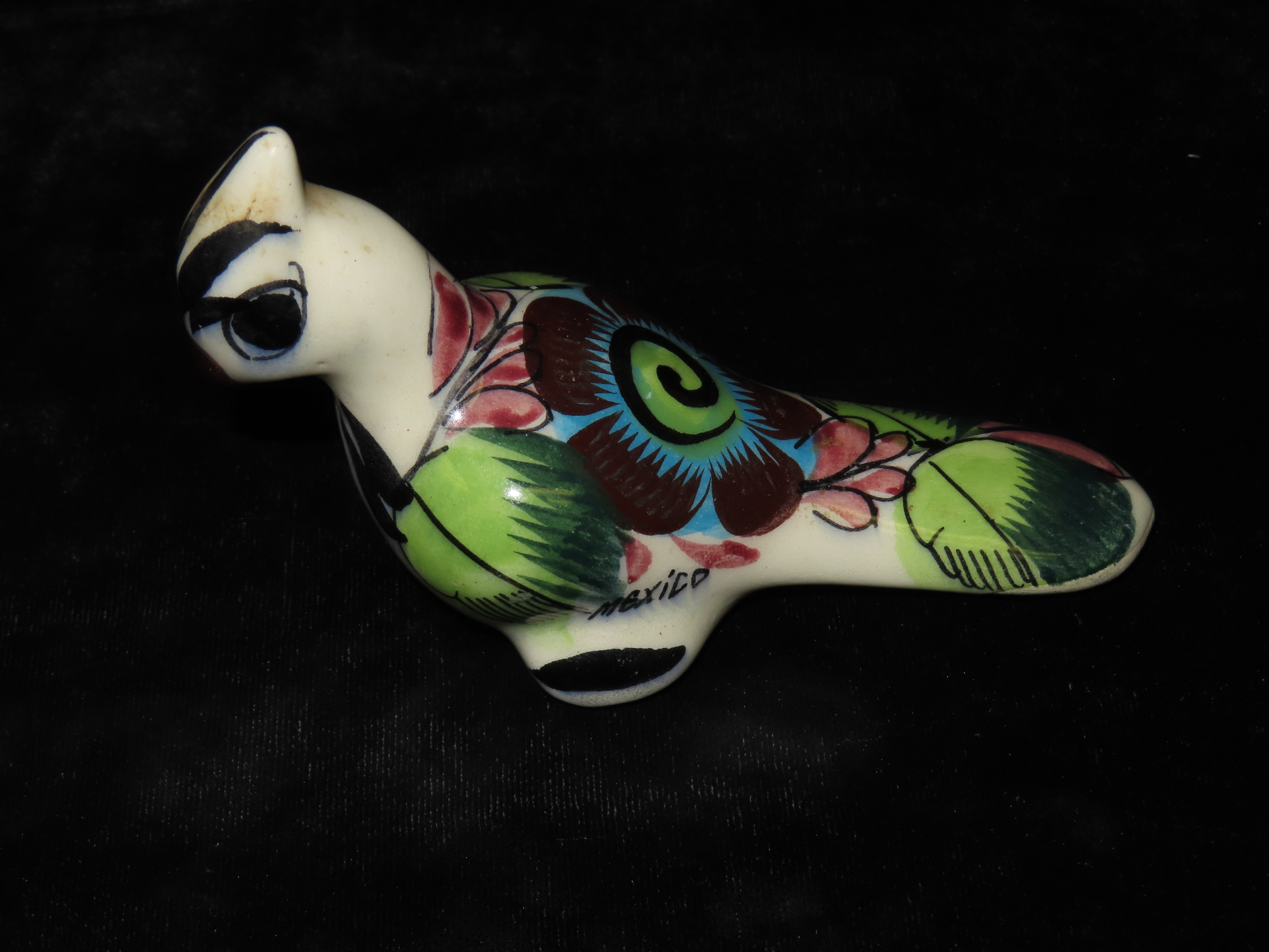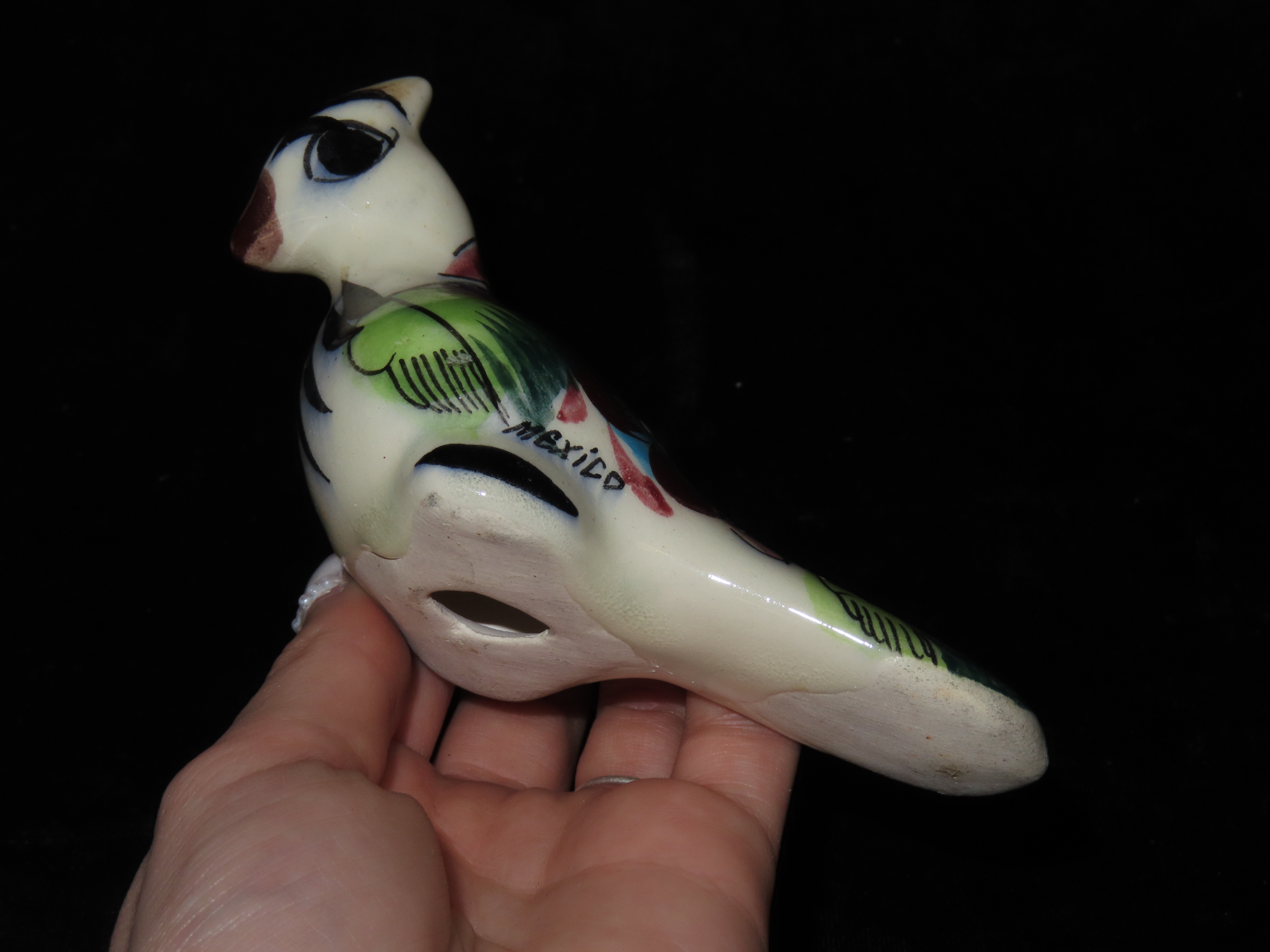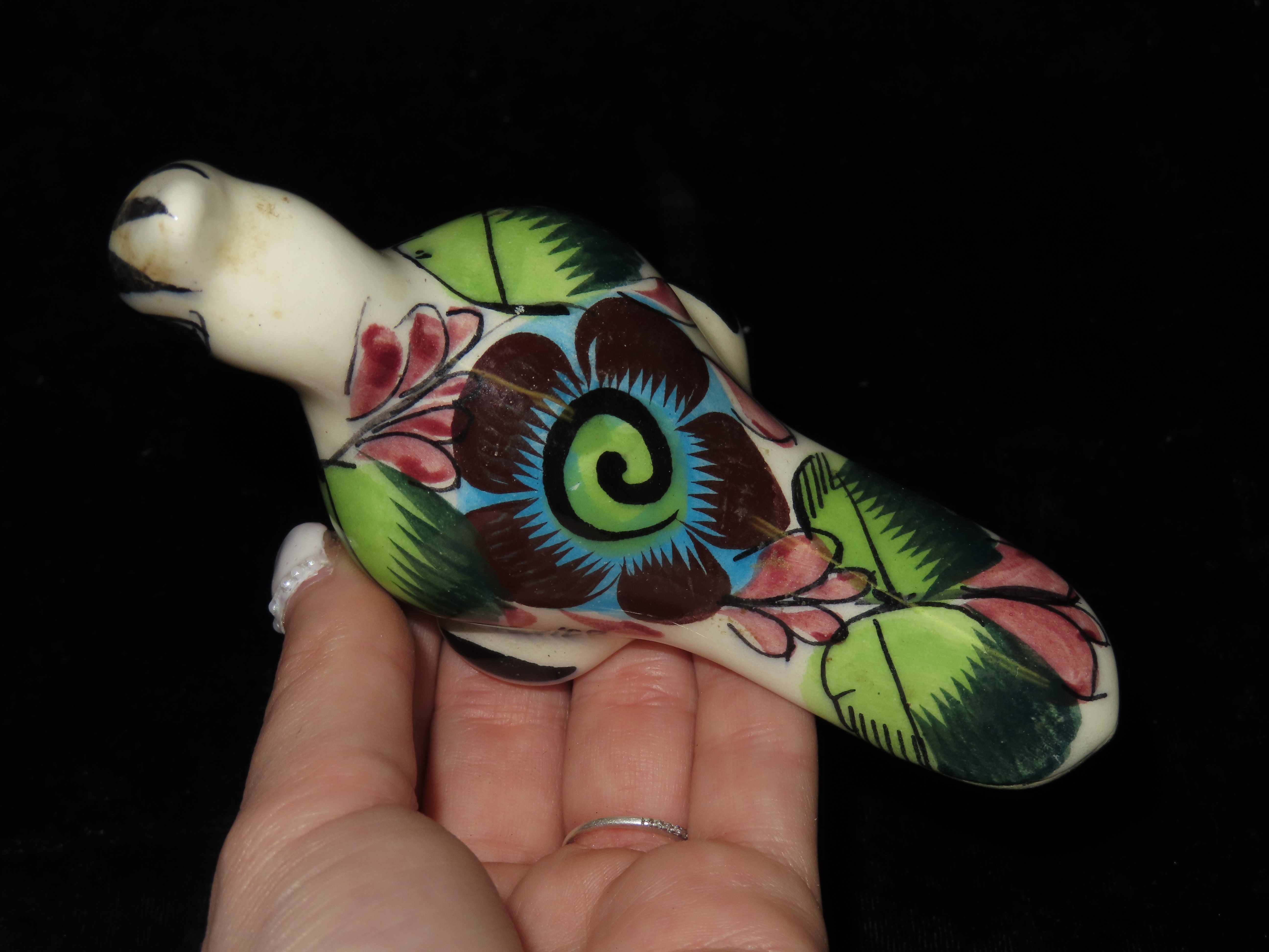 Mexican Tonala, Folk Art Pottery Hand Painted Bird, Vintage / Signed
