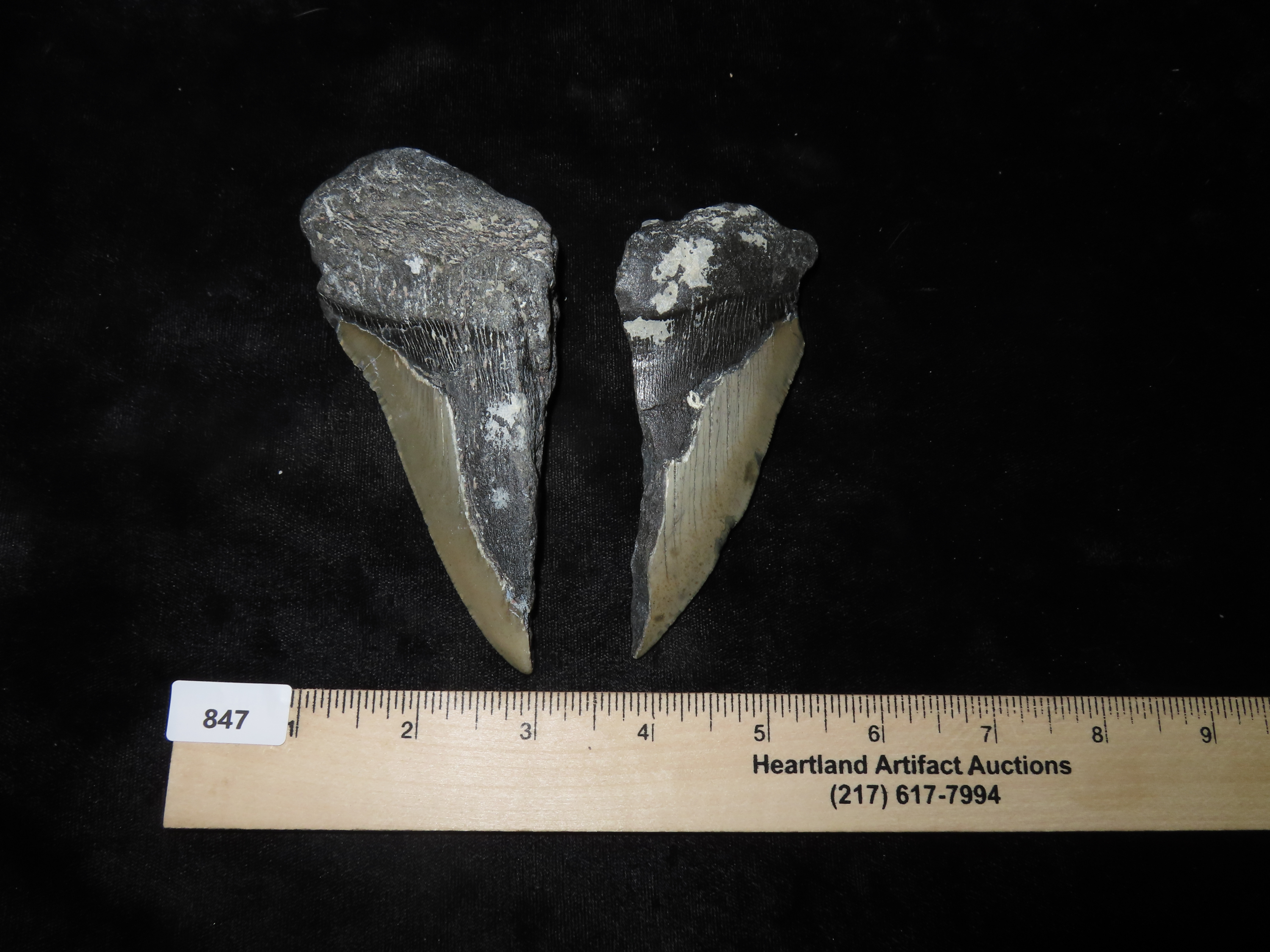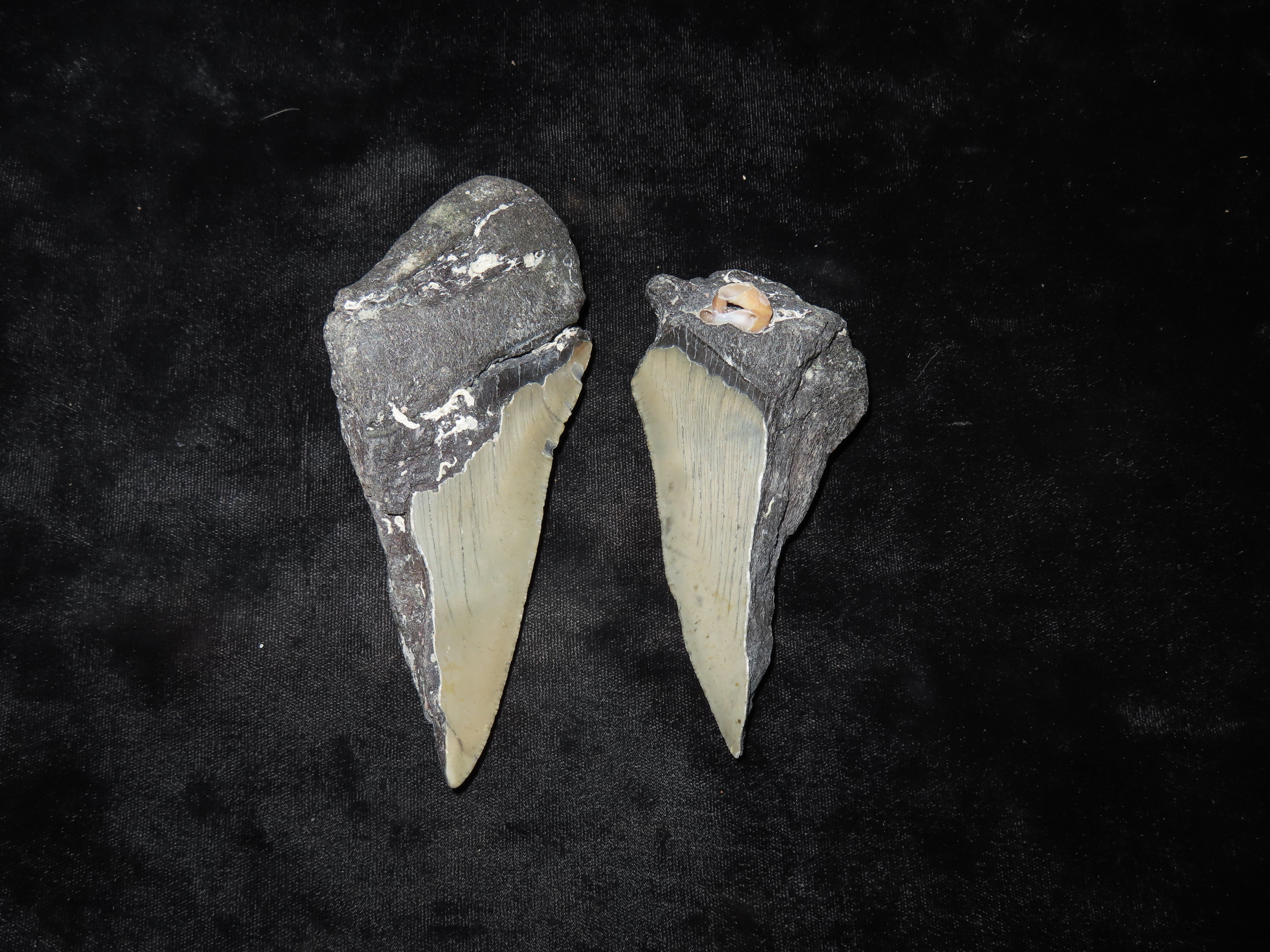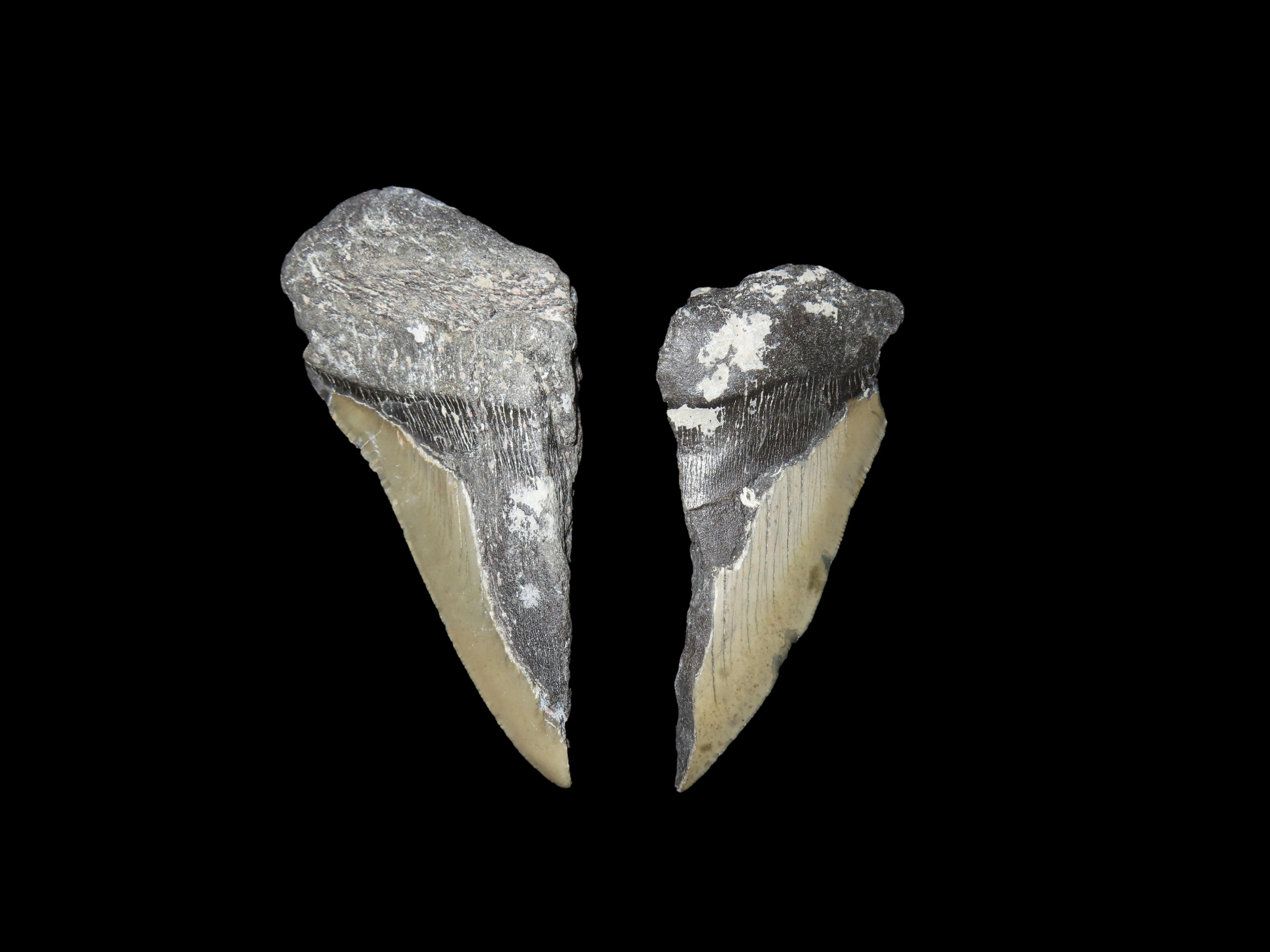 Set of 2 Megalodon Shark Teeth Fossils, Found in Florida