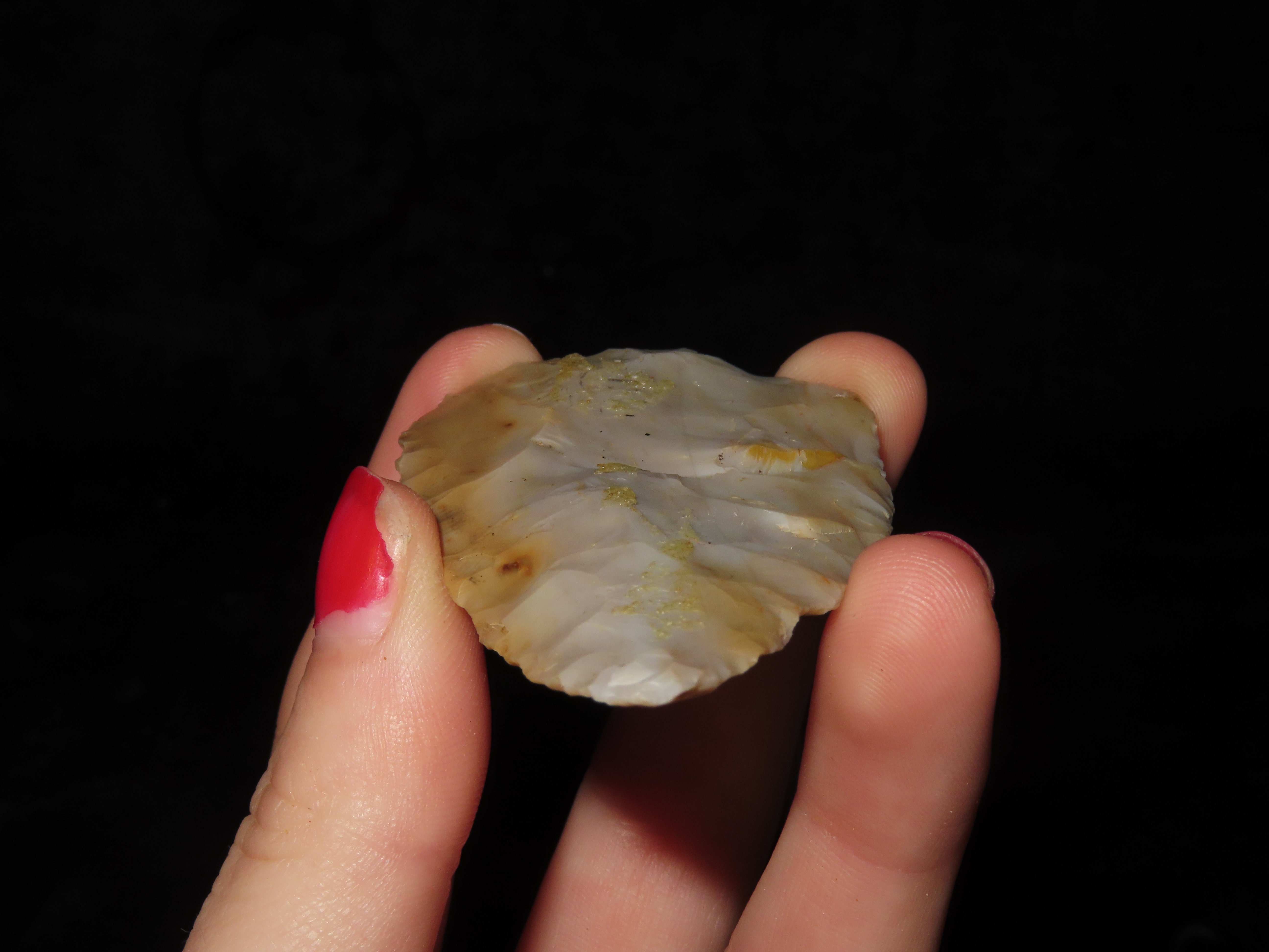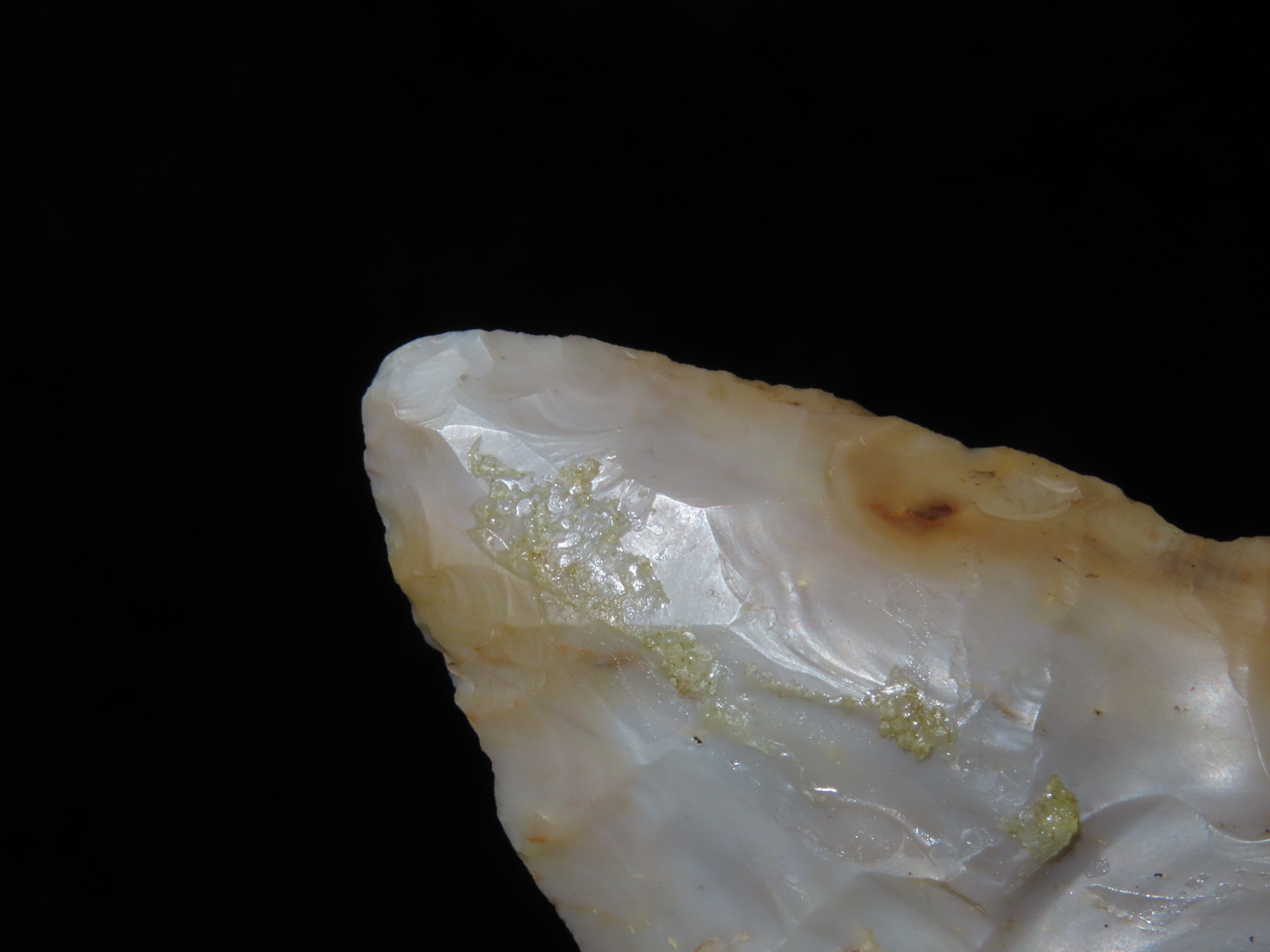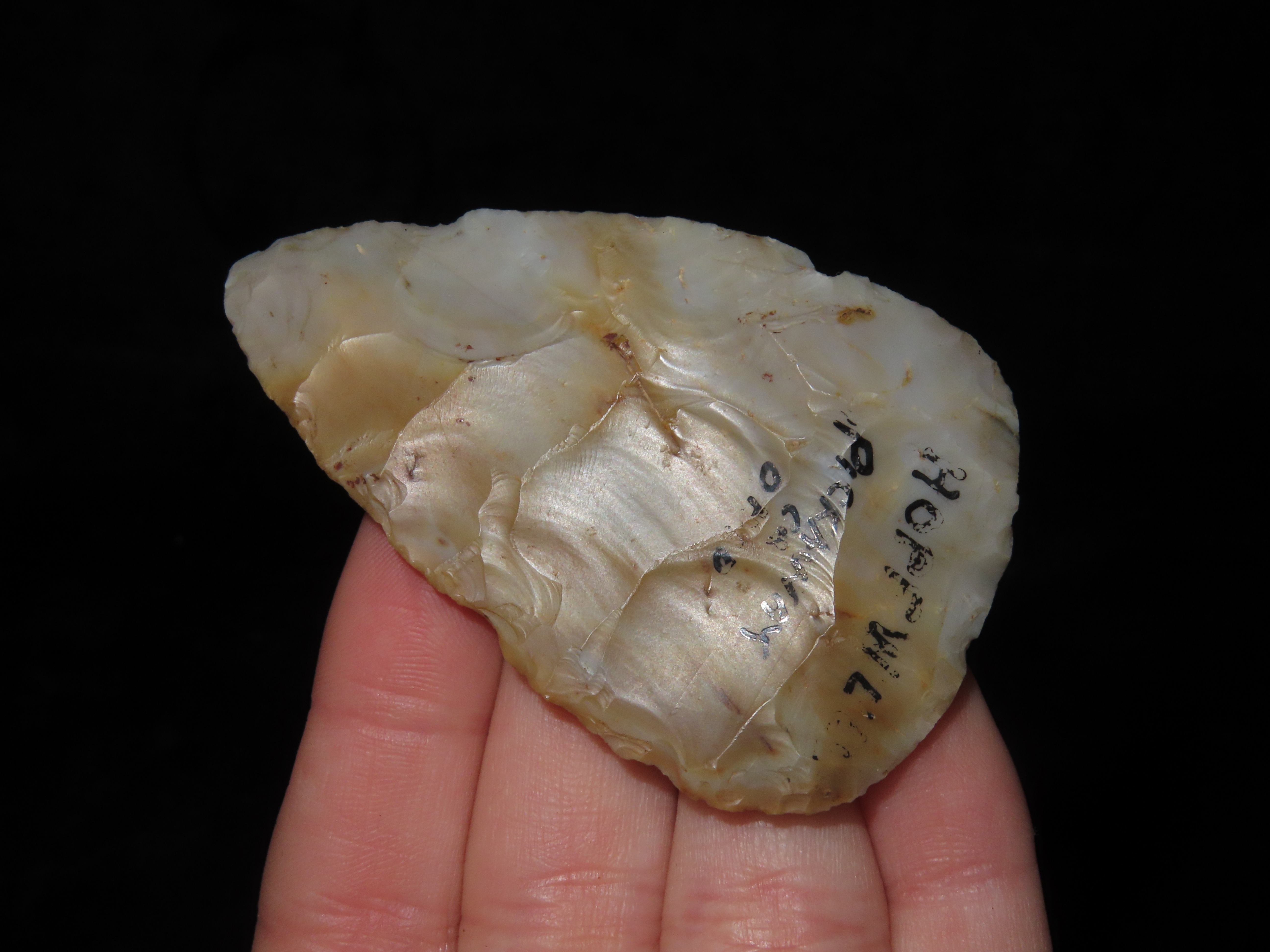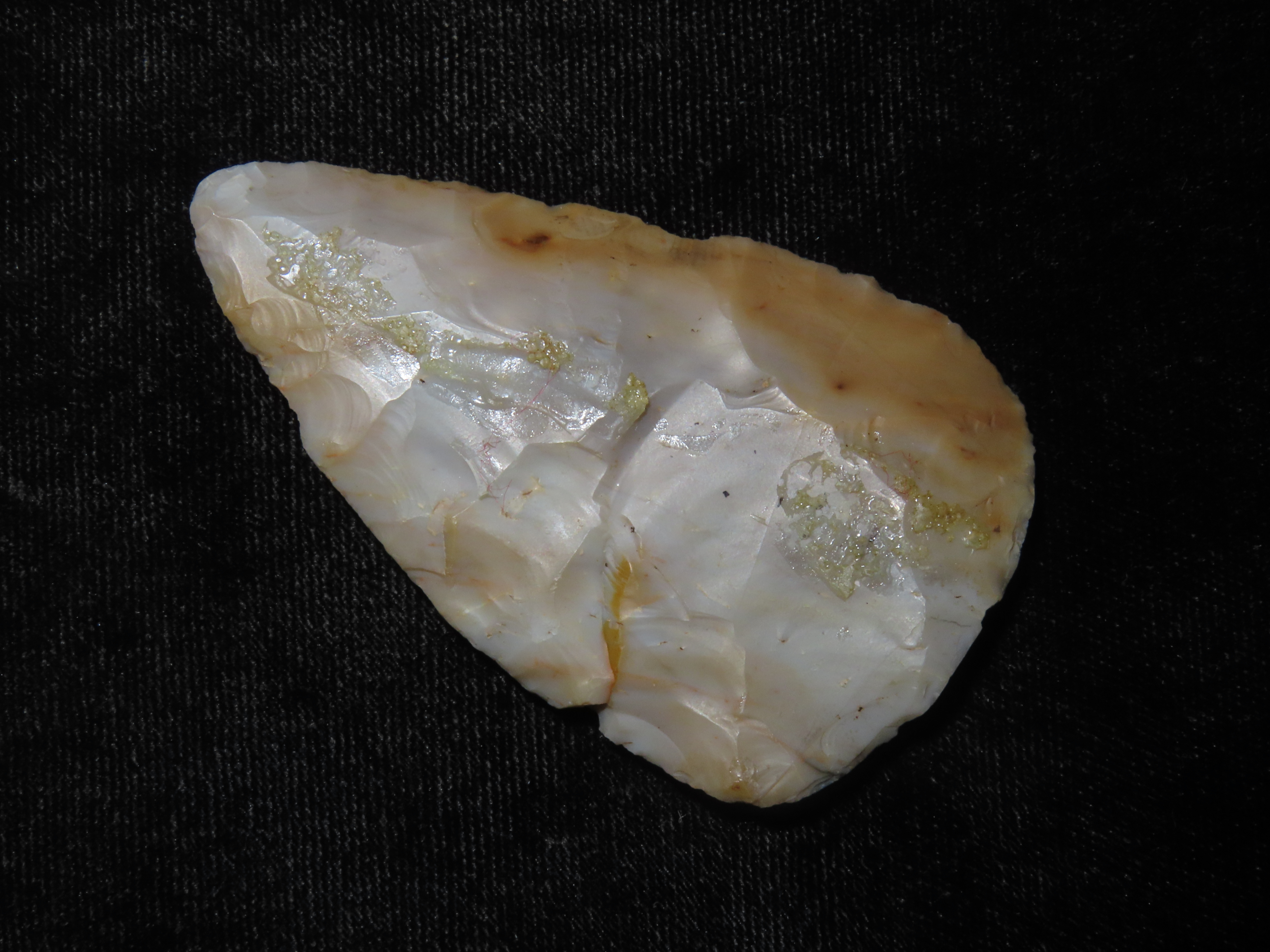 Beautiful 2 5/8″ Ohio Flint Ridge Adena – Woodland Leaf Blade found in Pickaway County Ohio, ex Dr. Copeland, Great Color & No Brainer Patina!