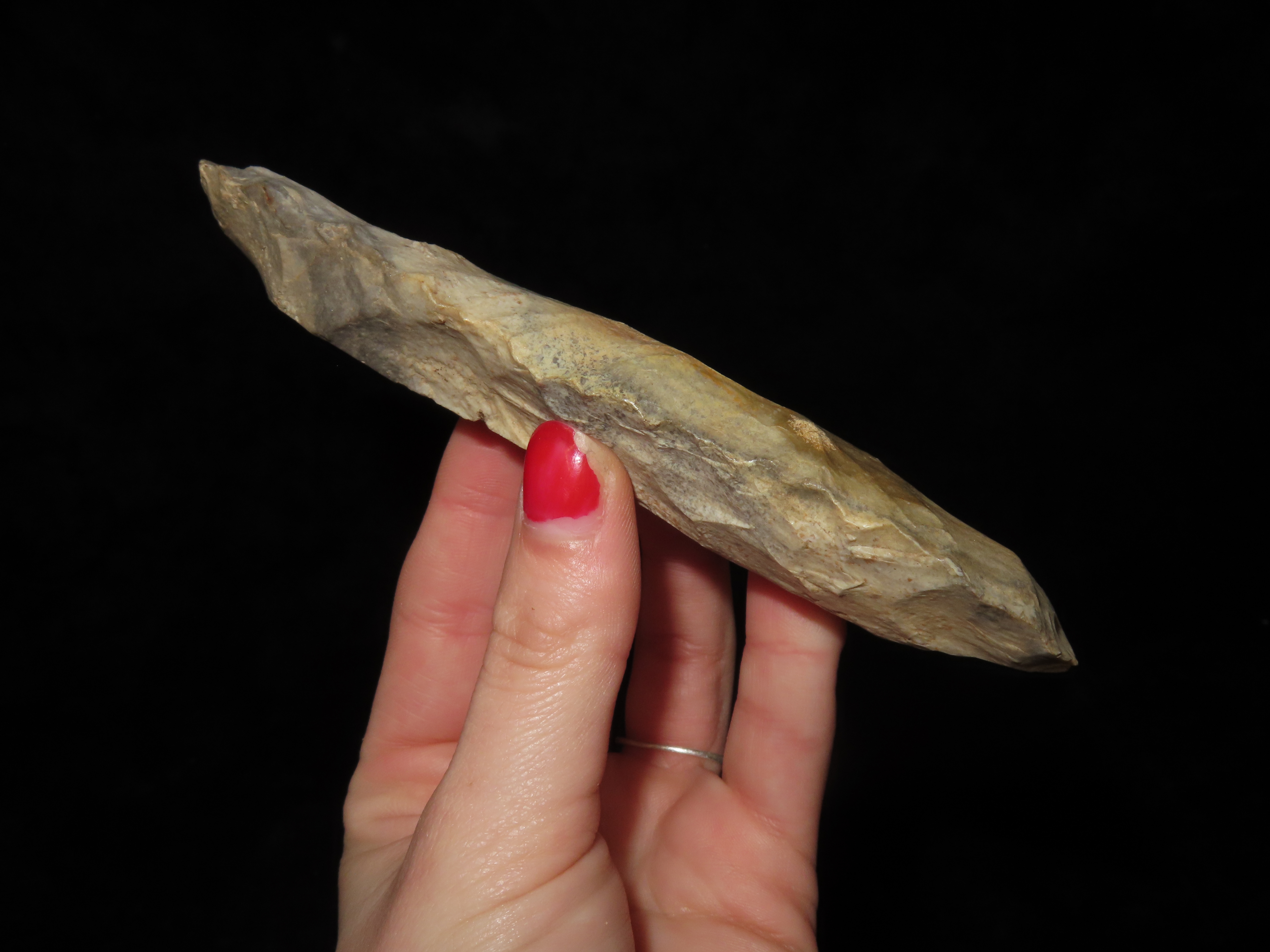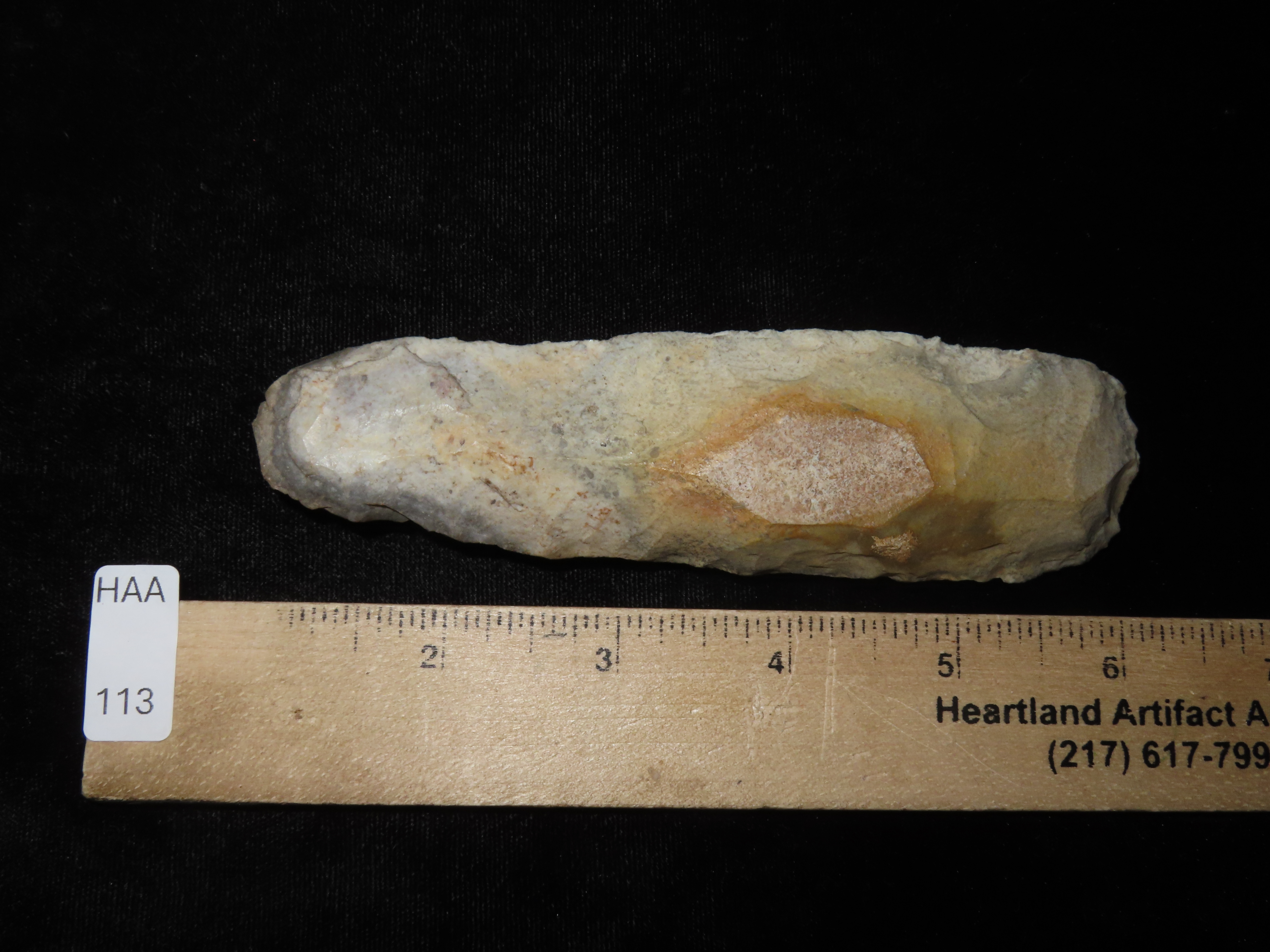 Colorful 5 3/8″ Sedalia Digger / Polished Flint Celt. Cooper Co. Missouri. Well shaped example with great color and nice polish. Great Patina too.
