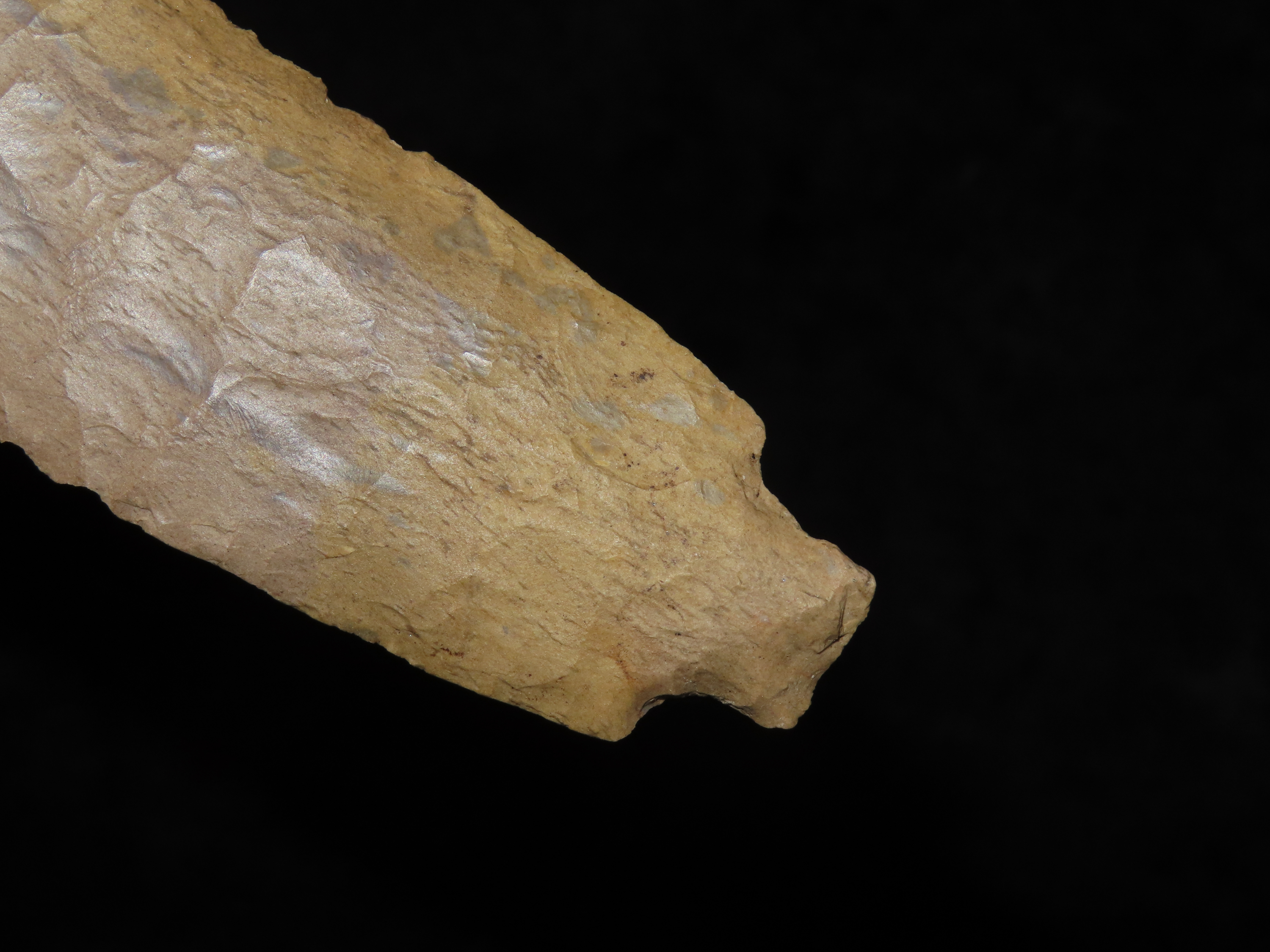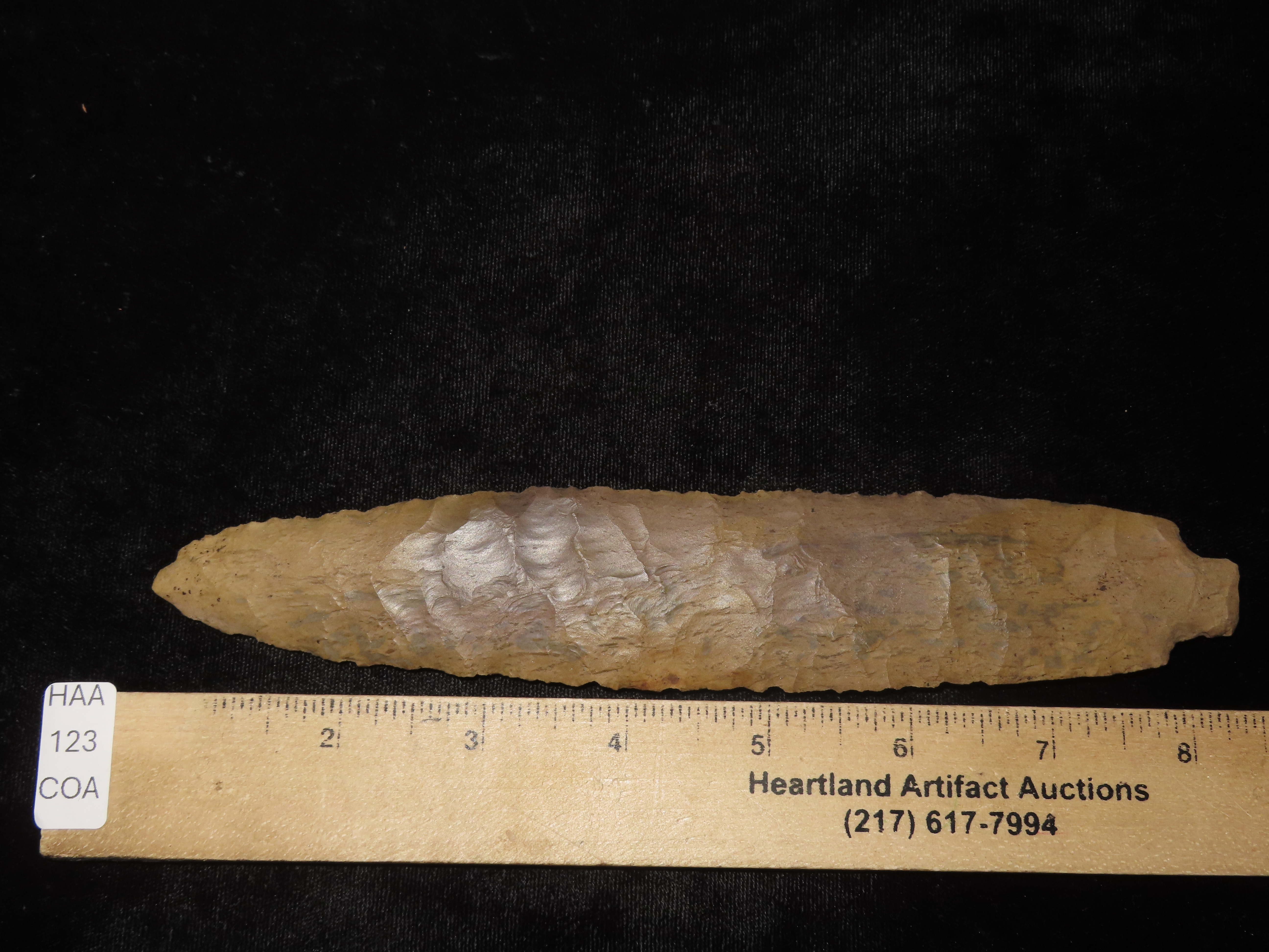 Huge 7 7/8″ Elk River Benton, McNairy Co. Tennessee. Dickey COA. Nice and thin with exceptional flaking. Great No Brainer Patination. Ex Gary Noel Collection.