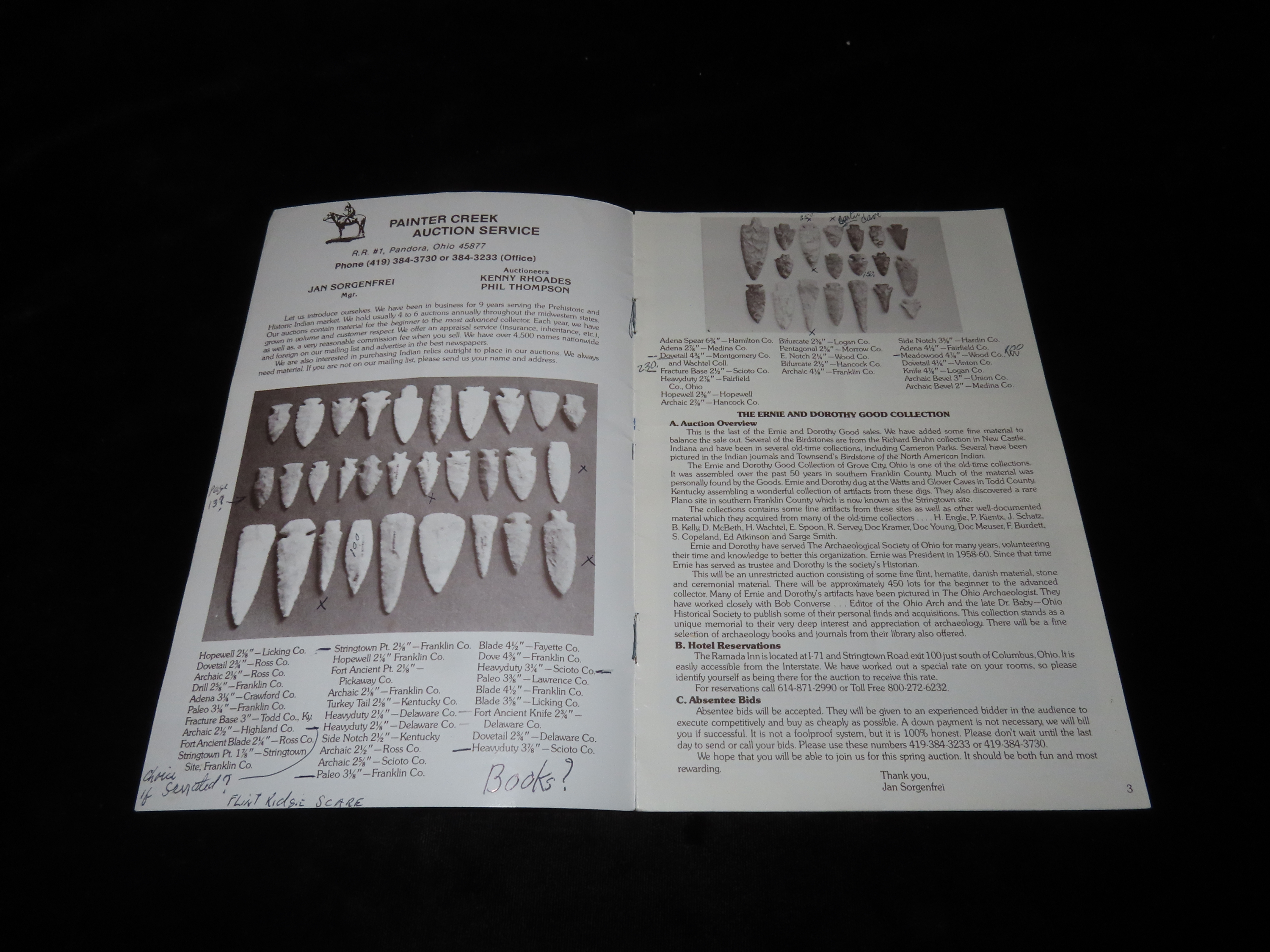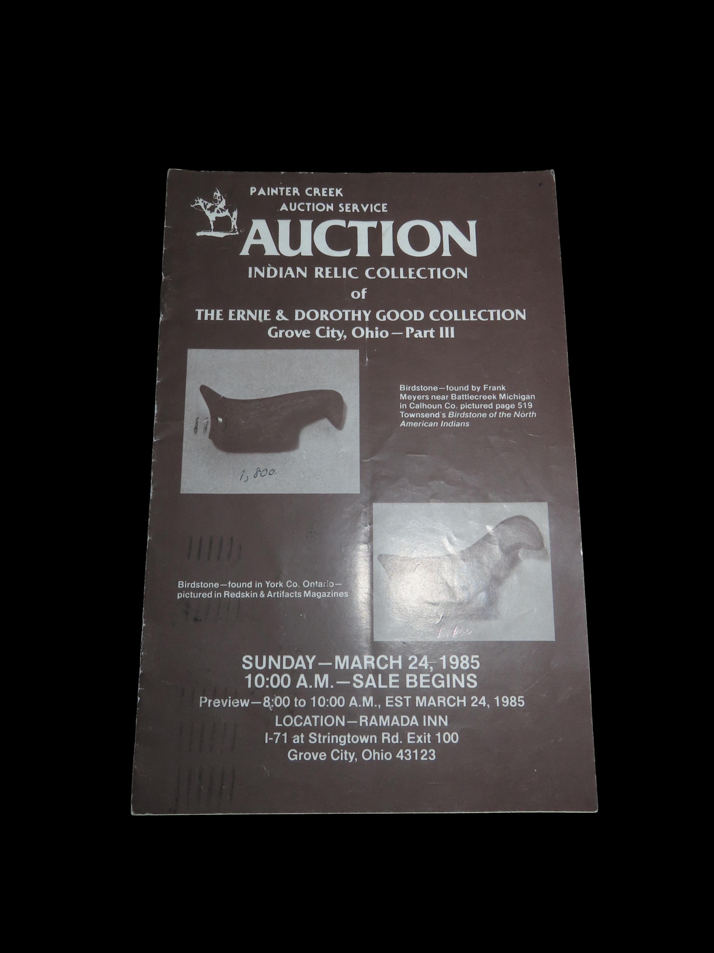 1984 Ernie & Dorothy Good Indian Artifact Collection Auction Catalog, Part 3, Painter Creek Auction Service, Birdstones, Axes & Celts, Dovetail, Thebes, Clovis, Bannerstone, Etc… Tons of Great Old Time Relics