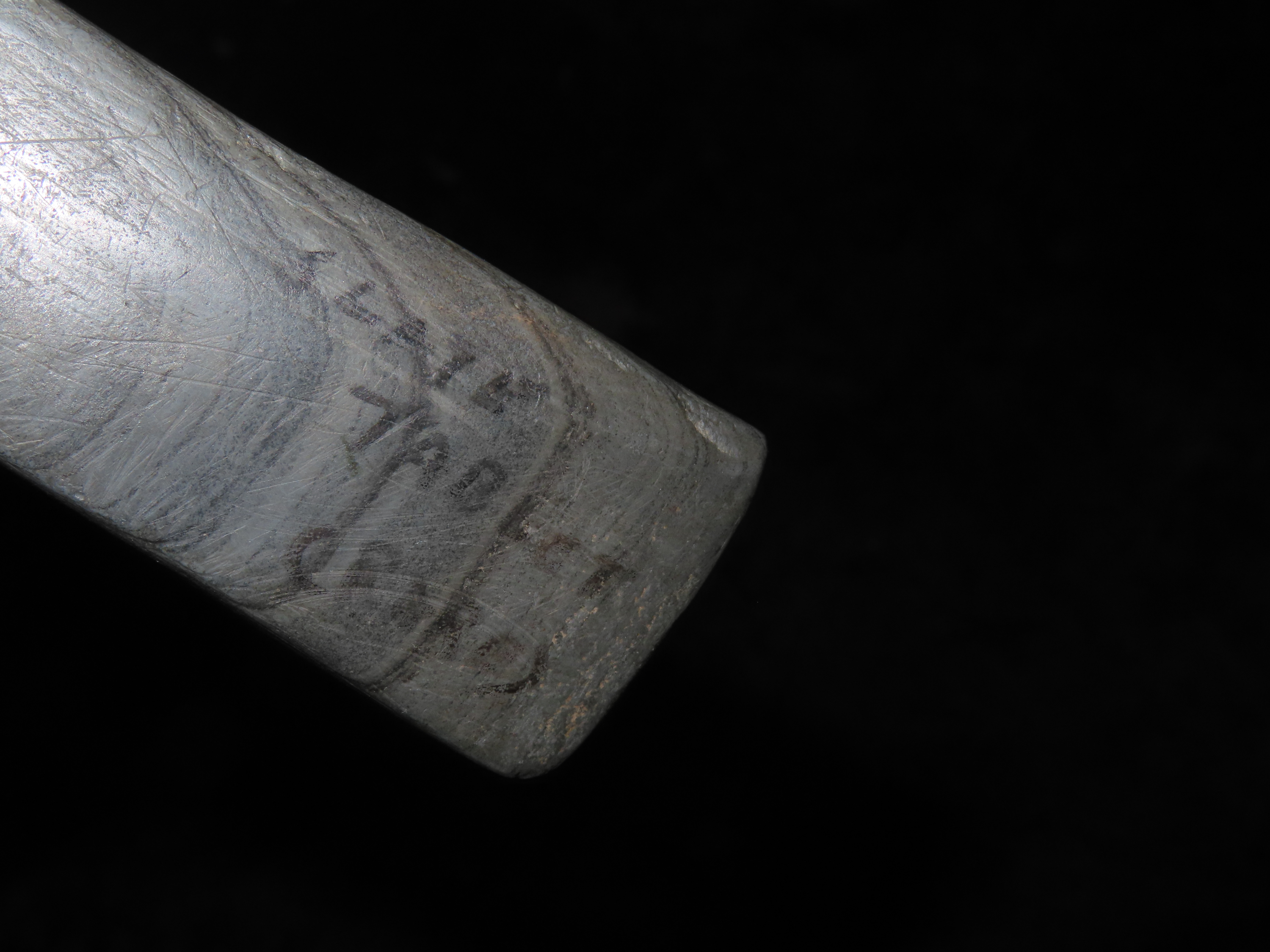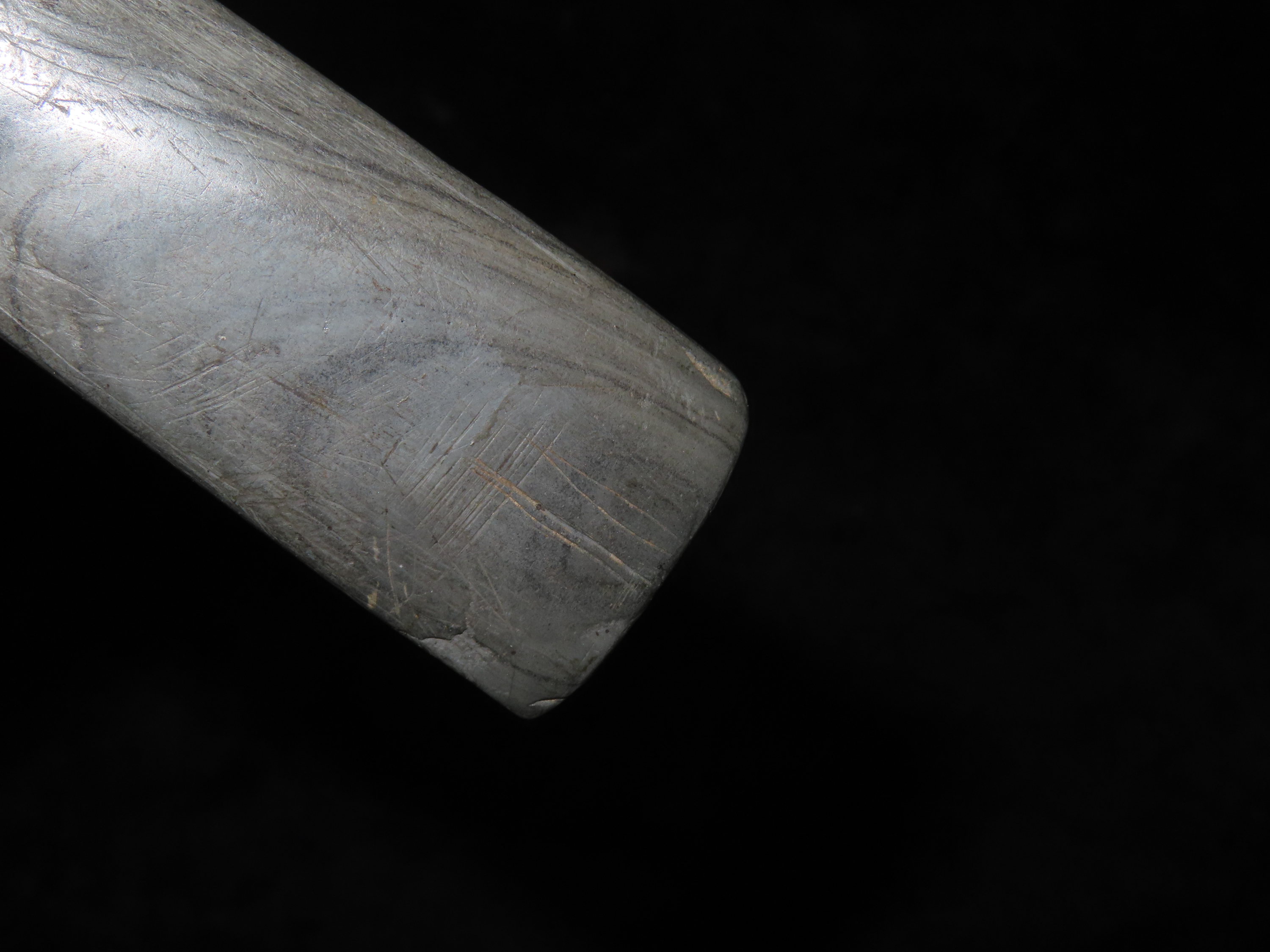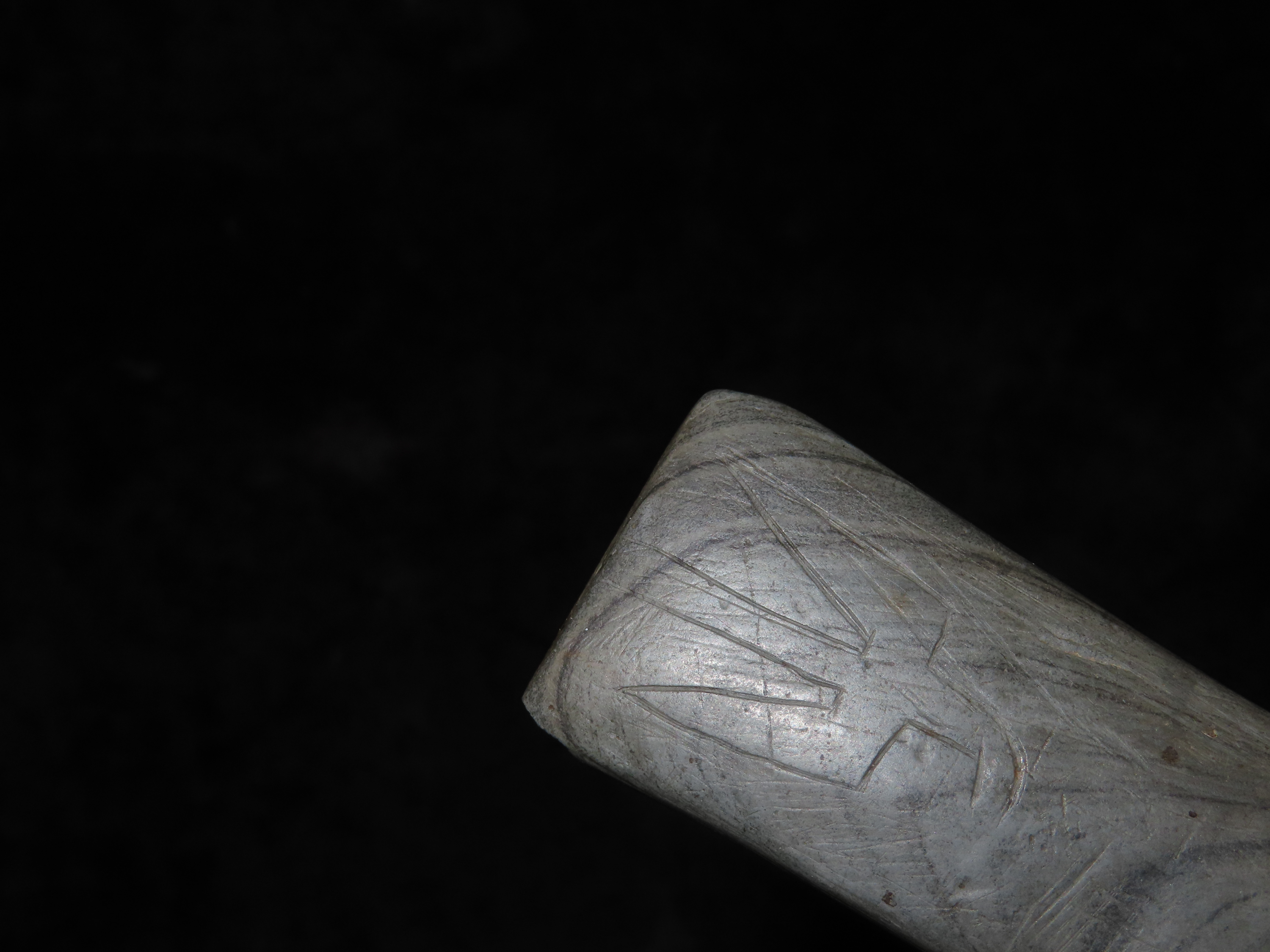 Rare Engraved Cahokia Tablet, St. Clair Co. Illinois. Motley COA. Has a Bird or Birdman nicely carved on one side. Nice piece of Banded Slate with great vivid Banding, amazing polish. Nice rare artifact with heavy no brainer Patina!