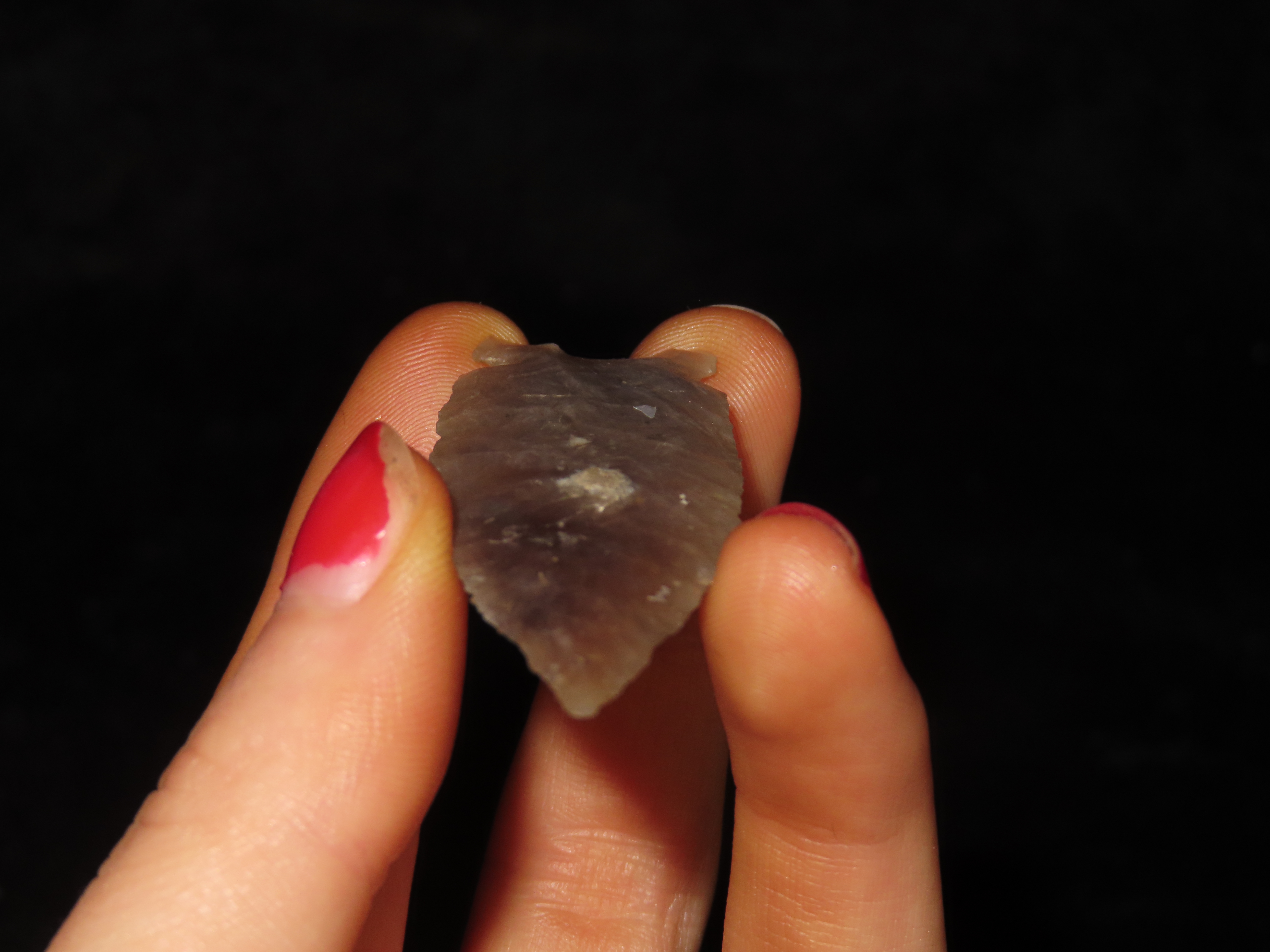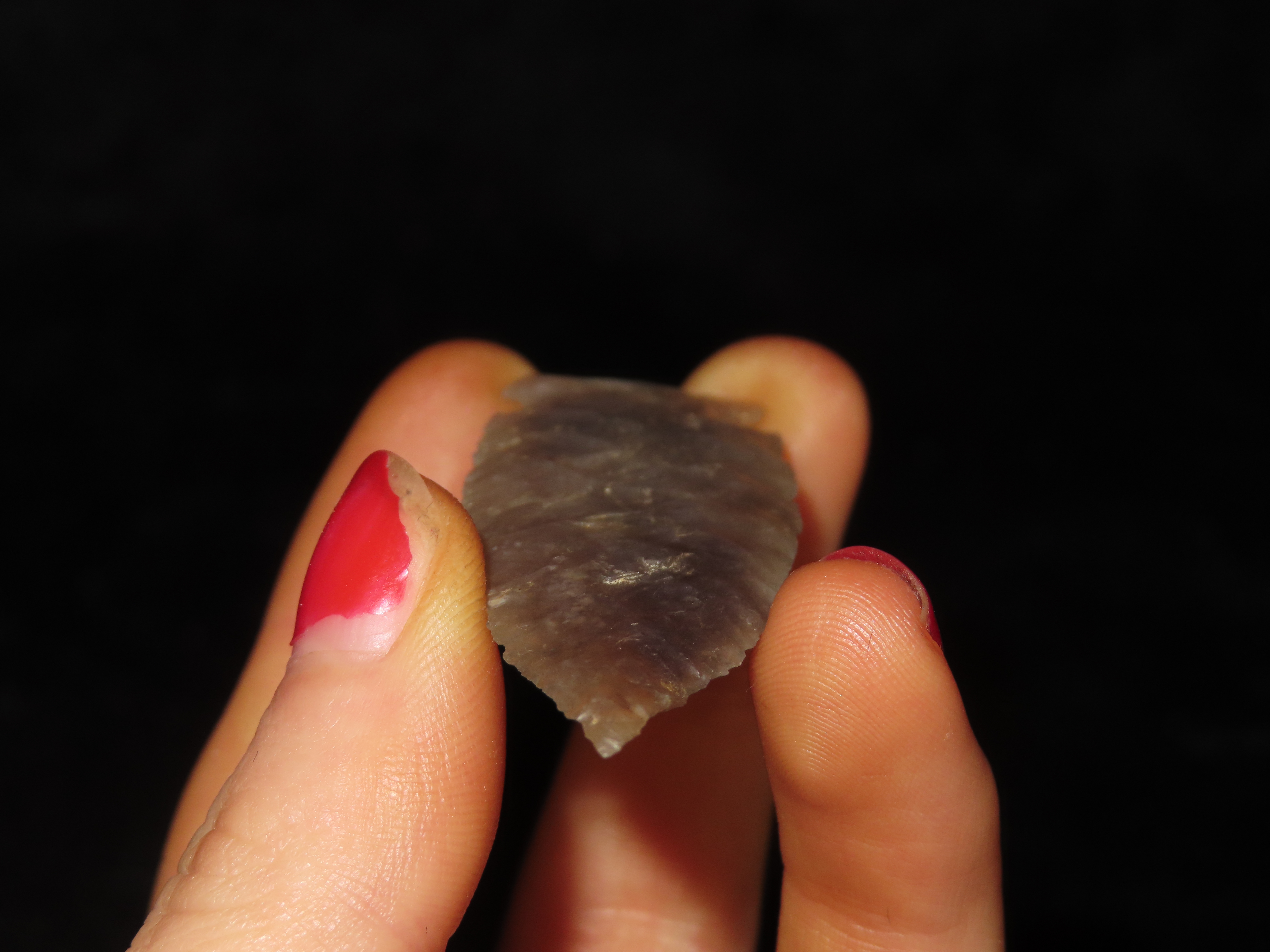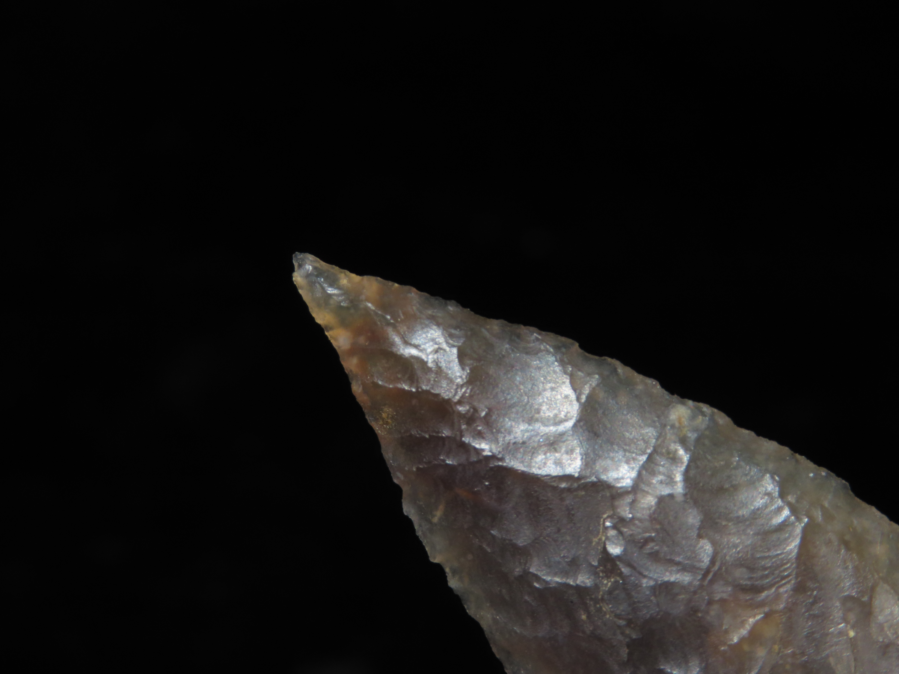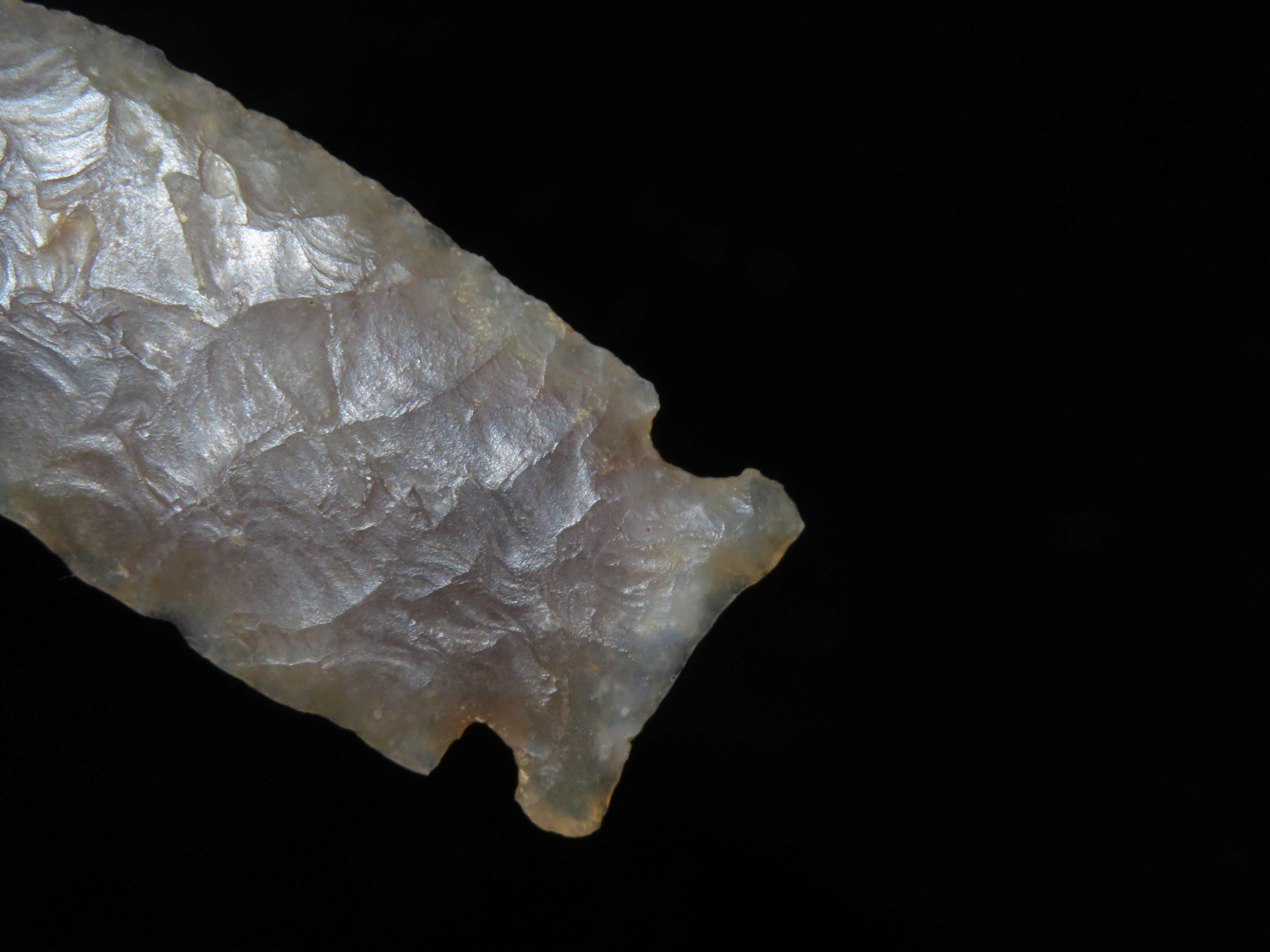 Phenomenal 2 9/16″ Knife River Lookingbill, Missoula Co. Montana. Motley COA. Highly Translucent and wafer thin with expert flaking. Extraordinary Example! Made from a well patinated piece of Knife River Flint.