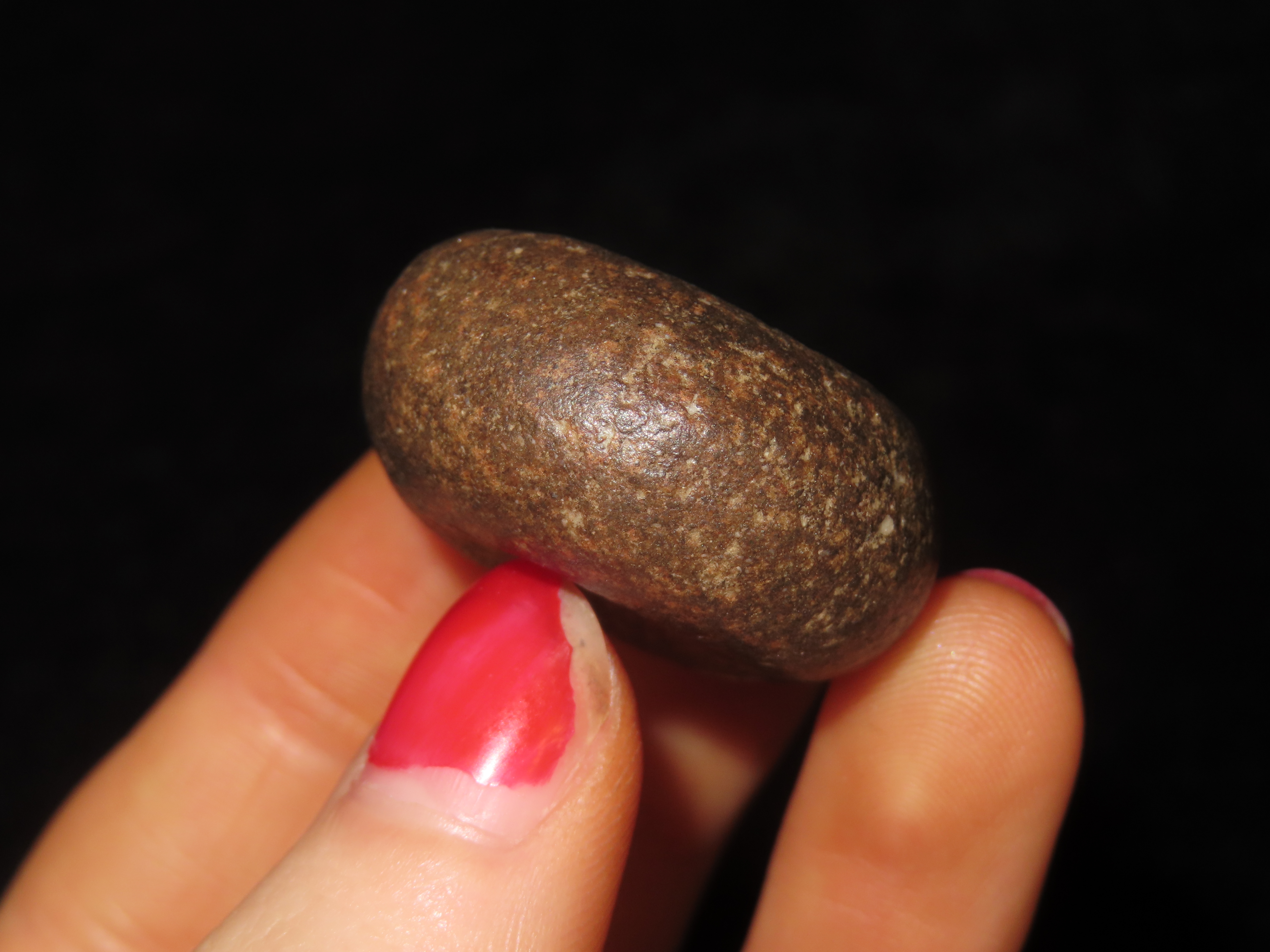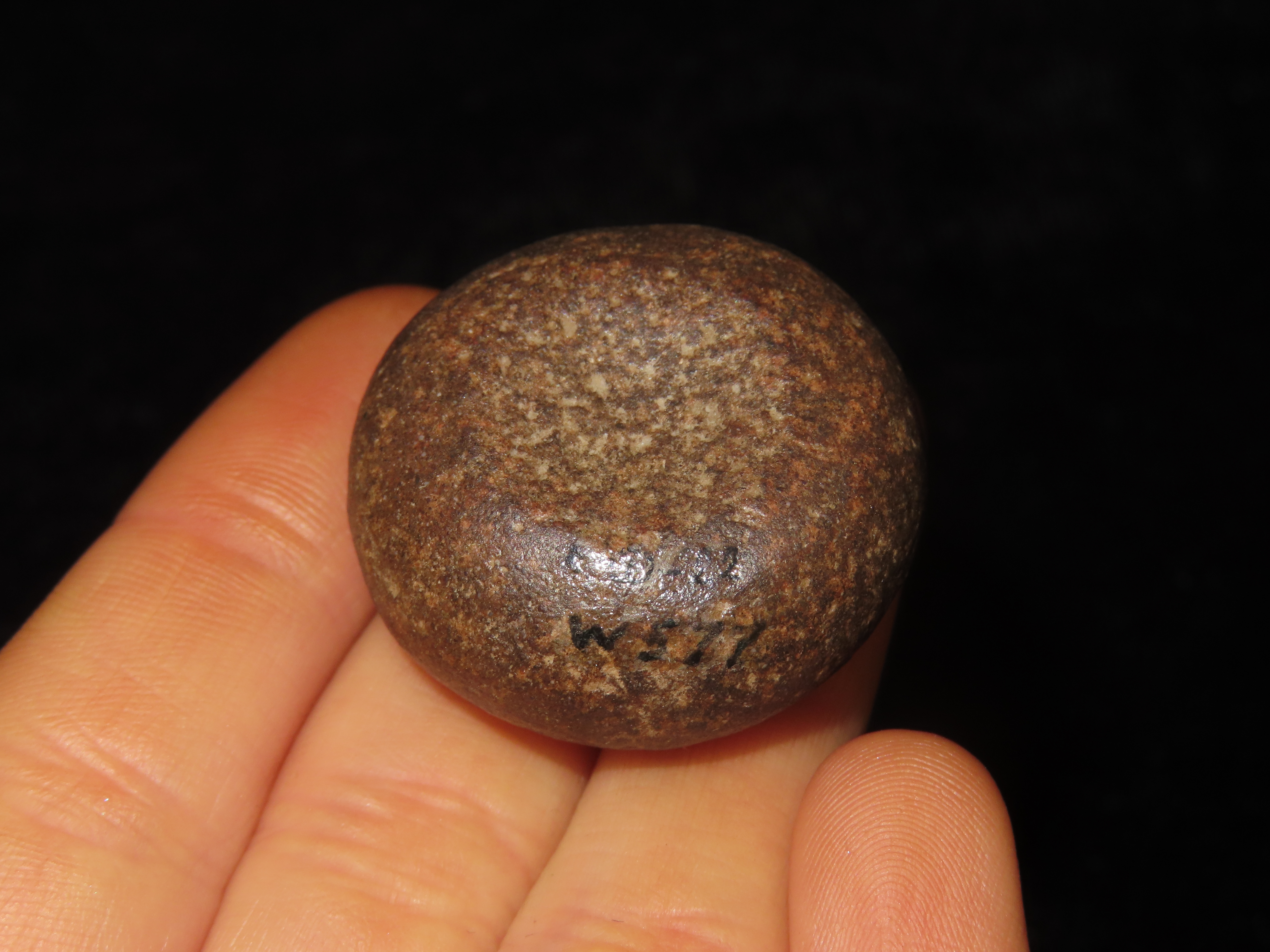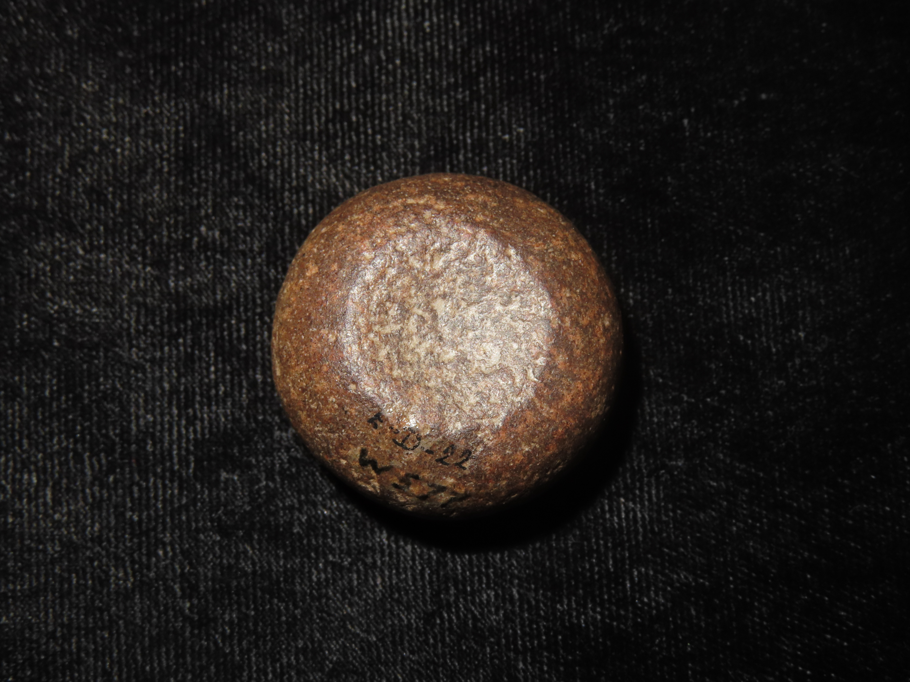 Rare 1 3/16″ Mini Jersey Bluff Discoidal, St. Clair Co. Illinois. Motley COA. This is the smallest Jersey Bluff Discoidal we have ever seen. Nicely Cupped on both sides and well polished out of a beautiful well patinated piece of reddish brown quartzite.