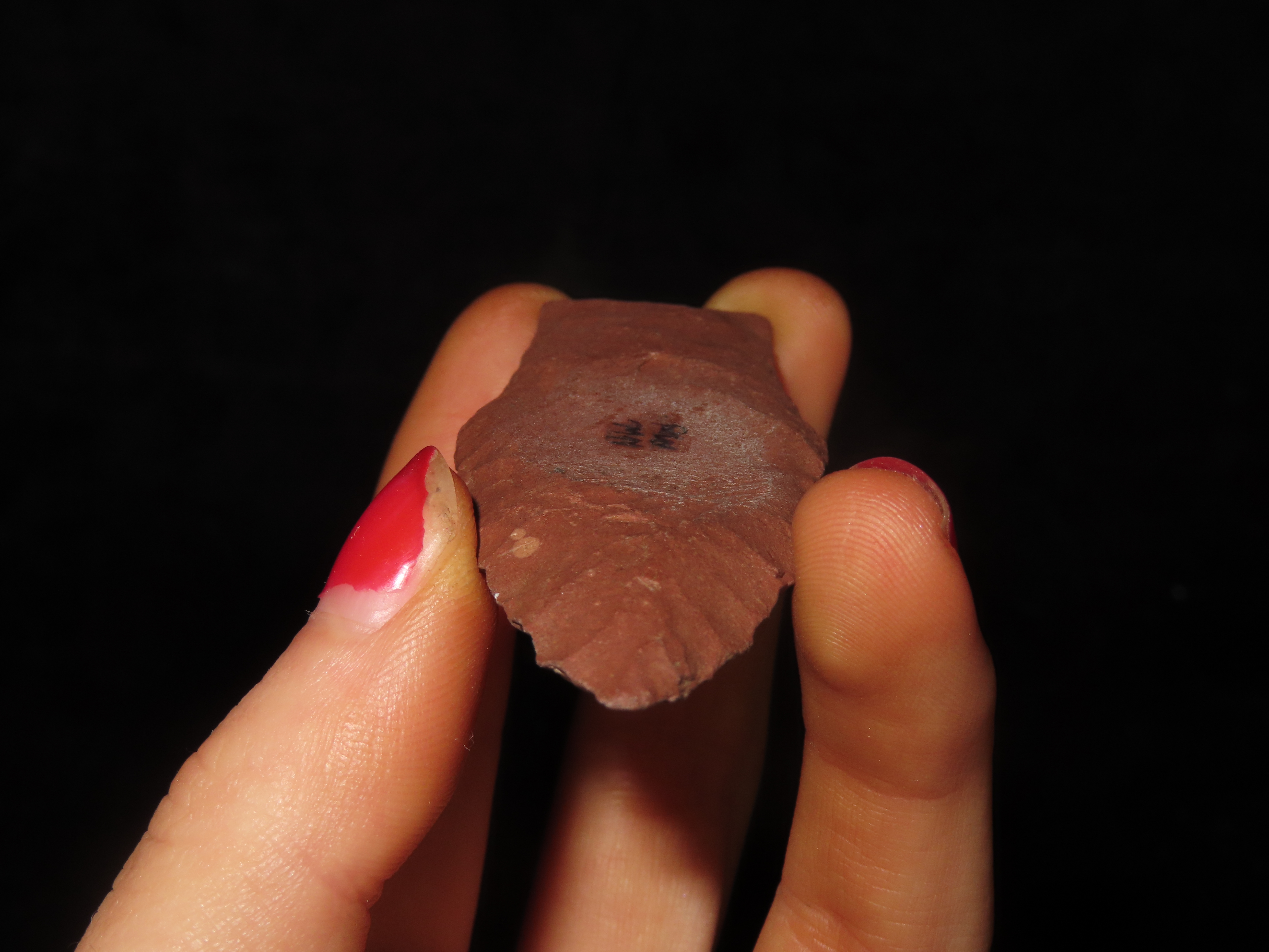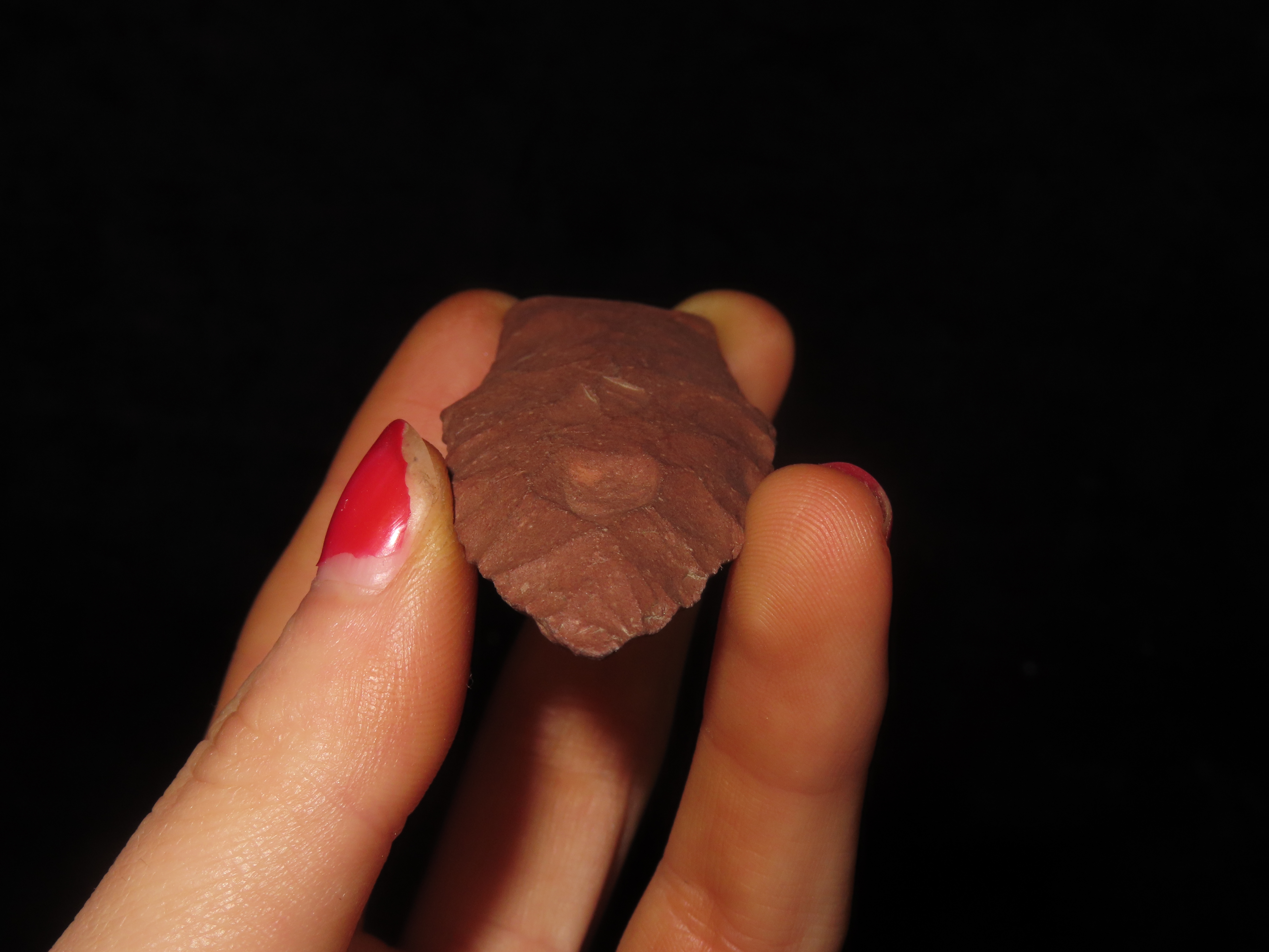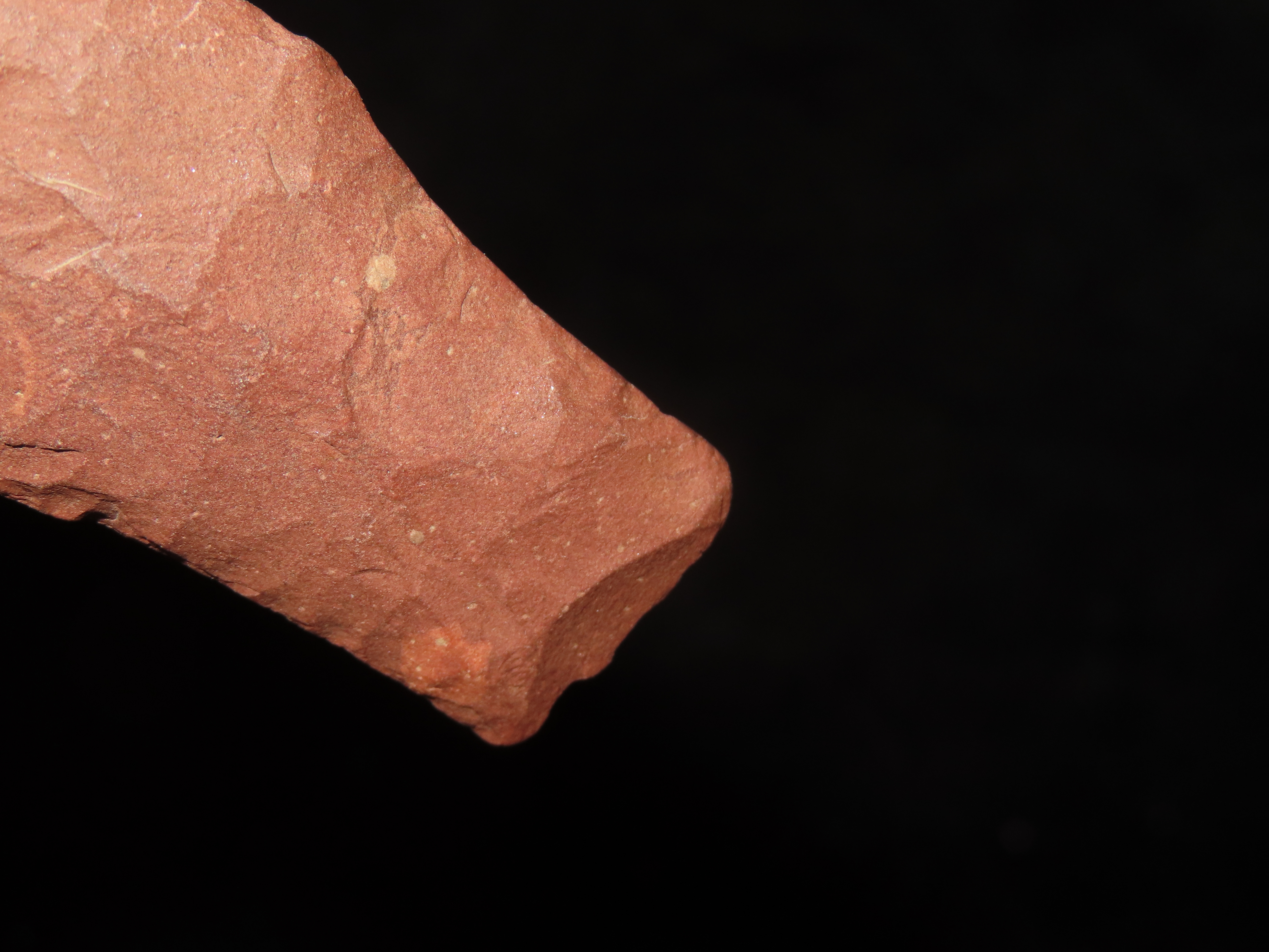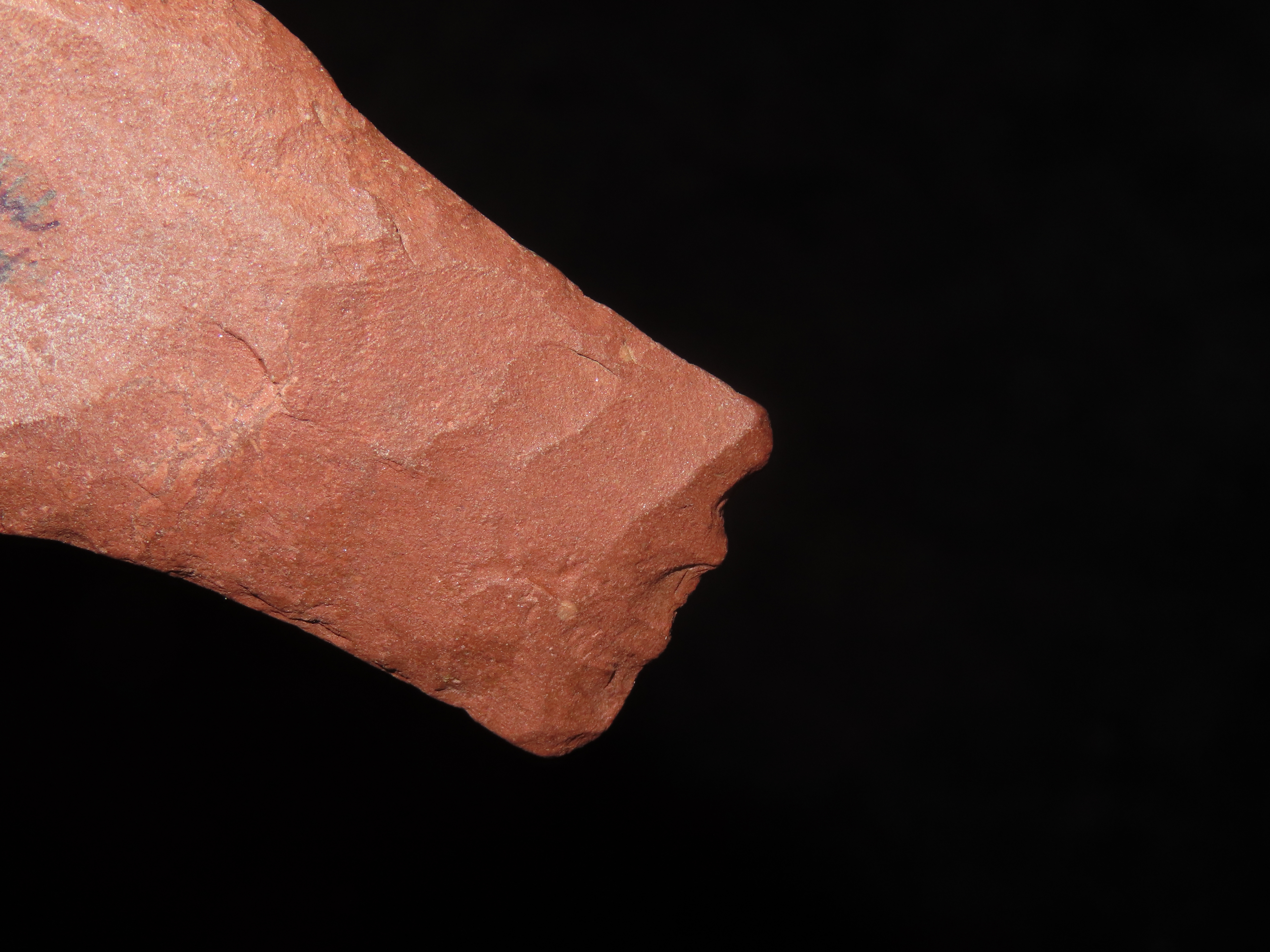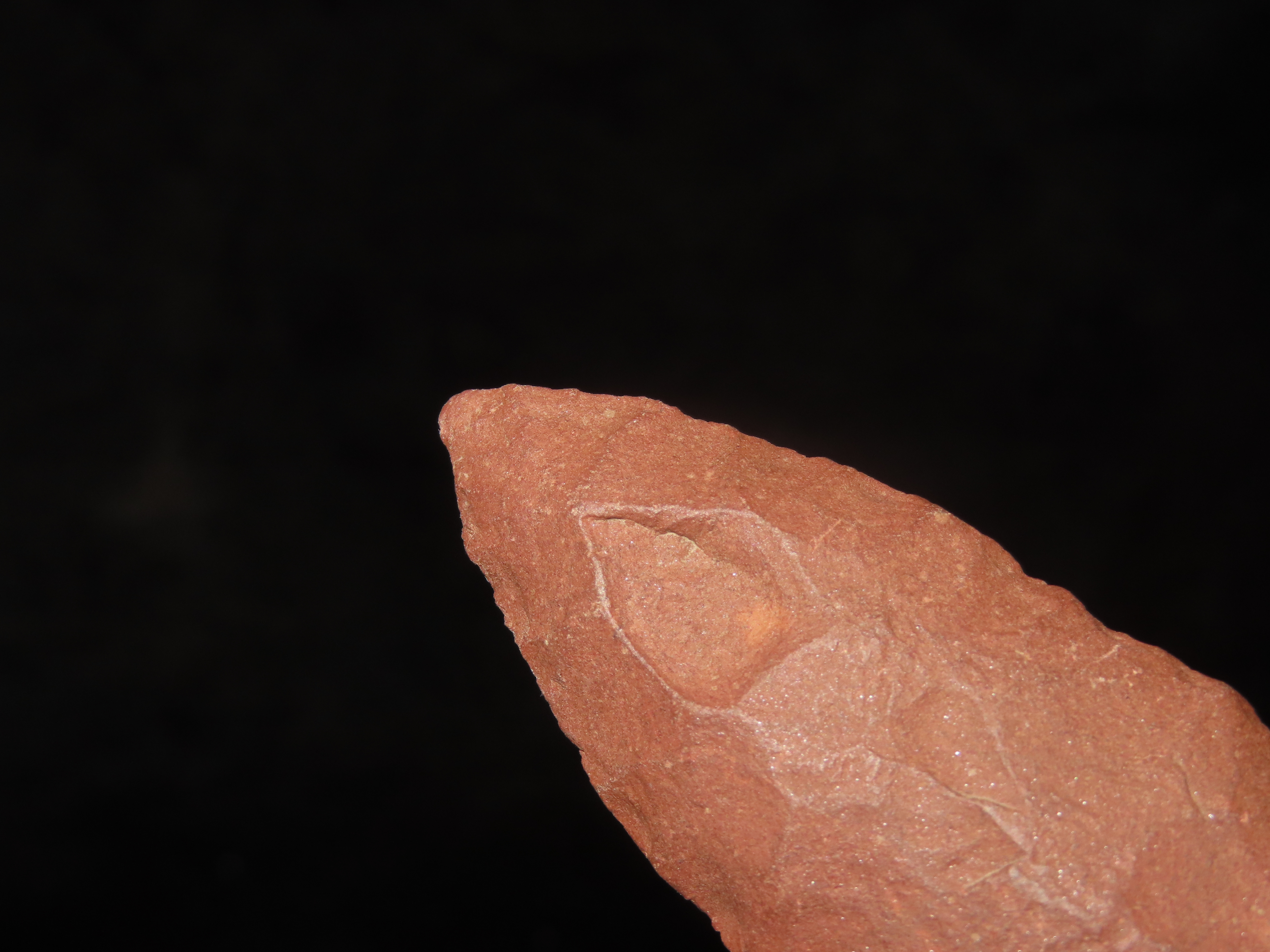 3″ long Hell Gap, Minnesota. Motley COA. Nice large example for the type, made from a beautiful brick red jasper. Nicely Flaked and well patinated.