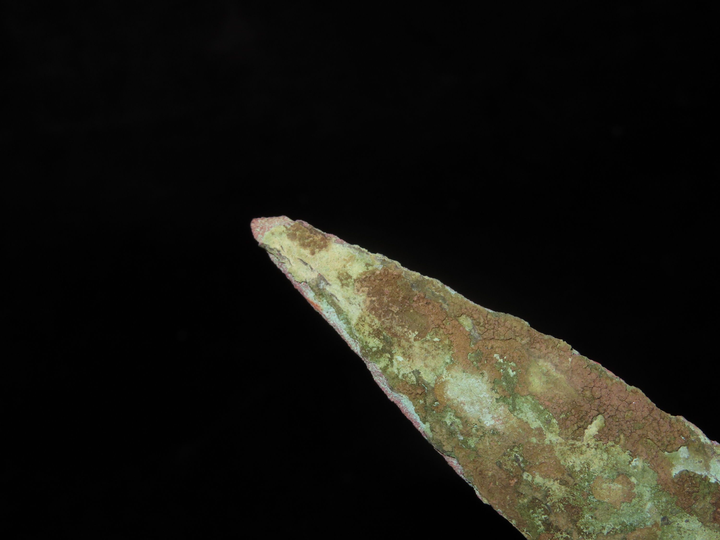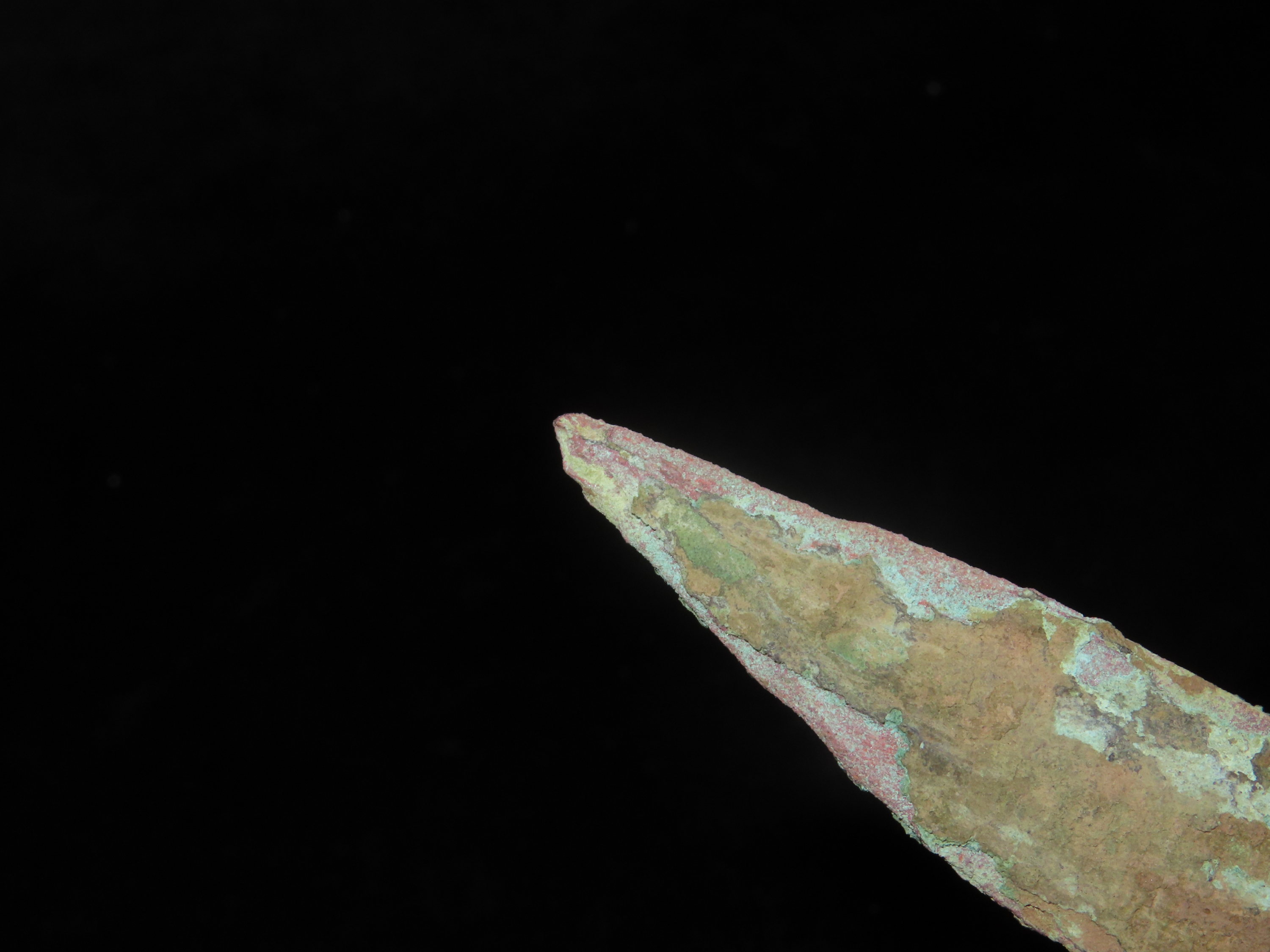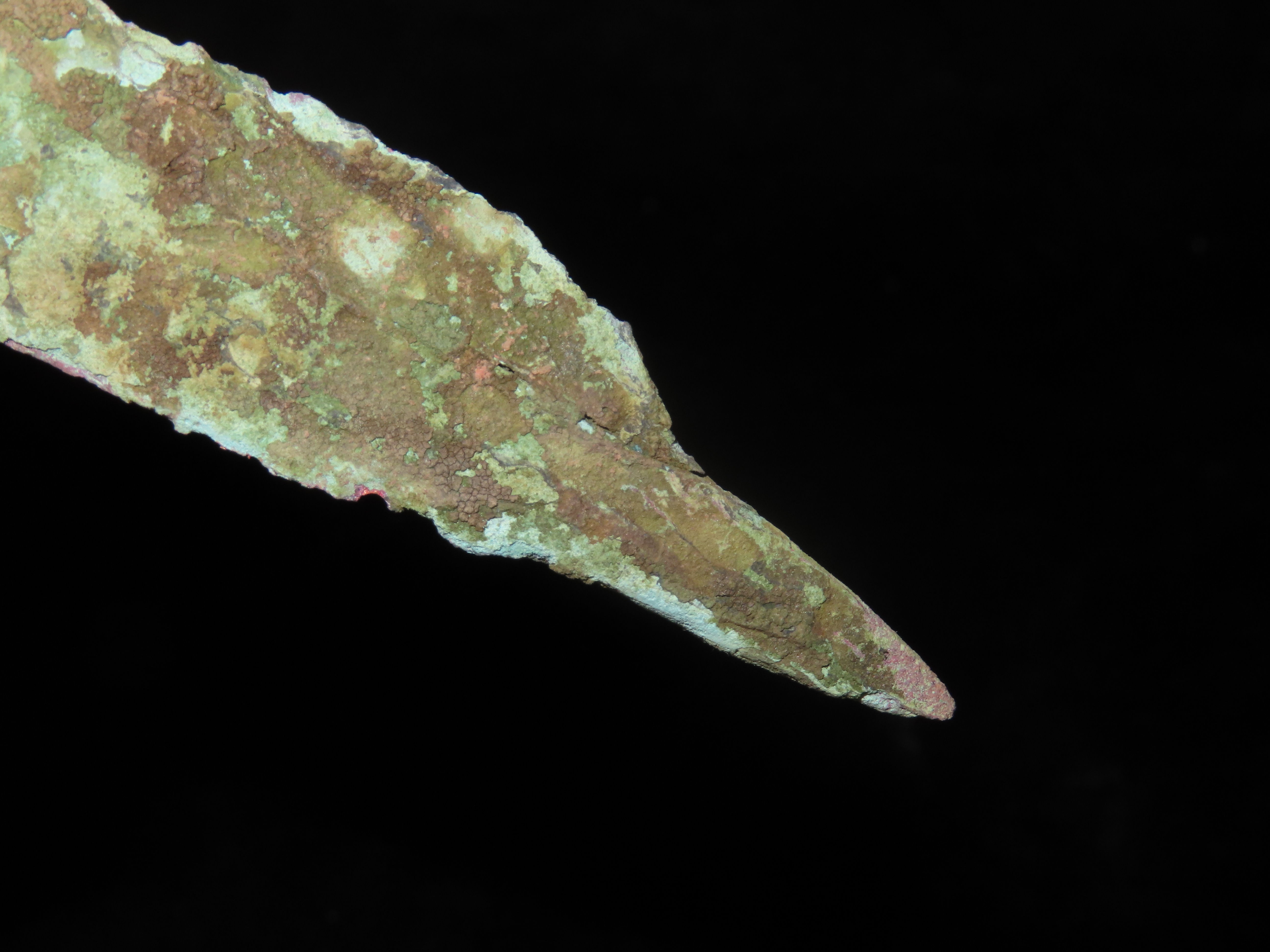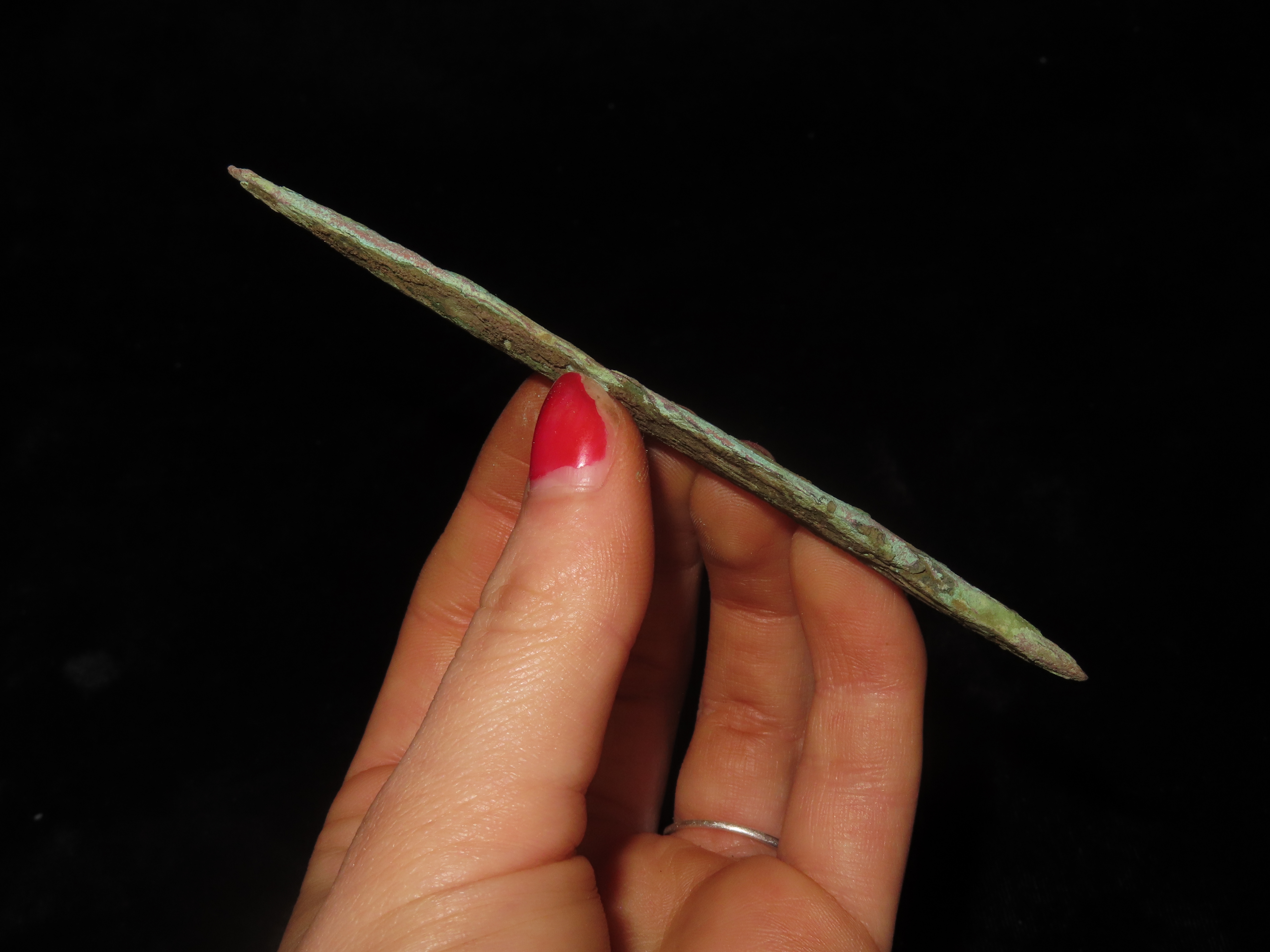 Nice 4 1/2″ OCC Copper Tang Knife / Spear, Wisconsin. Nice large example with Heavy no brainer patina.