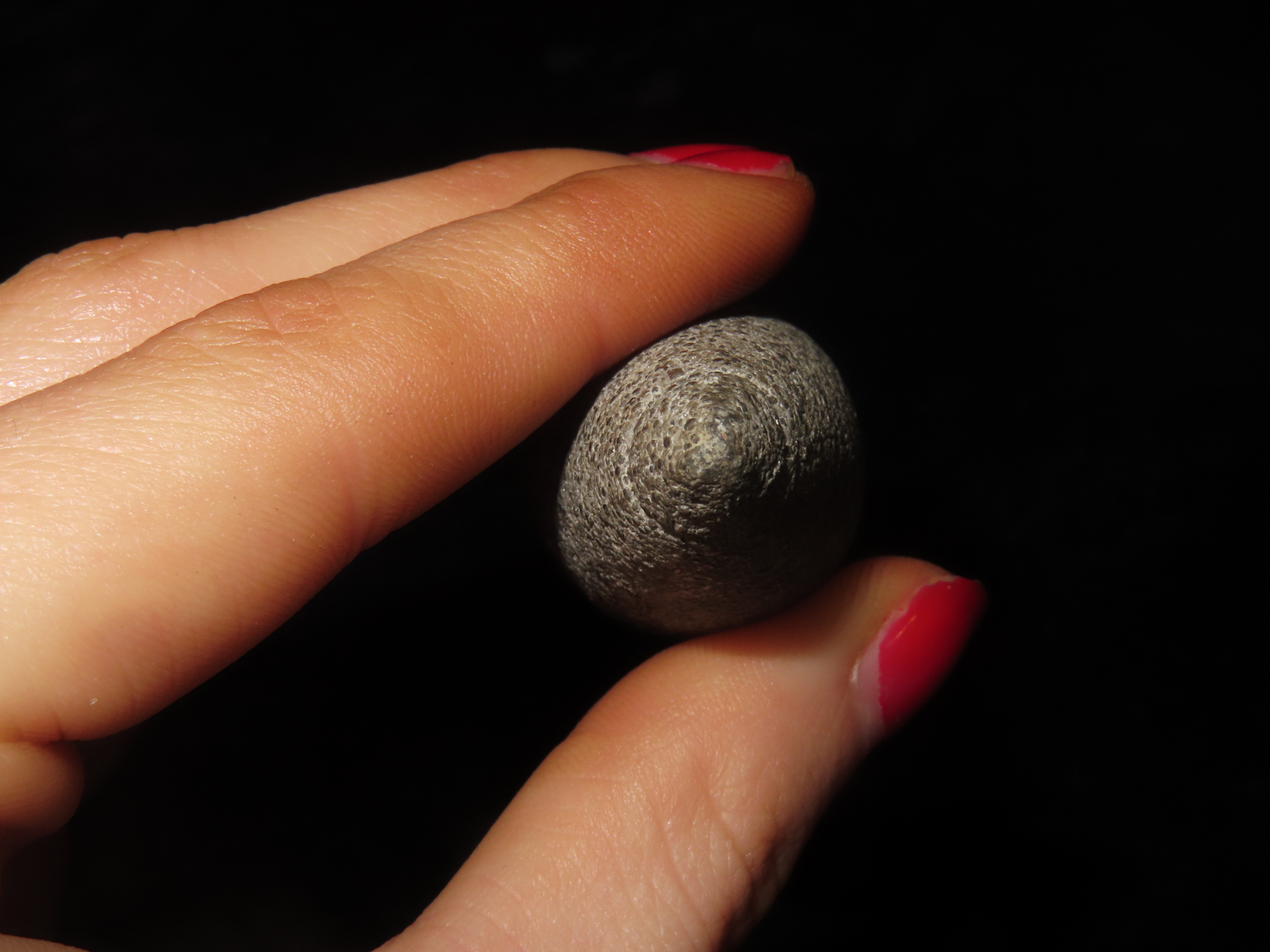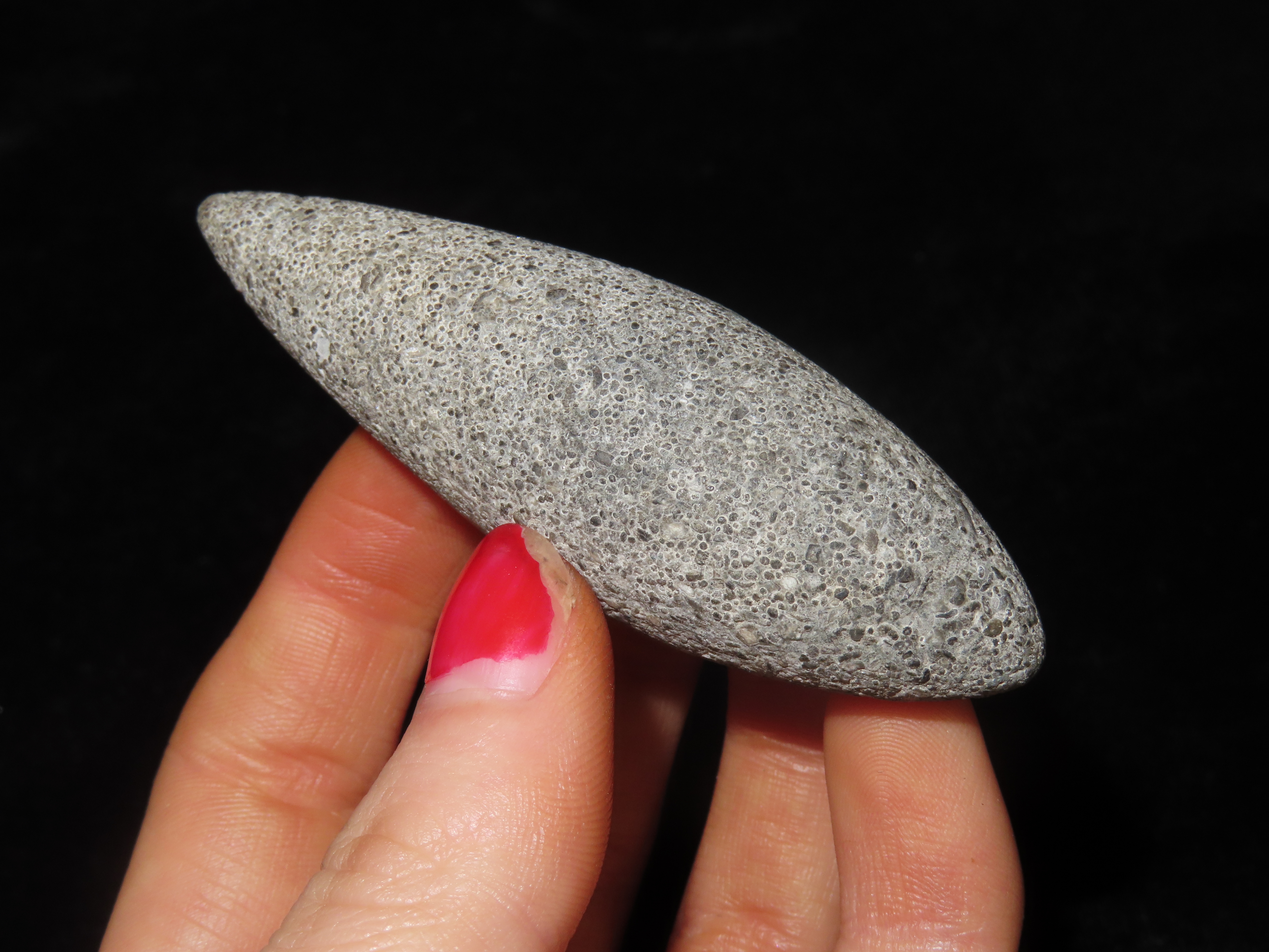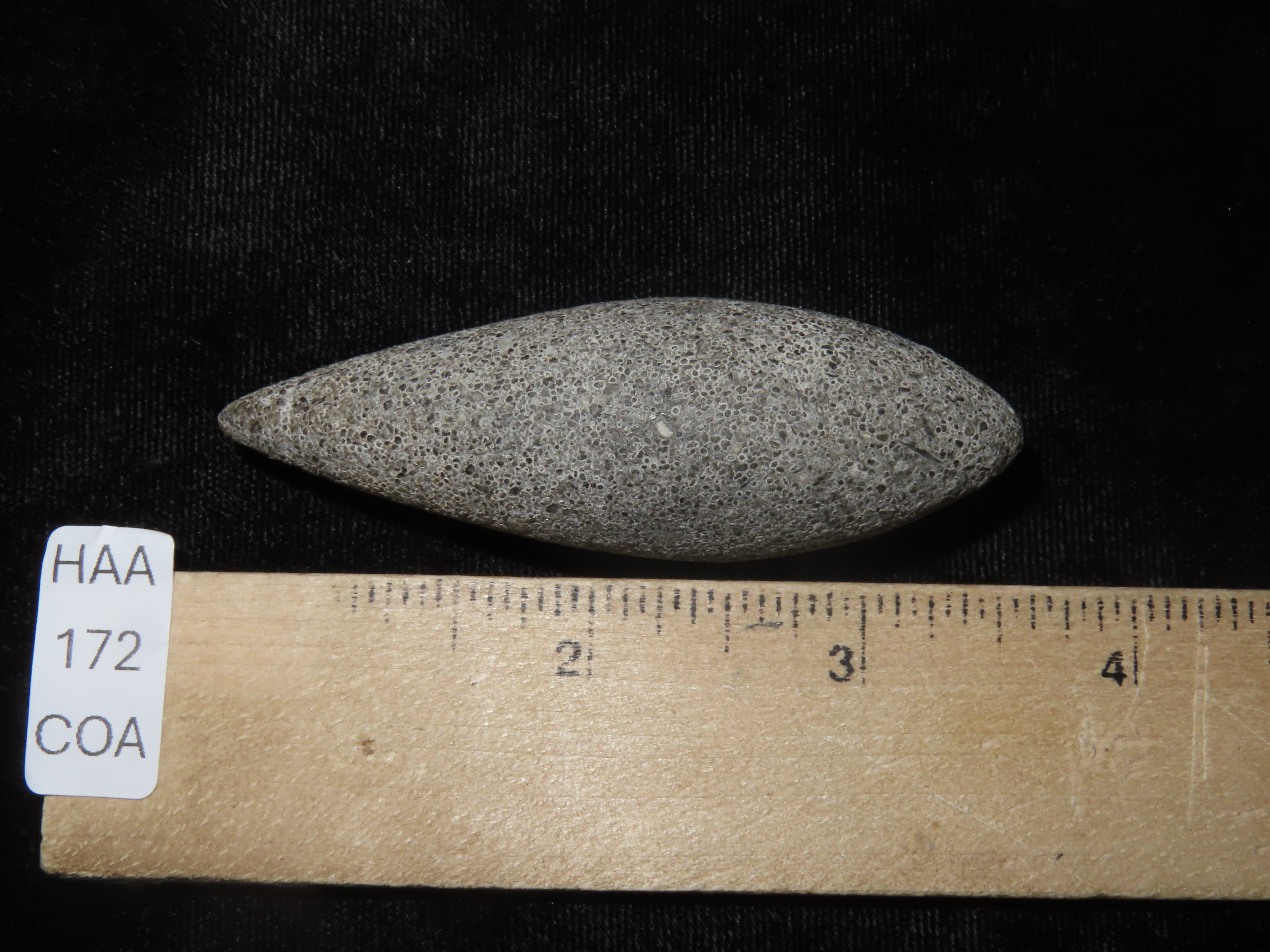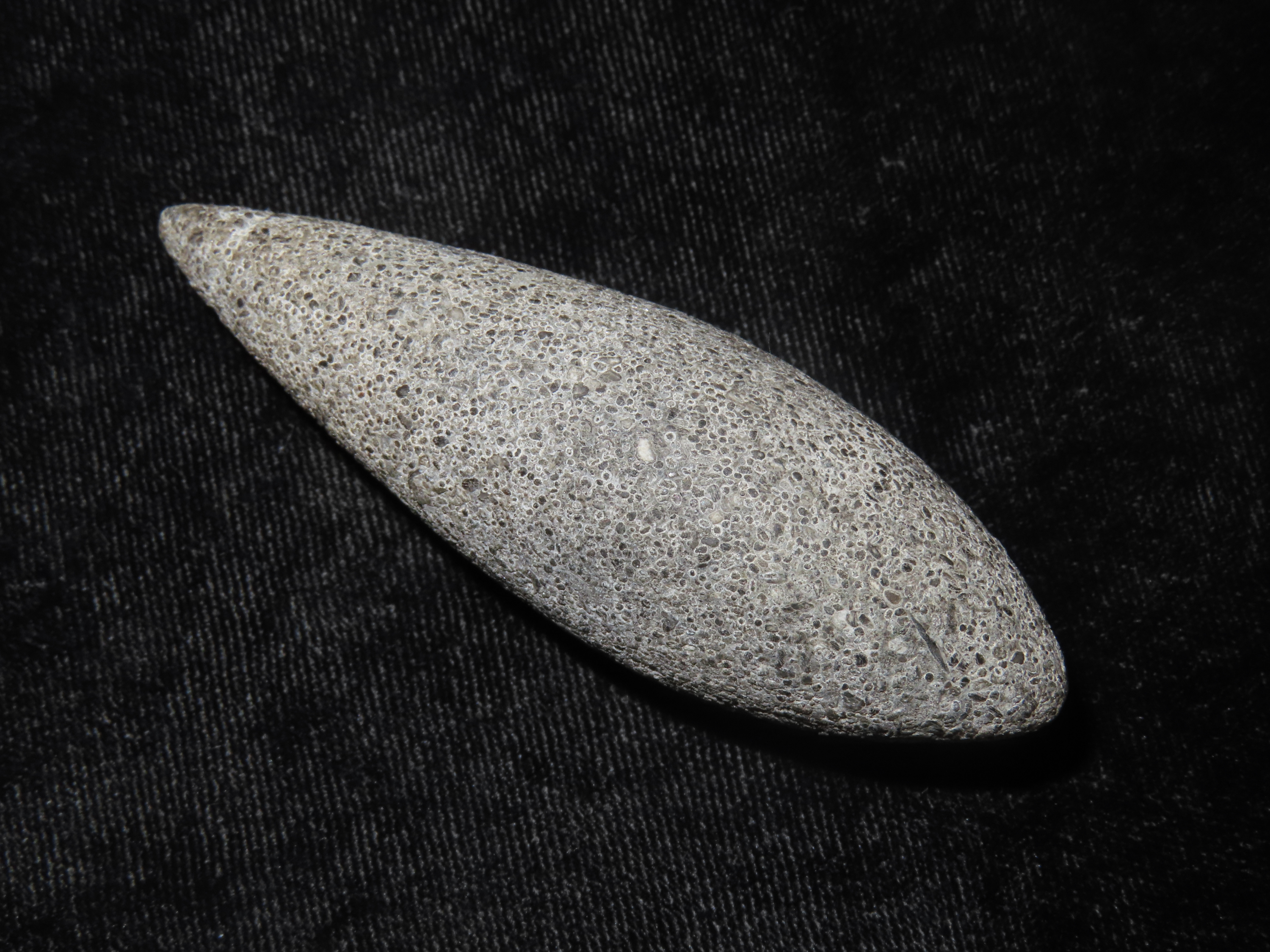 2 7/8″ Grooved Plummet, Adams Co. Illinois. Motley COA. Amazing Fossilferous Material, with 1000’s of tiny compacted fossils. Excellent form with nice polish and a shallow groove around the top. Flawless example!