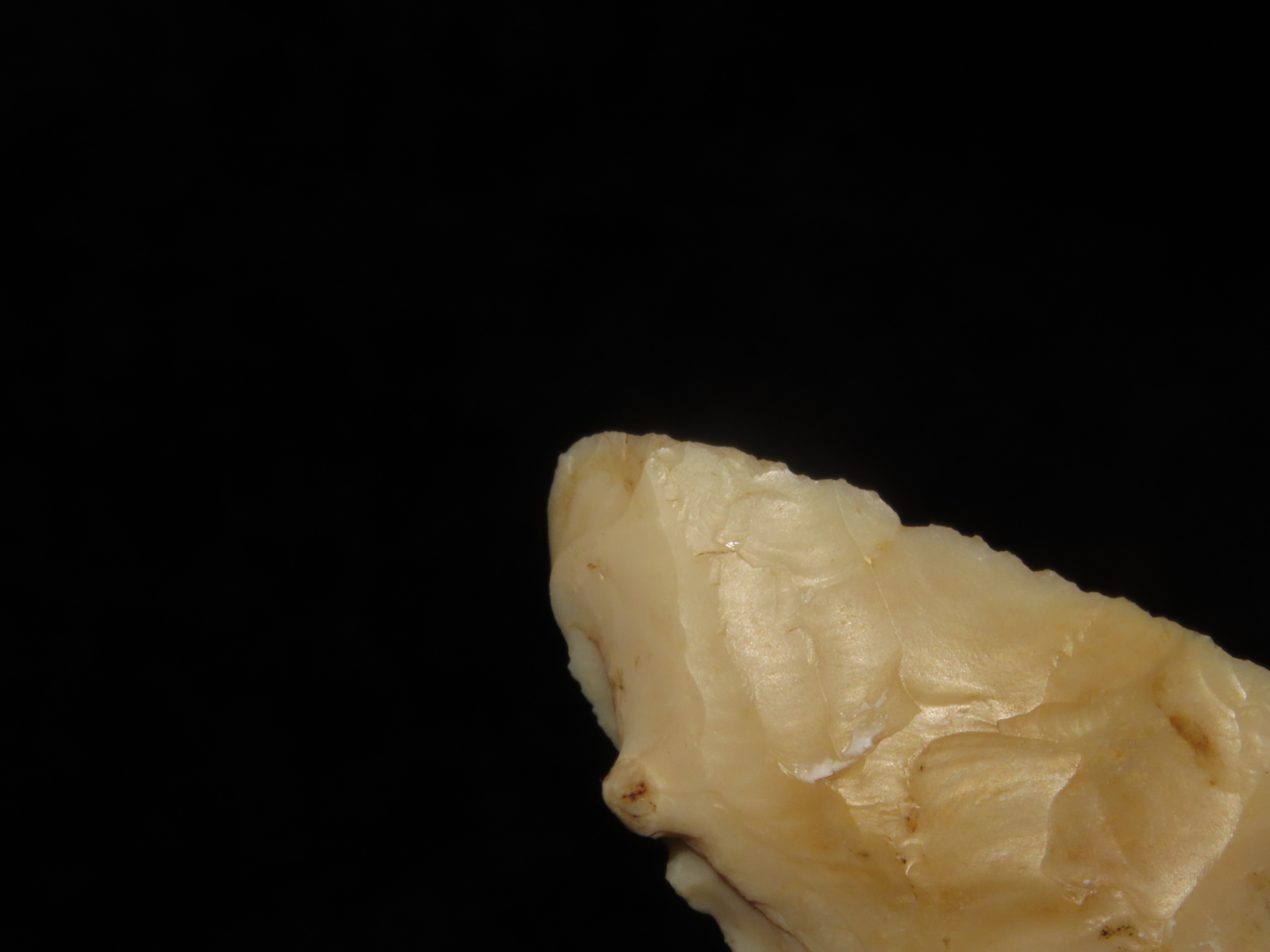 2 1/2″ Kaolin Hardin, Southern Illinois. Highly Translucent example with classic shape and great patina.