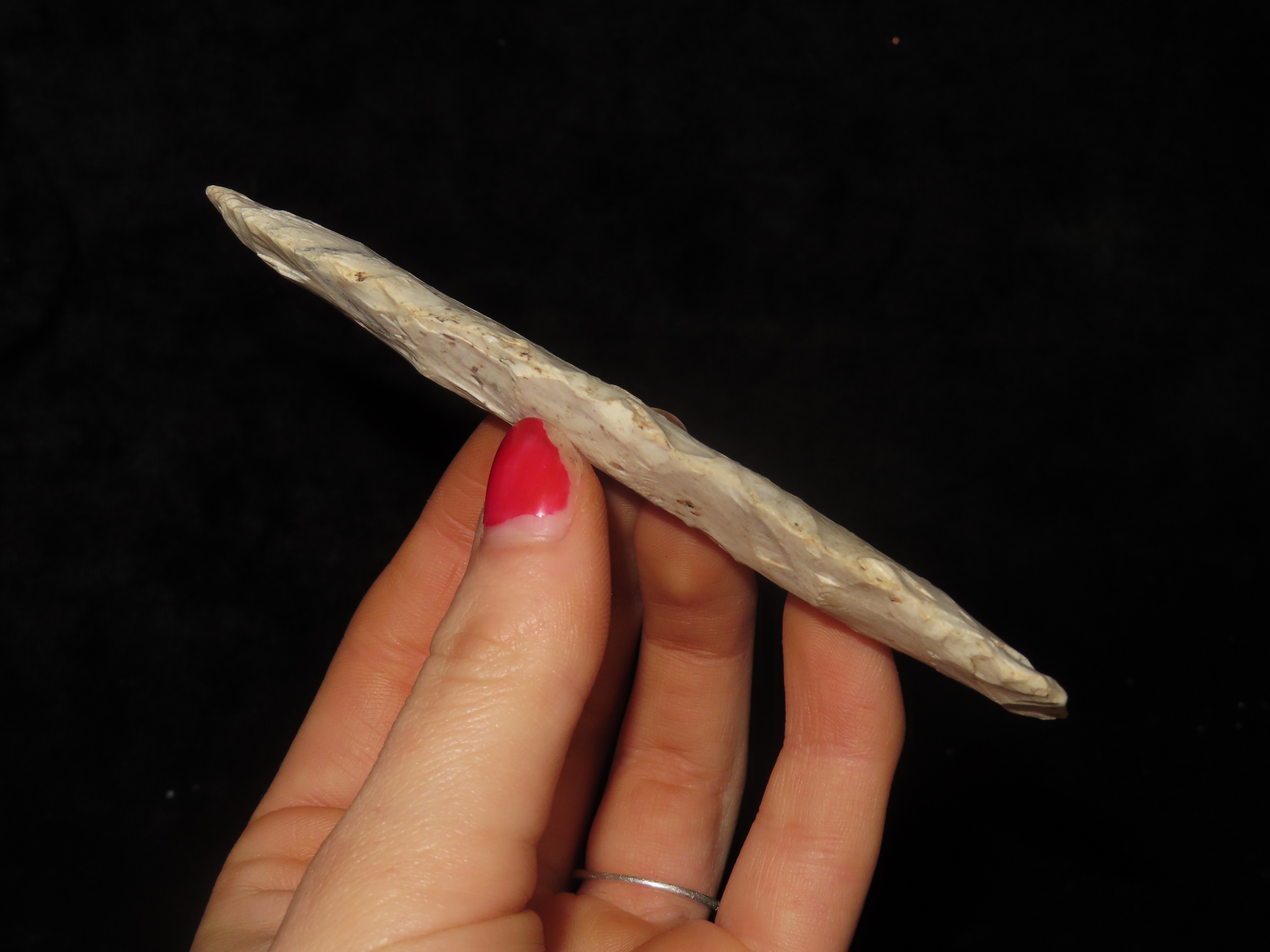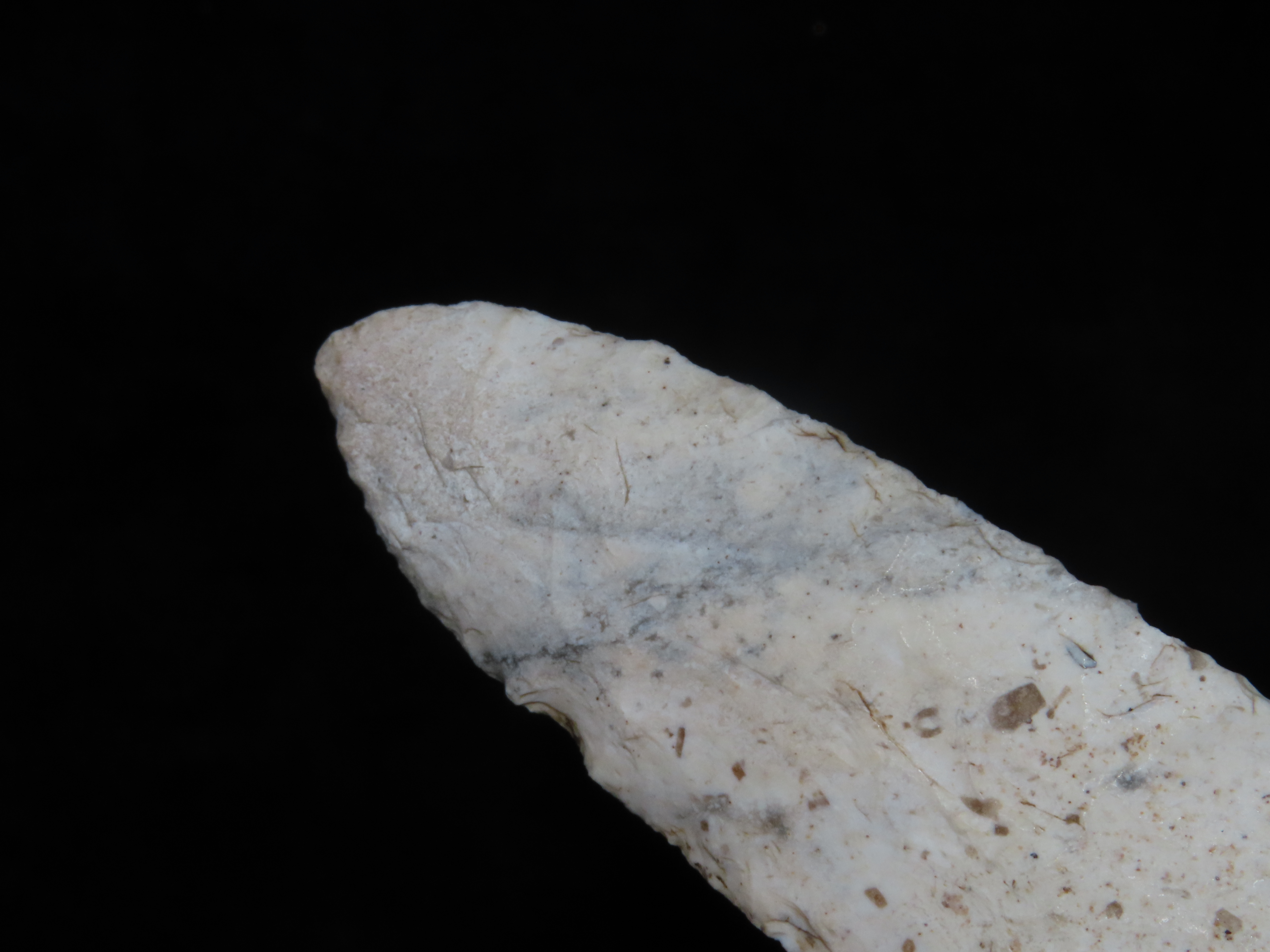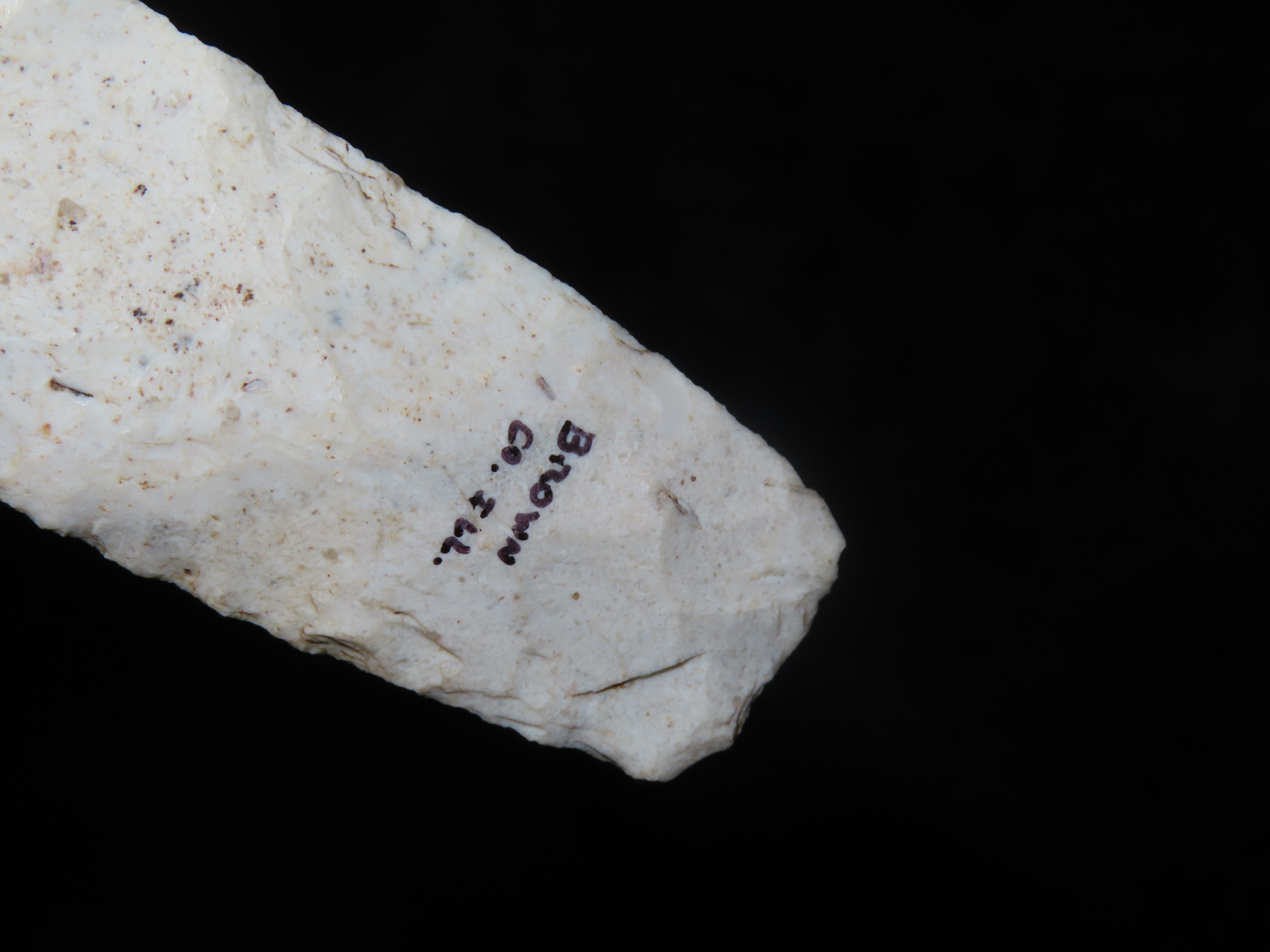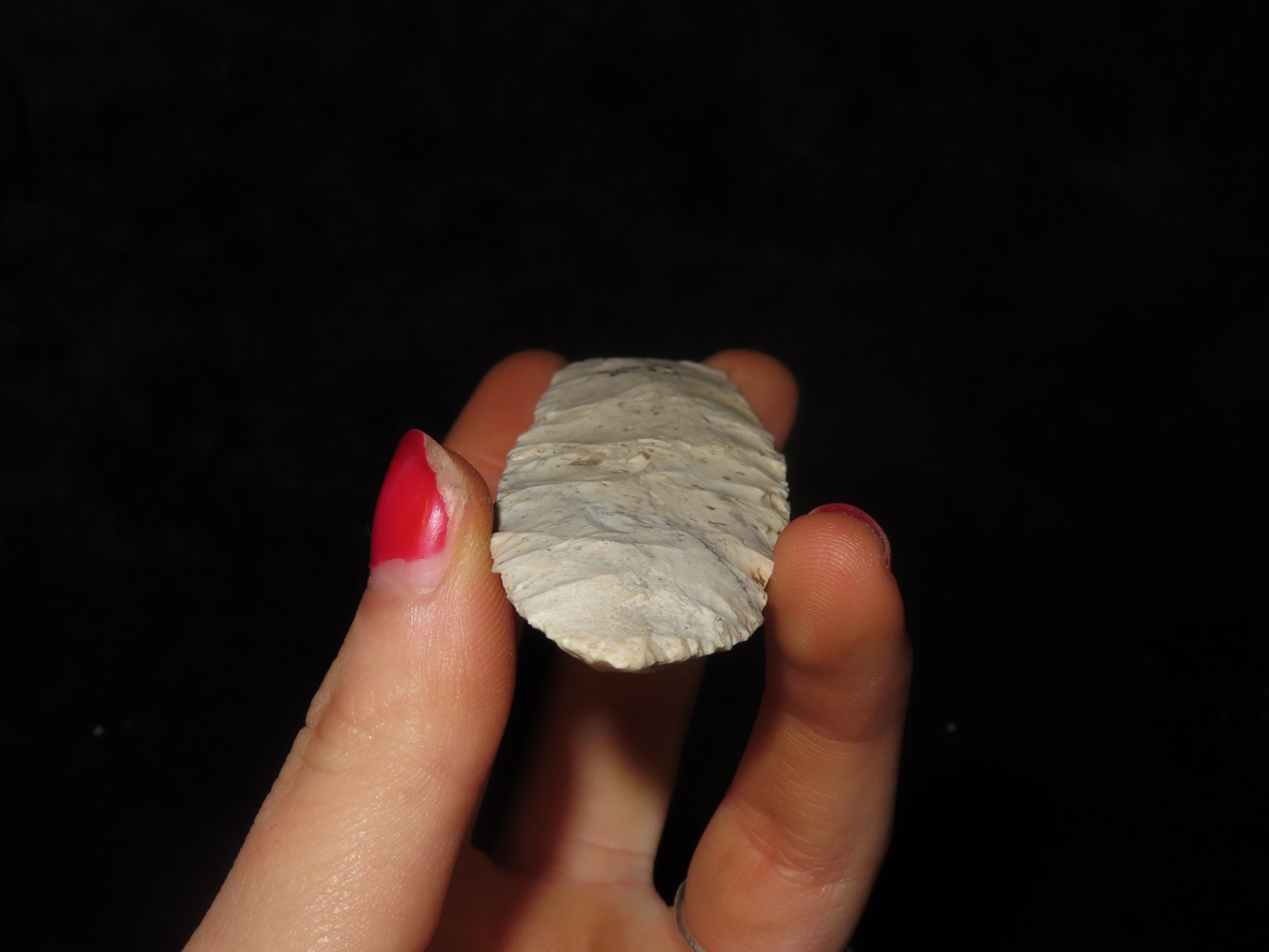 4 7/16″ Nebo Hill, Brown Co. Illinois. Motley COA. Nice examplew ith great flaking and nice deposits.