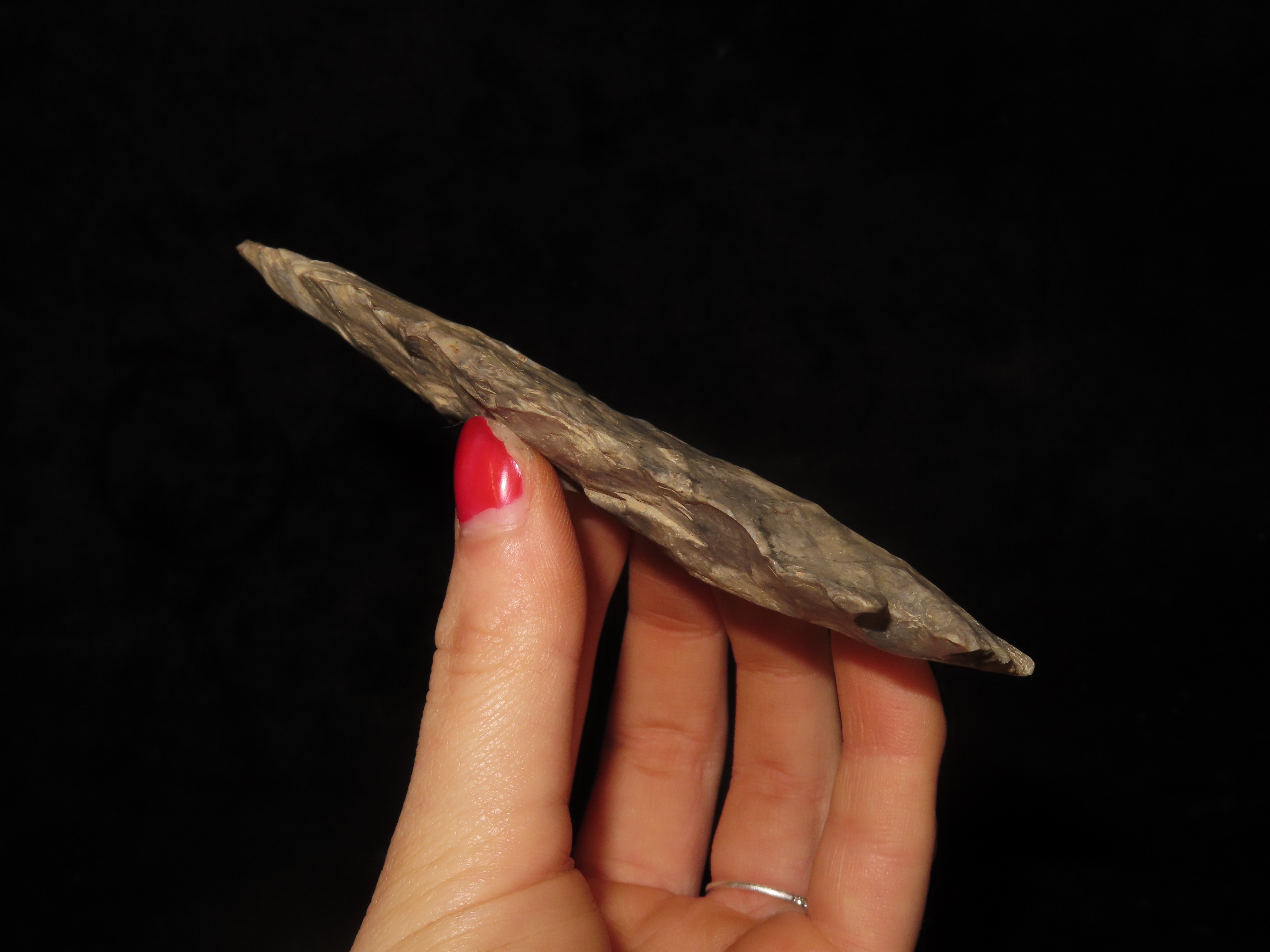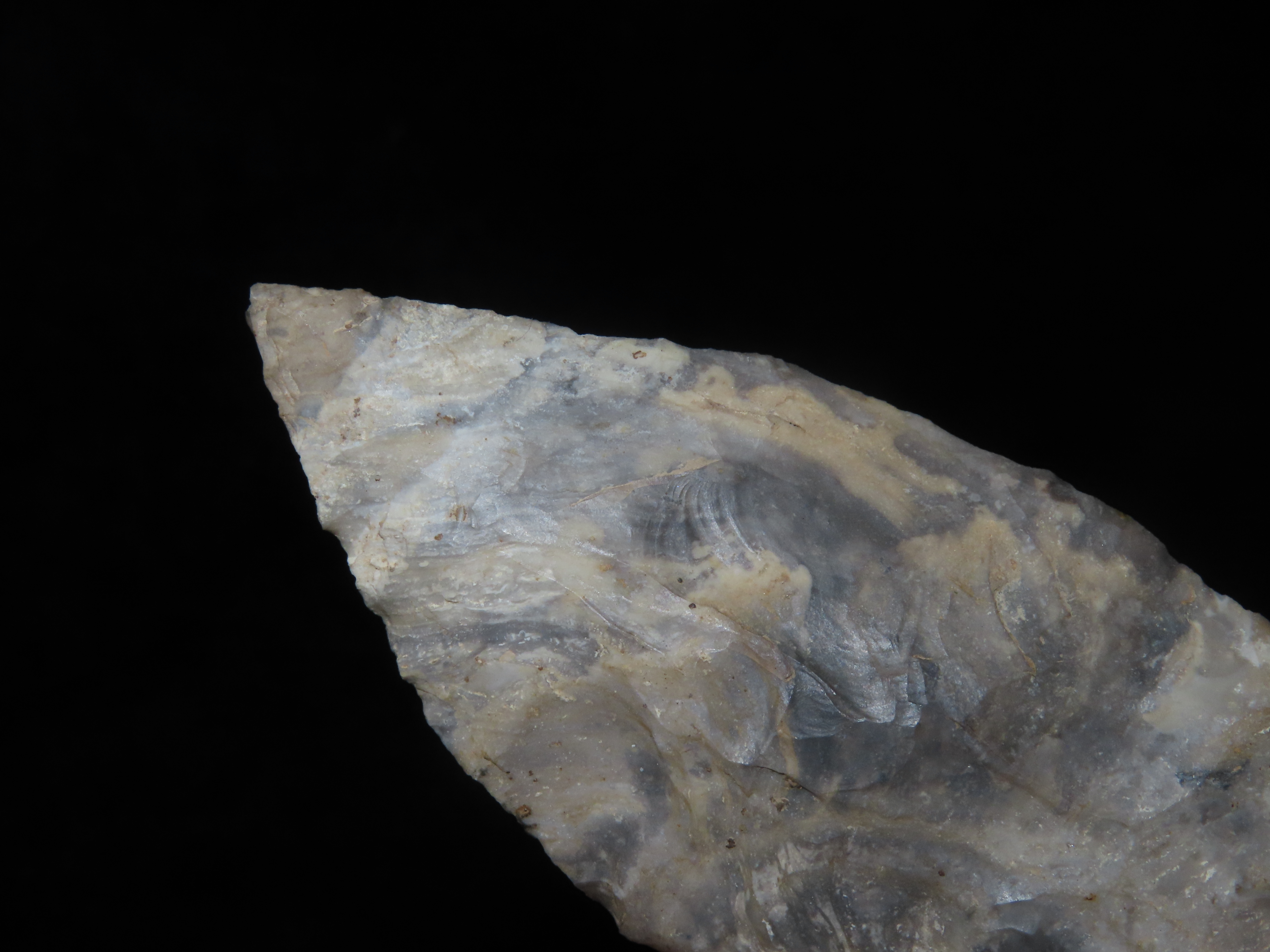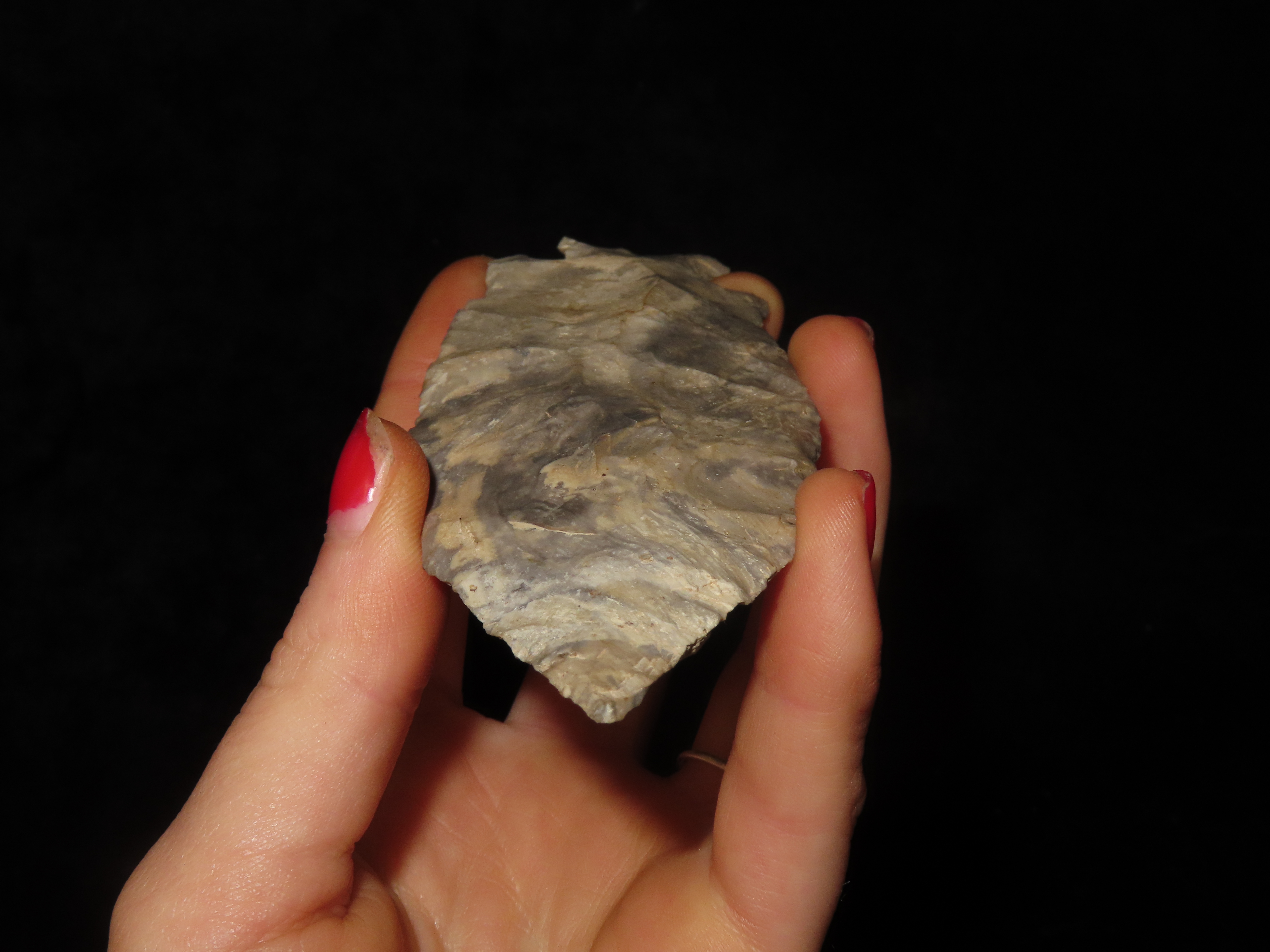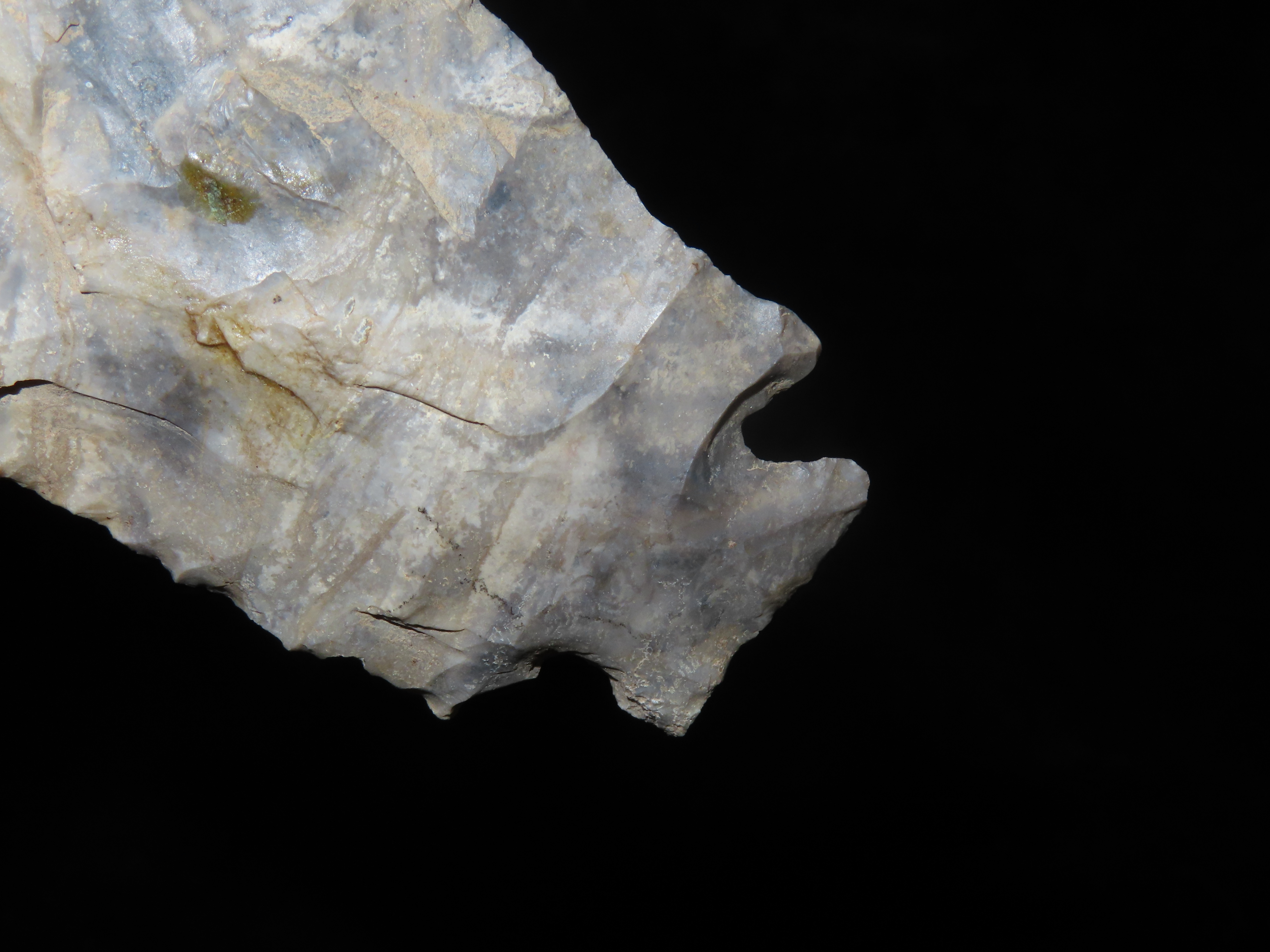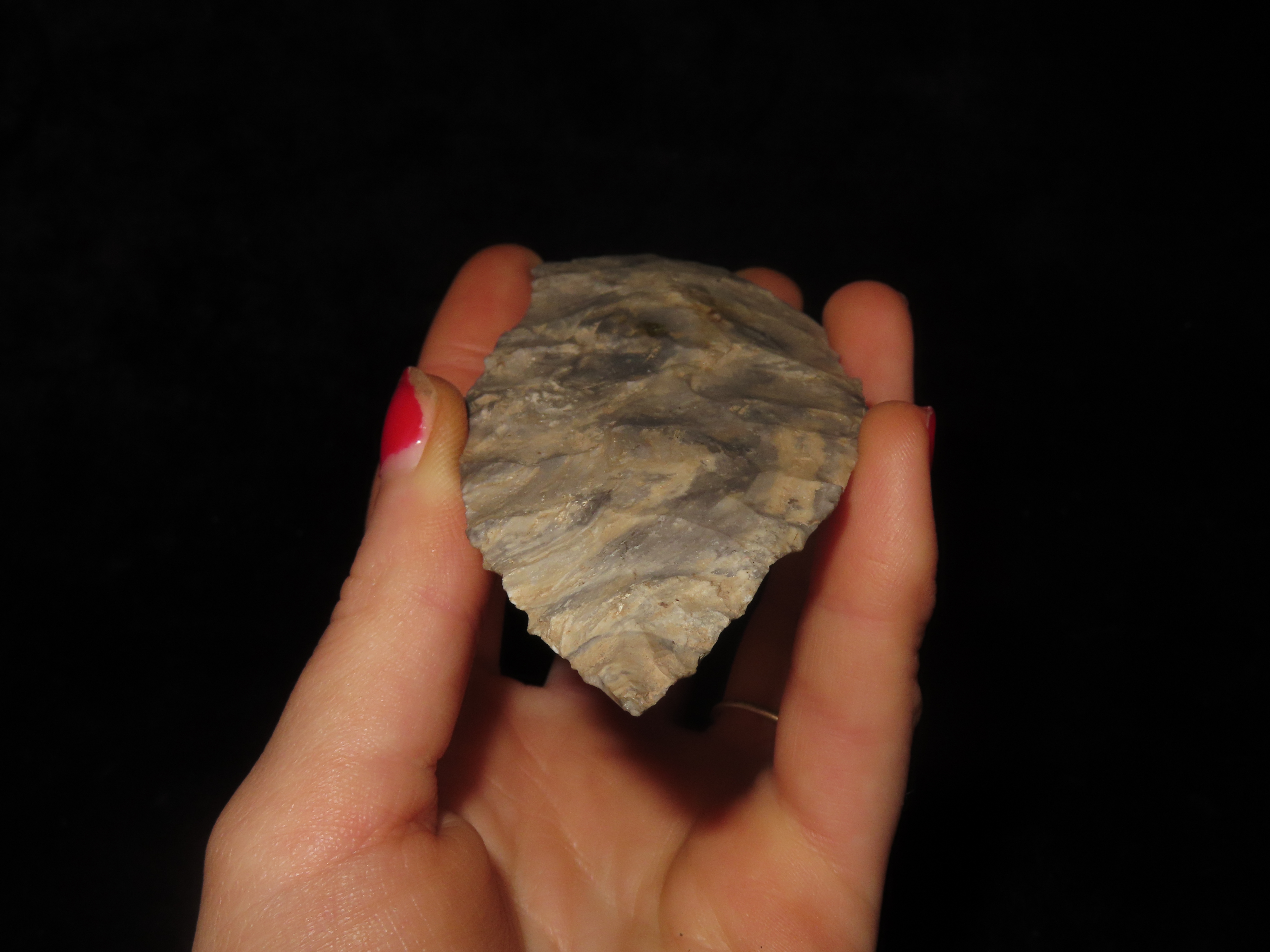 Colorful 4 3/4″ Etley, Cedar Co. Missouri. Motley COA. Made from a Beautiful piece of heavily patianted Mozarkite Chert. Nice size & Great Color!