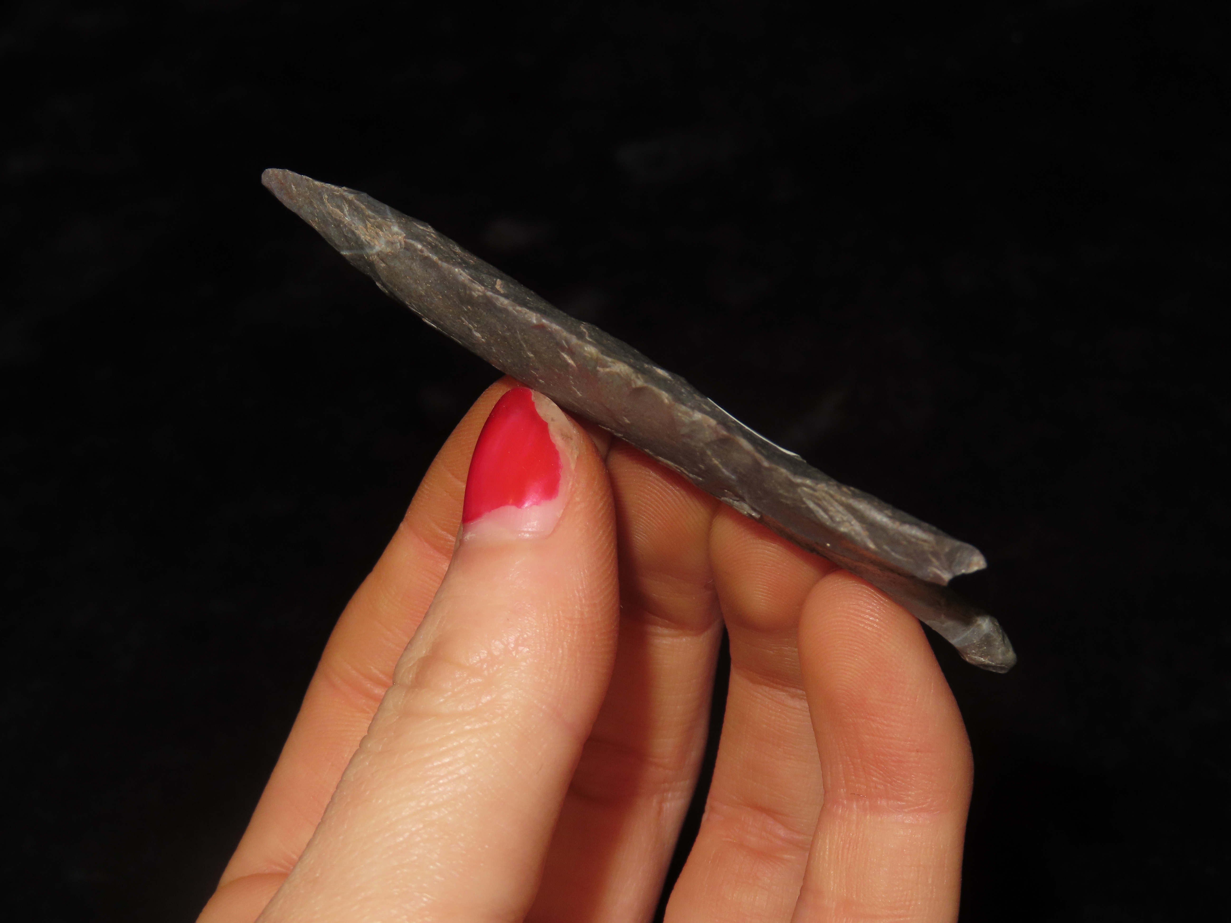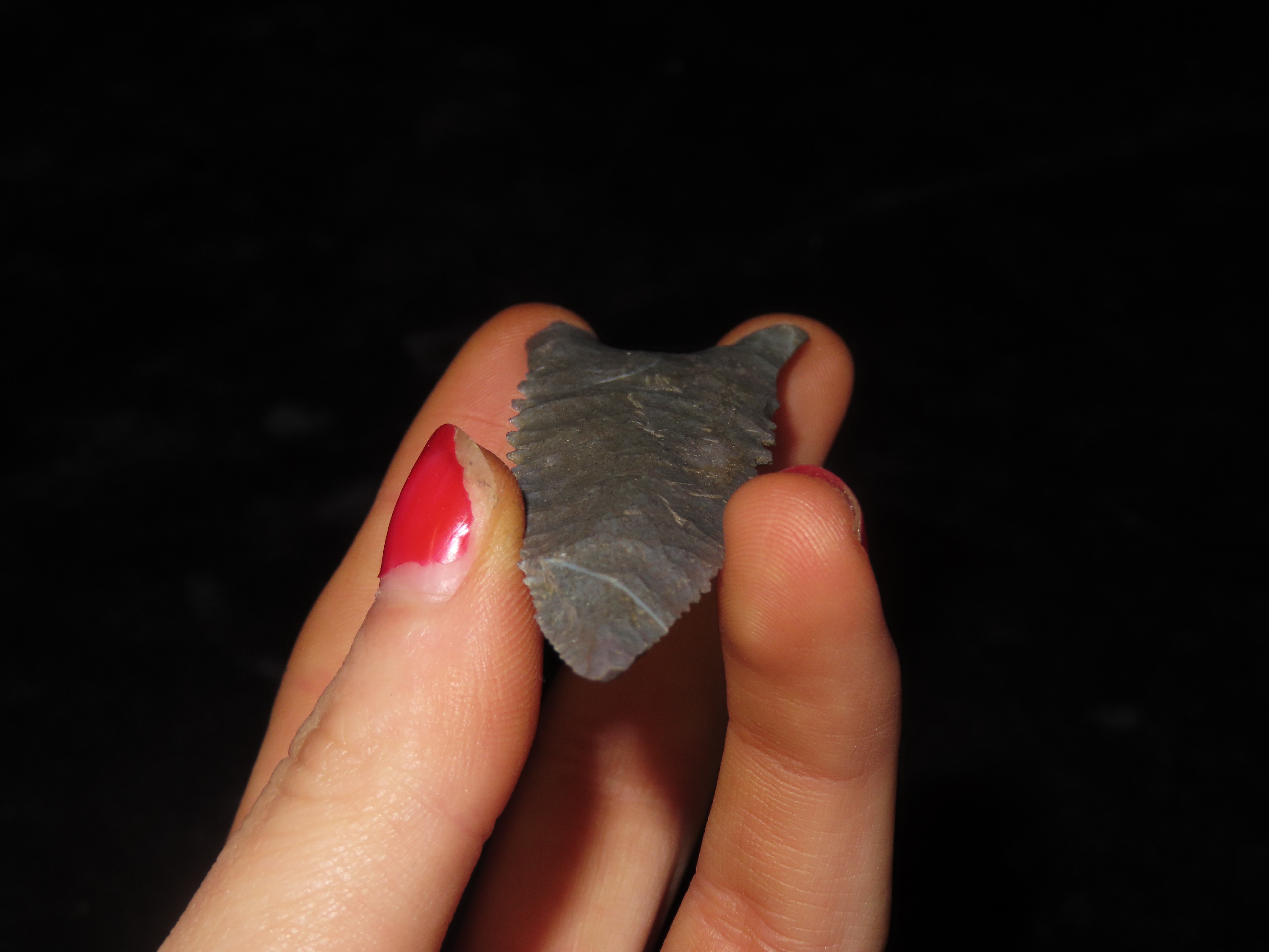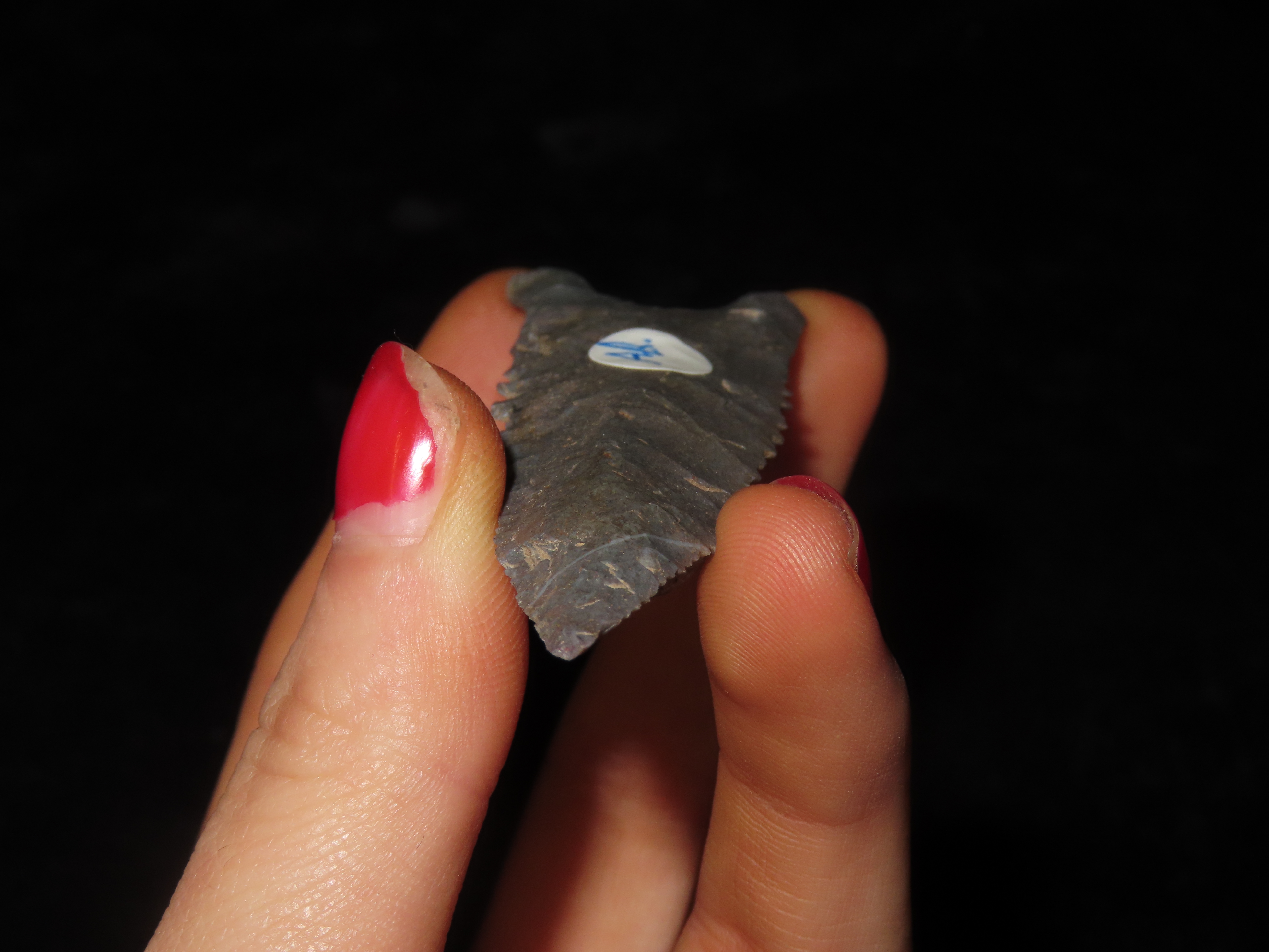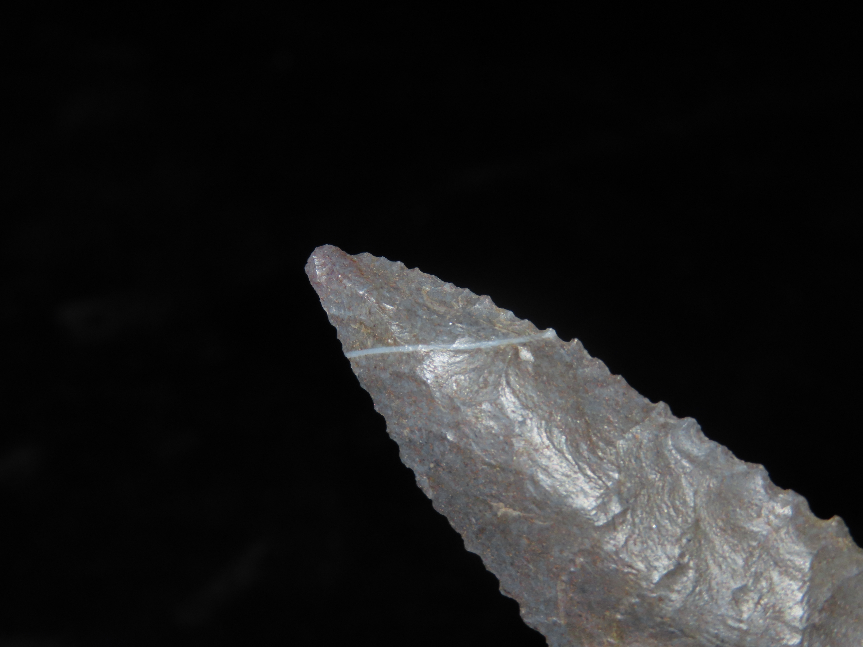 3 1/16″ Serrated Pitkin Chert Dalton, Arkansas. Motley COA. Amazing serrations, nice classic form, thin and well flaked. Ex Joey Ellis Collection.