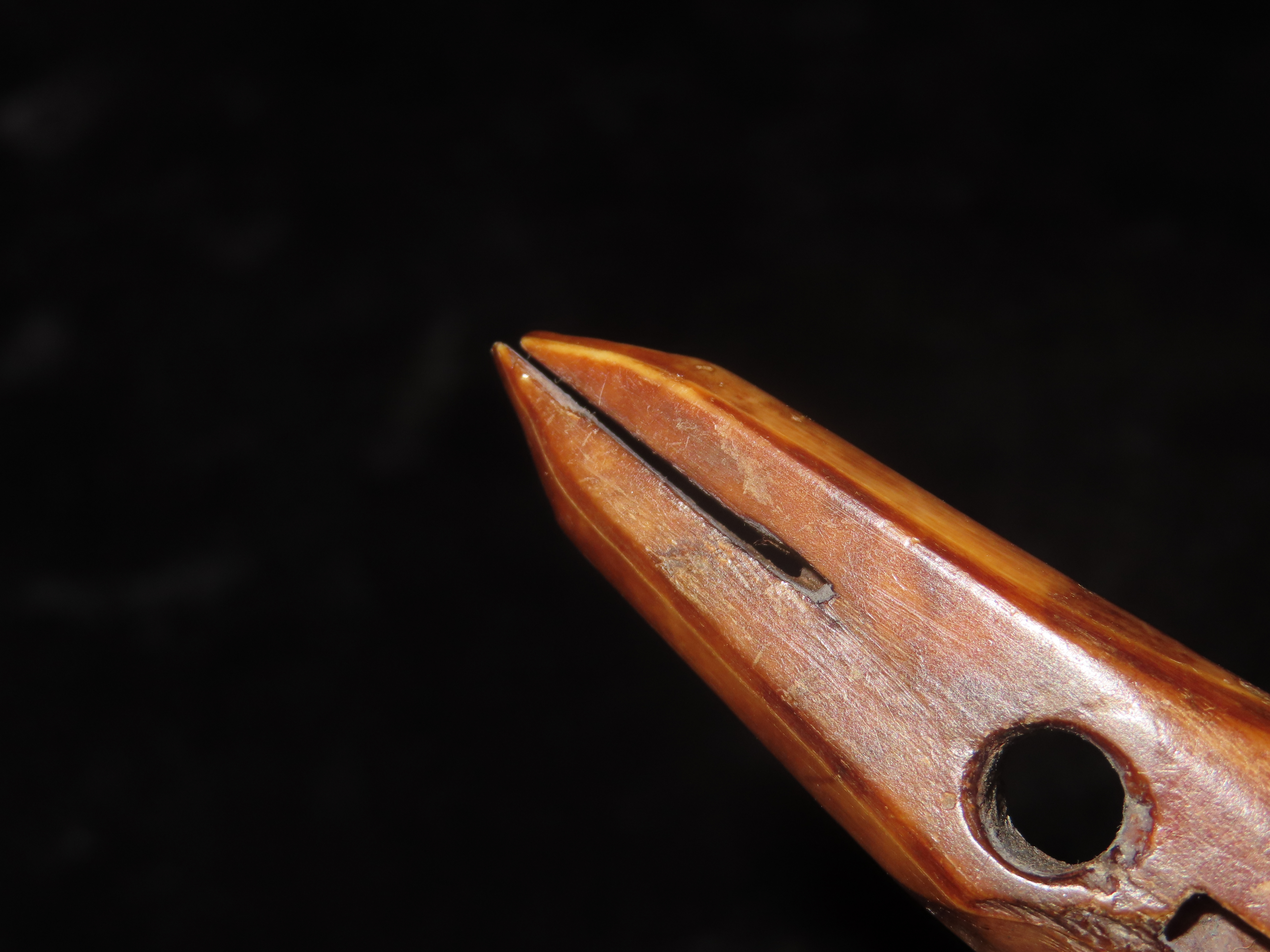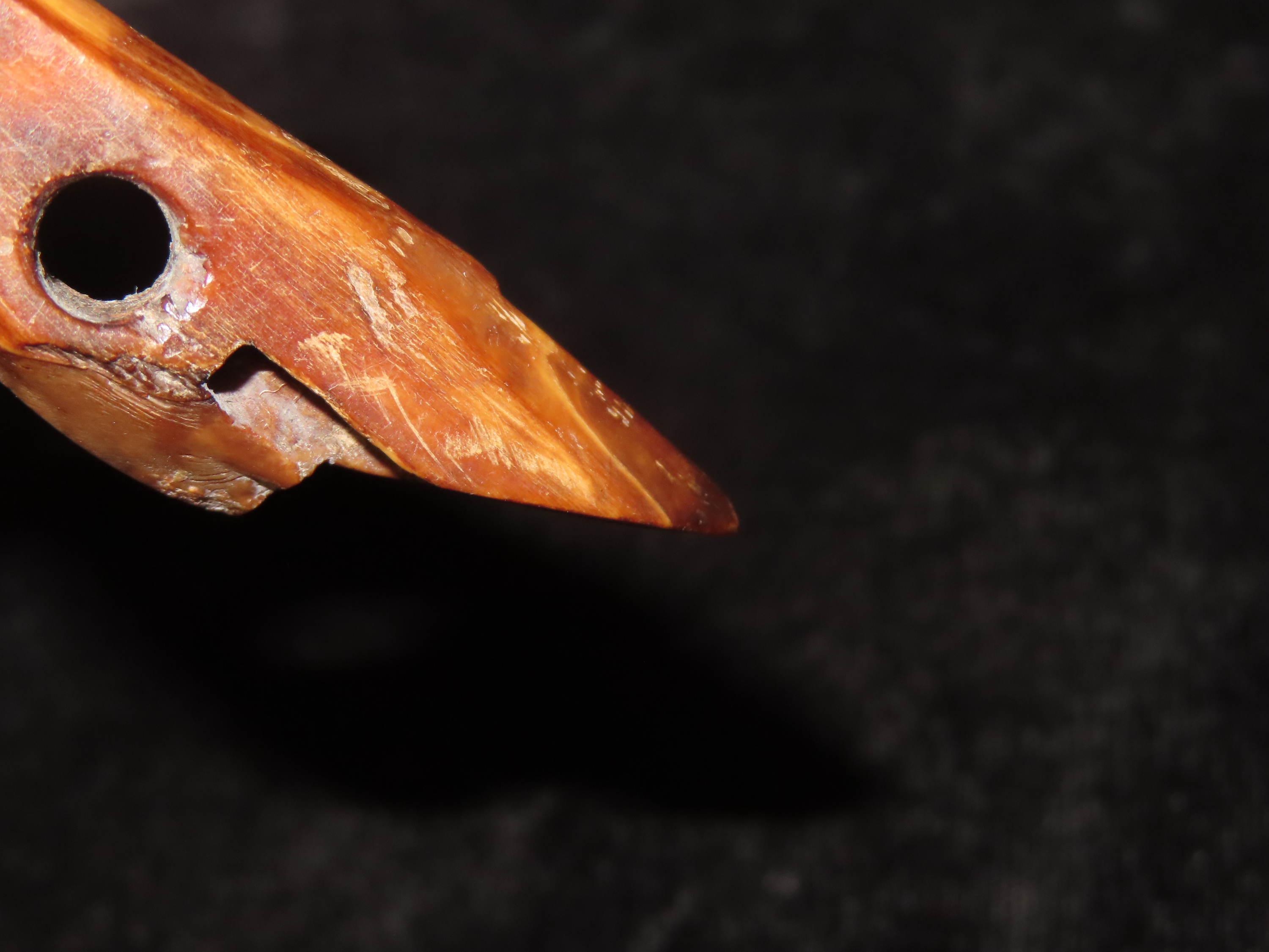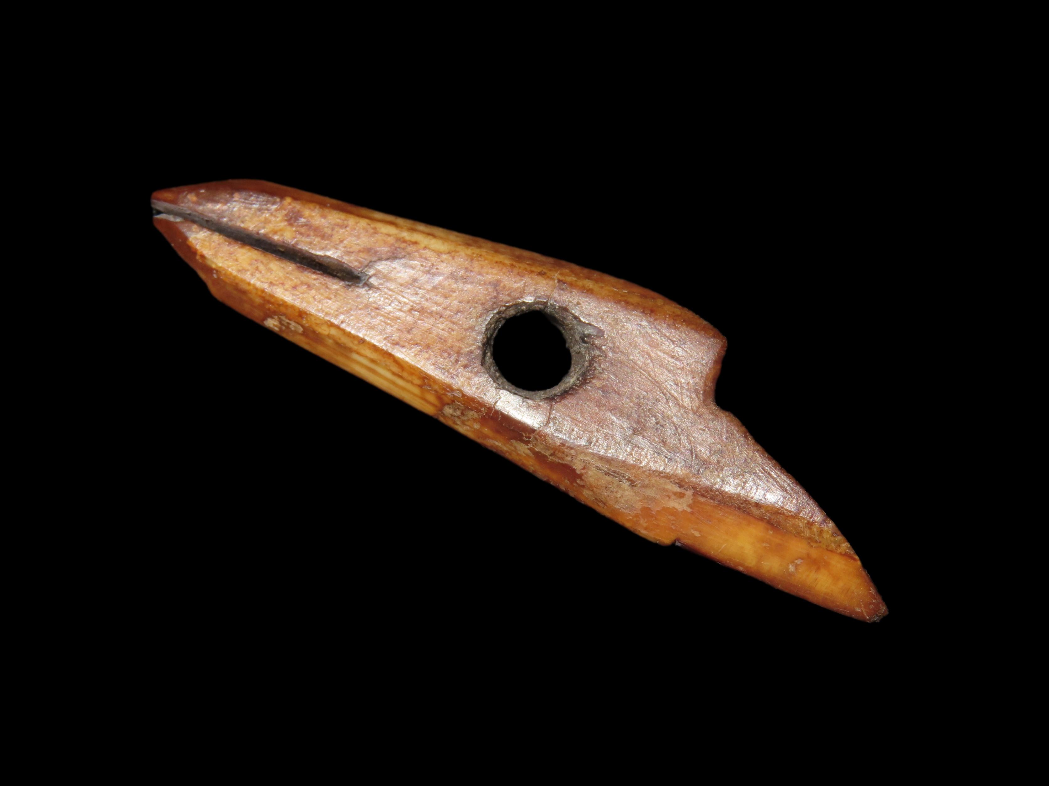 2 7/8″ Alaskan Harpoon Toggle. Very nice example, Highly Polished with amazing naturally aged color & patina. Made from Fossilized bone.