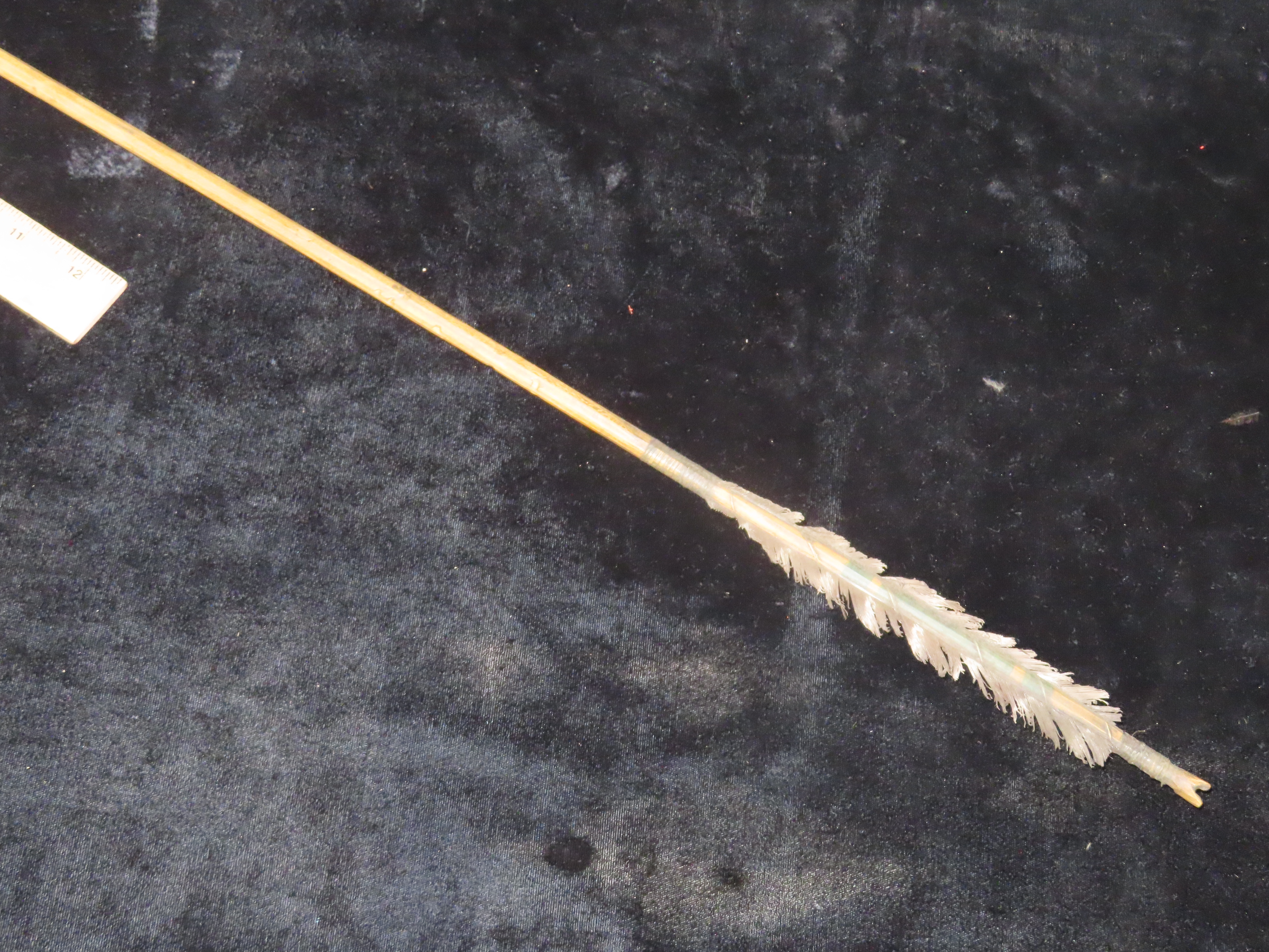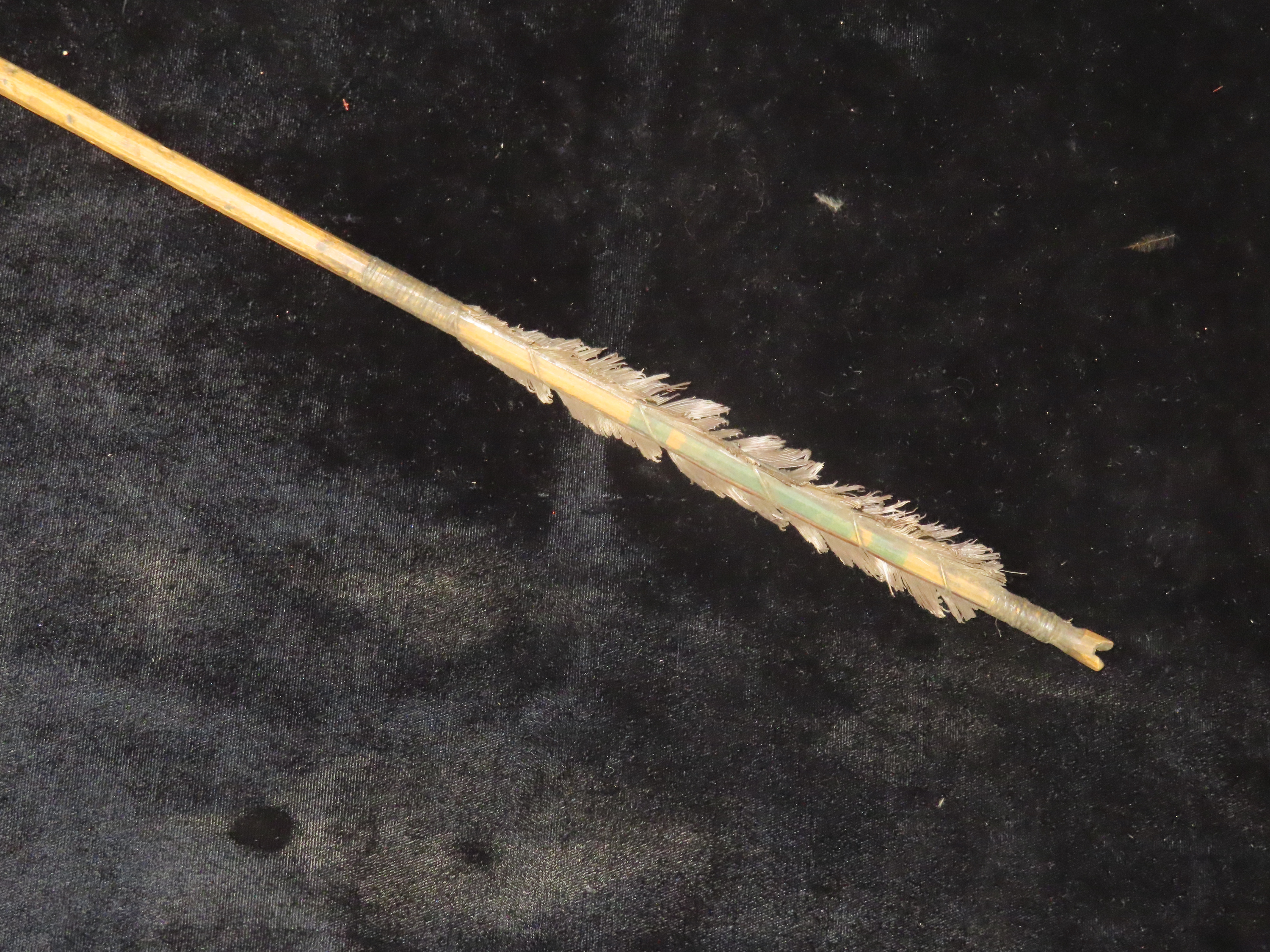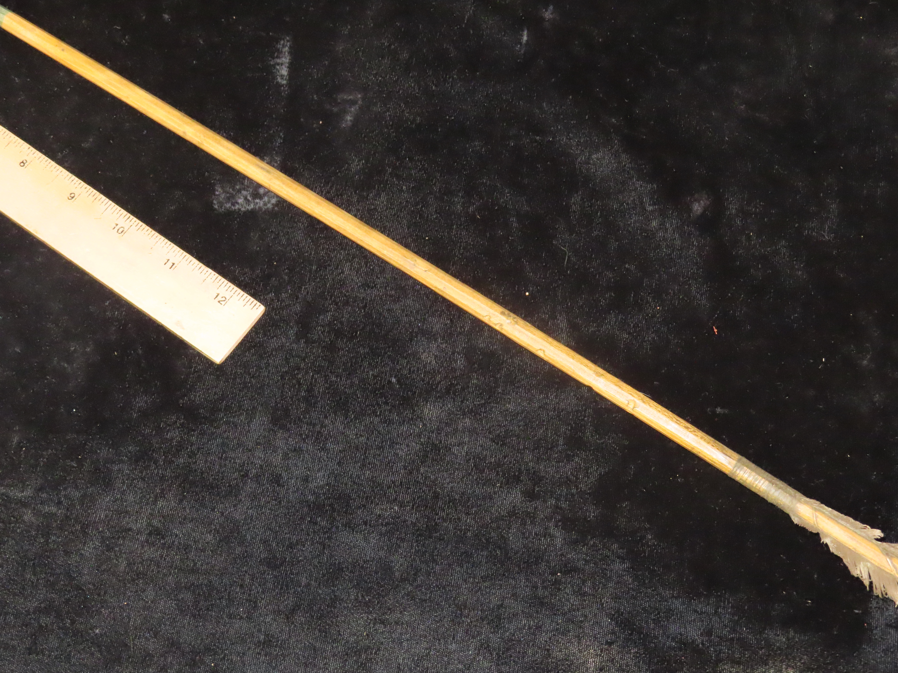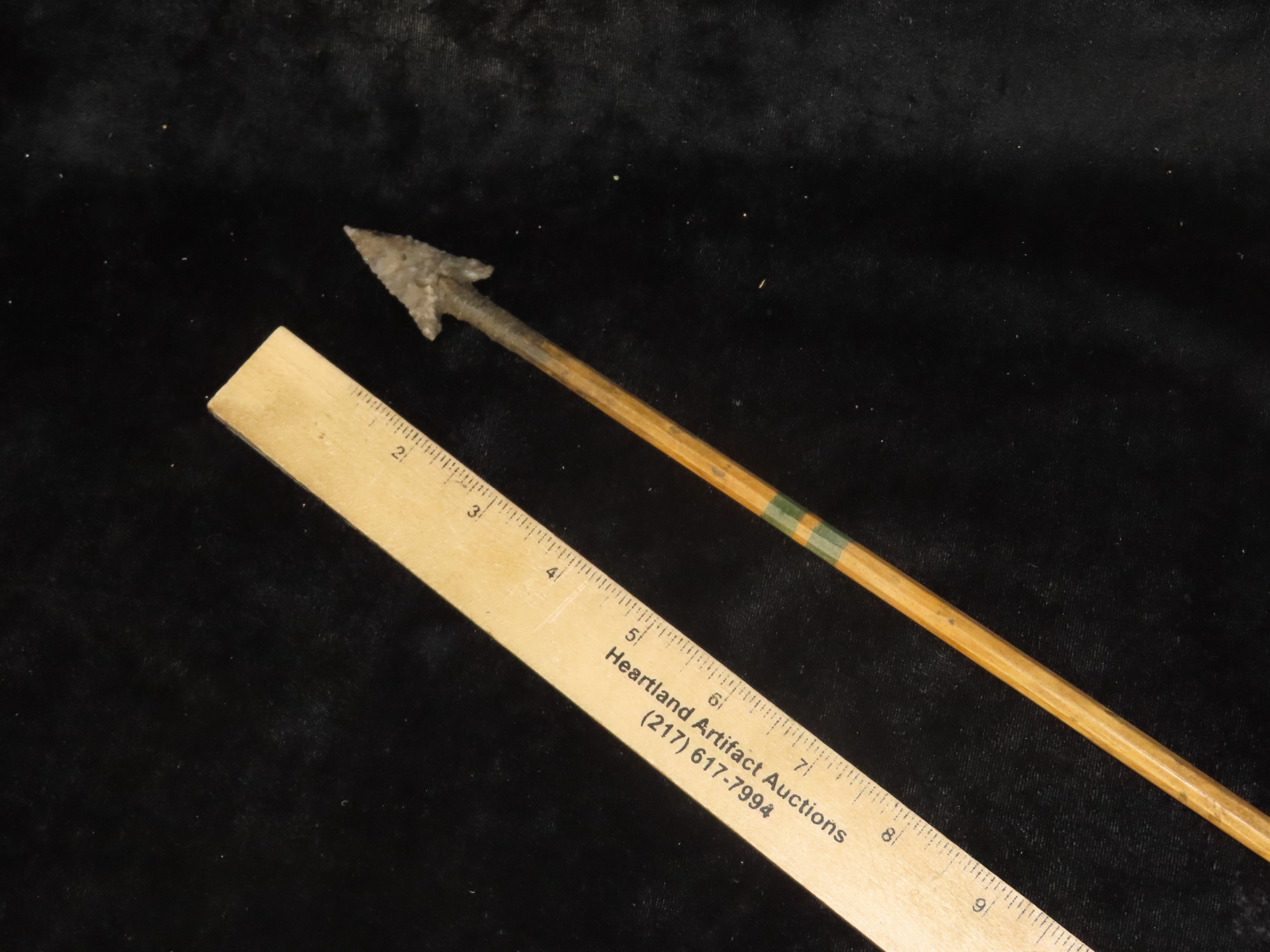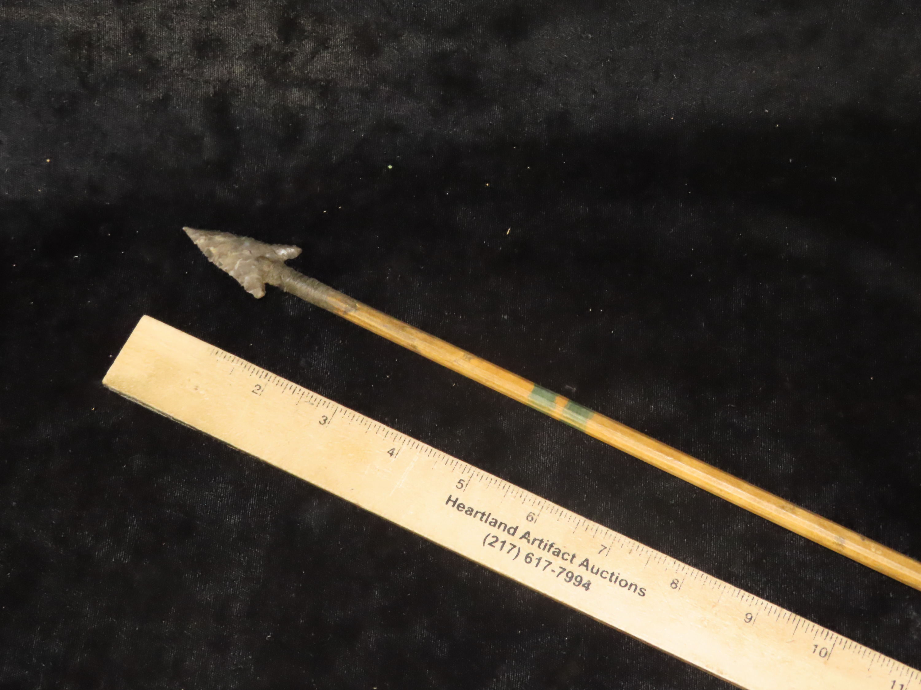 Exceptional 28 3/8″ All Original Historic Plains Indian Arrow with Original Hafted Arrowhead, Original Feathers & Sinew, Fully Intact Example. Amazing piece of American History. Museum Grade example.
