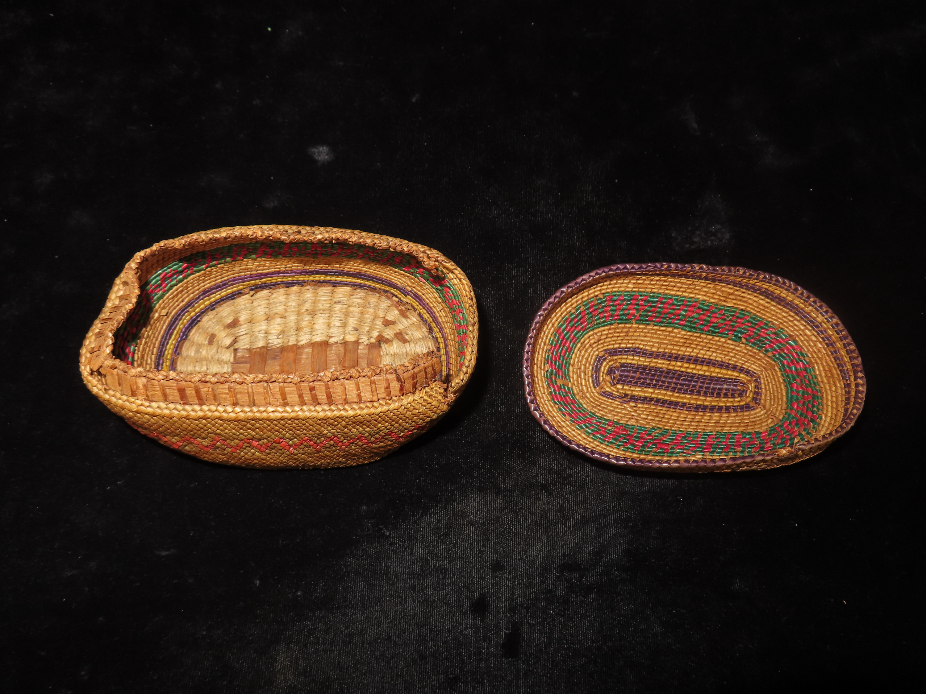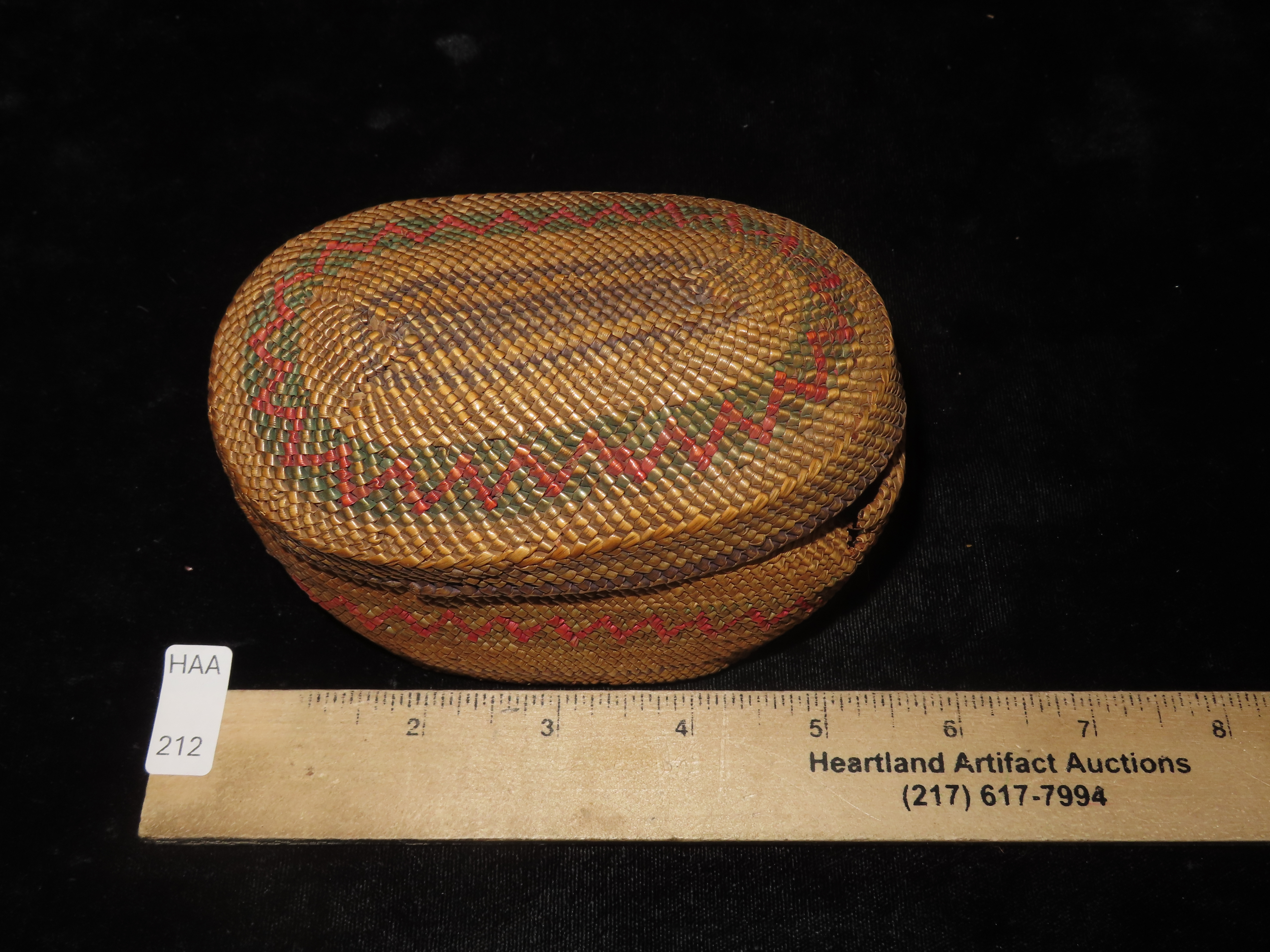 Rare Northwest Coast Native American Tlingit Indians Handwoven Basket with Lid. Great colors and design. Circa 1890’s-1920’s. Nice no brainer age & Patina. Just a great example!