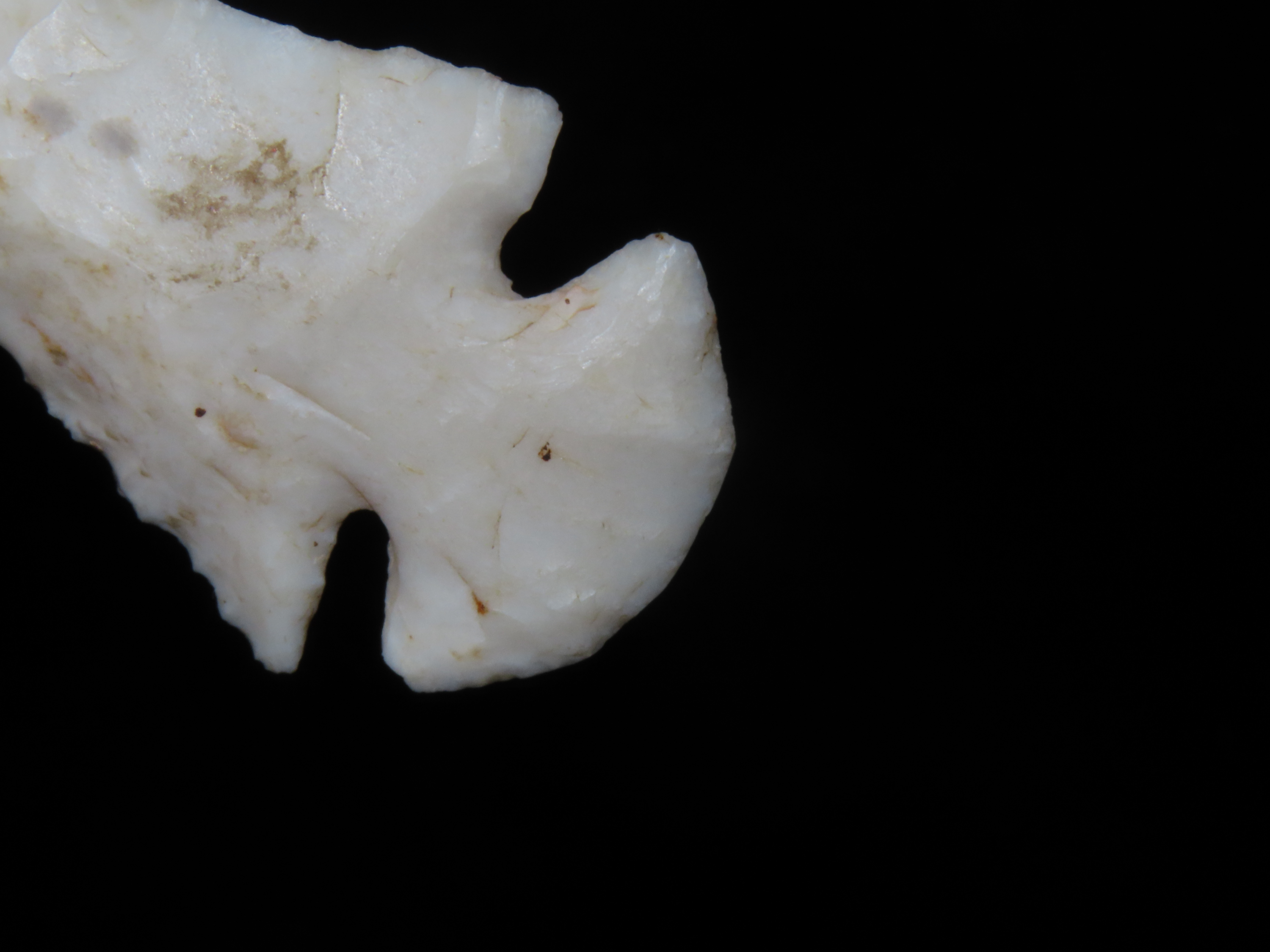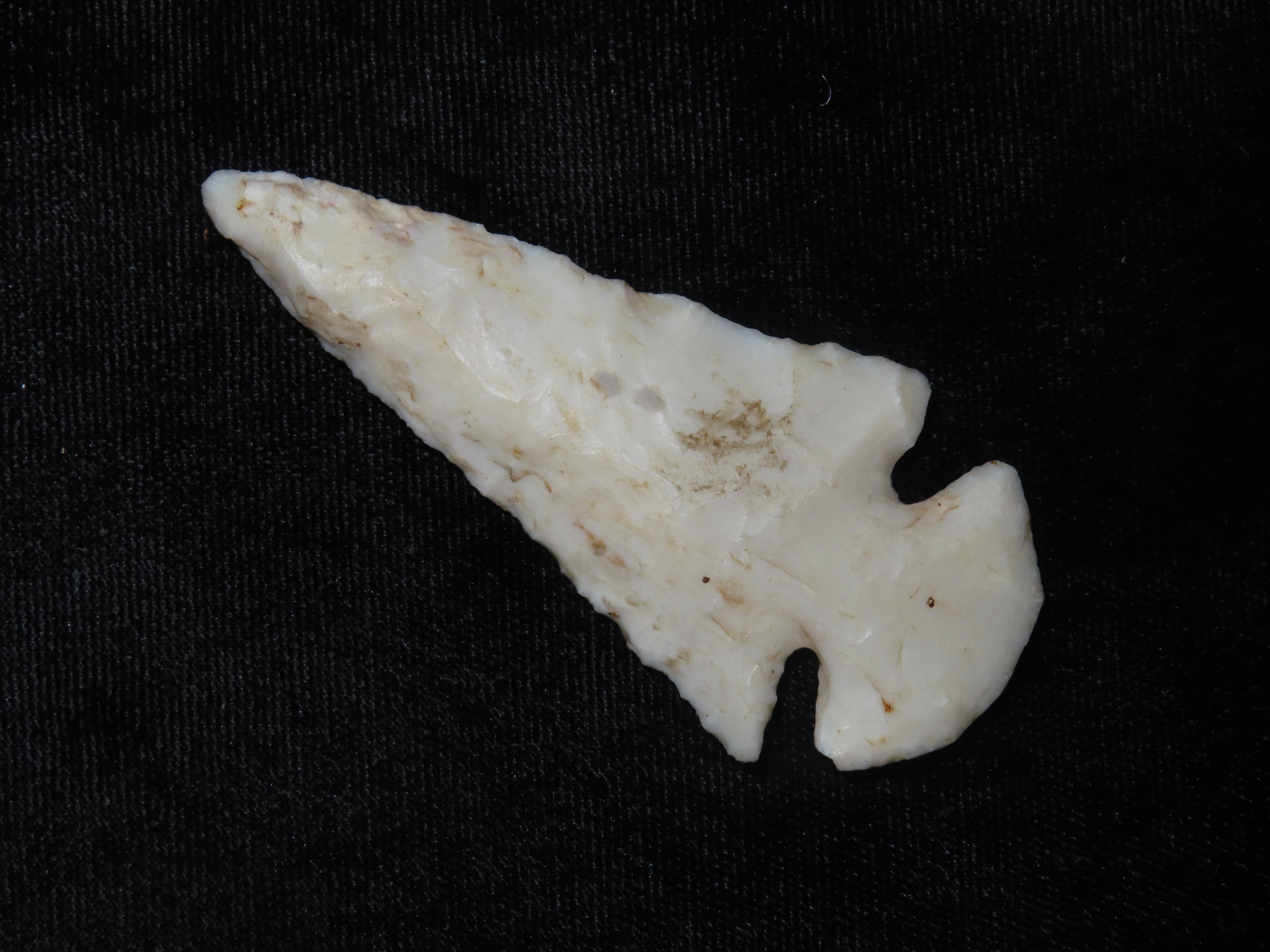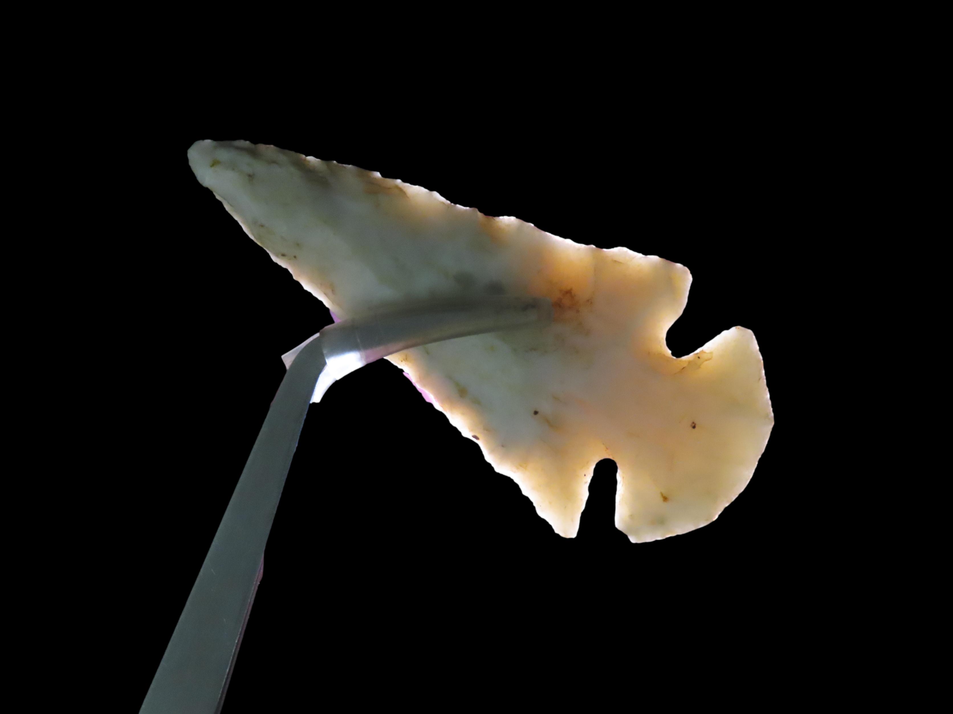 2 7/8″ Highly Translucent Dovetail, Illinois, ex Von Hillard. Classic Form, Great patina. Made from a well patinated piece of Crescent Quarry Chert