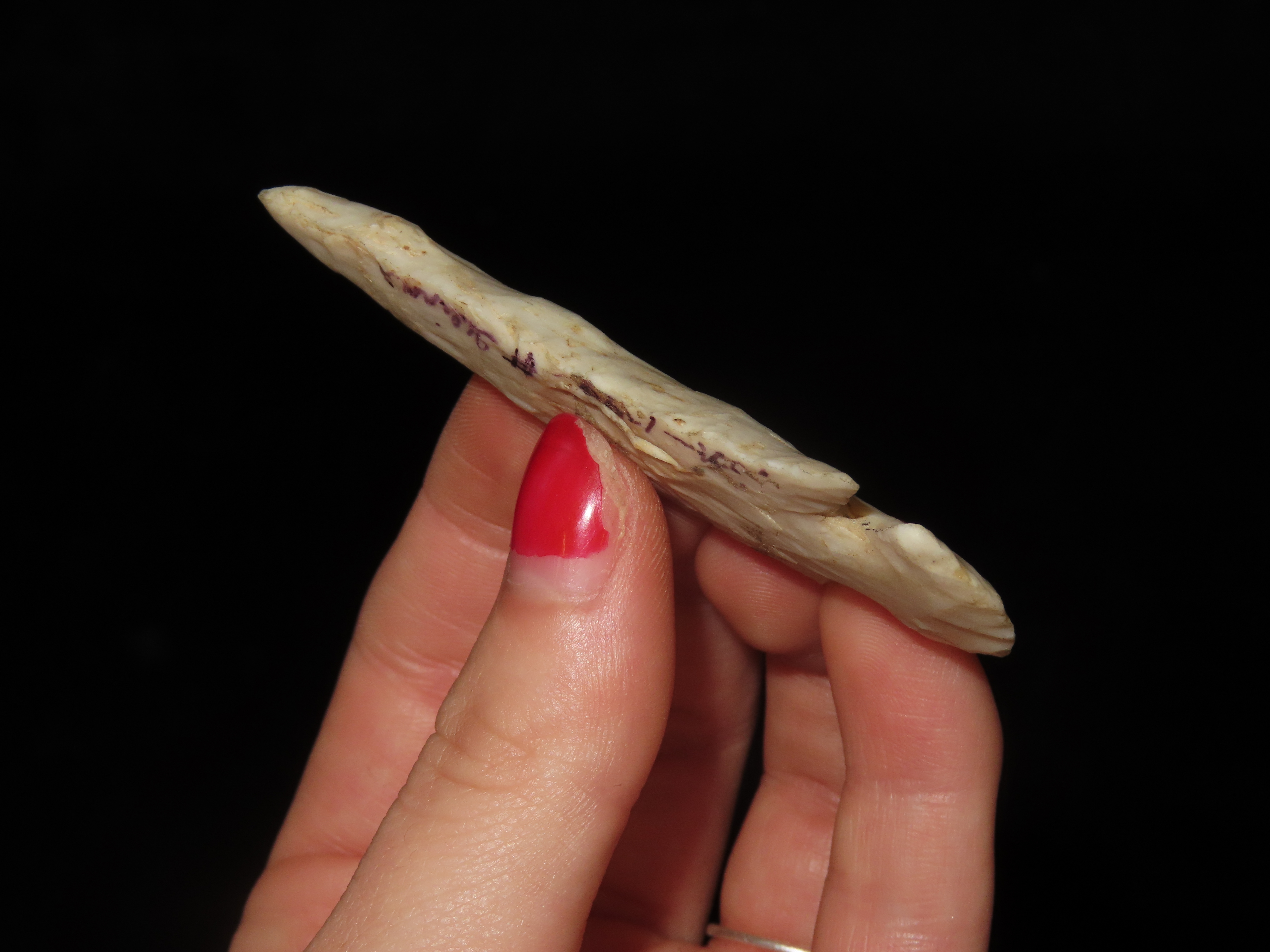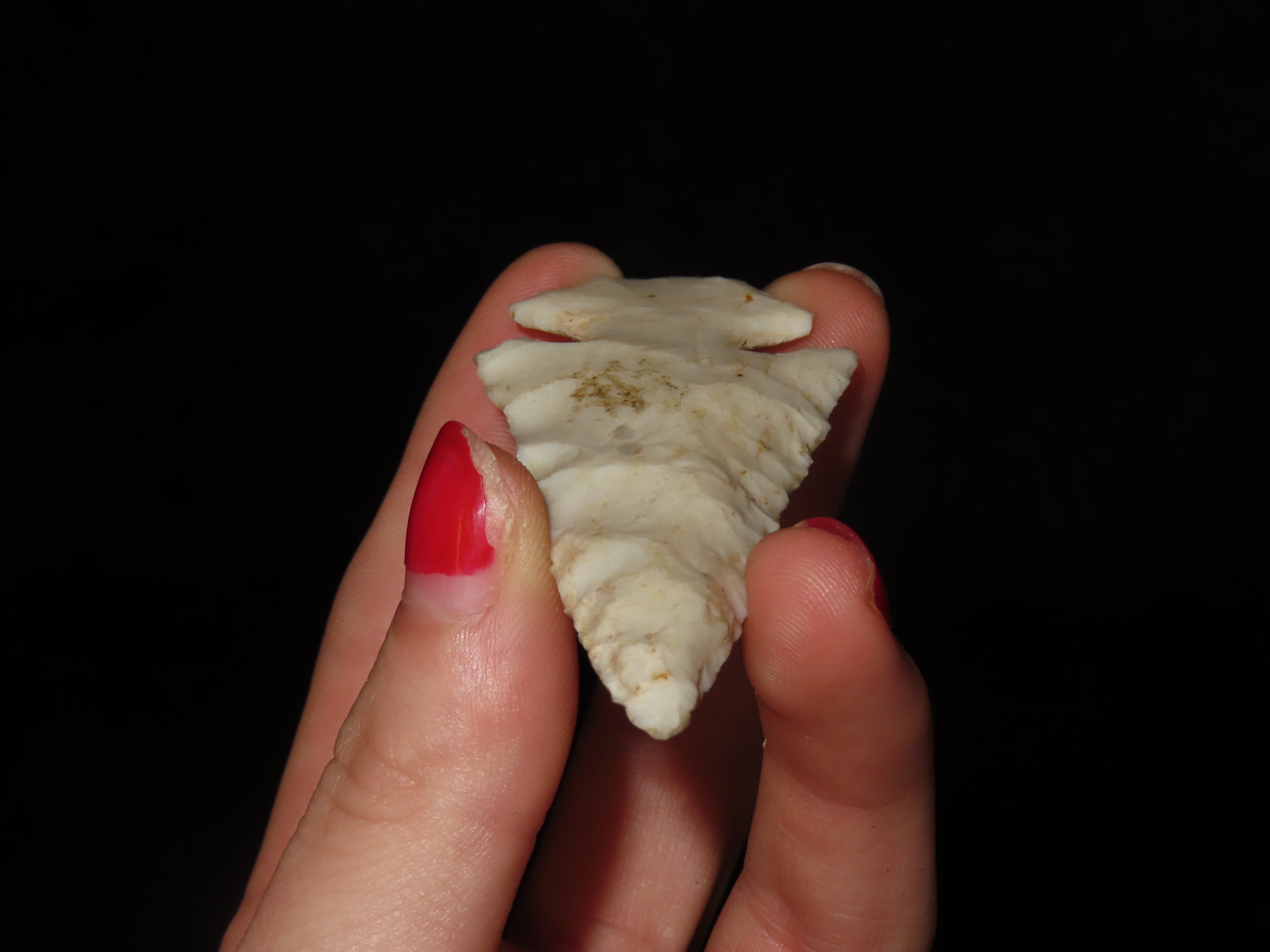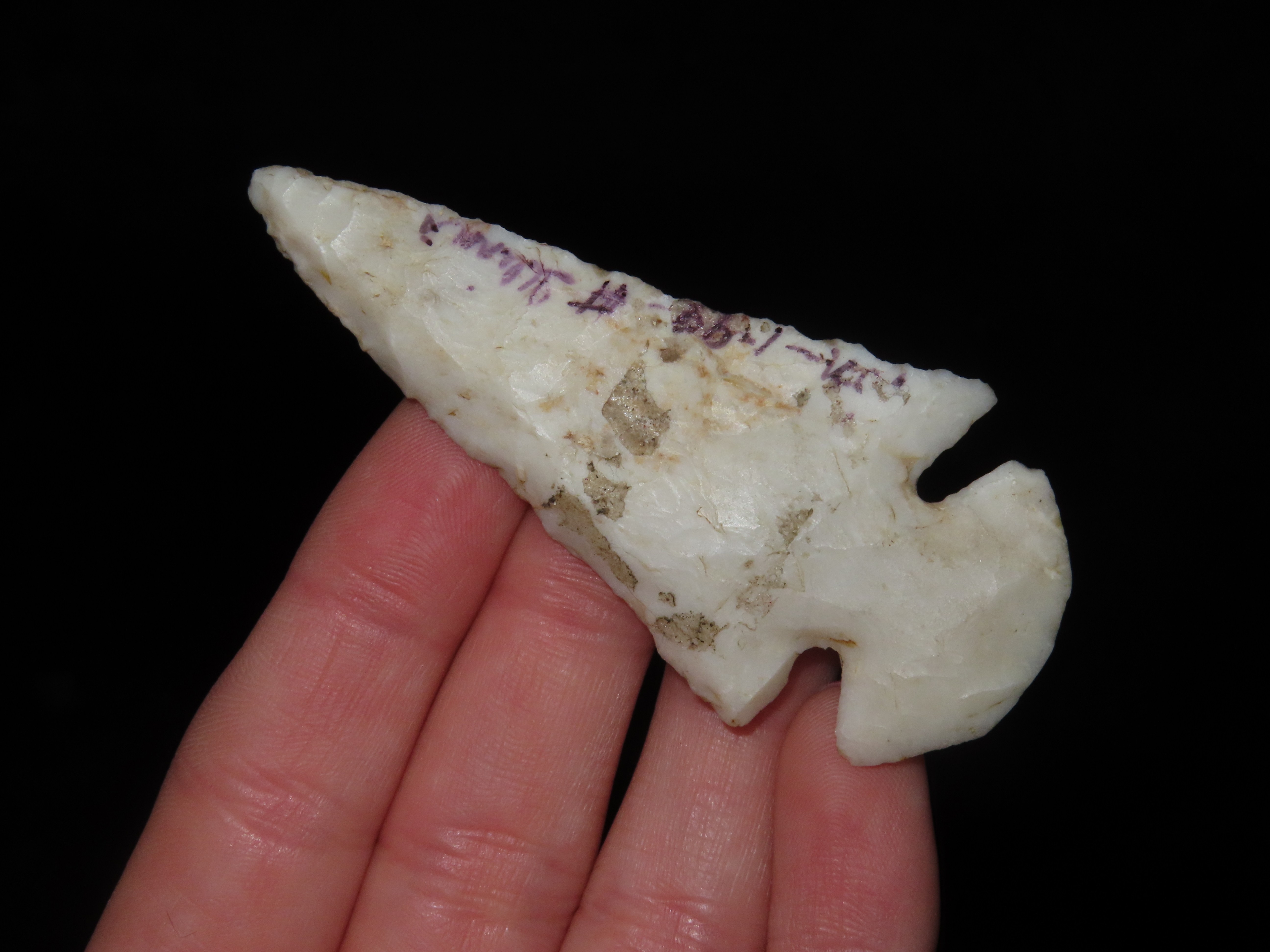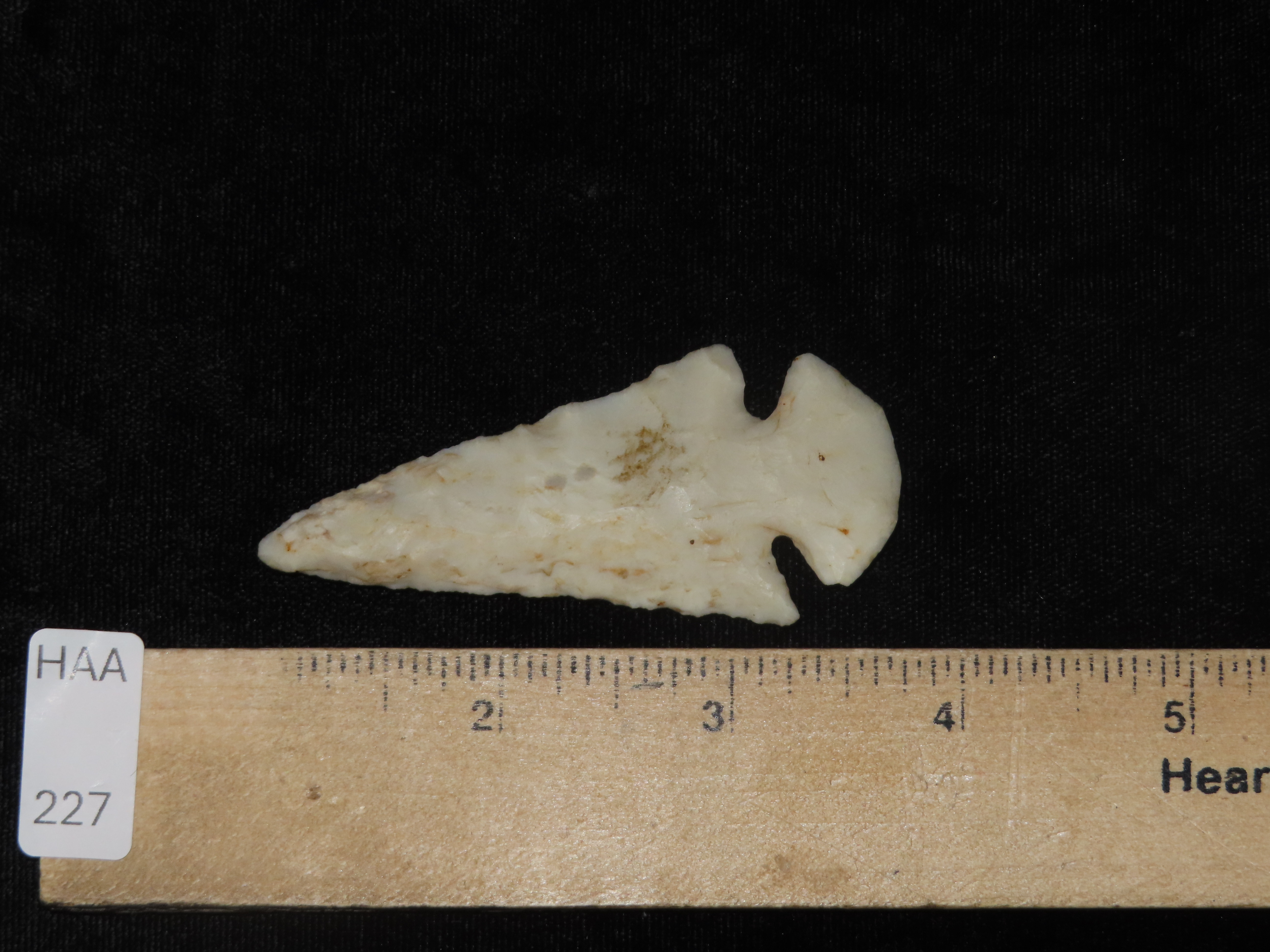 2 7/8″ Highly Translucent Dovetail, Illinois, ex Von Hillard. Classic Form, Great patina. Made from a well patinated piece of Crescent Quarry Chert