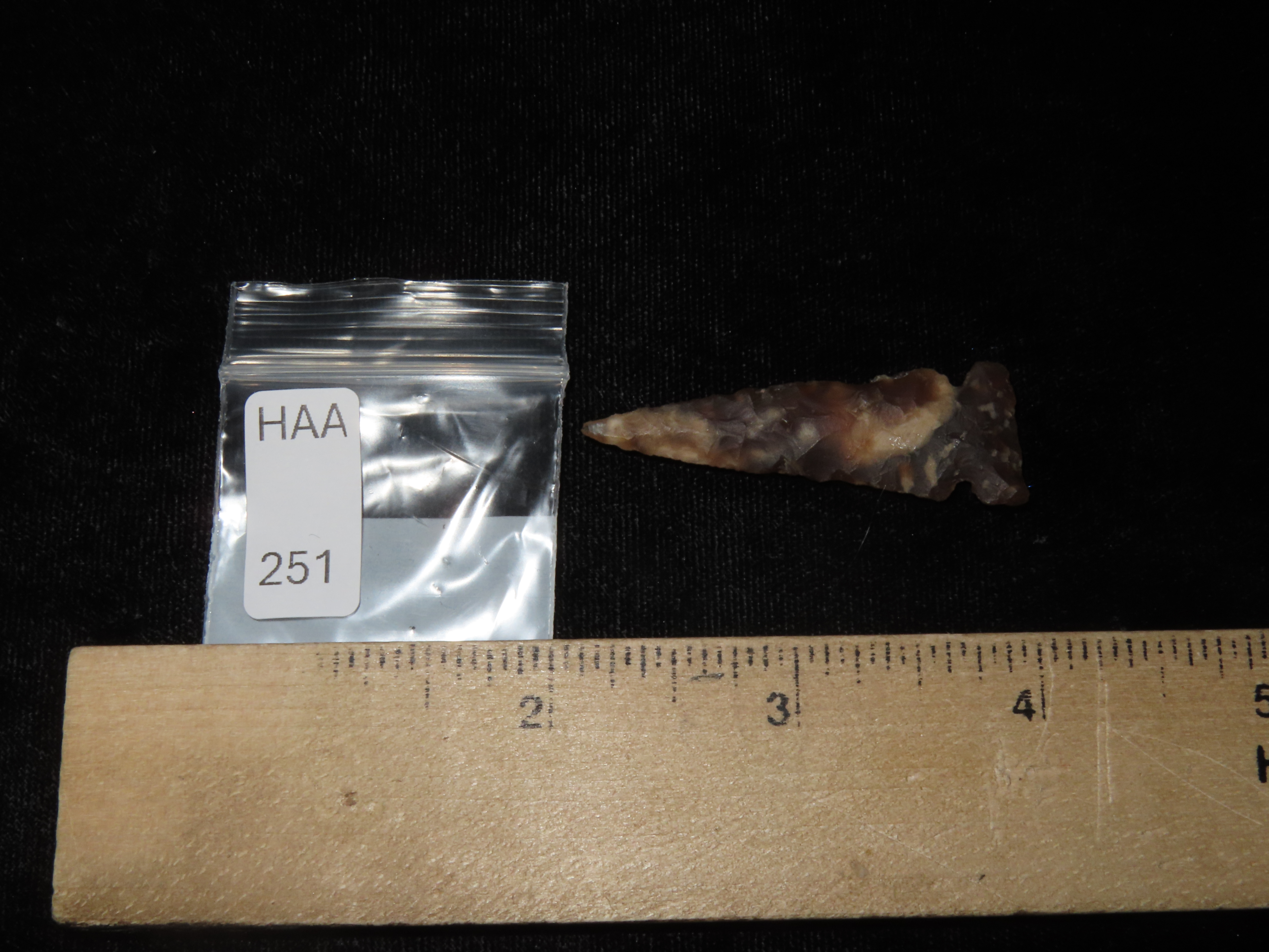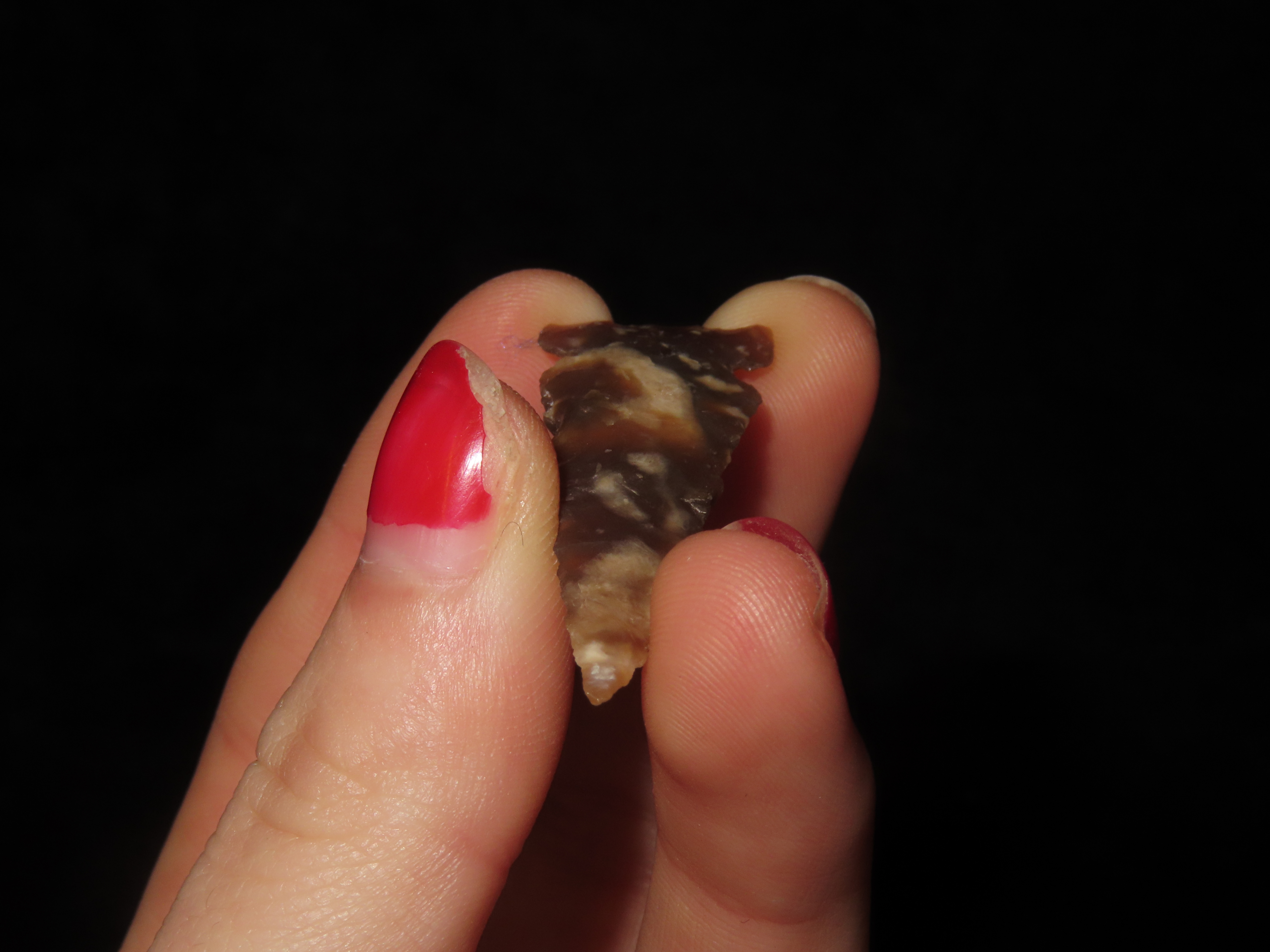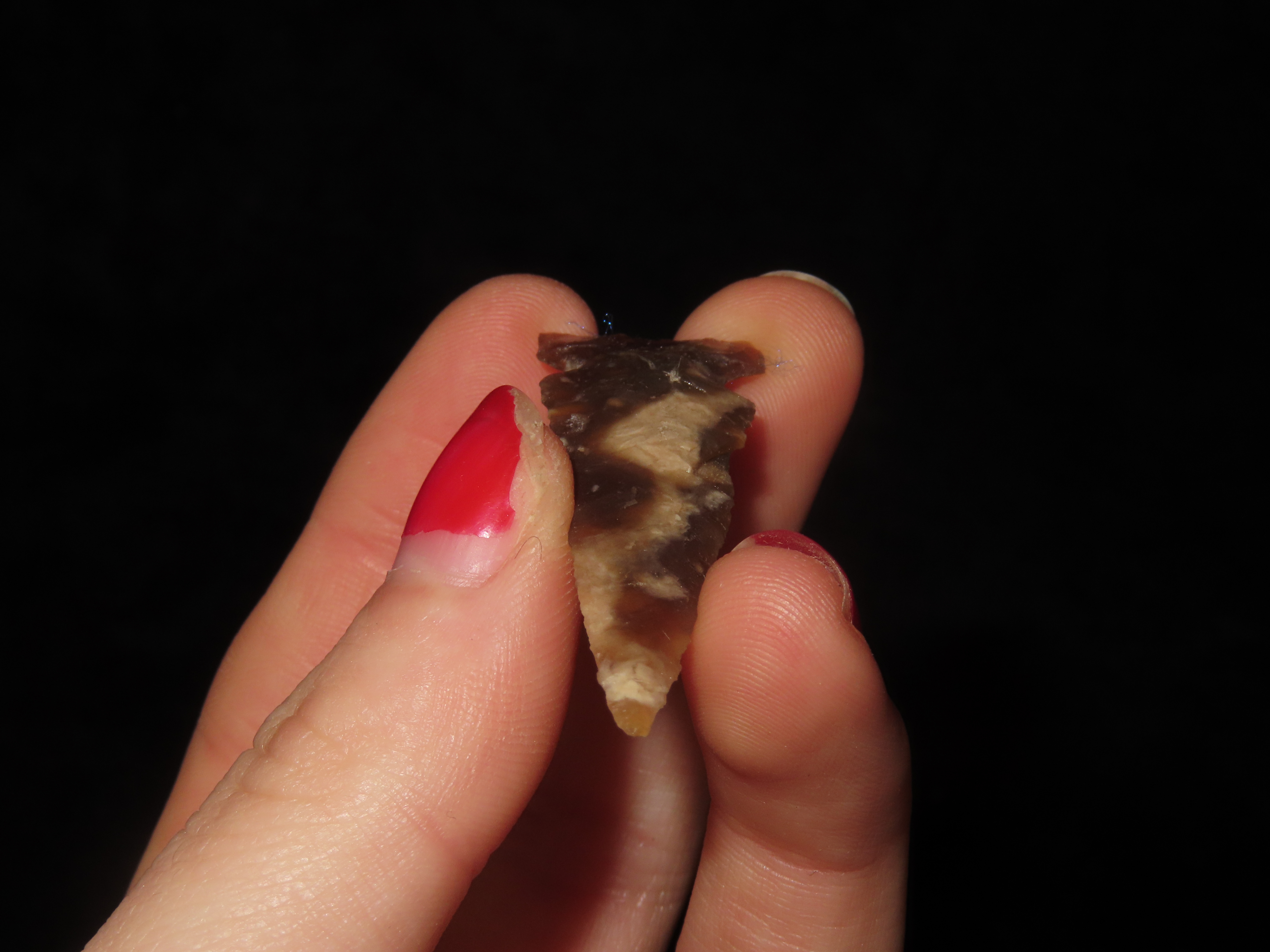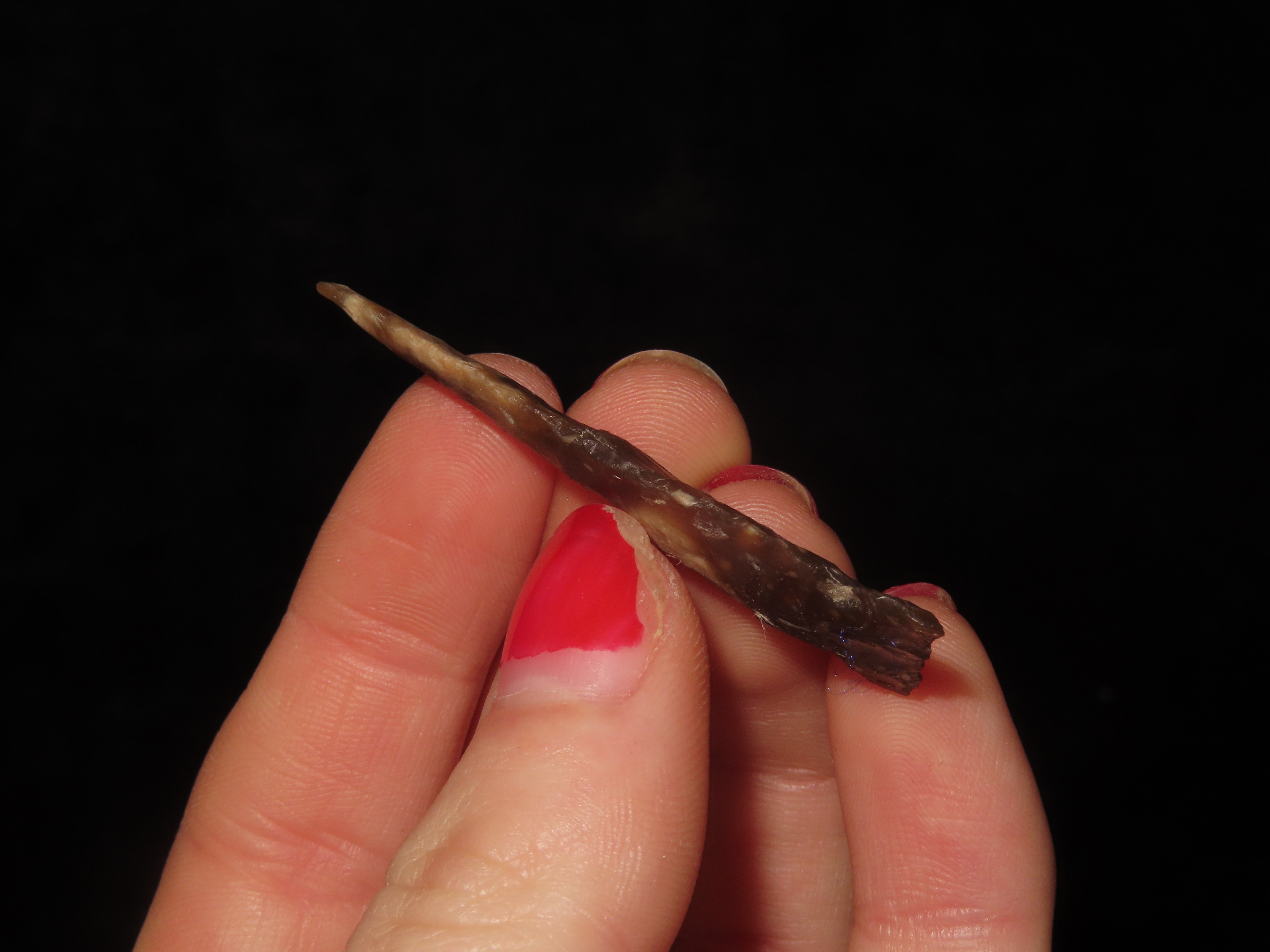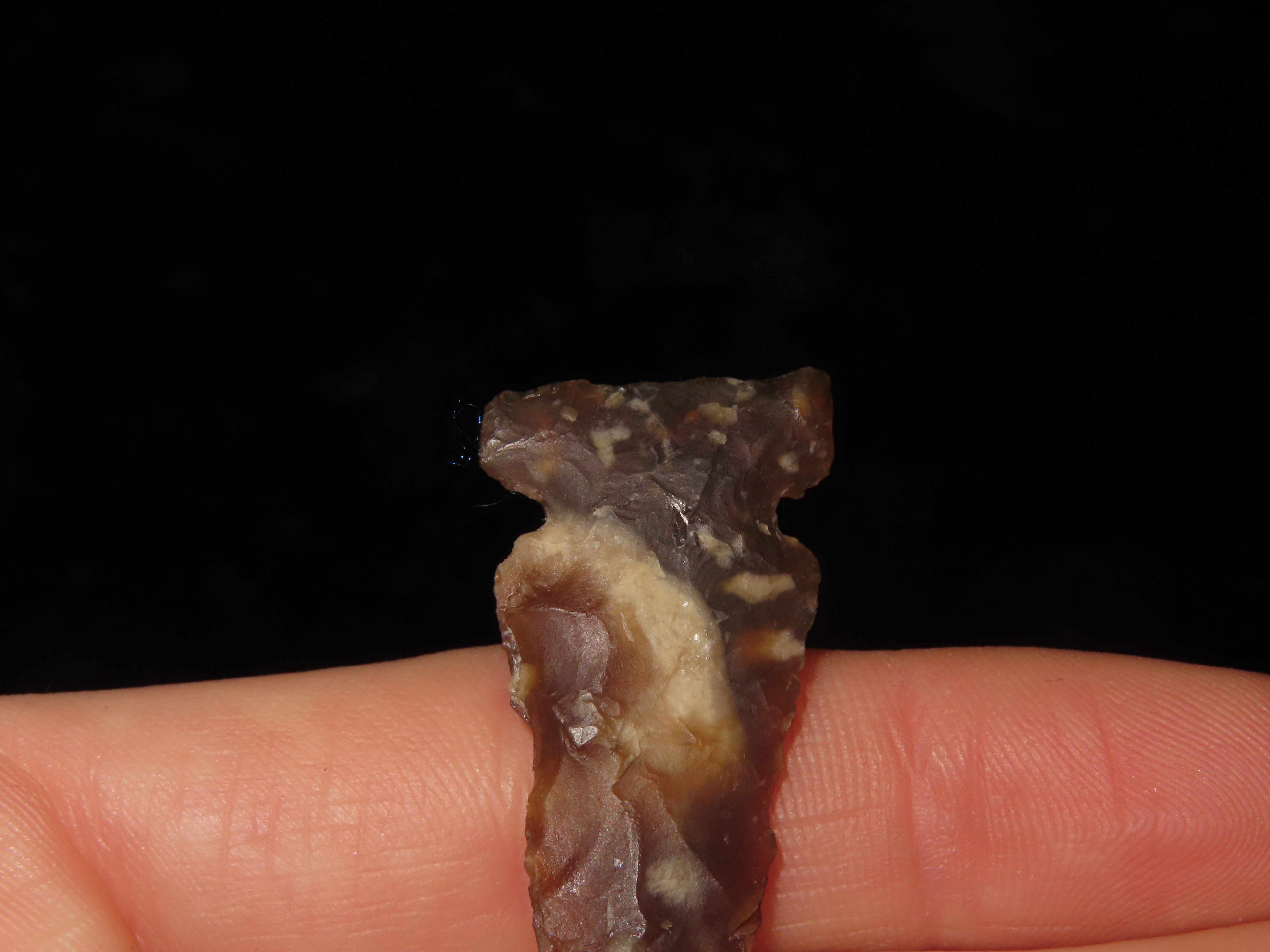 Translucent Knife River Sidenotch, Montana. Nice long Slender example, thin and well flaked with great color. Highly Translucent Example!