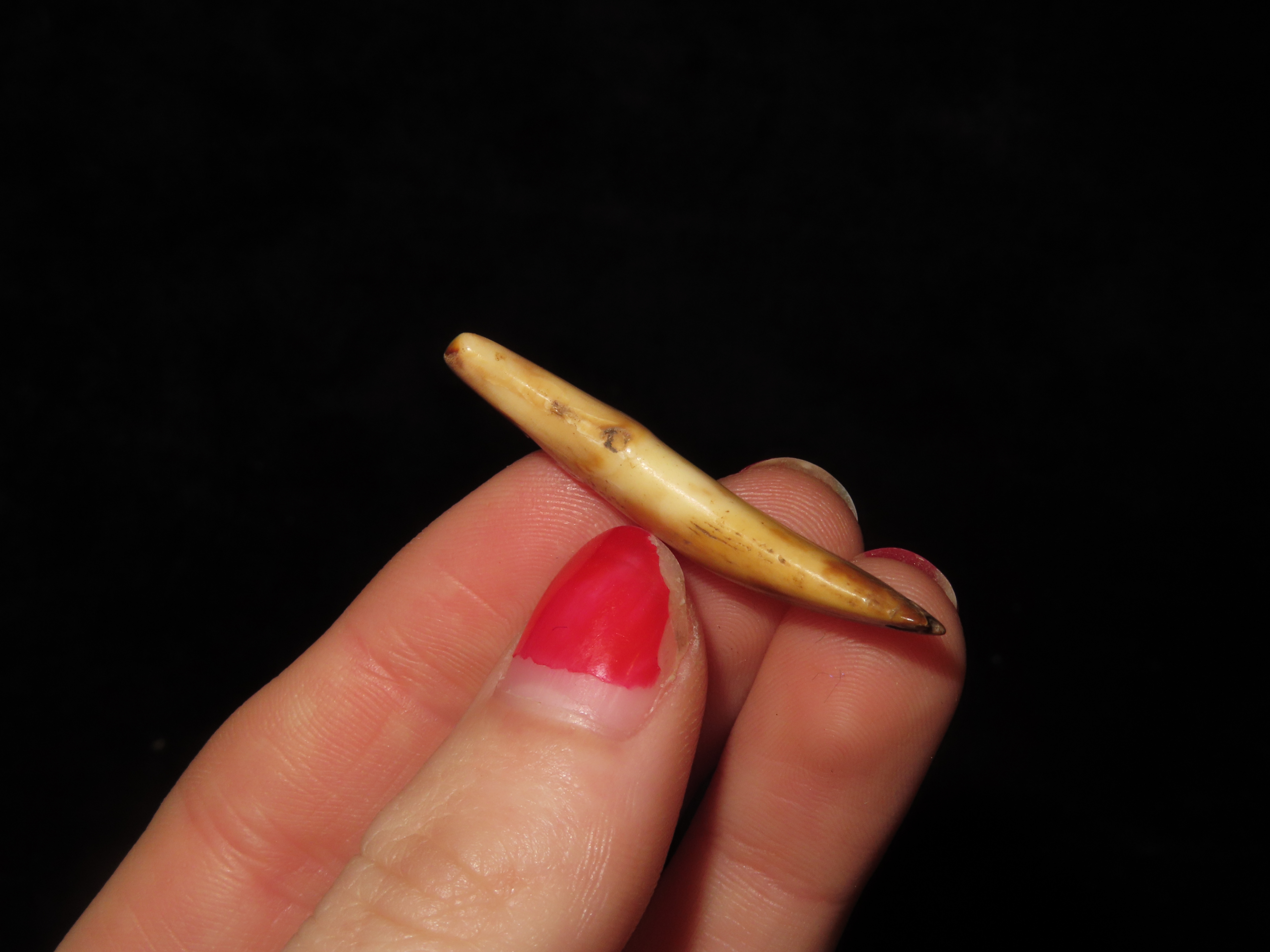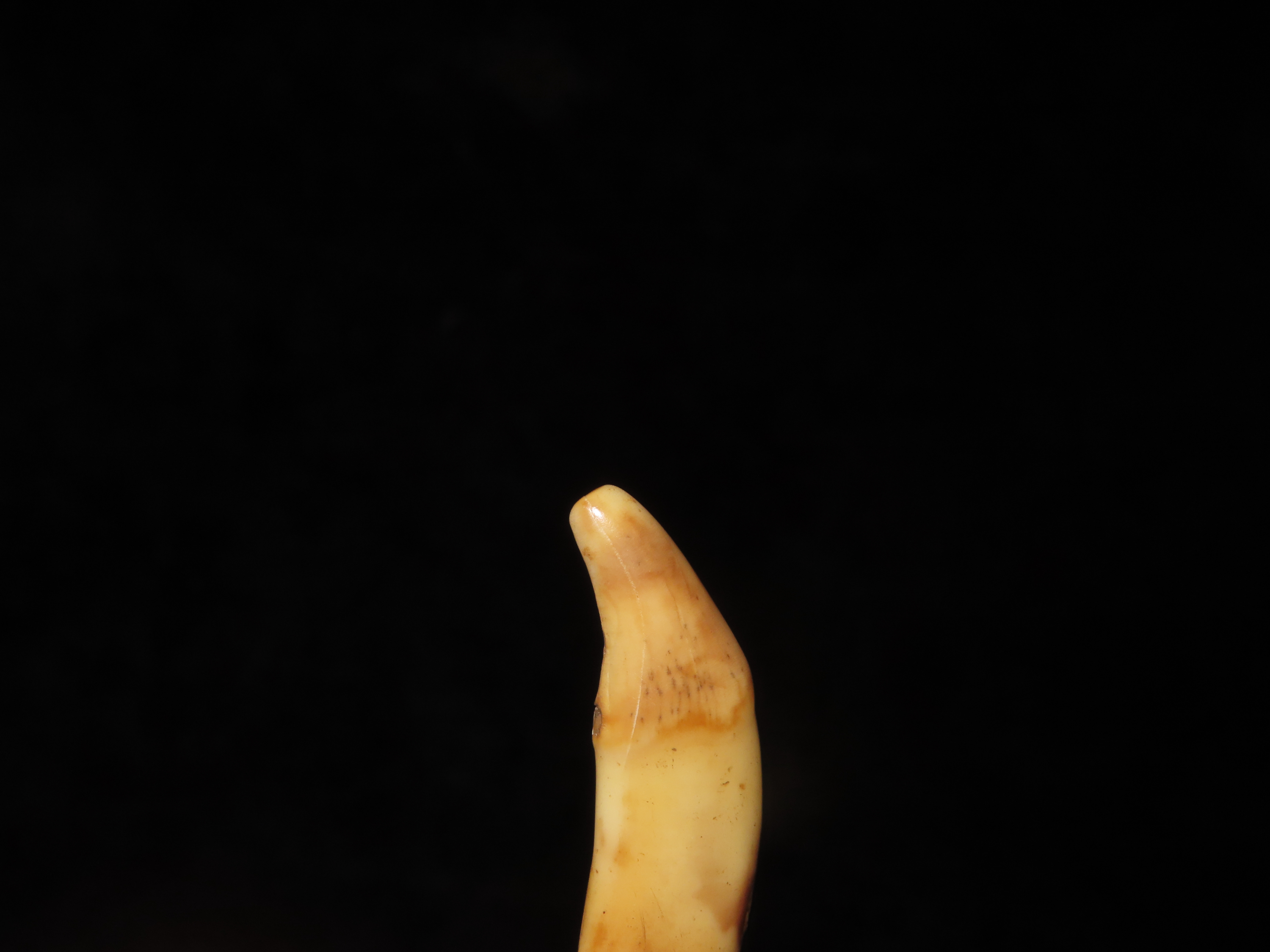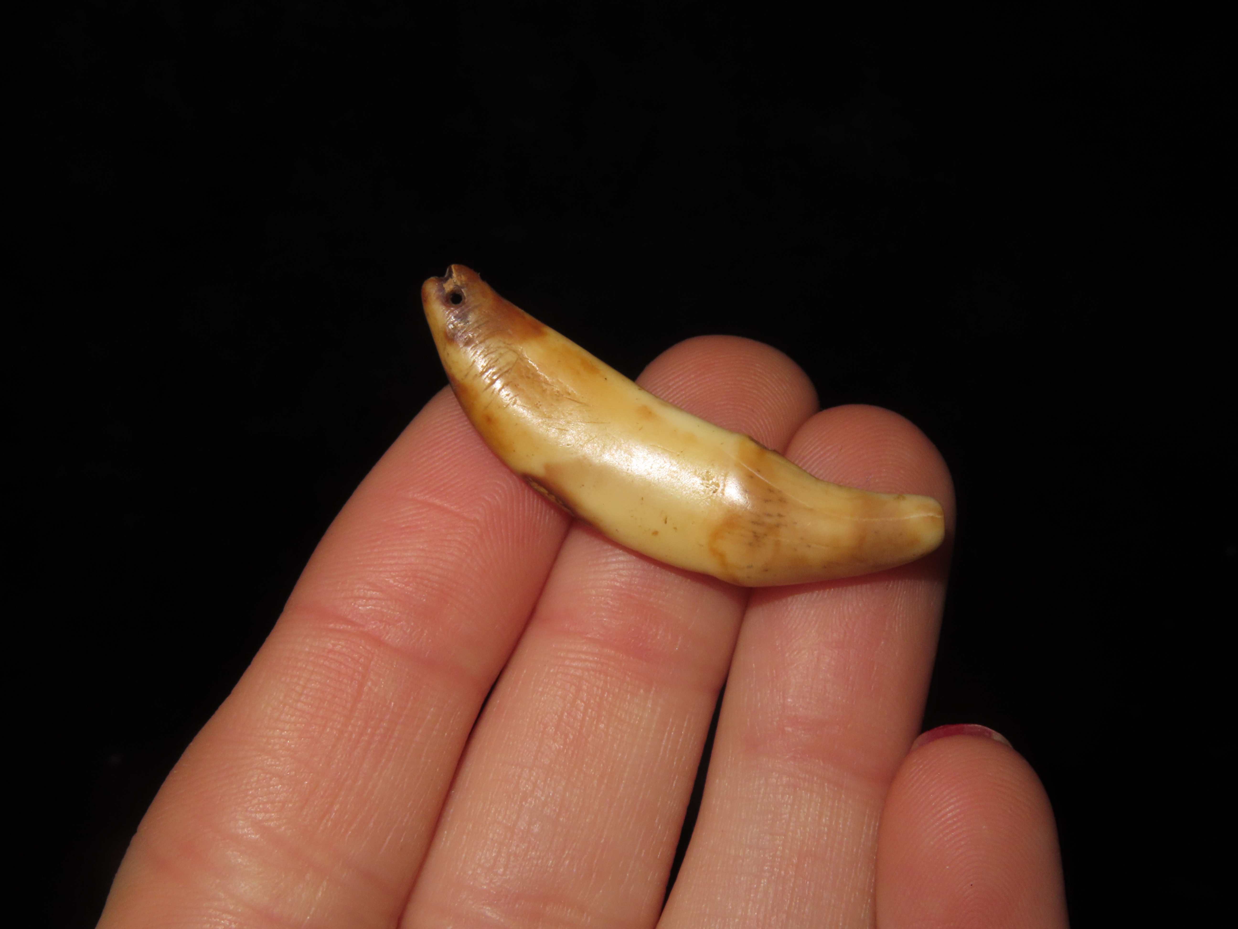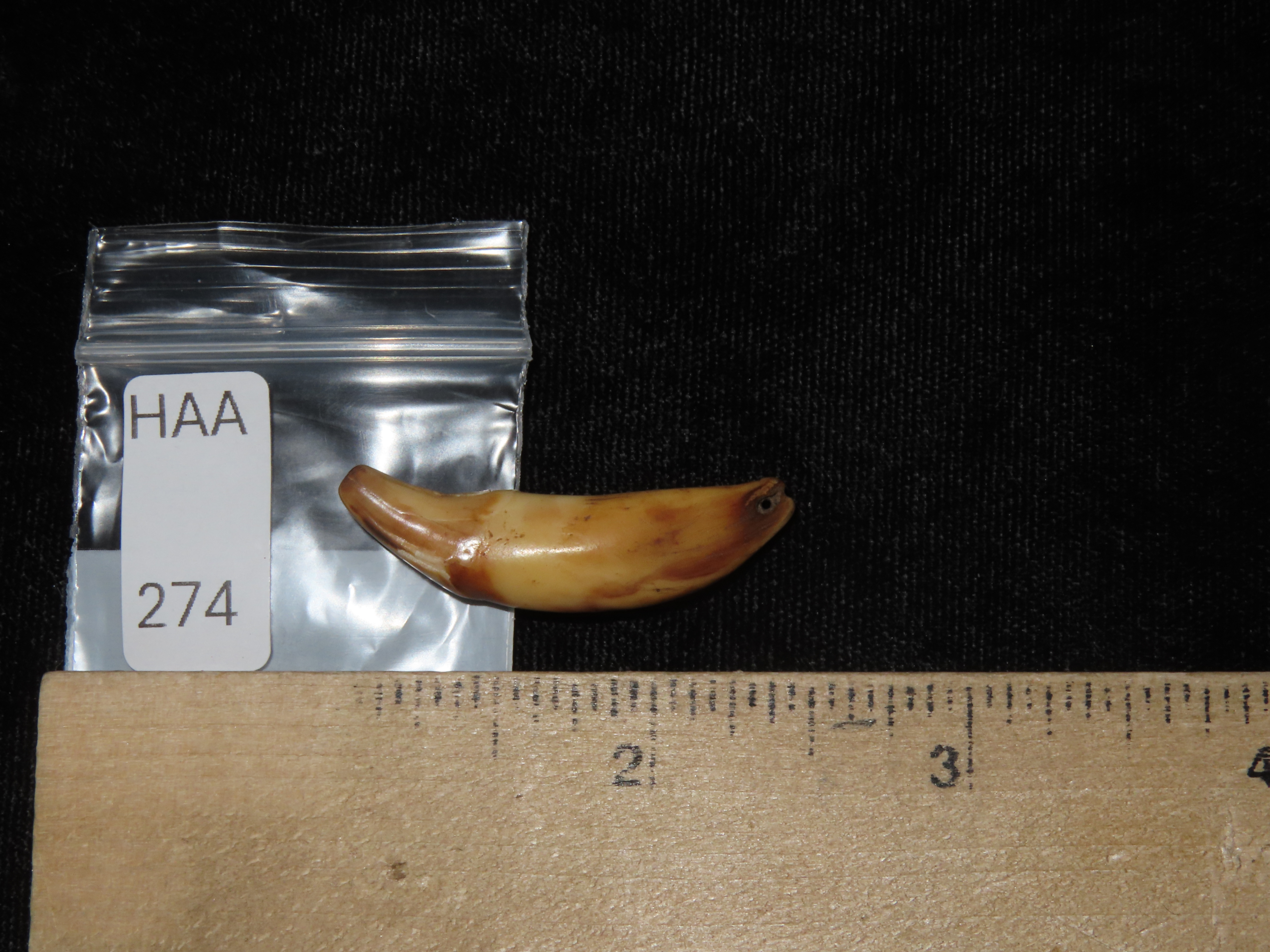Nice Anciently Drilled Wolf Canine Tooth Pendant, Alaska, 1 3/8″ long, Alaskan Eskimo Pendant / Gorget / Charm