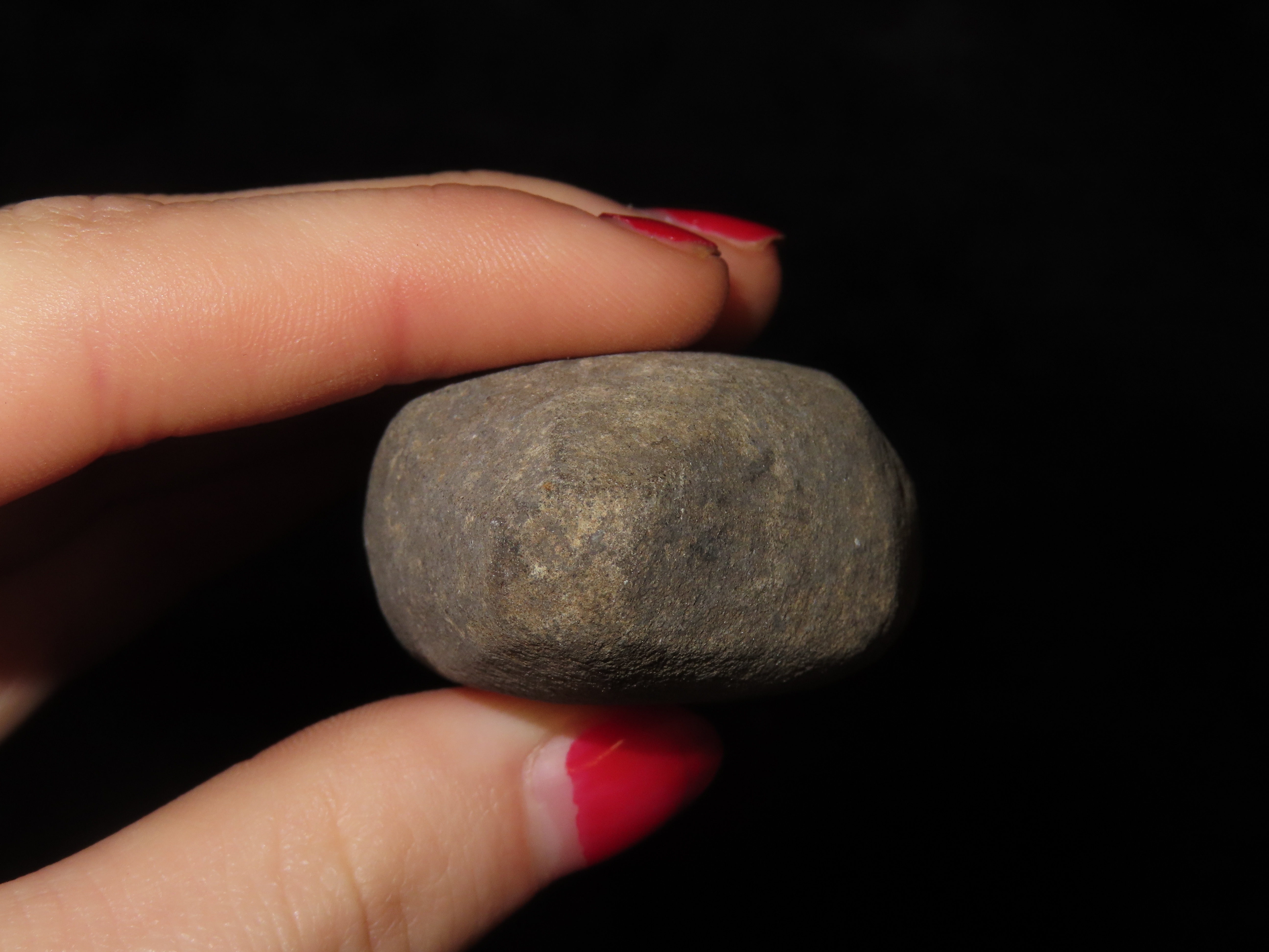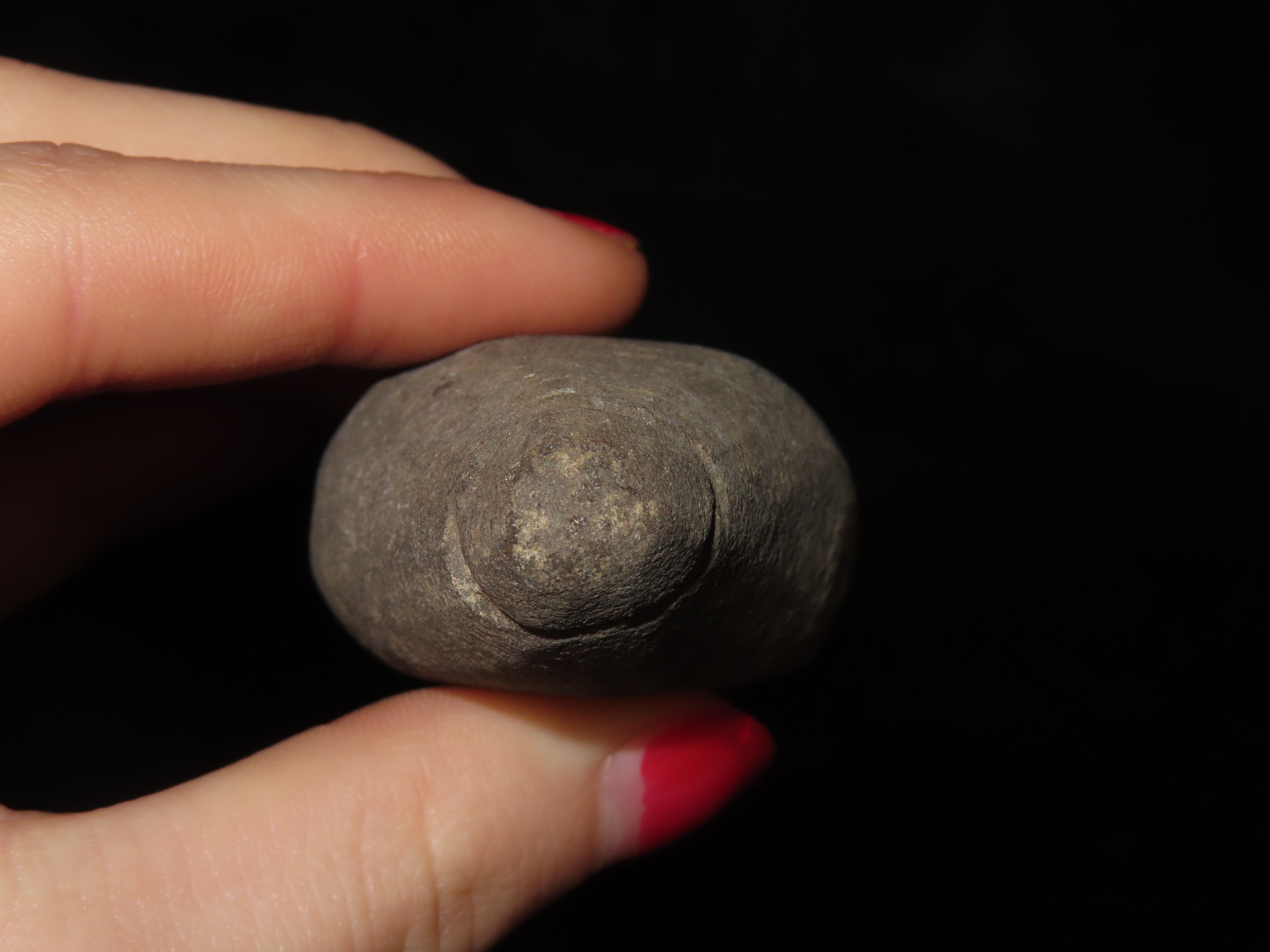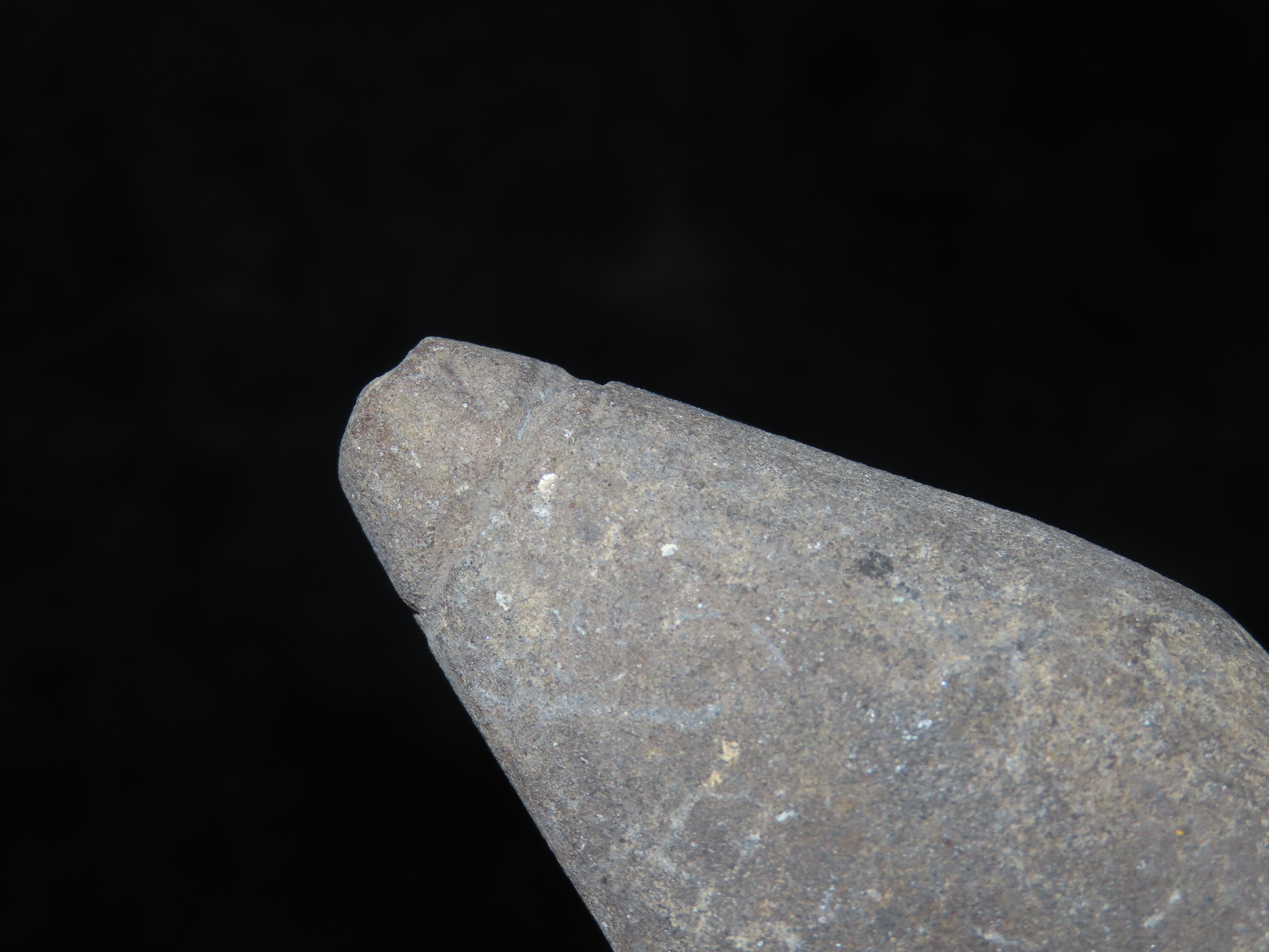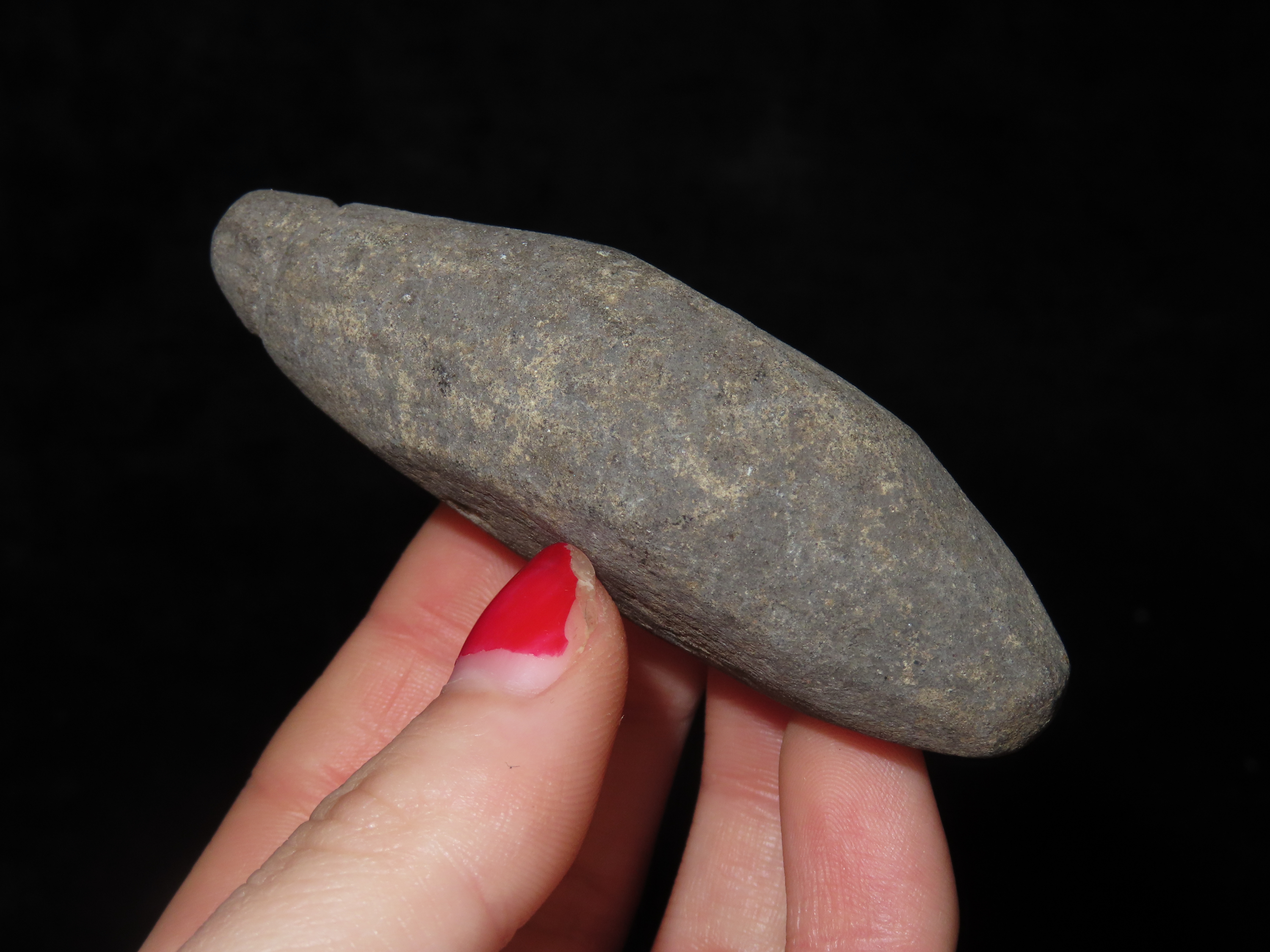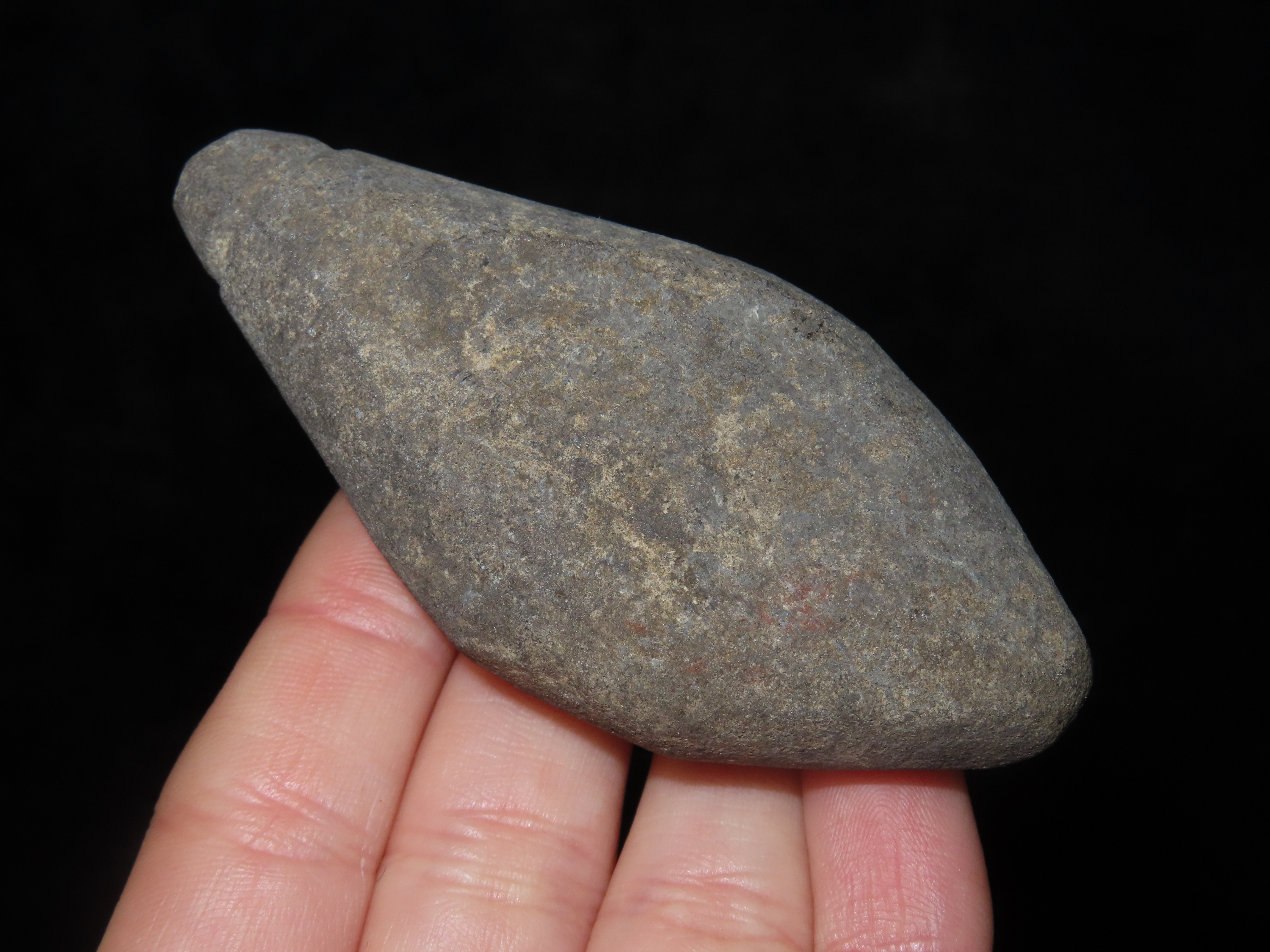 3 1/8″ Grooved Hardstone Plummet, Calhoun Co. Illinois. Motley COA. Nice large example, well shaped and deeply grooved with great age & patina.
