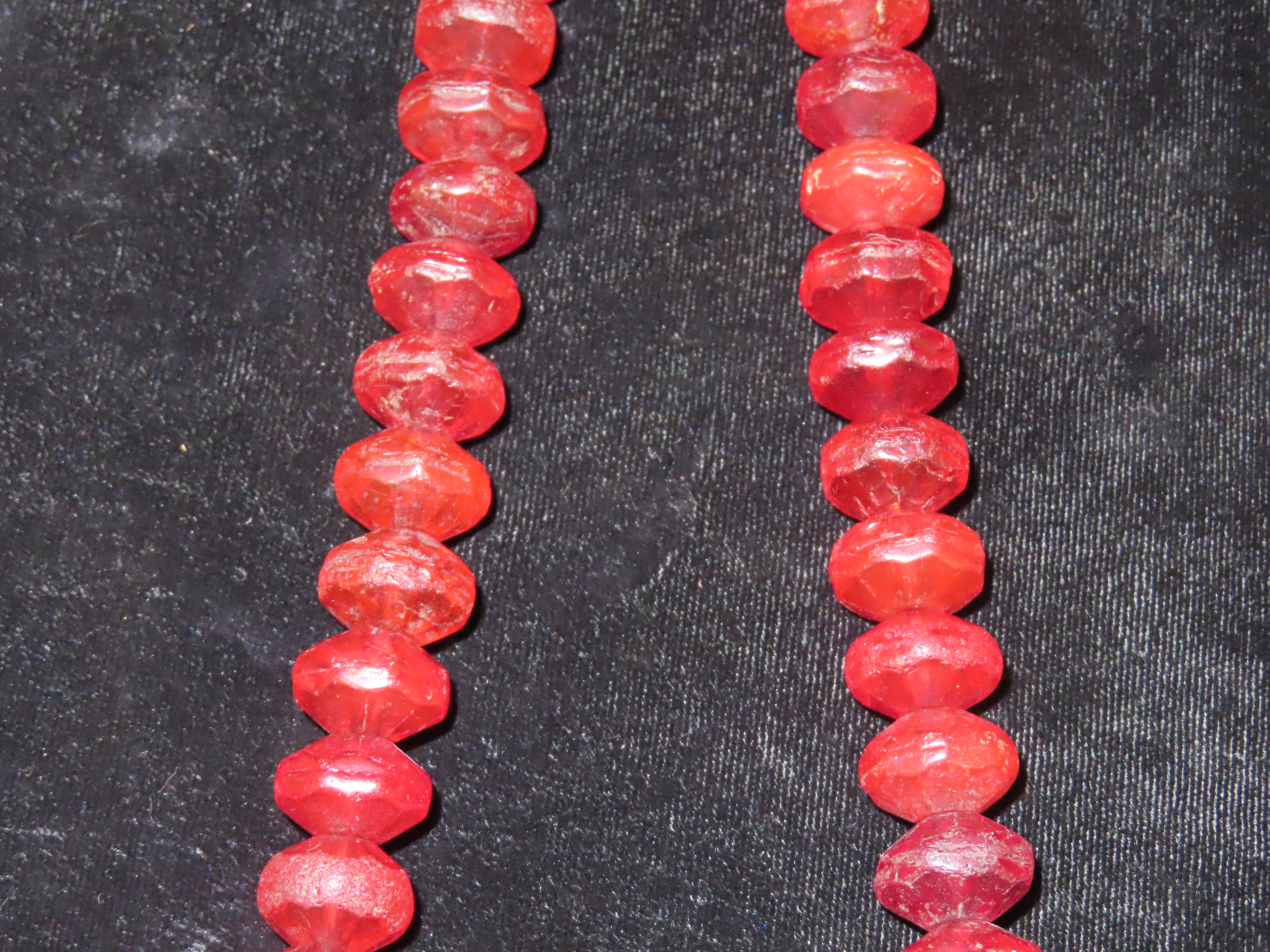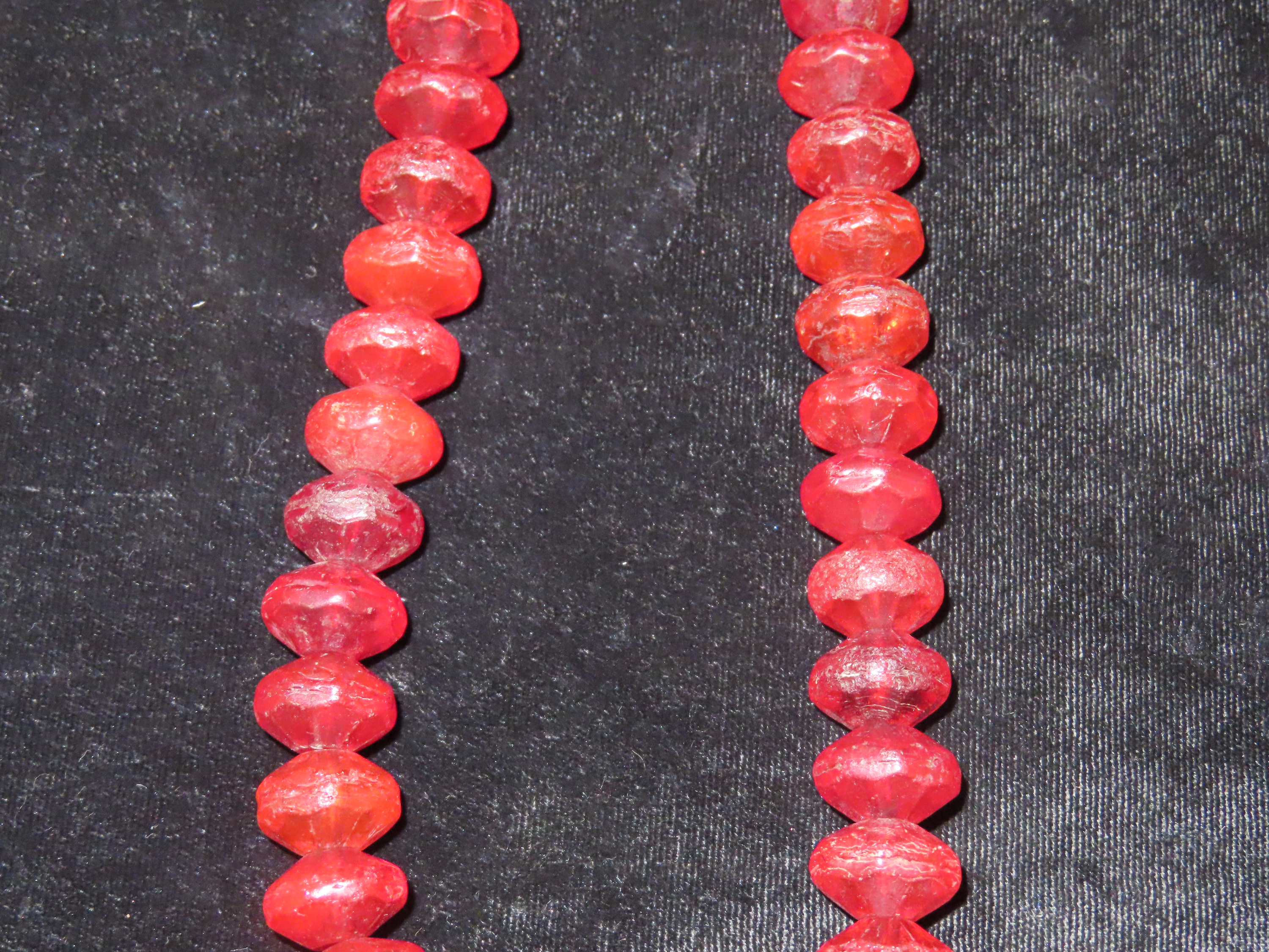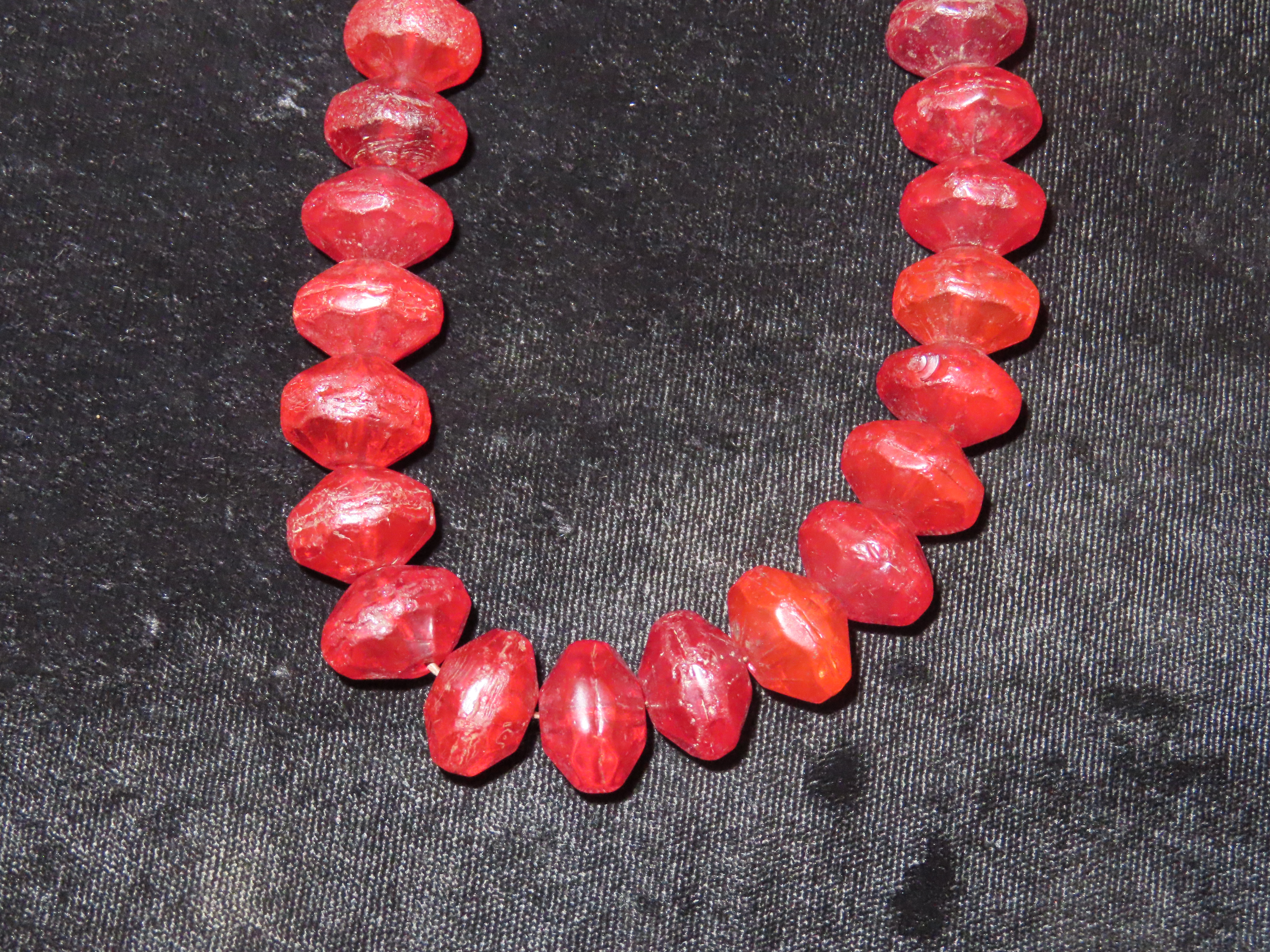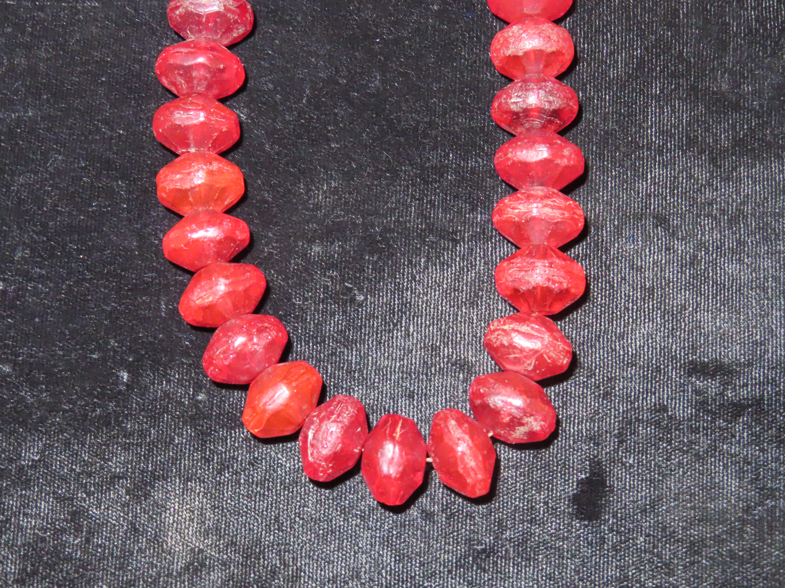 18″ Strand of Old Ruby Red Vaseline Trade Beads, Uranium Glass, Beautiful Deep Rich Color