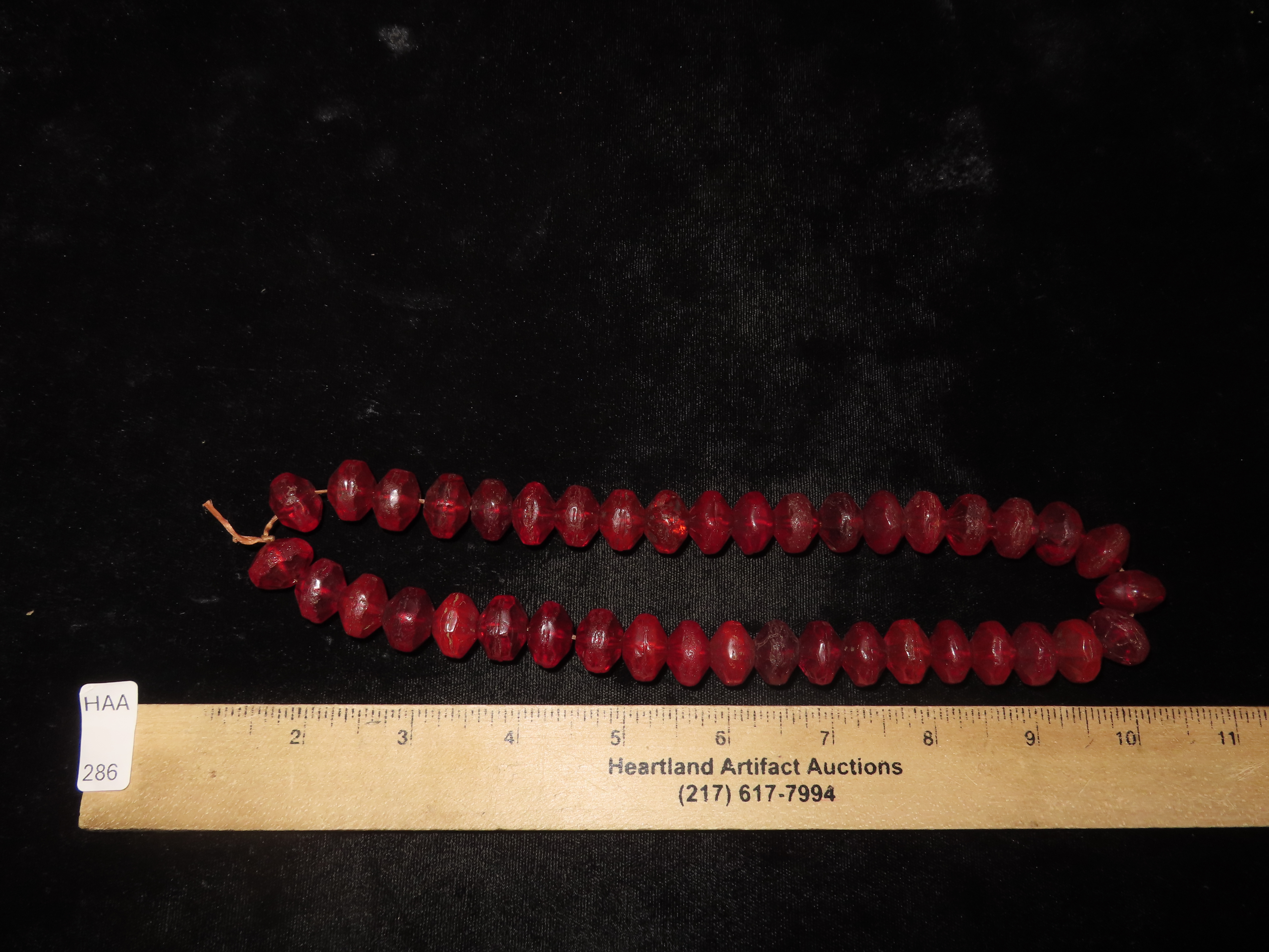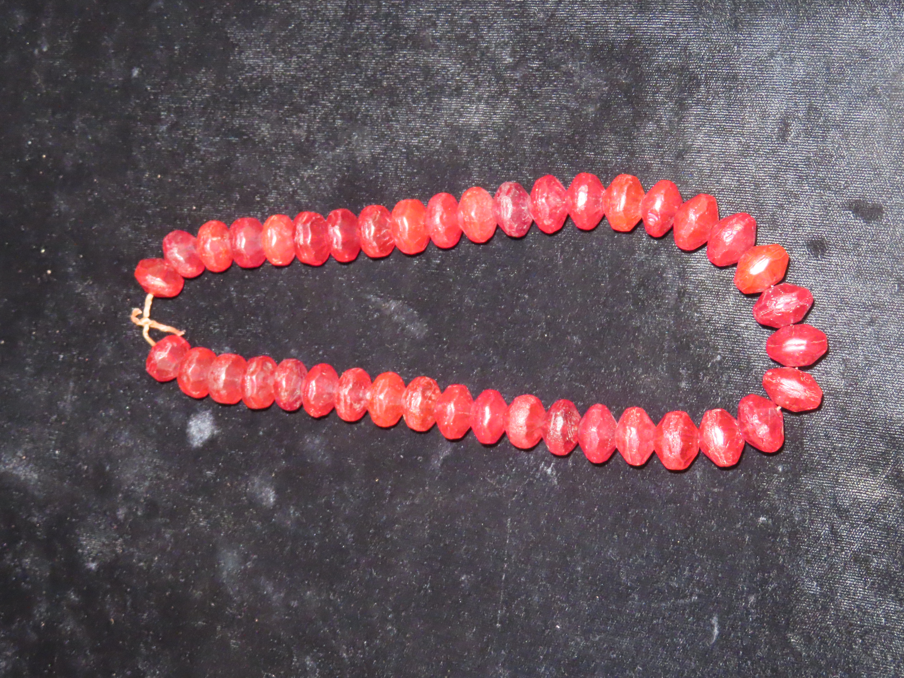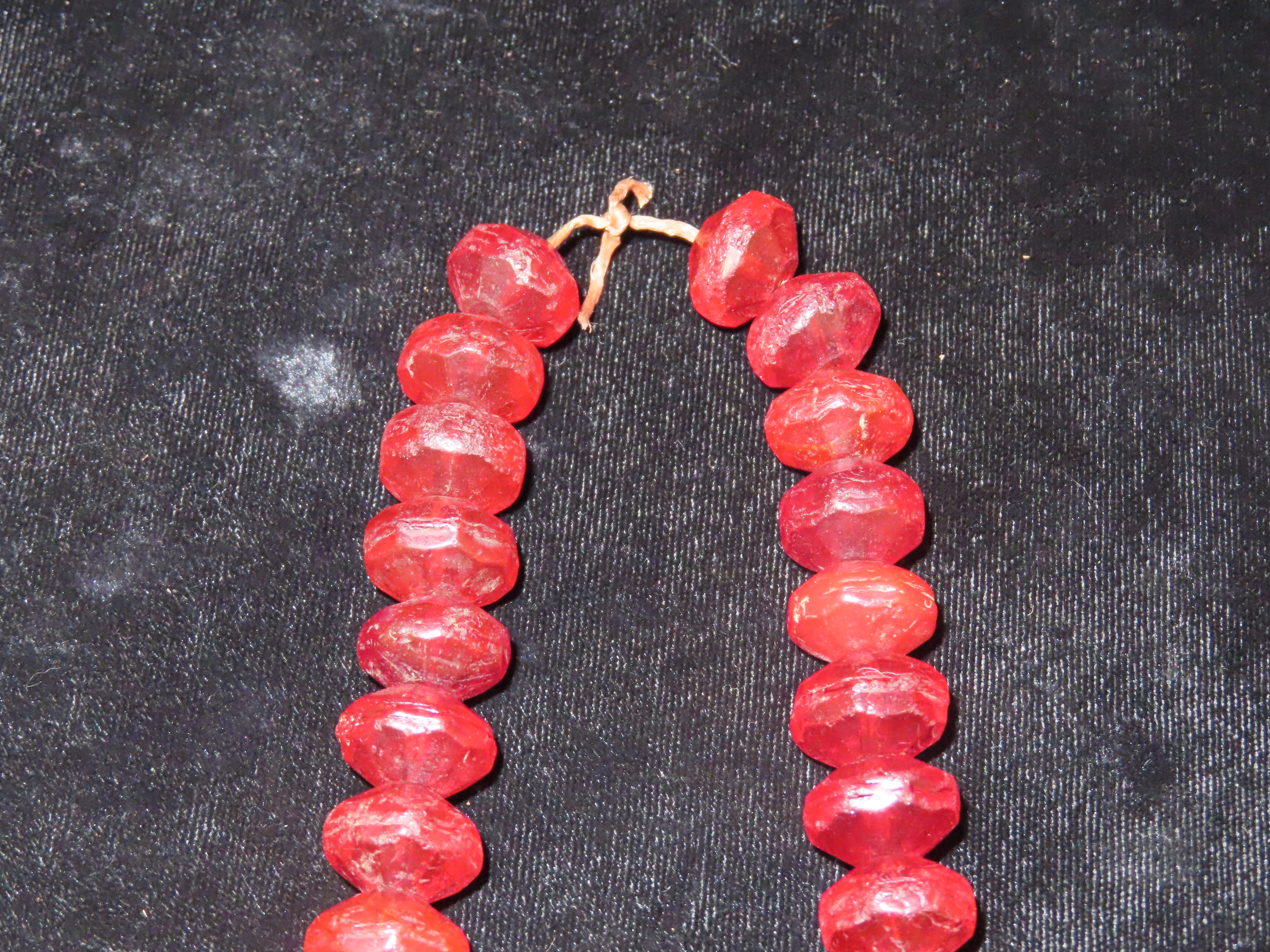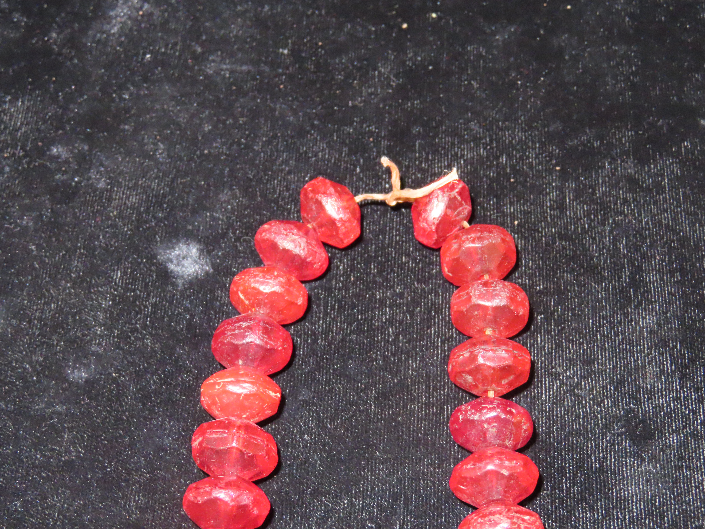 18″ Strand of Old Ruby Red Vaseline Trade Beads, Uranium Glass, Beautiful Deep Rich Color
