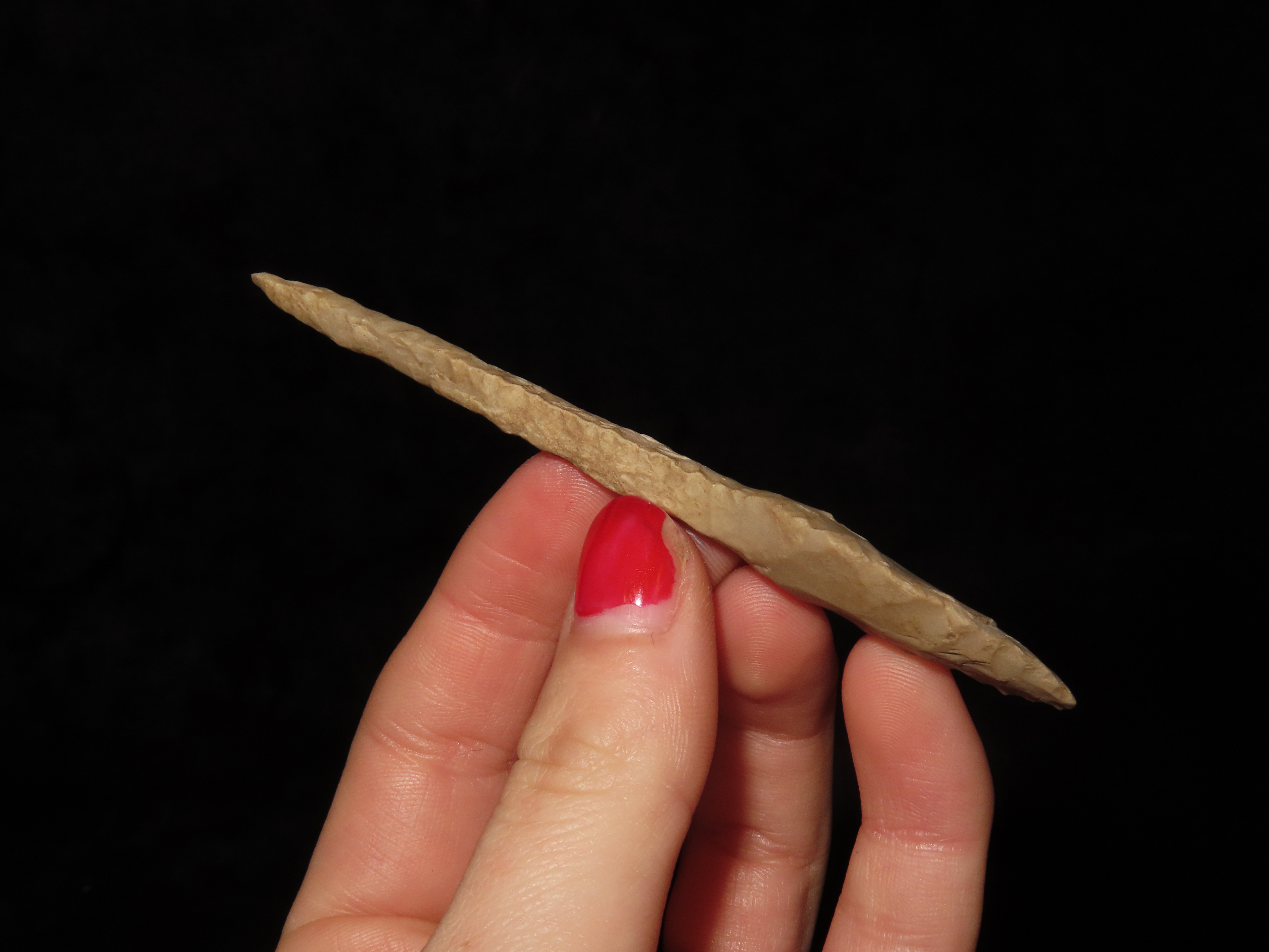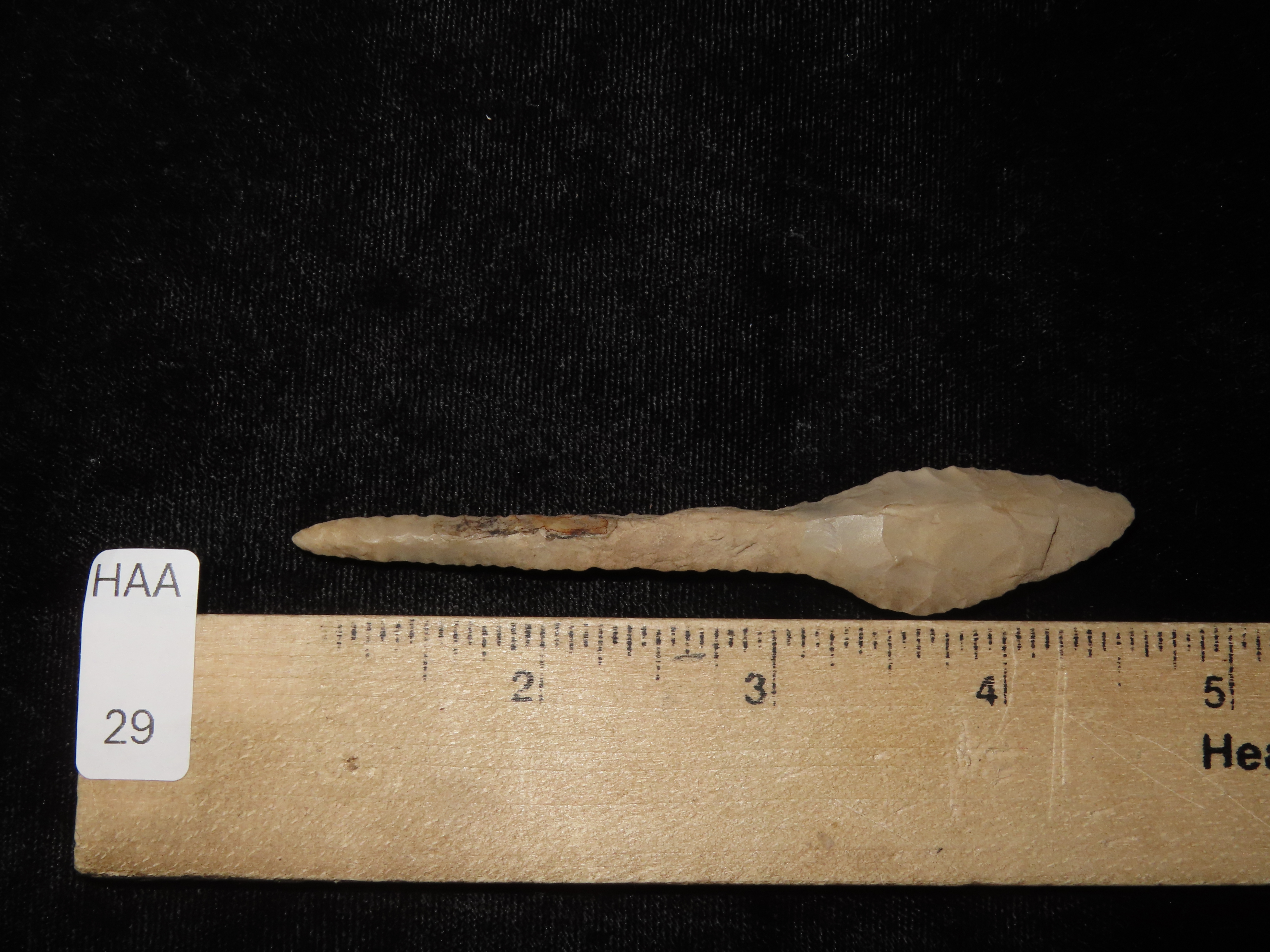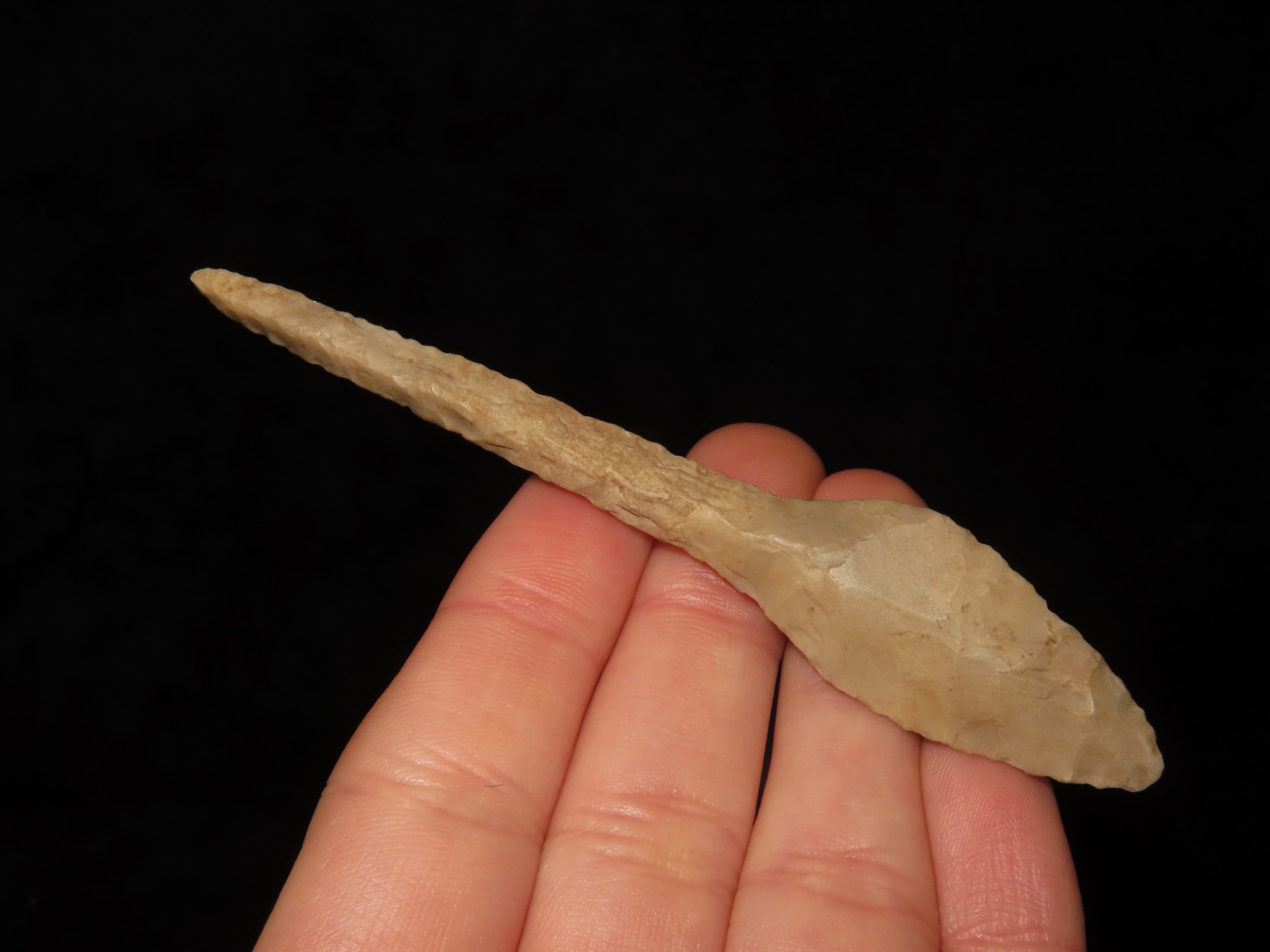 3 3/4″ Paddle Drill, Pottawatomie Co. Kansas. Finely Flaked example with great patina.