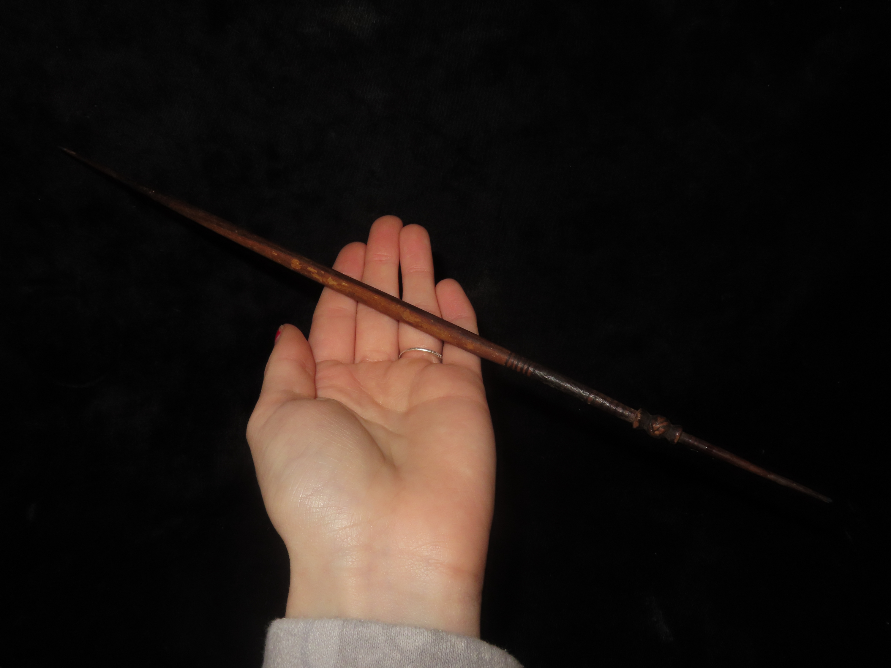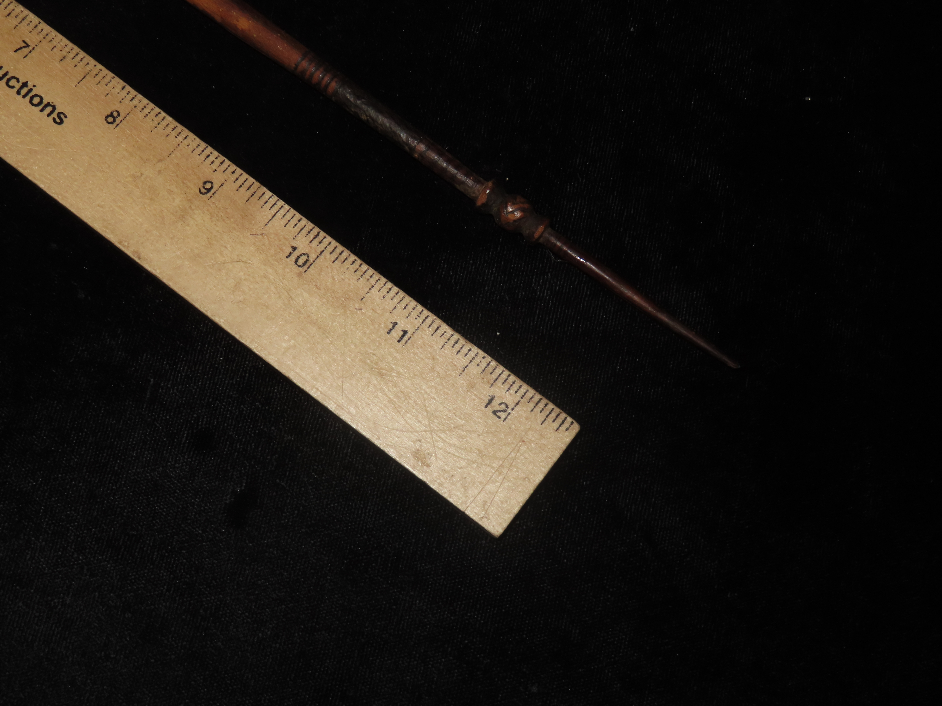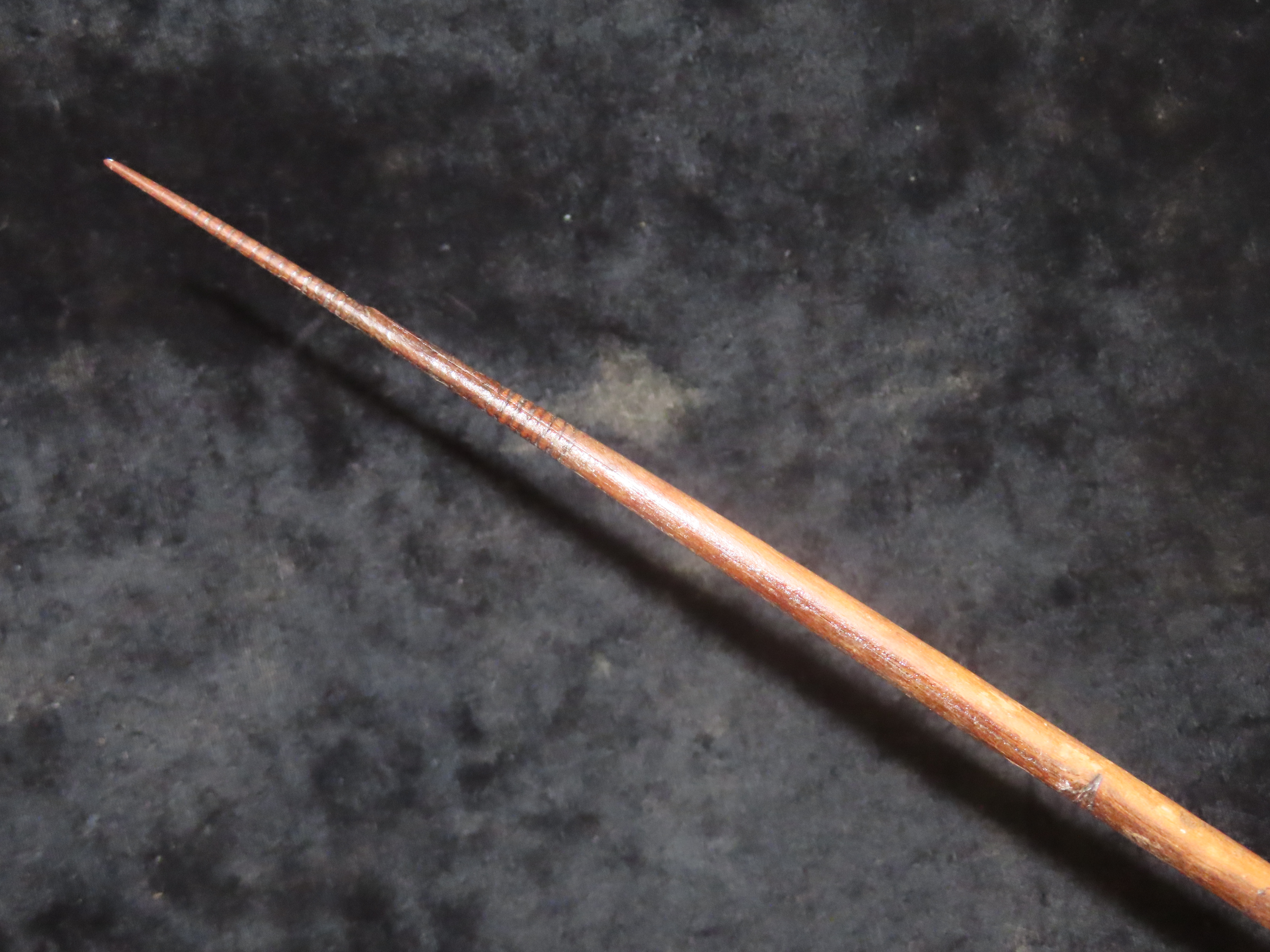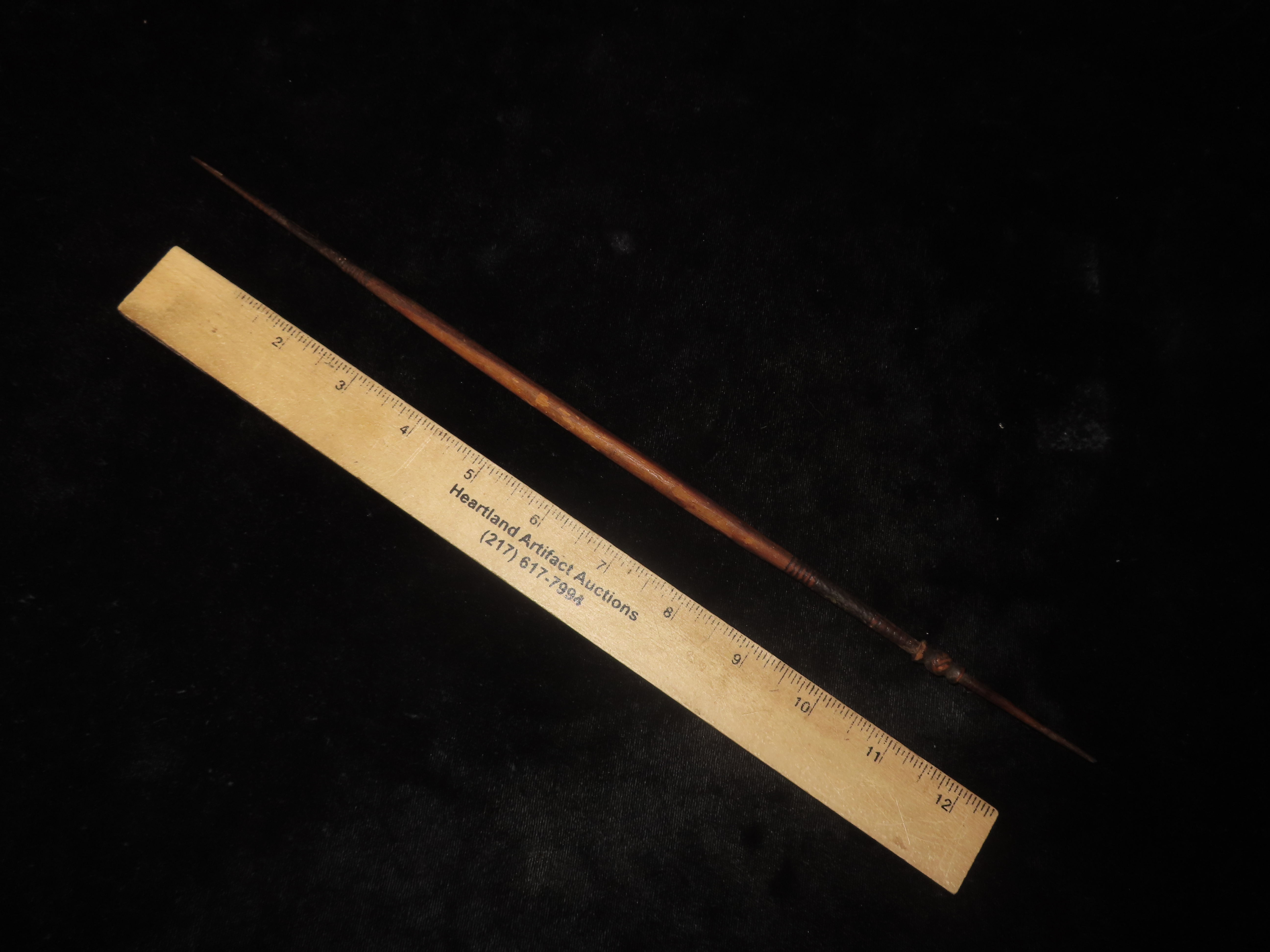 Amazing 14″ Original Spindle Whorl Loom Stick, Peru. Nicely Decorated Zexample with Original Painted designs still present. These were used in the processes for making textiles. Original Perishable Materials Circa 1000-1250 AD.