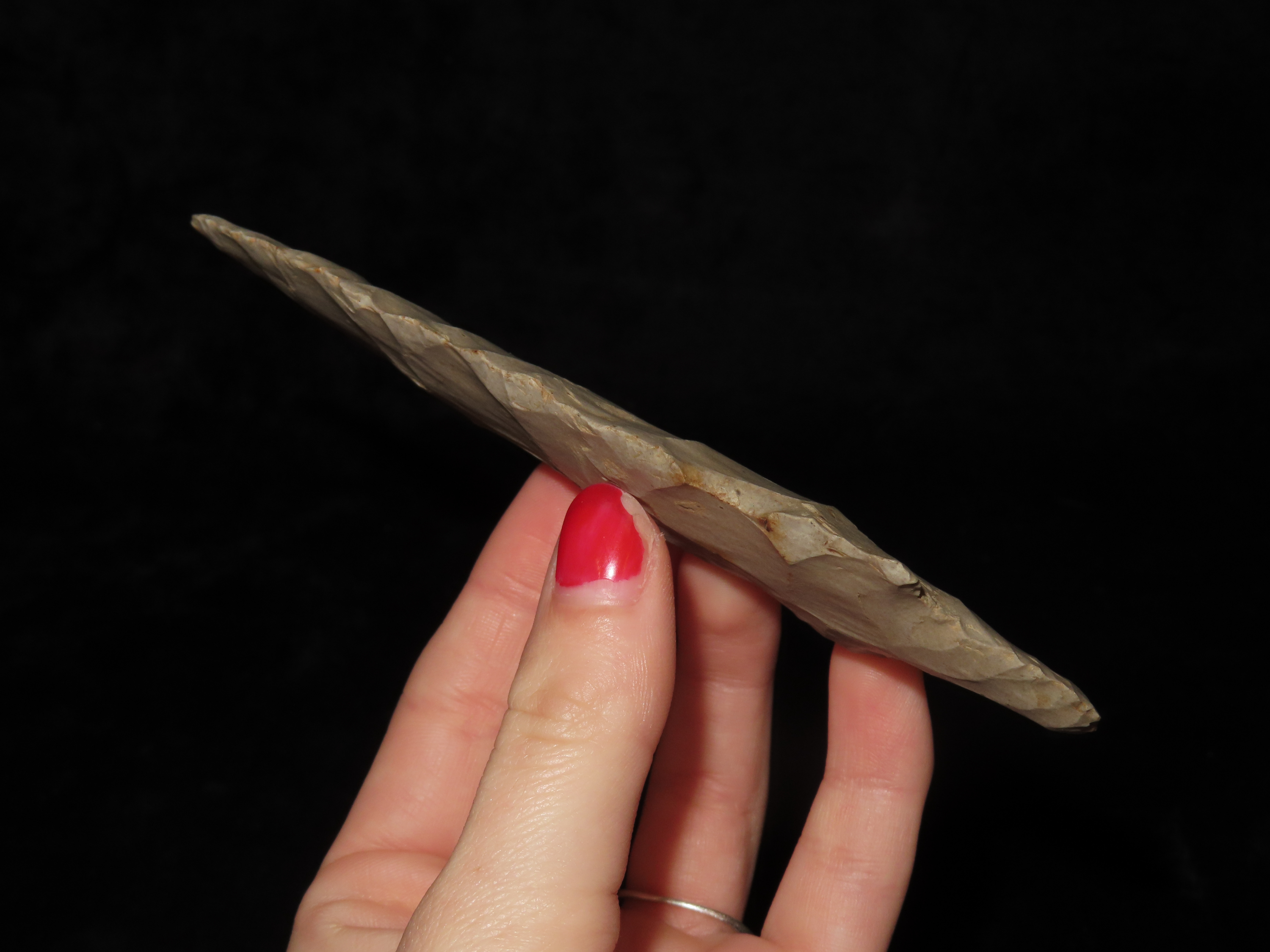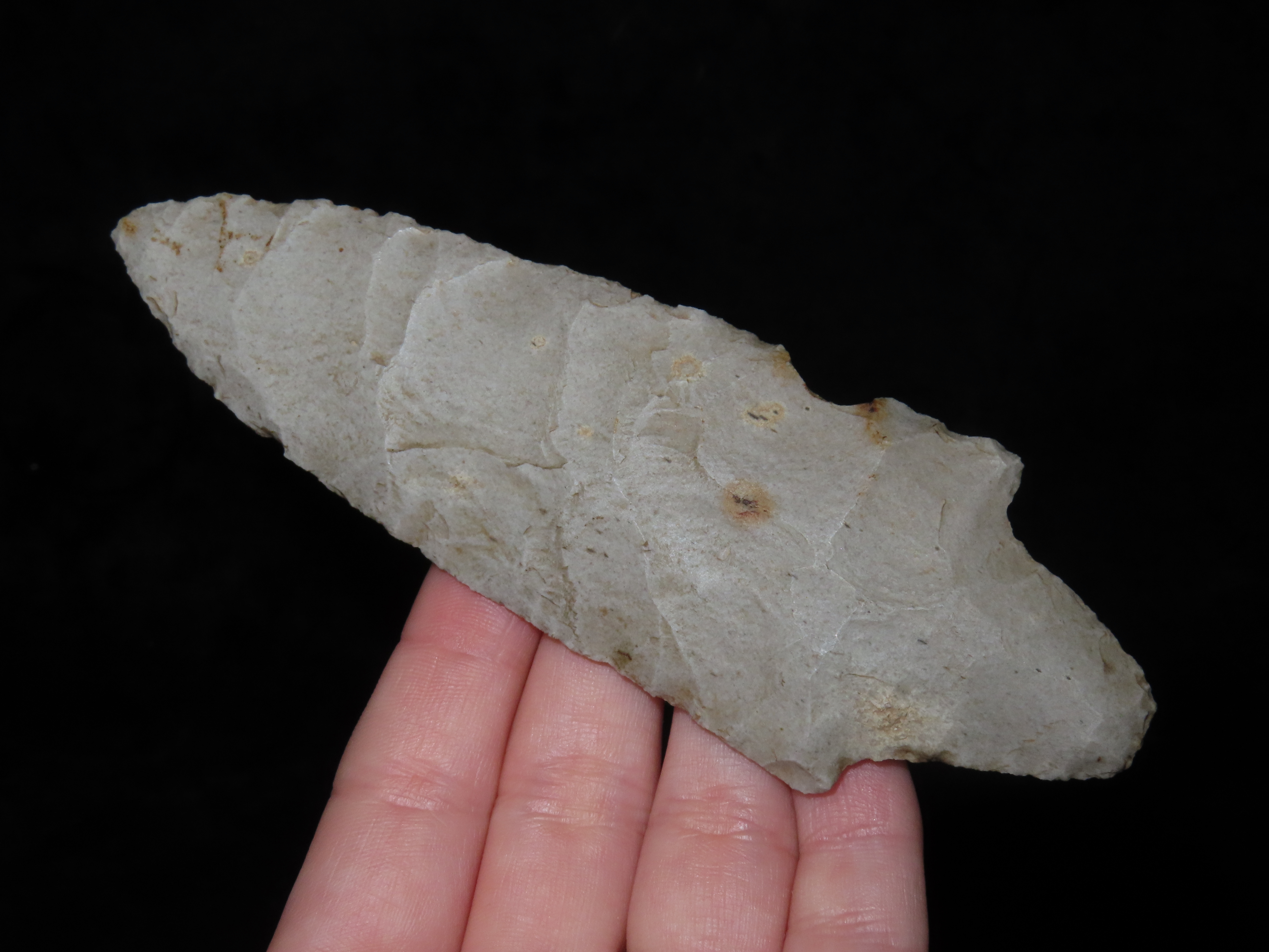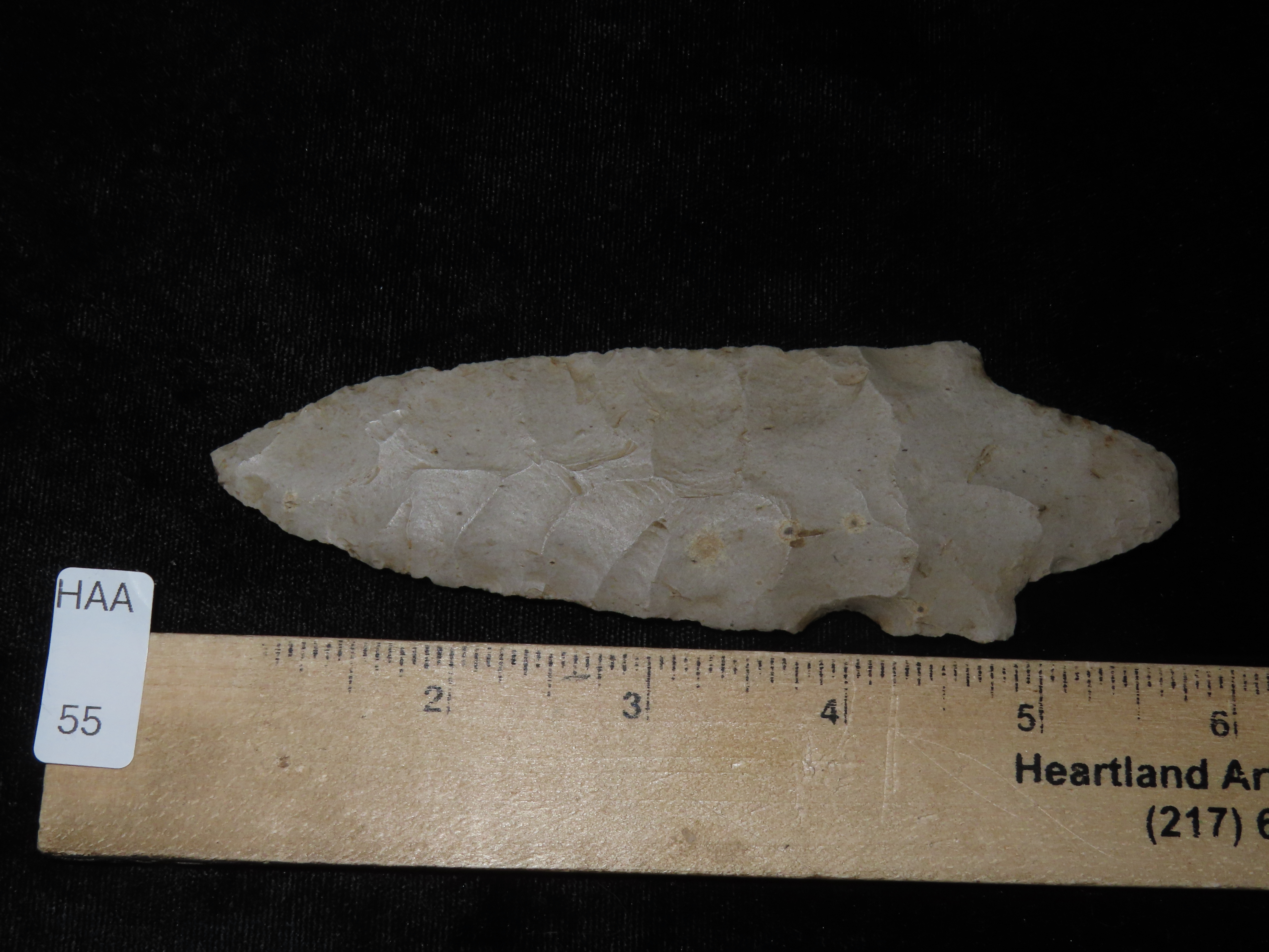 5 1/8″ Cresap Adena / Dickson. Jefferson Co. Kansas. Nice large well flaked example, thin and well patinated.