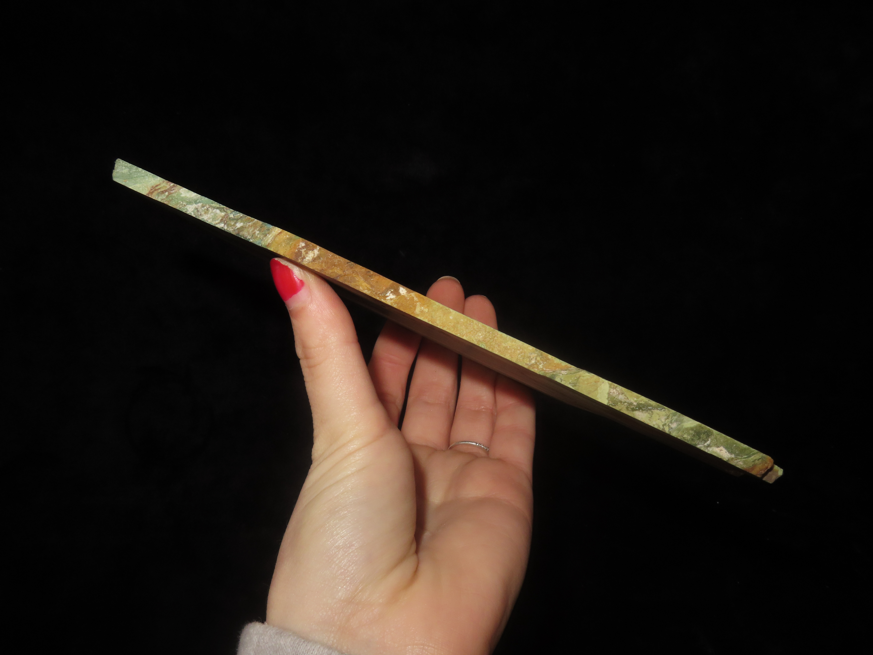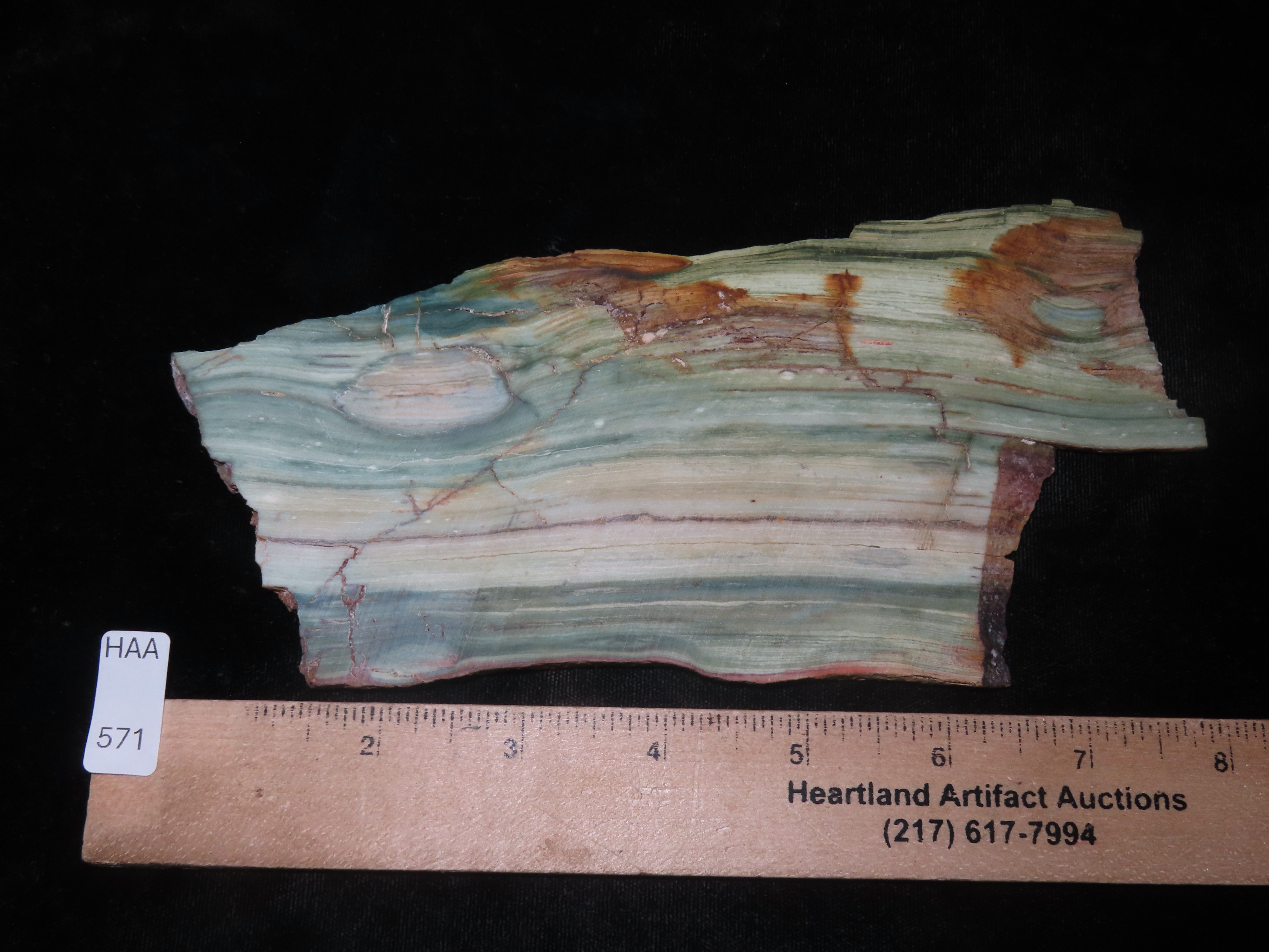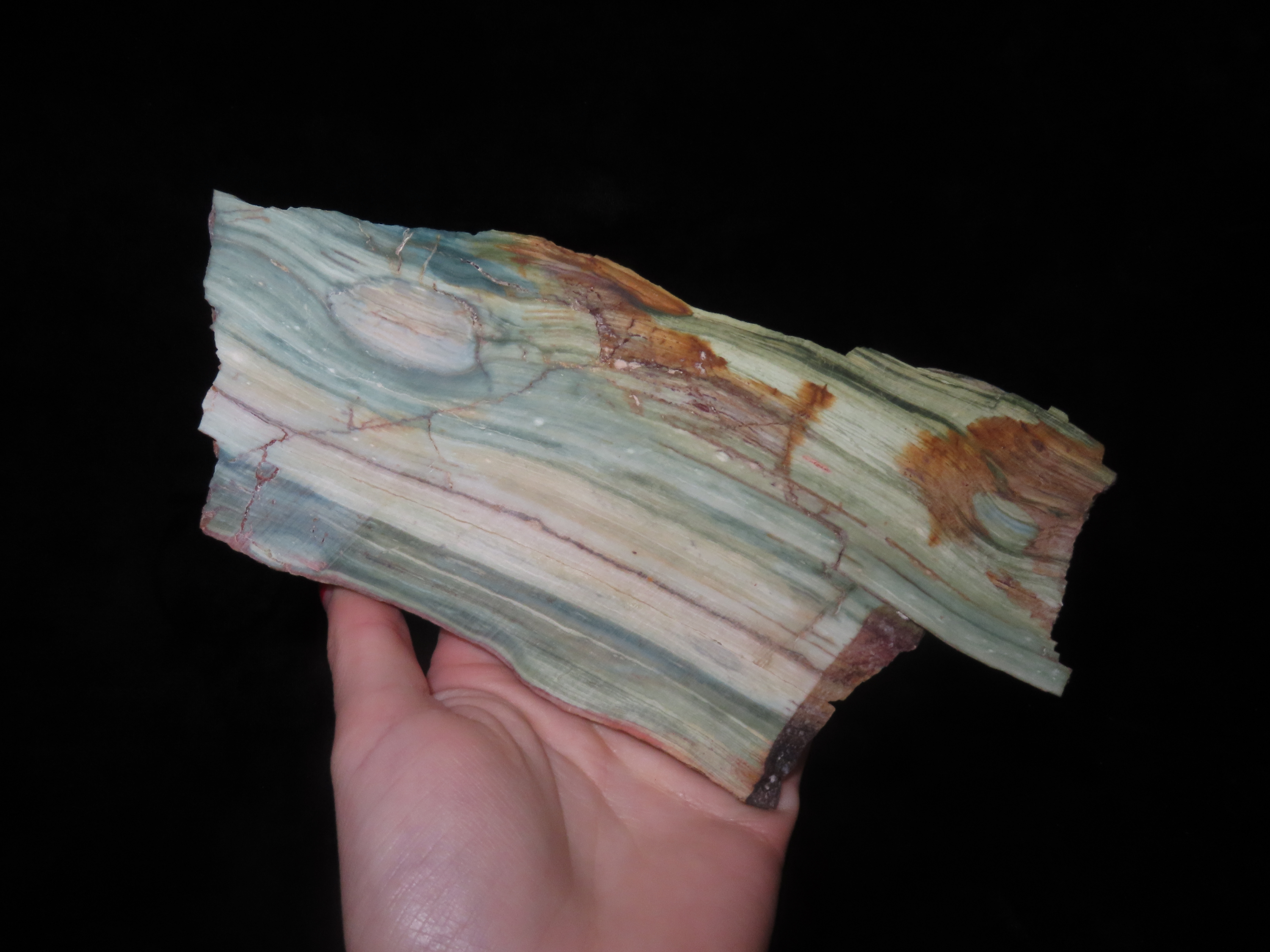 Rare Green & Blue Petrified Wood Slab, 8″ long, Oregon Bogwood, Vibrant Greens & Blues mixed with Tan & Brown with hints of Red & White. Much Harder to Find Color Pattern