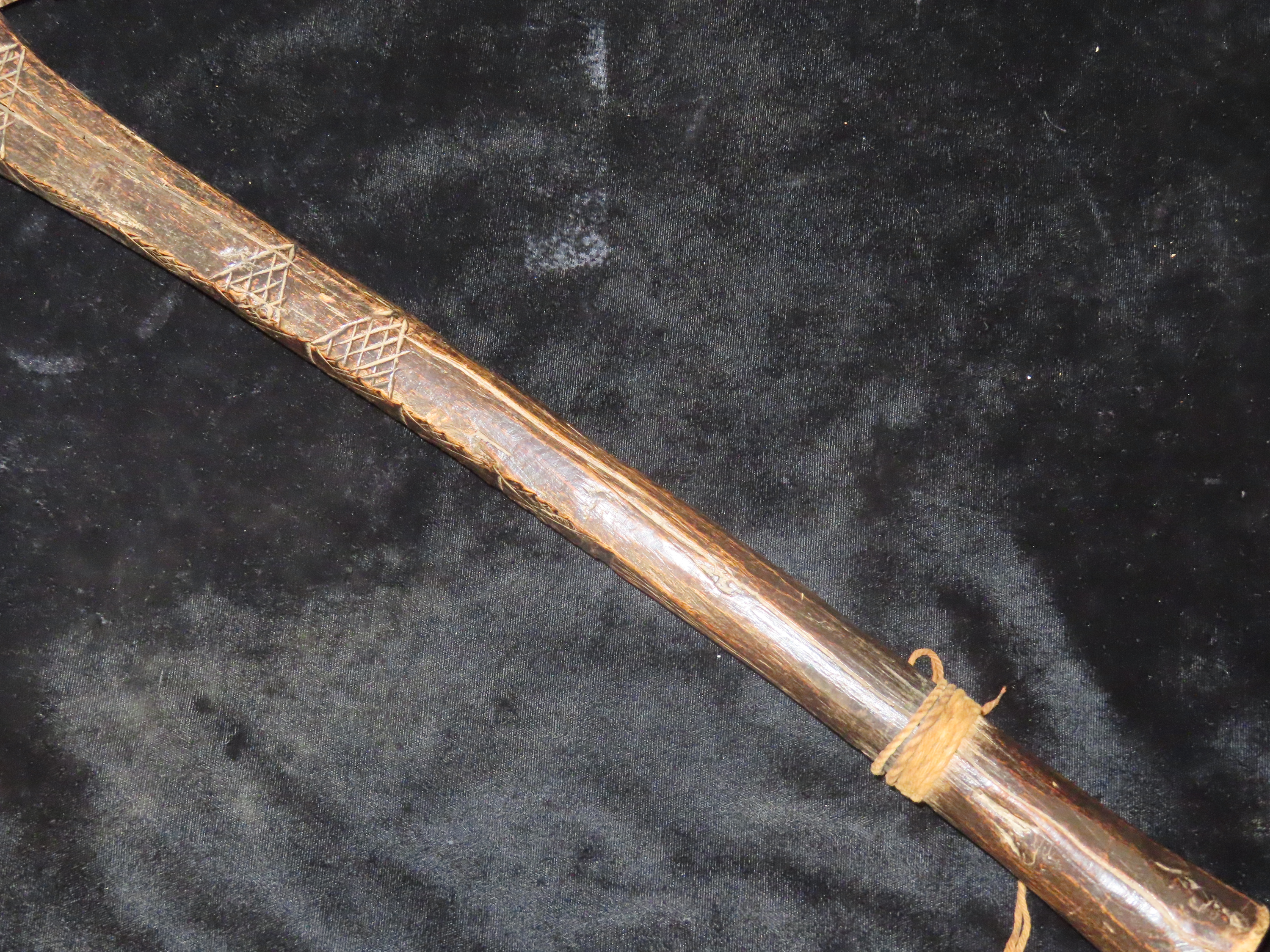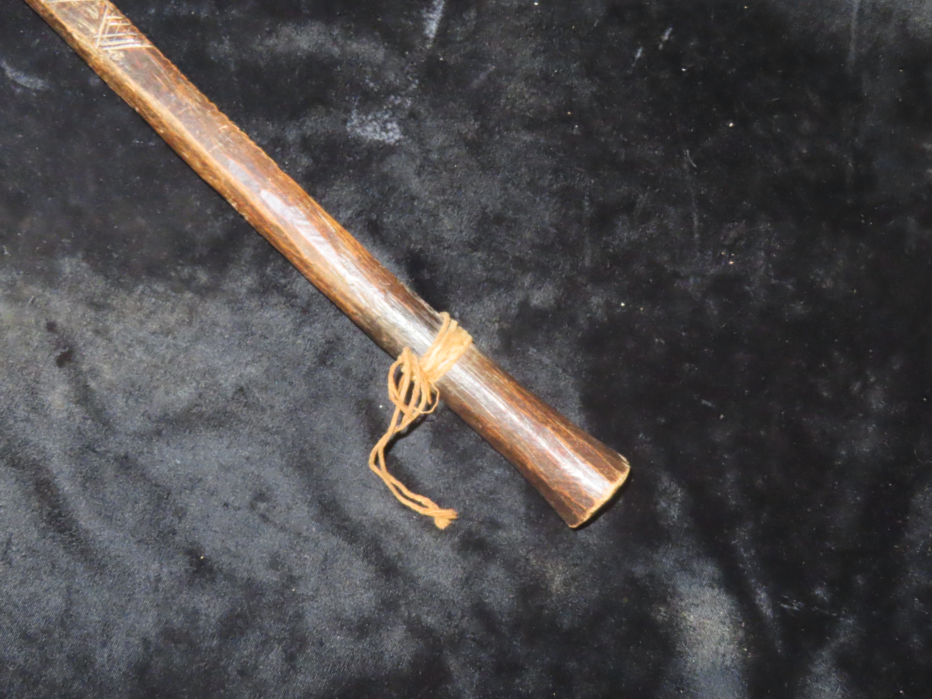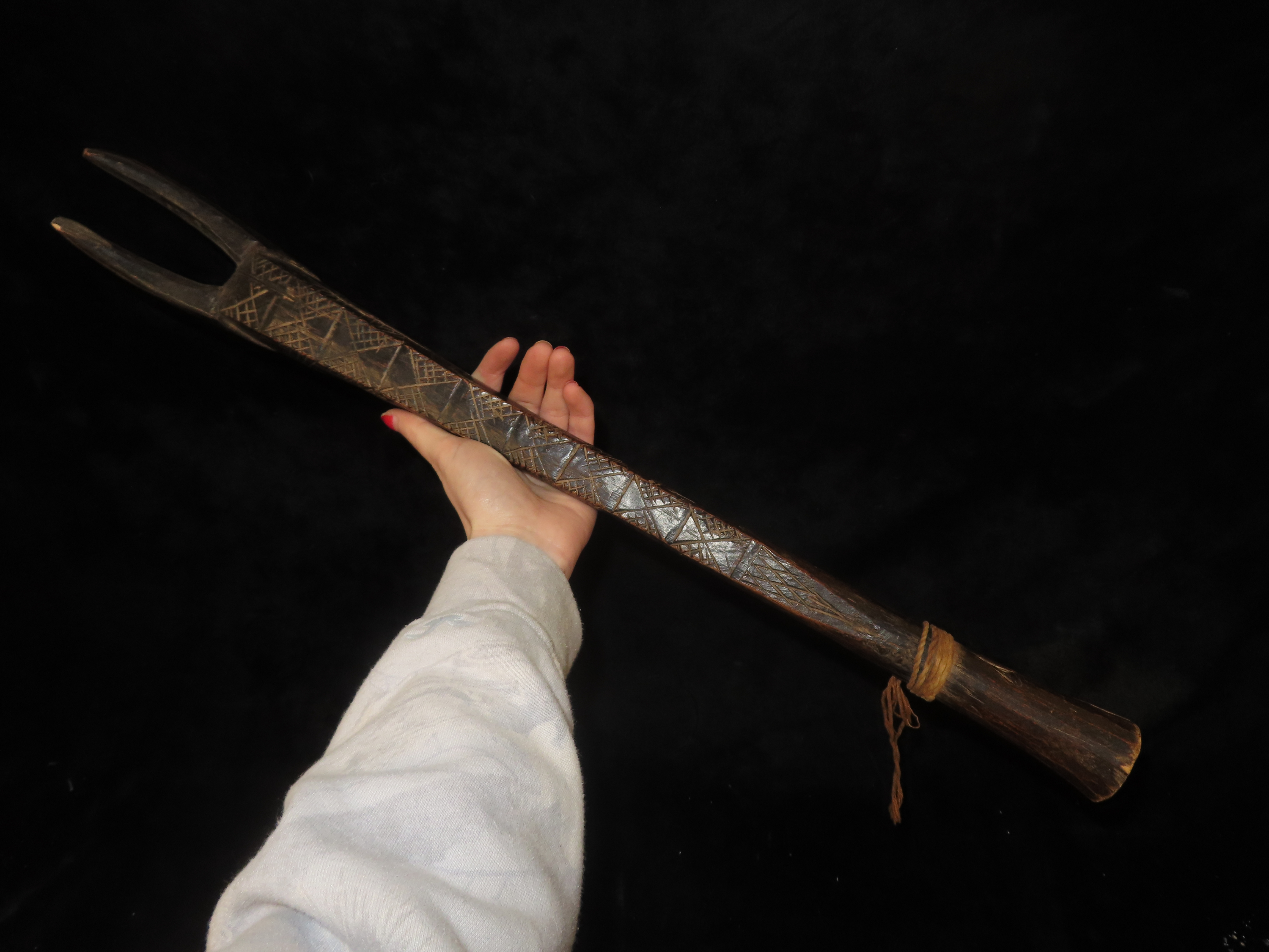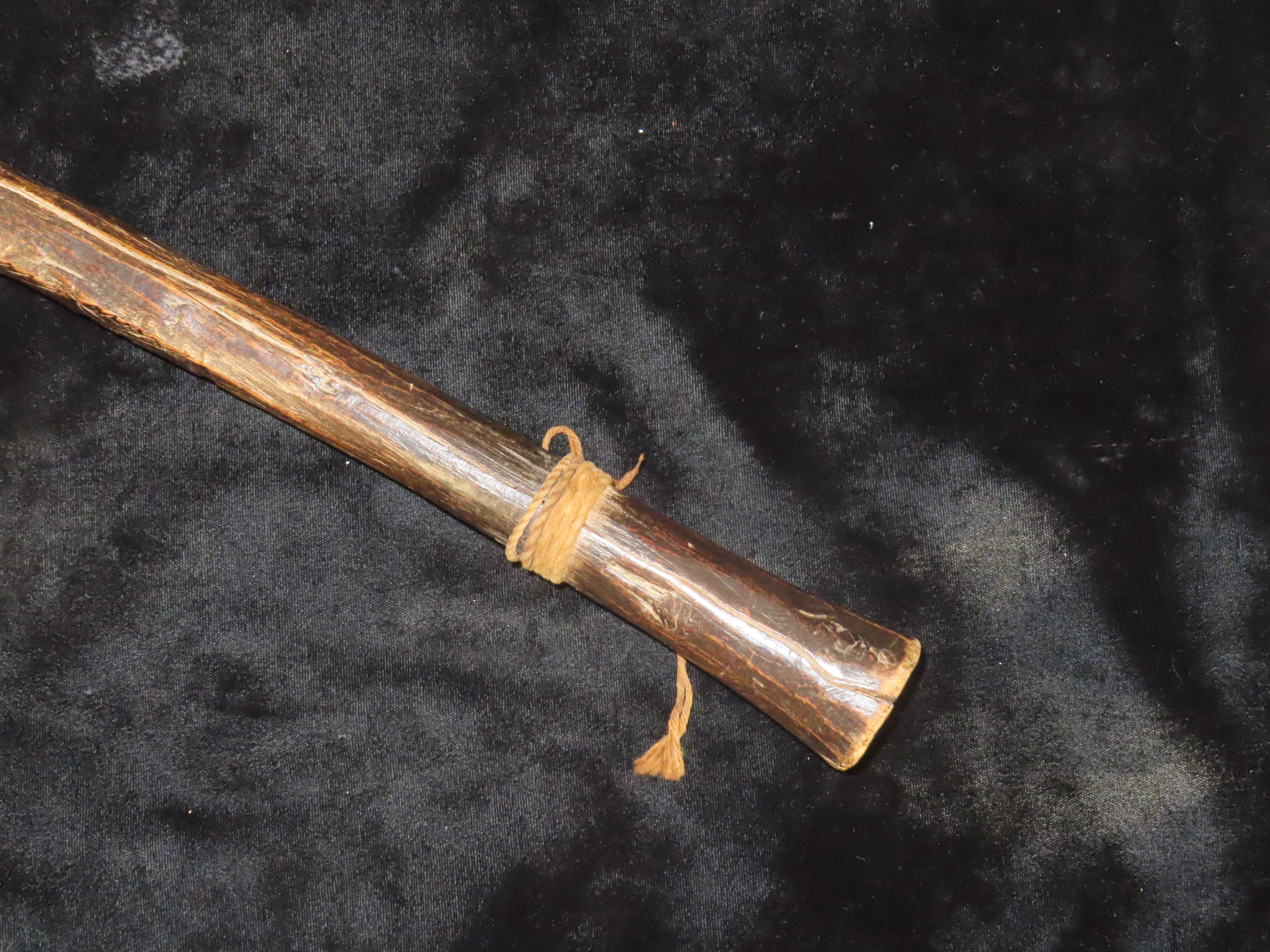 Amazing 24″ Animal Effigy Duckbill hafted Axe, Mali. Great, Well Designed handle with excellent age and patina. Comes with a Custom museum metal display stand.