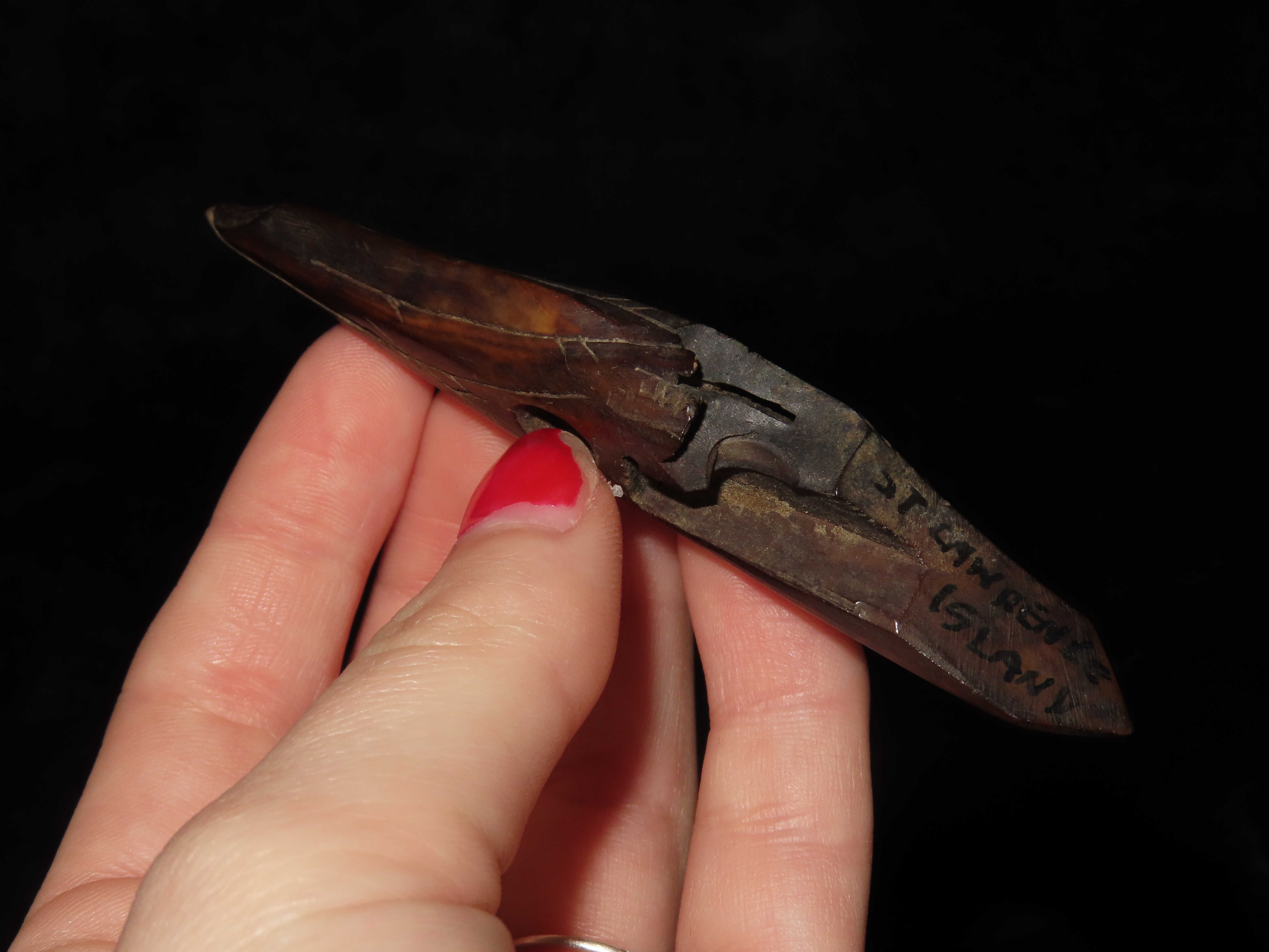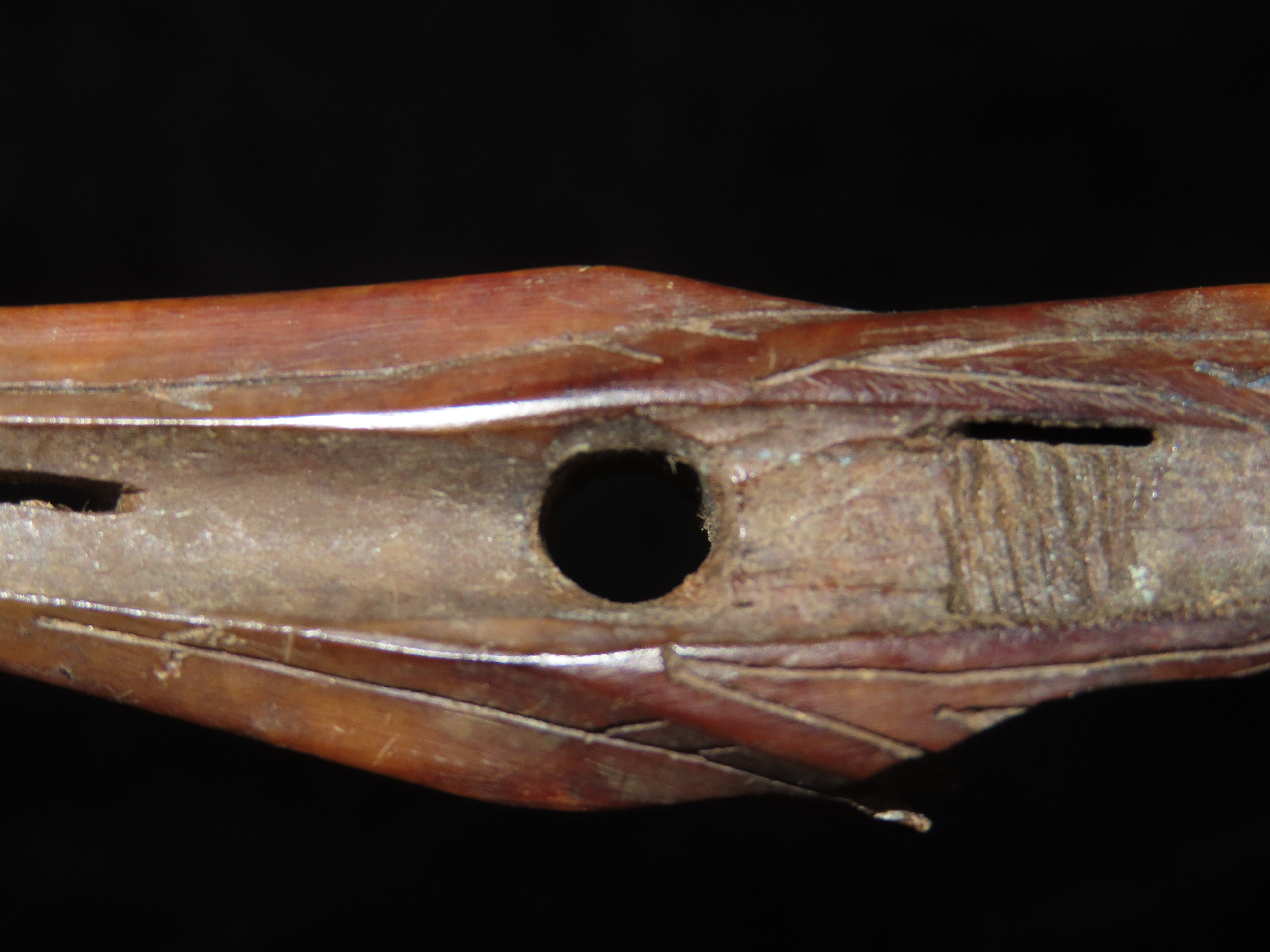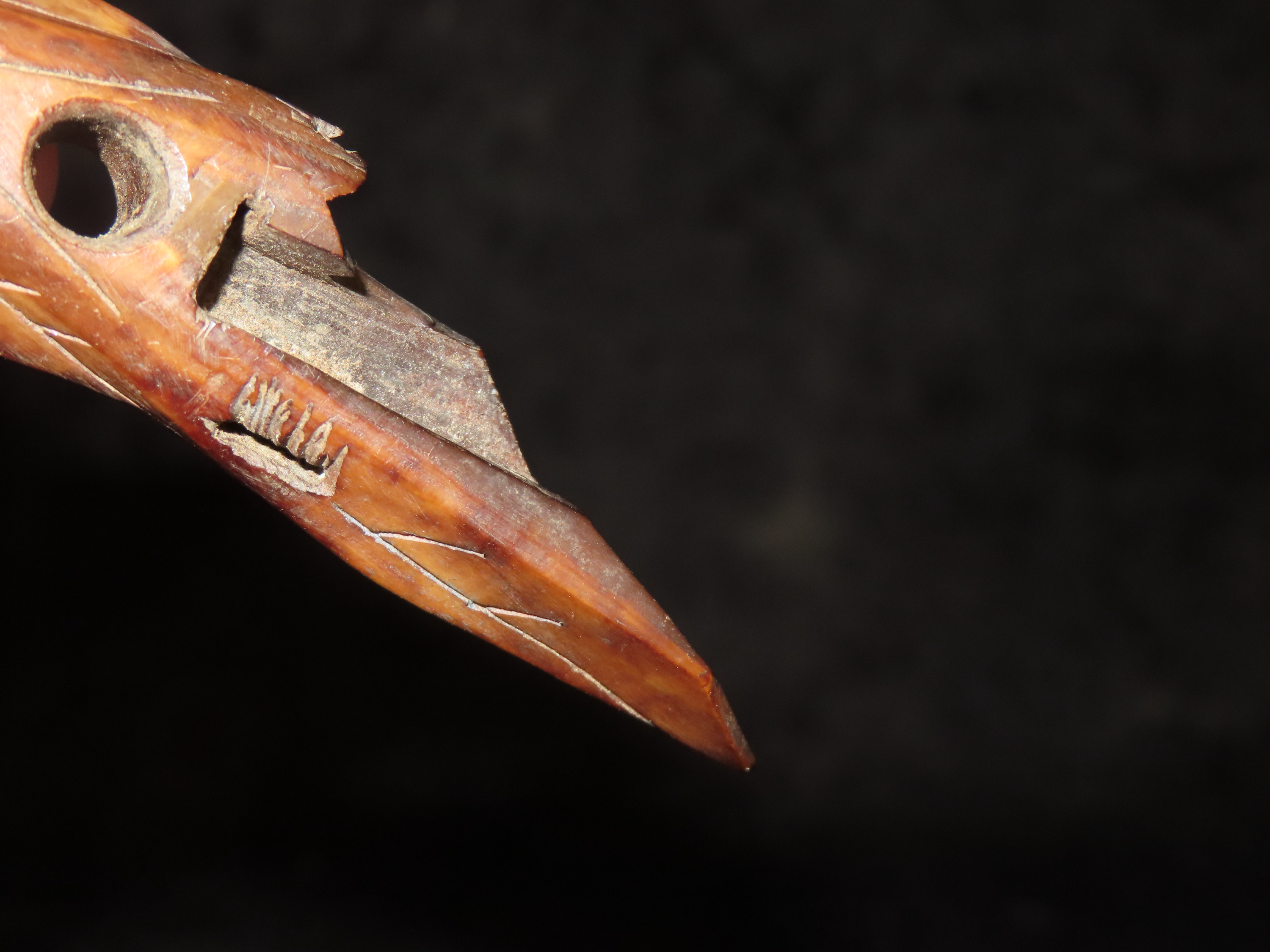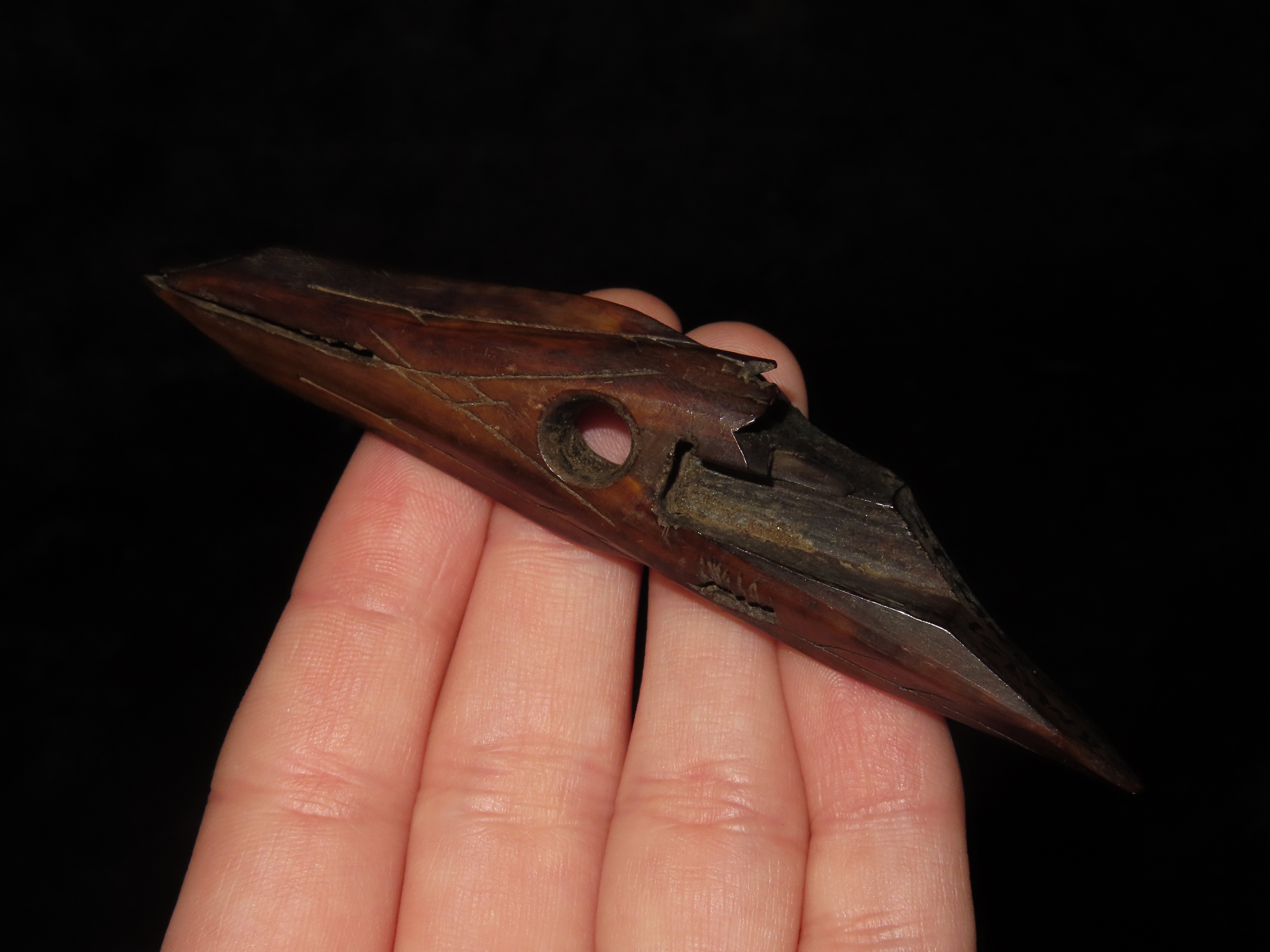 3 3/4″ Engraved Harpoon, Alaska, St. Lawrence Island. Amazing Example with intricate engraving on both sides, amazing polish, and heavy Patina! Alaskan Eskimo Harpoon Toggle.