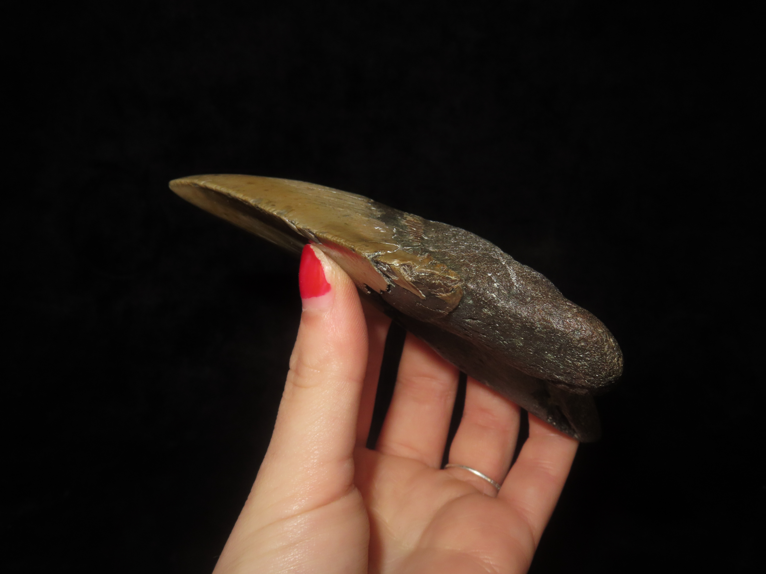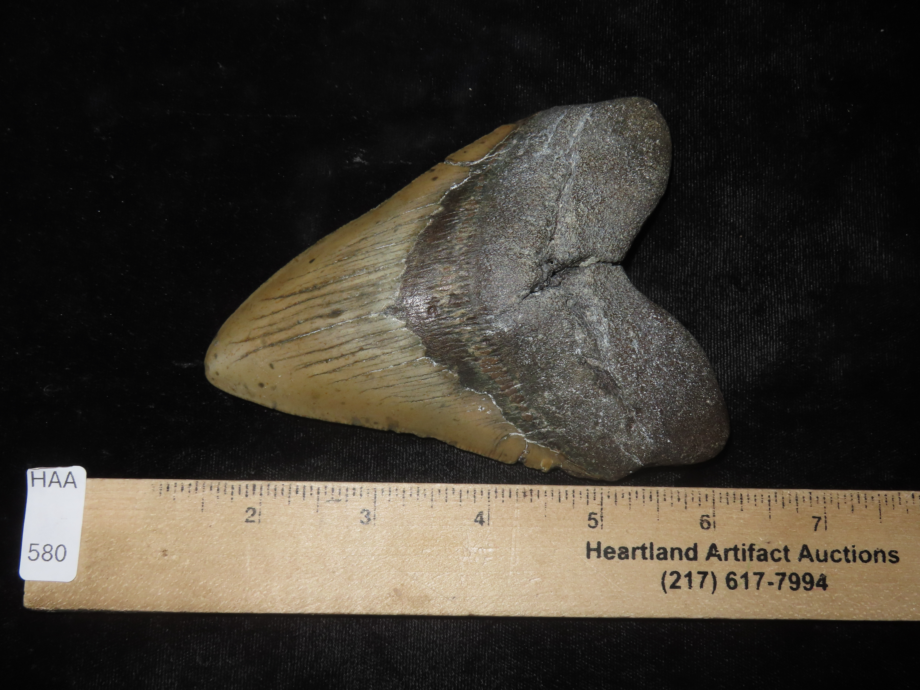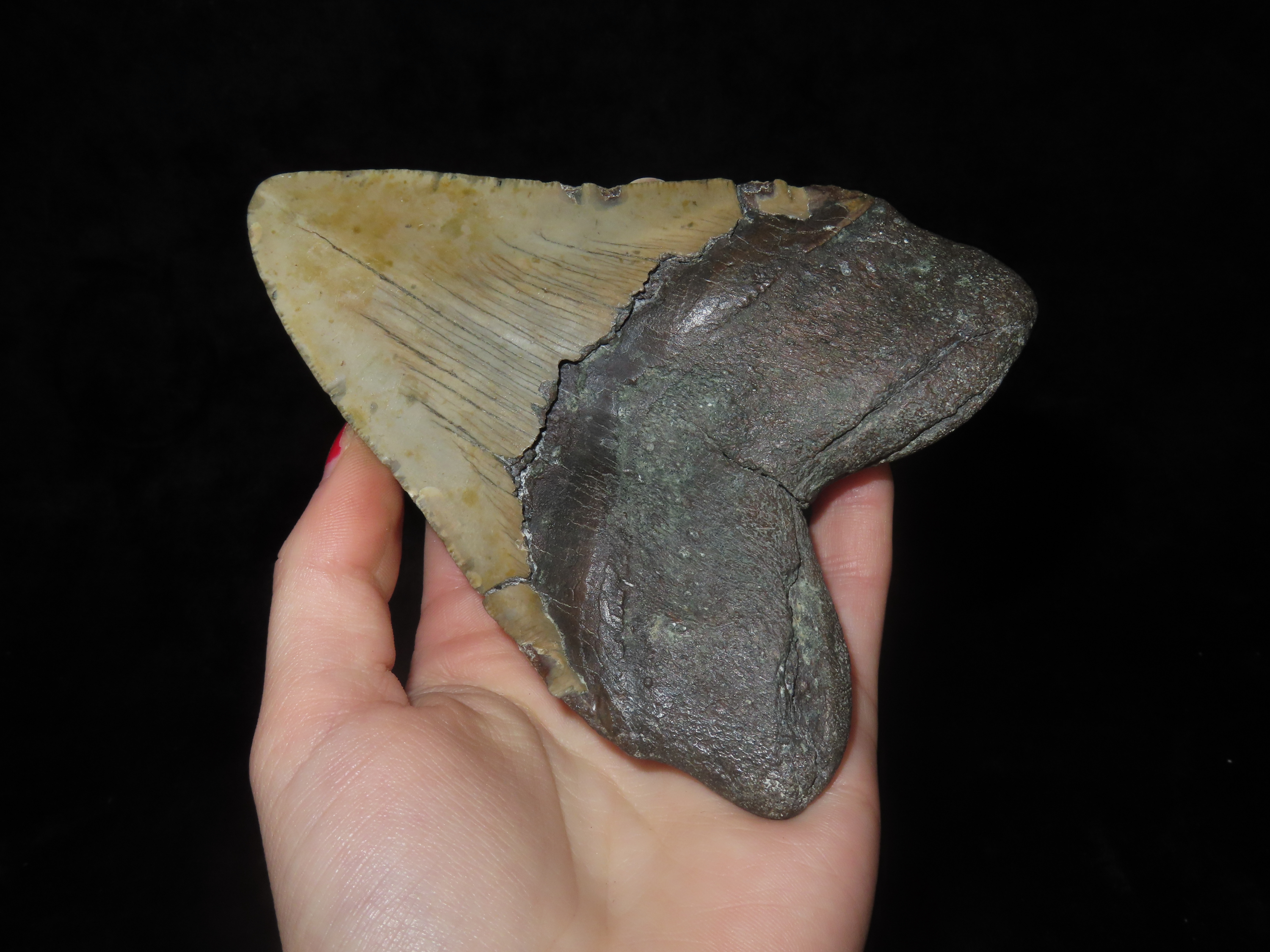 Incredible 5″ MASSIVE Megalodon Shark Tooth, 2.5-23 Million Year Old Fossil found off the coast of the Carolinas. No Repair, No Resto, No Polishing. Super Example!