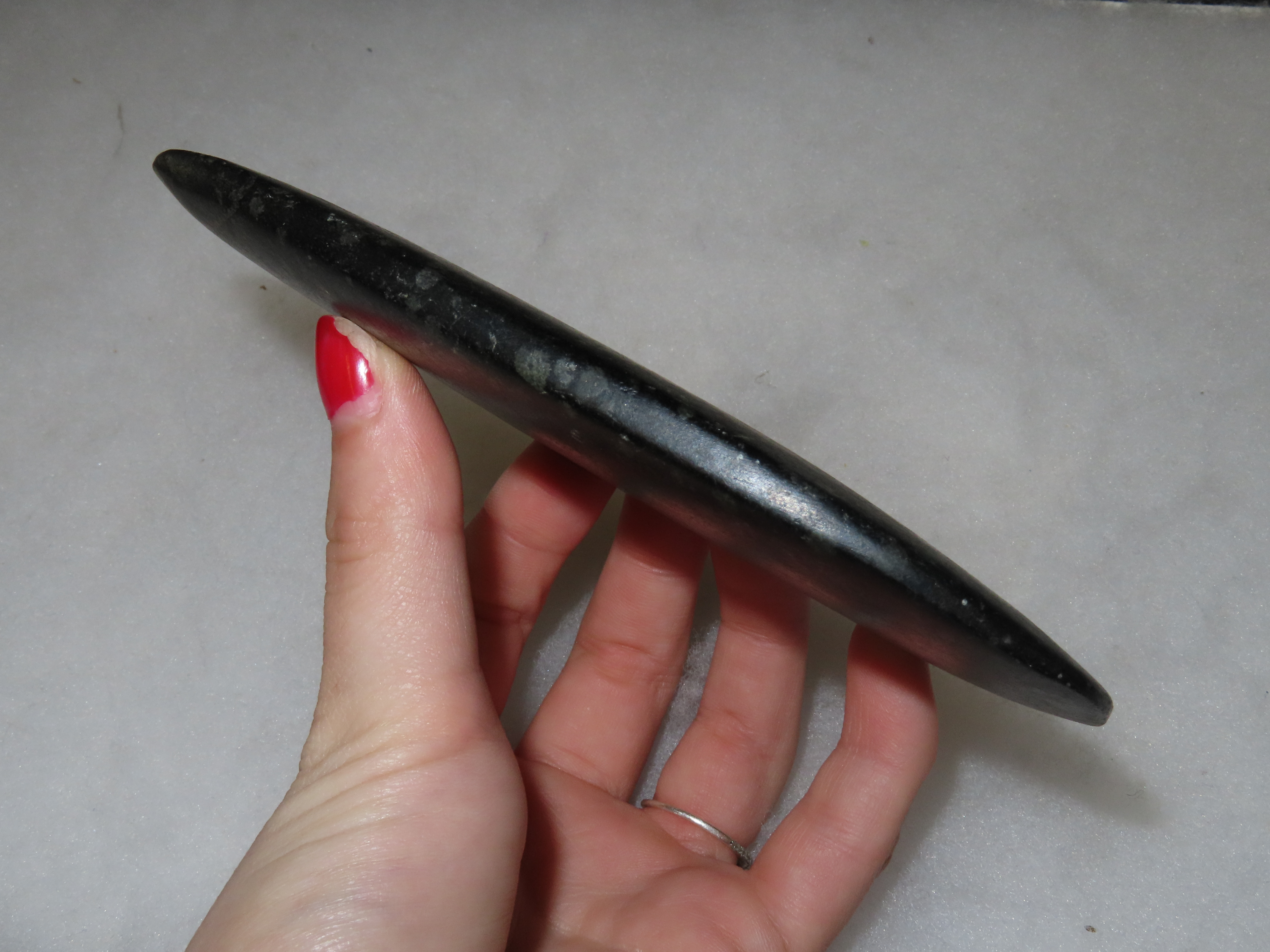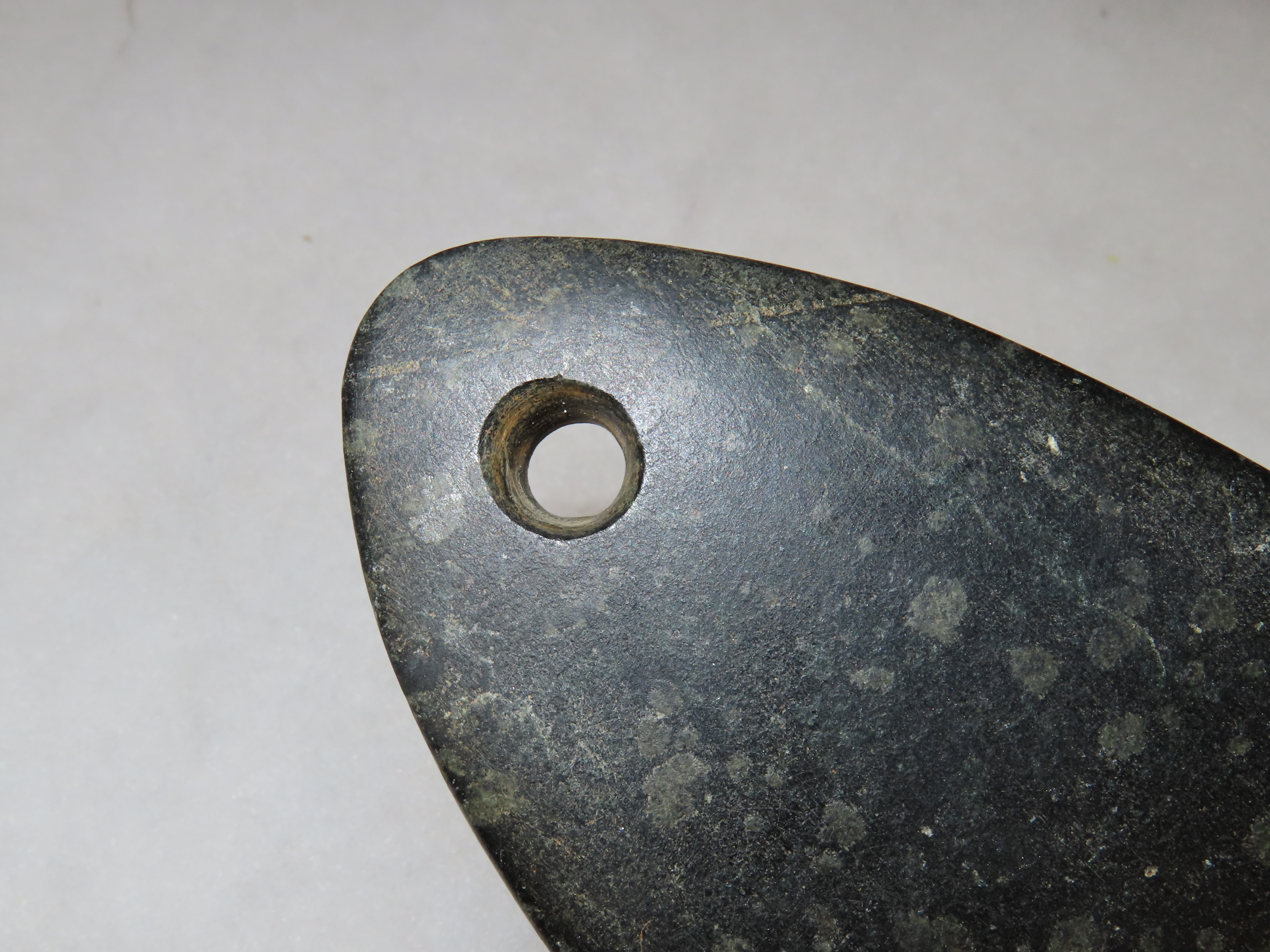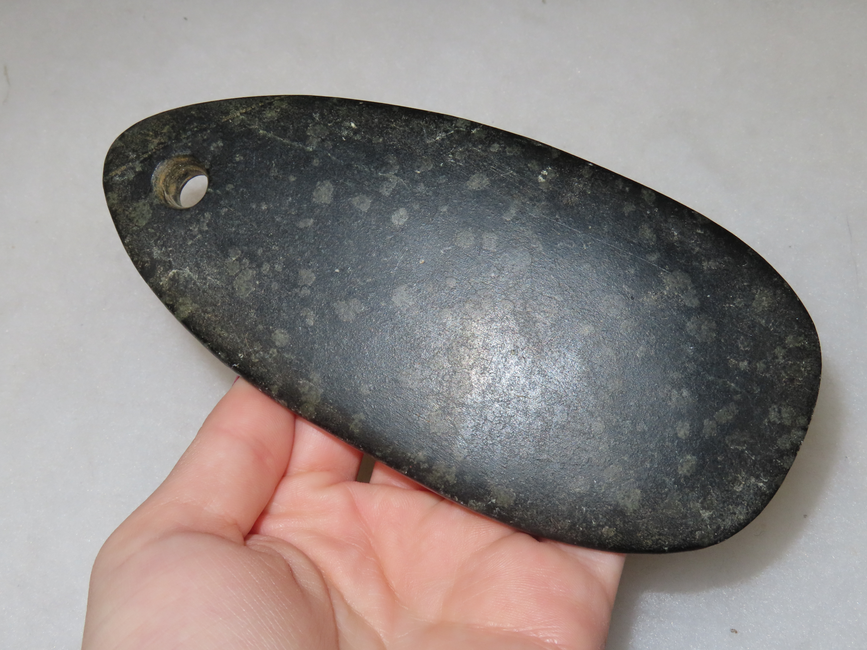 Amazing 5 5/8" Hardstone Pendant, Madison Co. Illinois. Motley COA. Ex Floyd Ritter Collection. Nice large example with great polish and no brainer patina.
