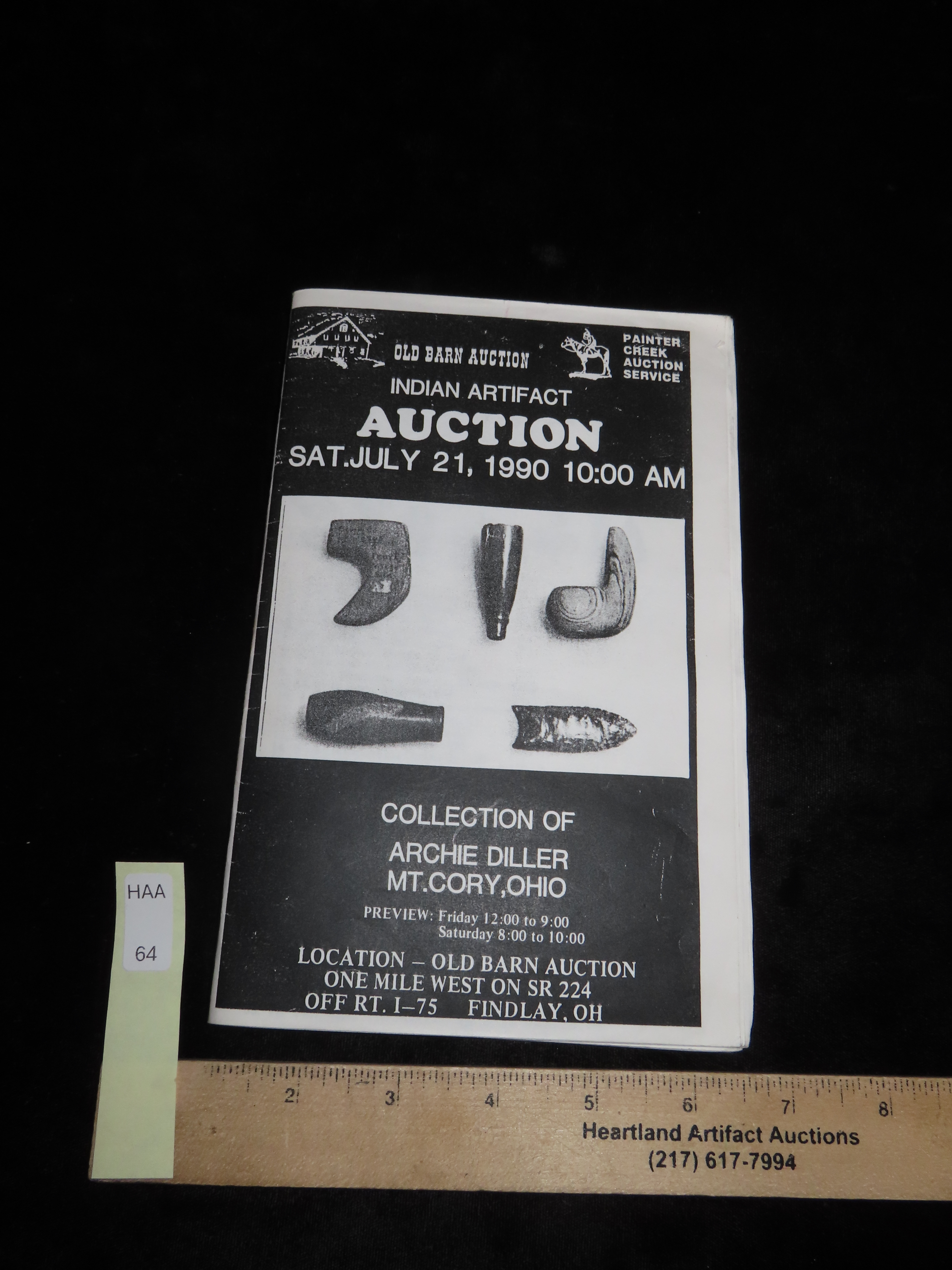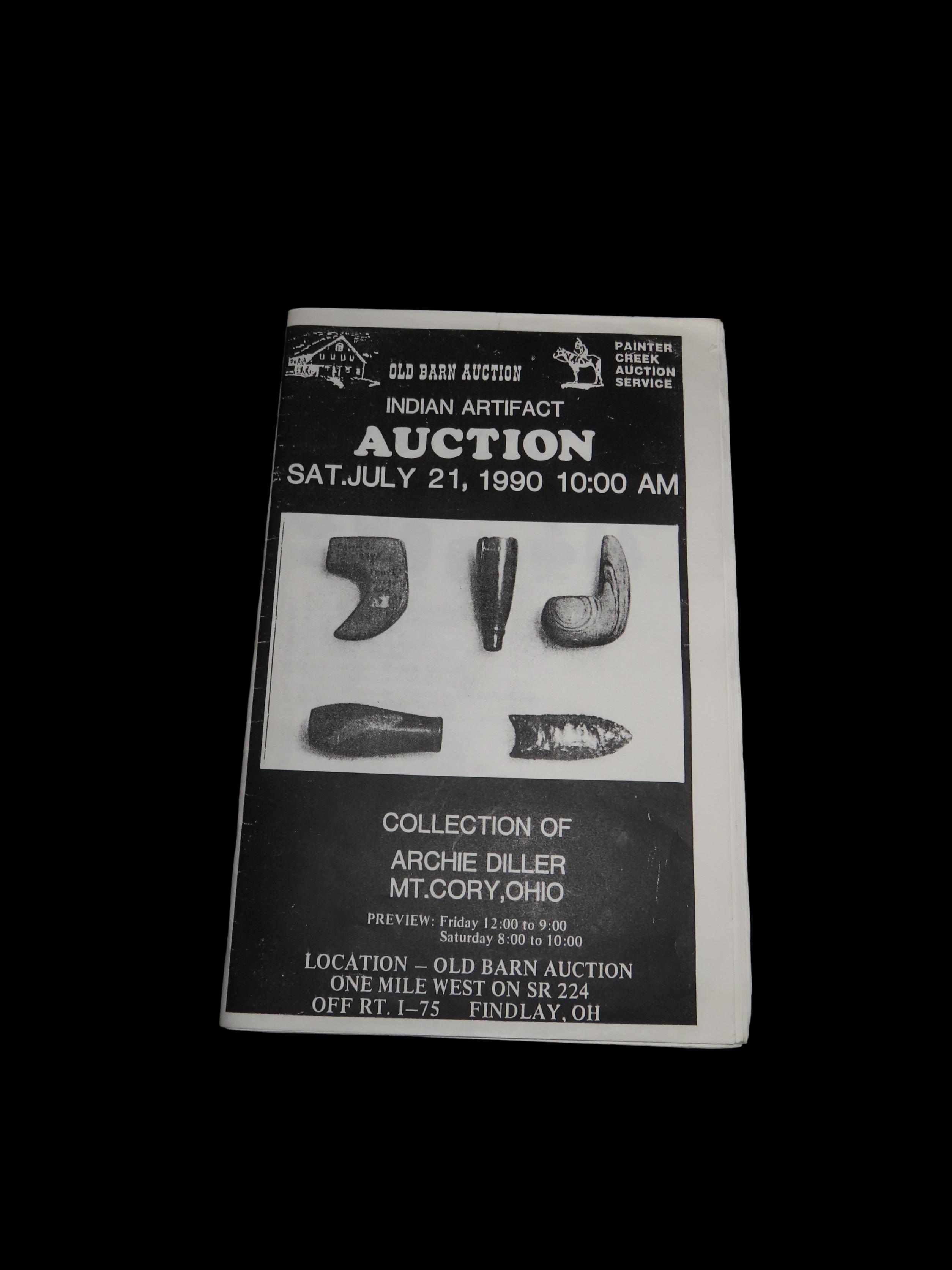 1990 Archie Diller (Ohio) Indian Artifact Collection Auction Catalog, Old Barn/Painter Creek Auction Service, Full of Pendants & Gorgets, Bannerstones, Axes, Pottery, Arrowheads, Pipes, Birdstones, ETC.