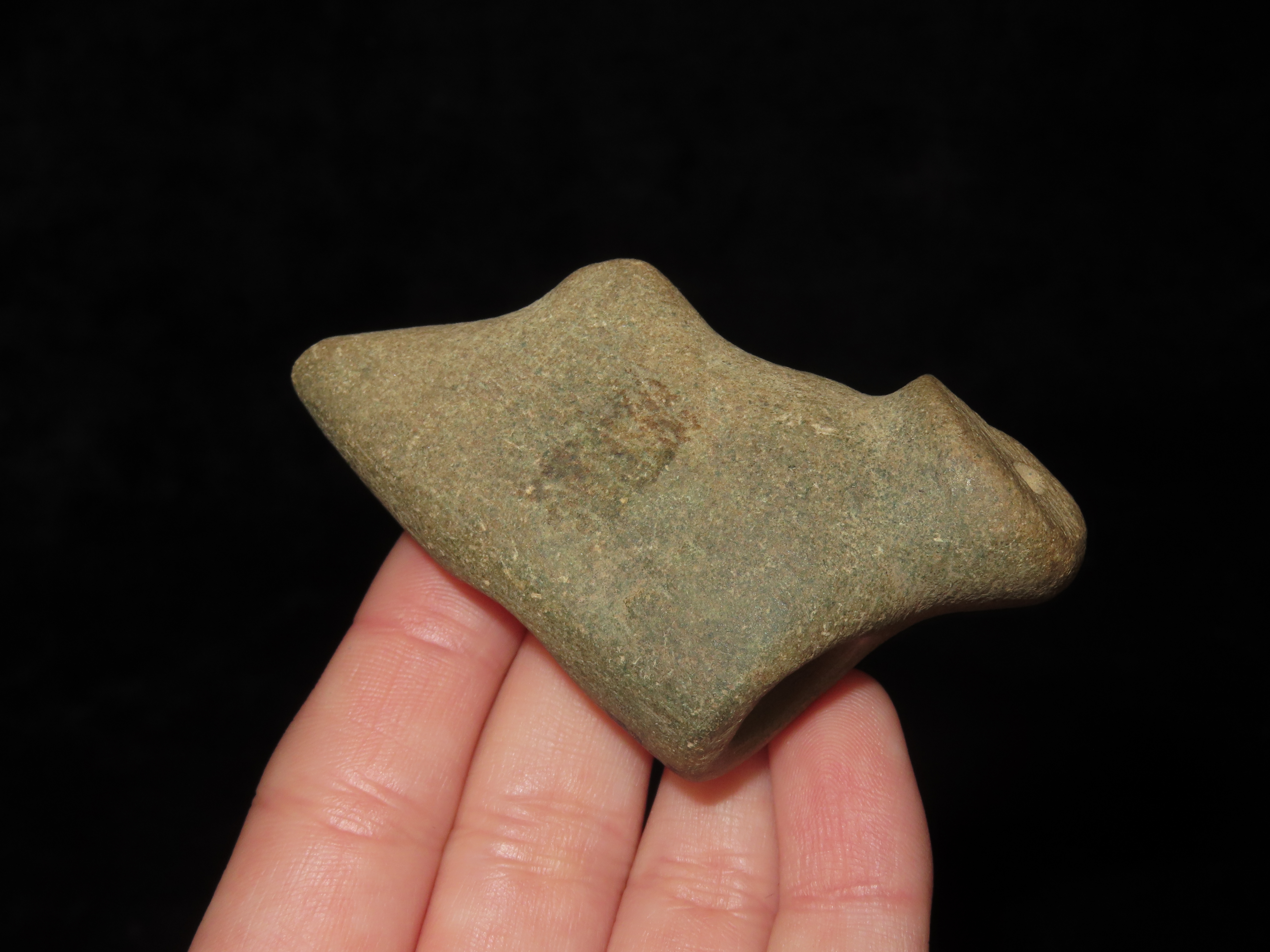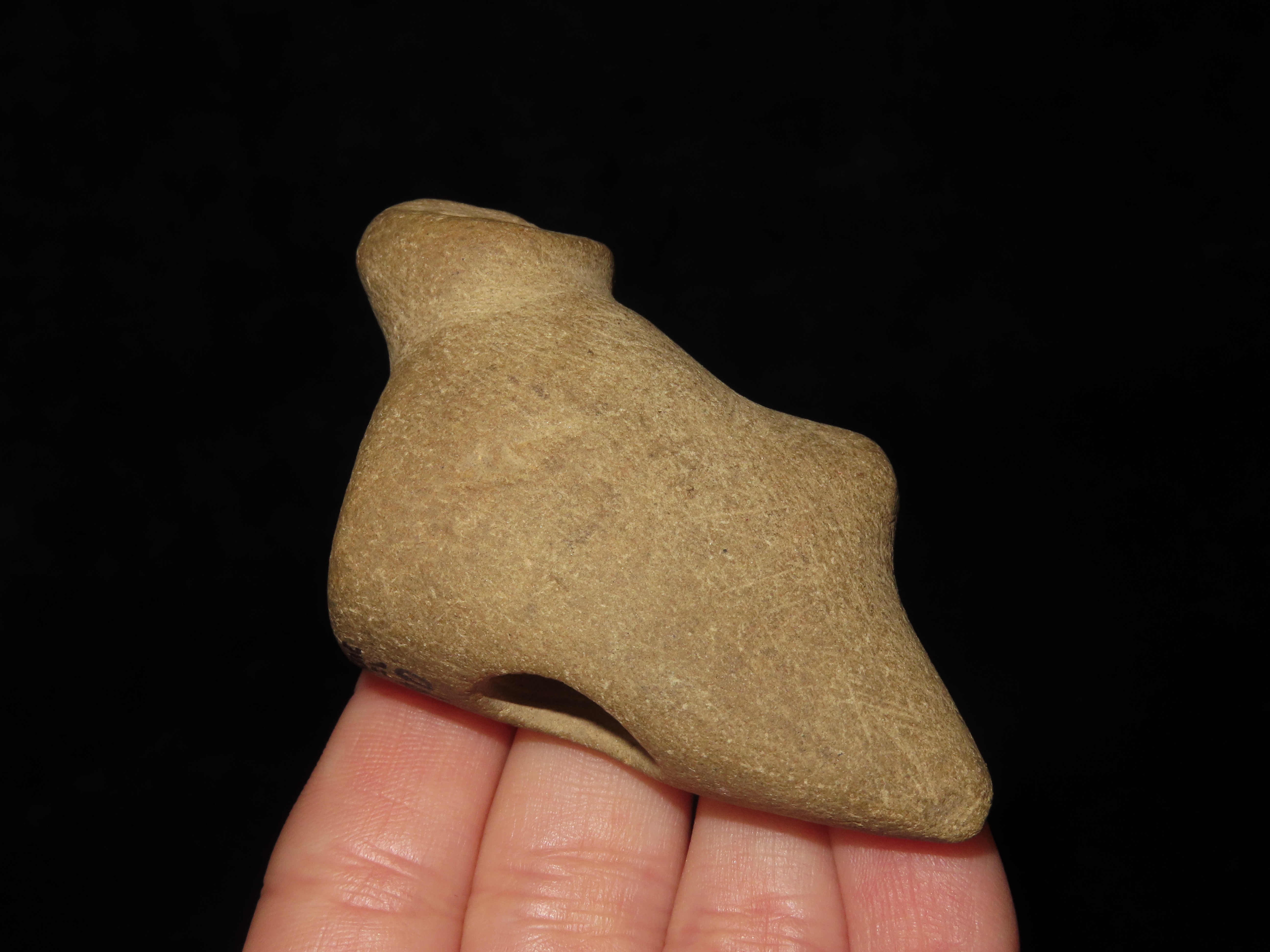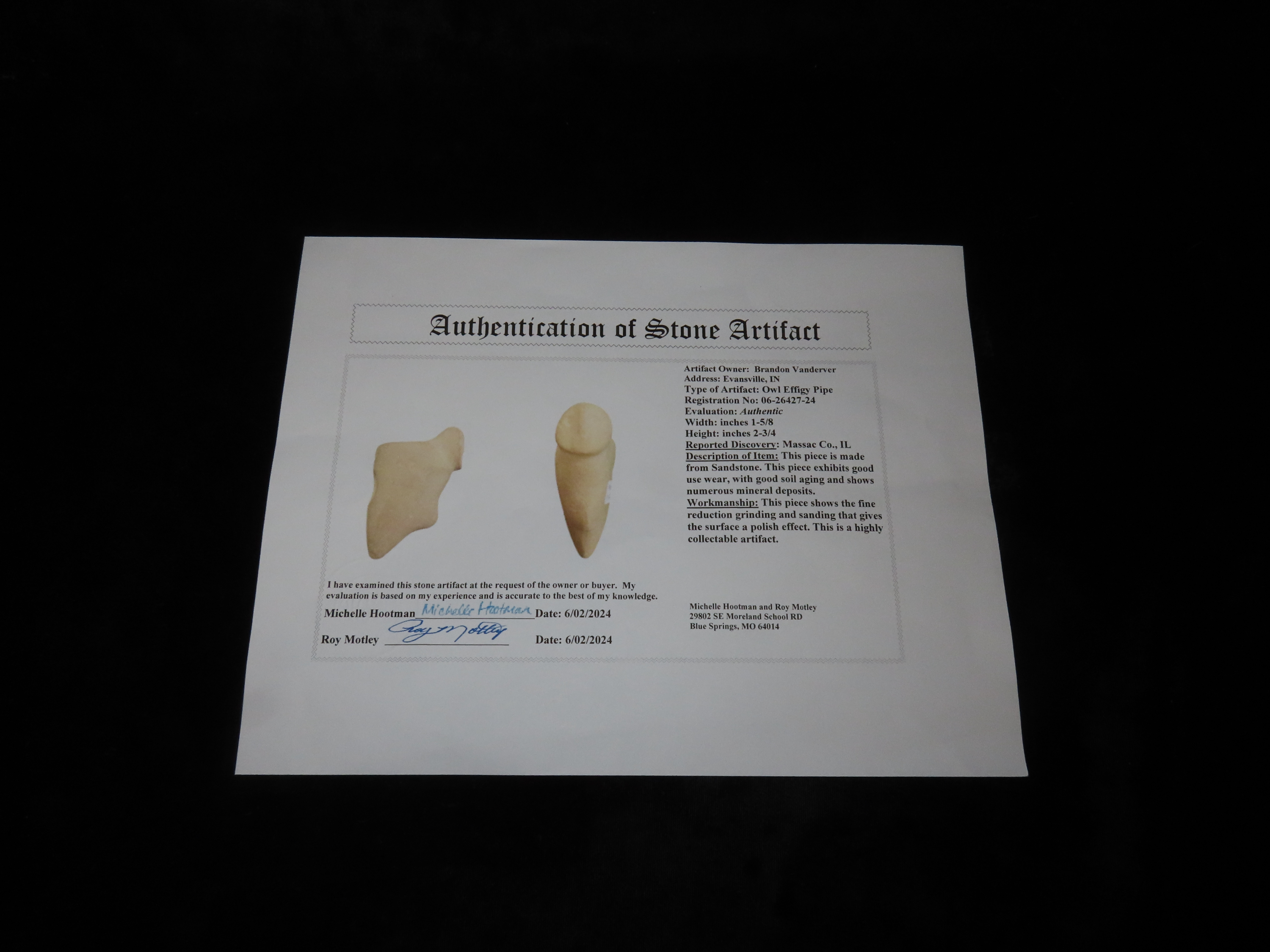 Incredible Owl Effigy Pipe, Massac Co. Illinois. Motley COA. Highly stylized example depicting an Owl, nice polish and great patina. Very nice rare artifact!