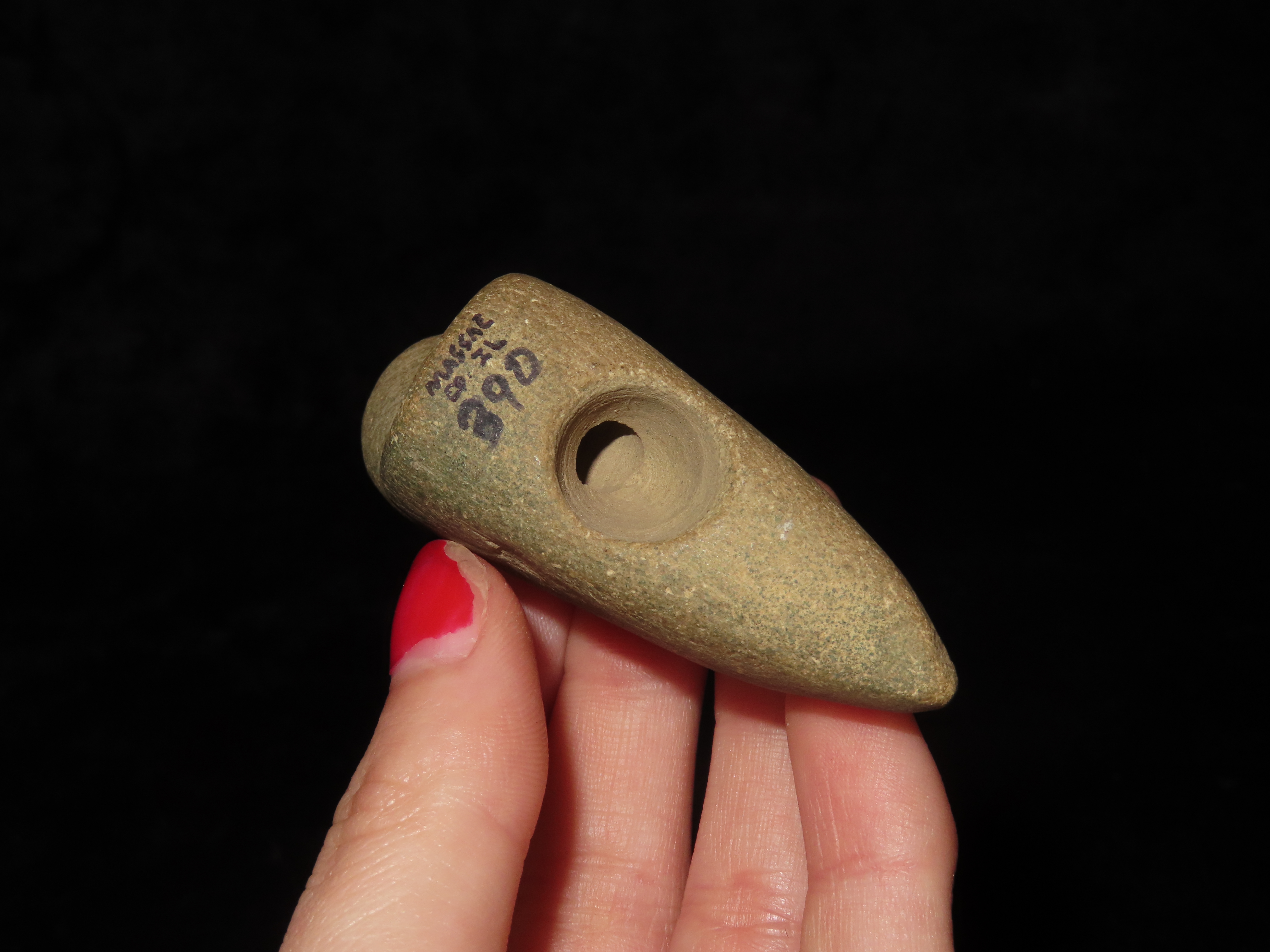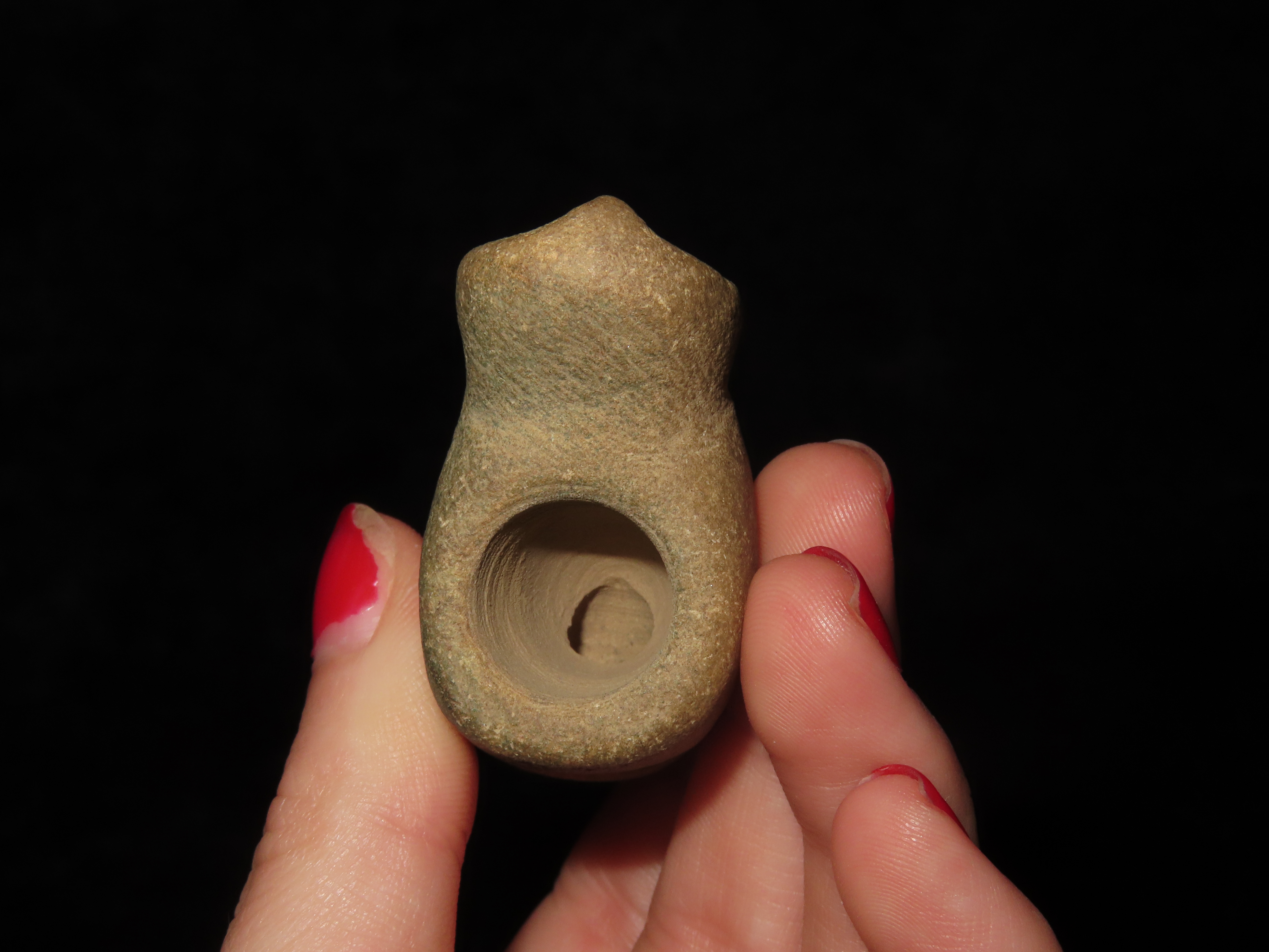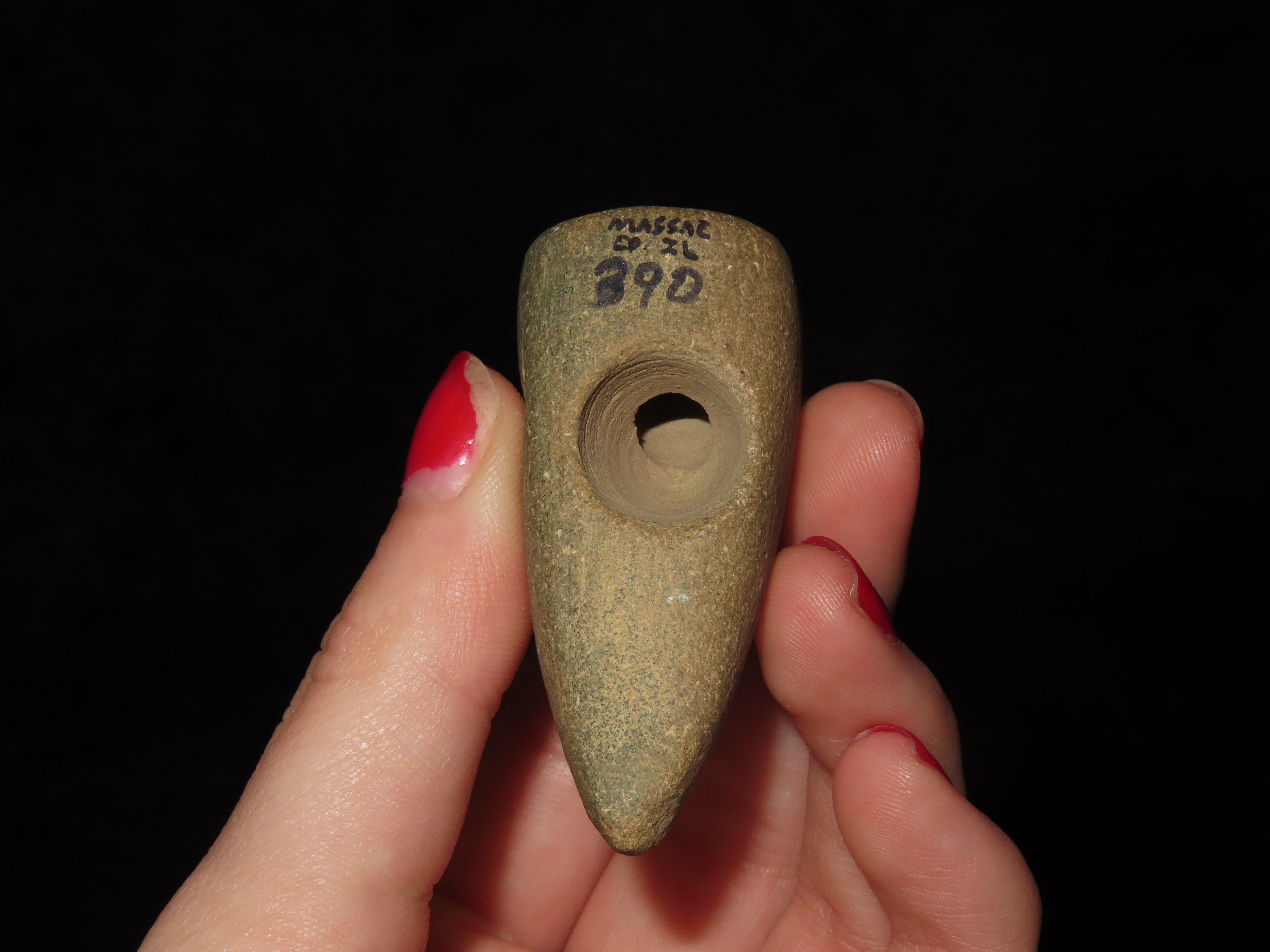 Incredible Owl Effigy Pipe, Massac Co. Illinois. Motley COA. Highly stylized example depicting an Owl, nice polish and great patina. Very nice rare artifact!