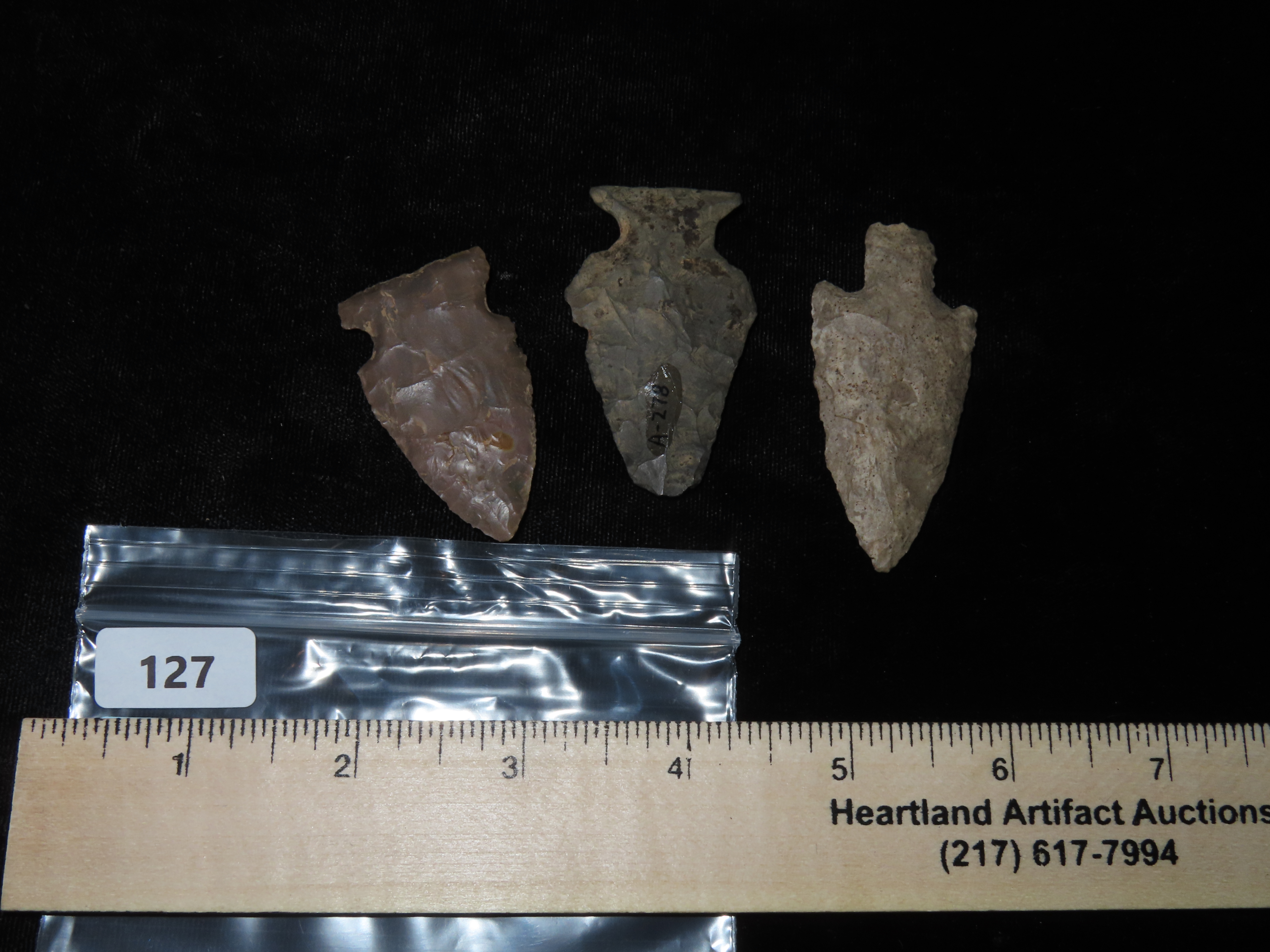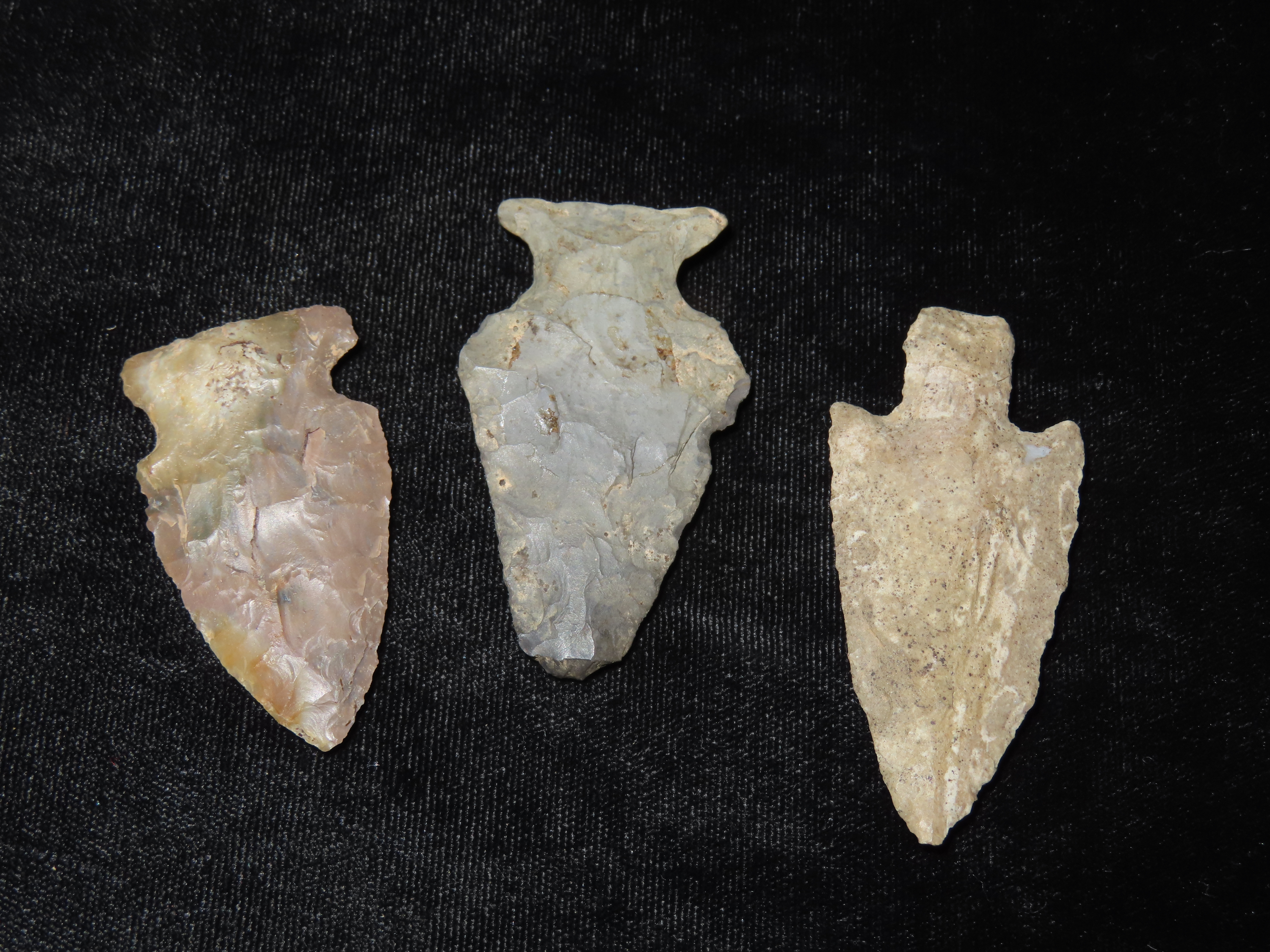 Lot of 3 Early Stemmed, 9000-7000 B.P., For Identification Reference Overstreet 12th Edition Pg. 592