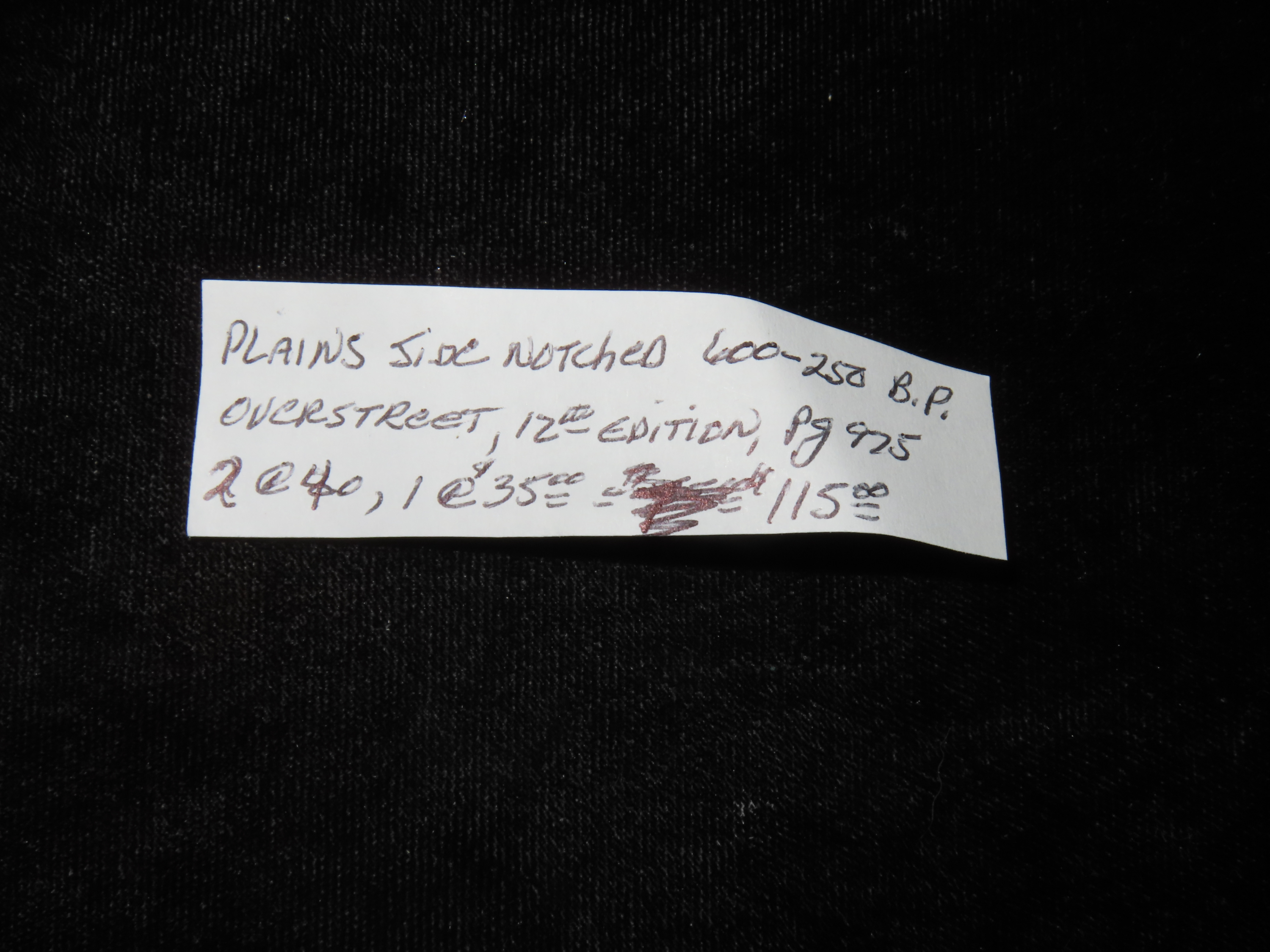 Lot of 3 Plains Side Notched, 600-250 B.P., For Identification Reference Overstreet 12th Edition Pg. 975