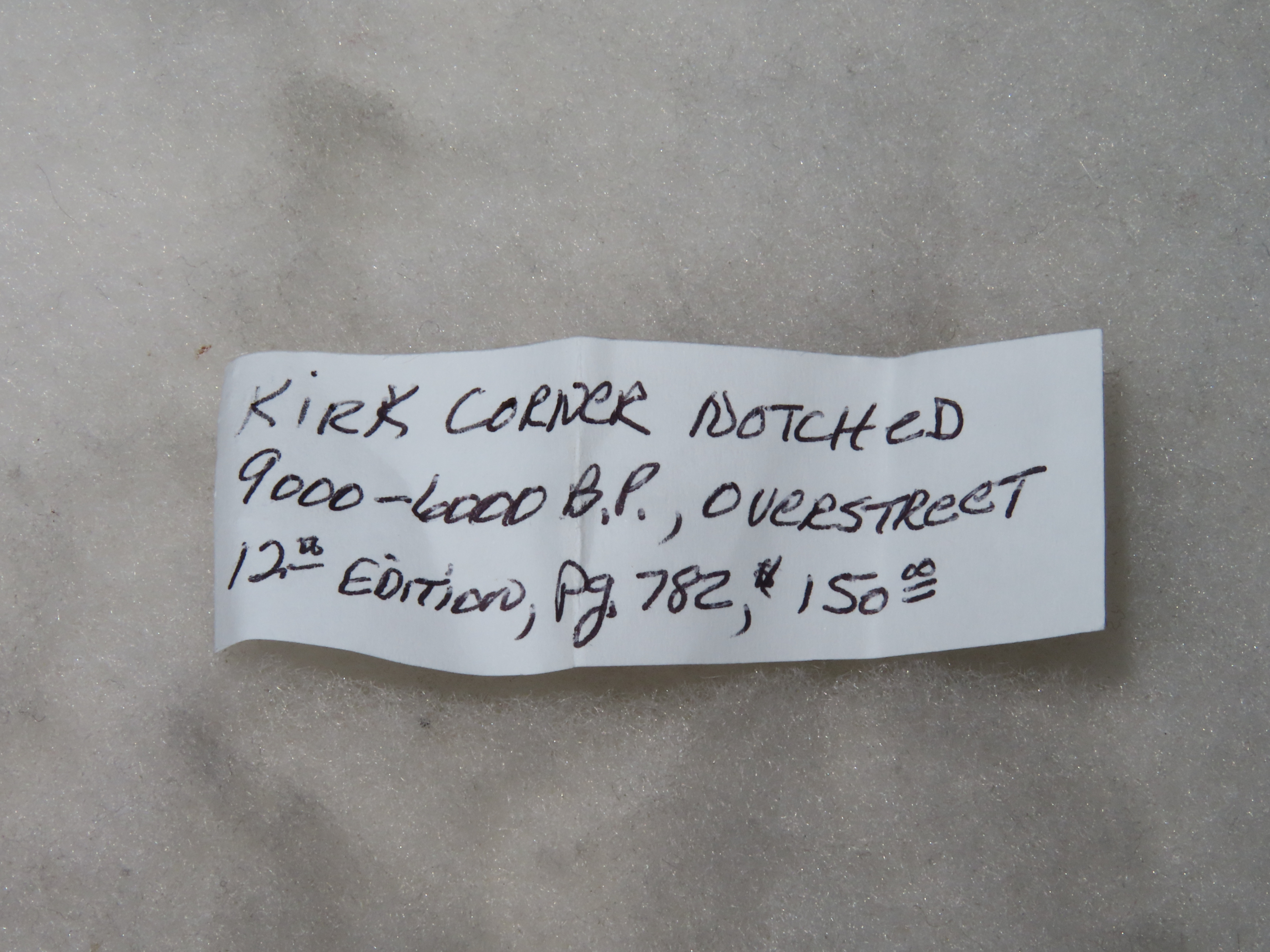 2″ Kirk Corner Notched, 9000-6000 B.P., For Identification Reference Overstreet 12th Edition Pg. 782