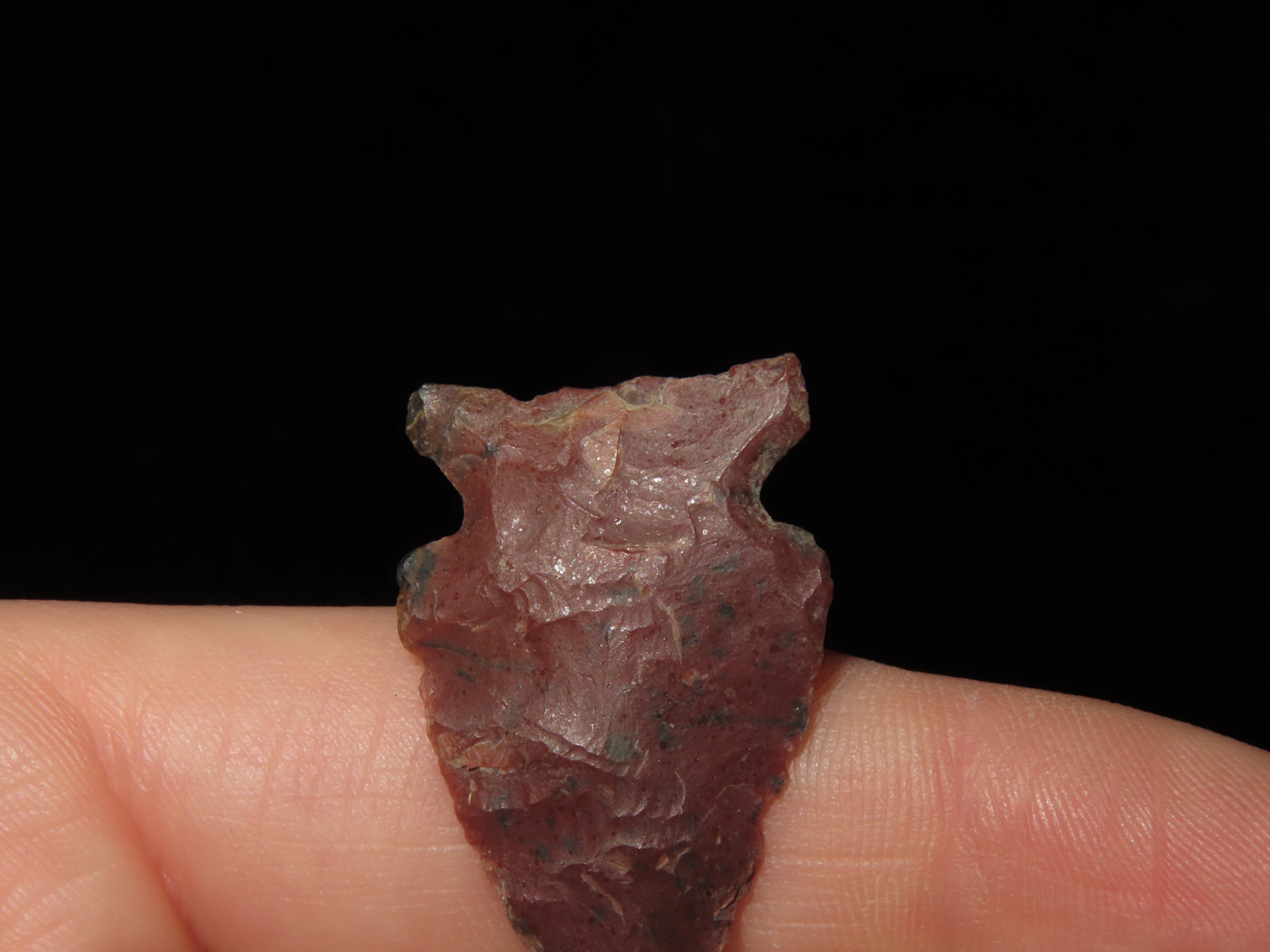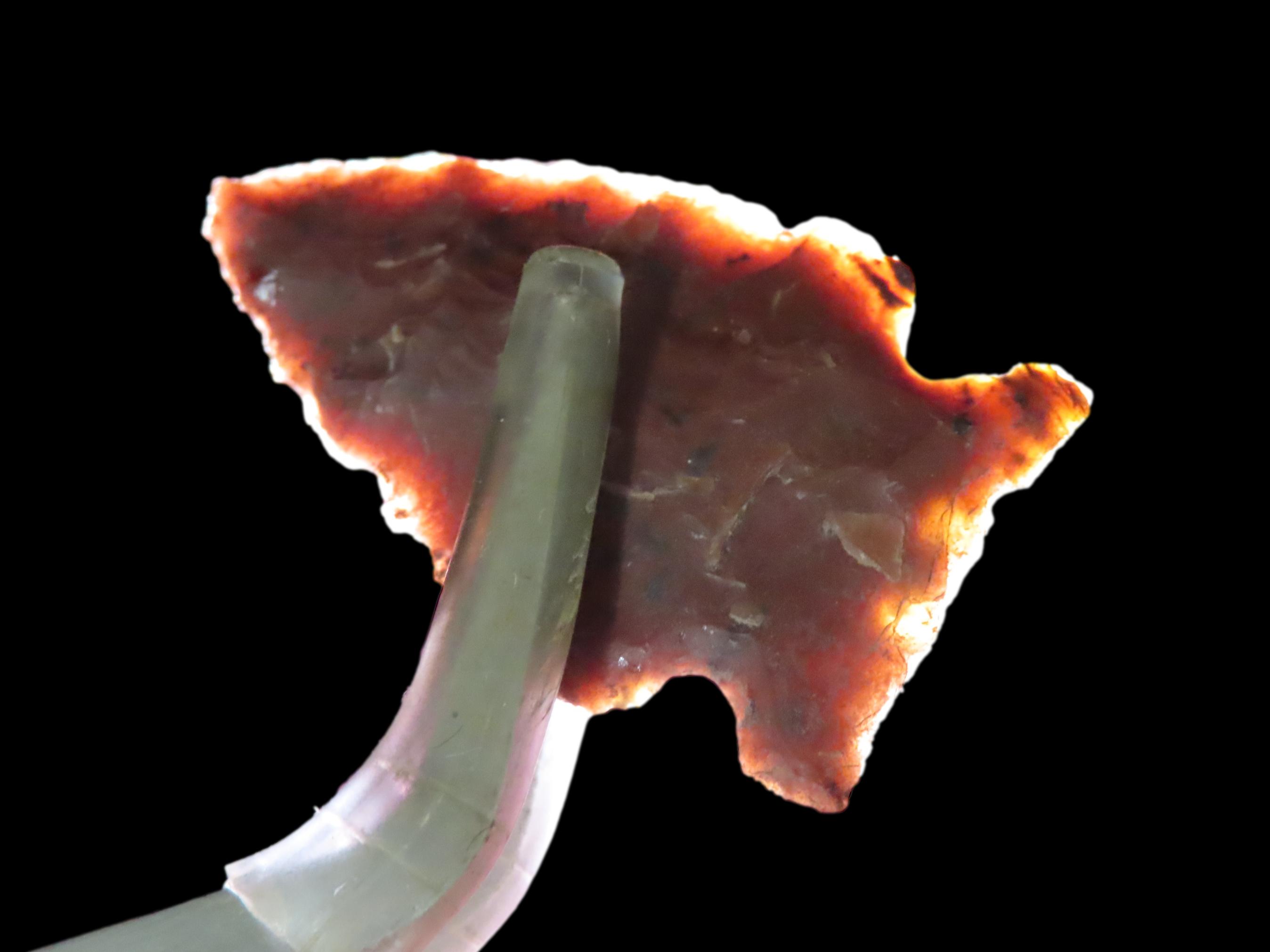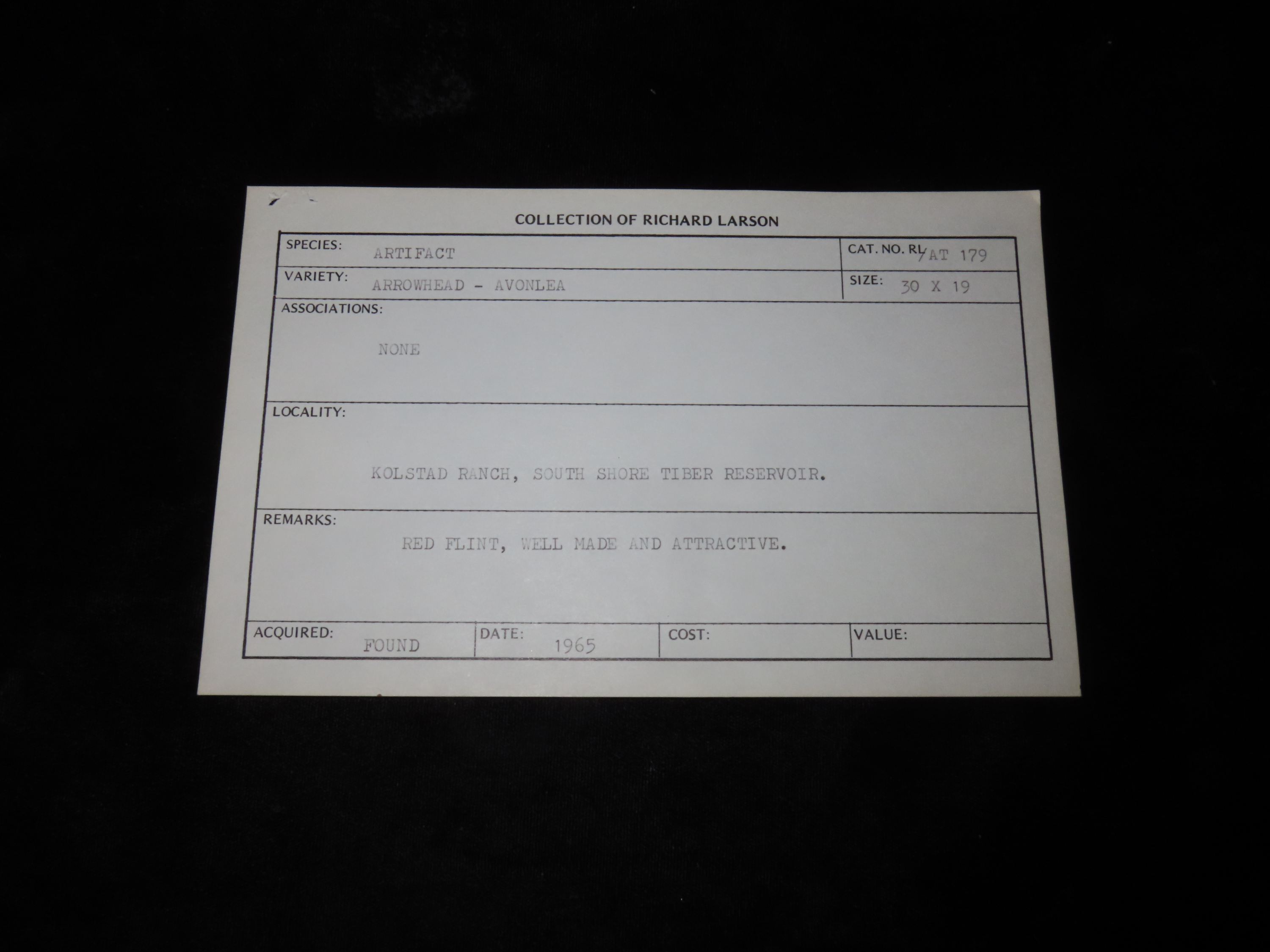 1 1/4″ Avonlea Type,Found in 1965, Kolstand Ranch, South Shore Tiber Reservoir, Made of Red Flint, Ex Richard Larson Collection