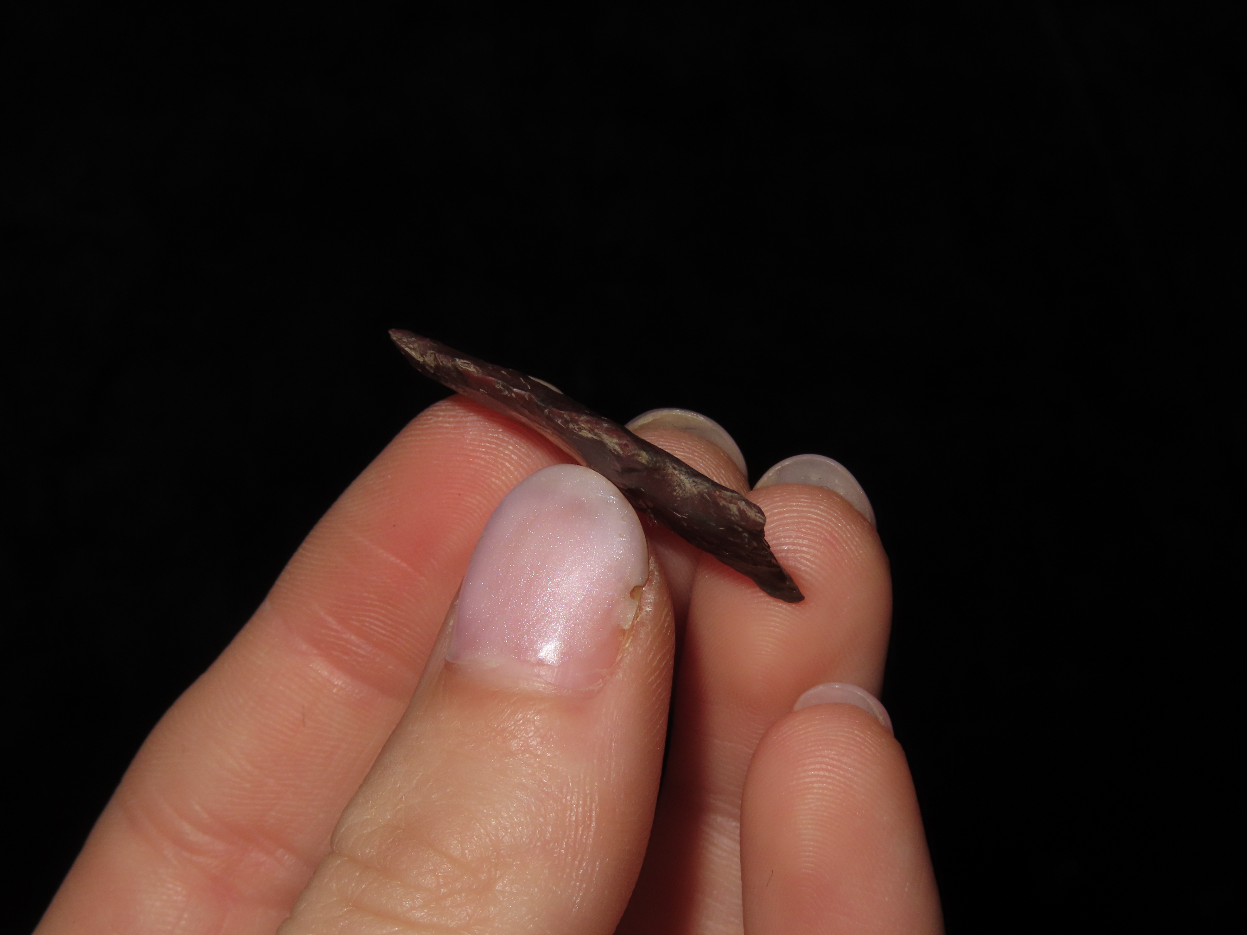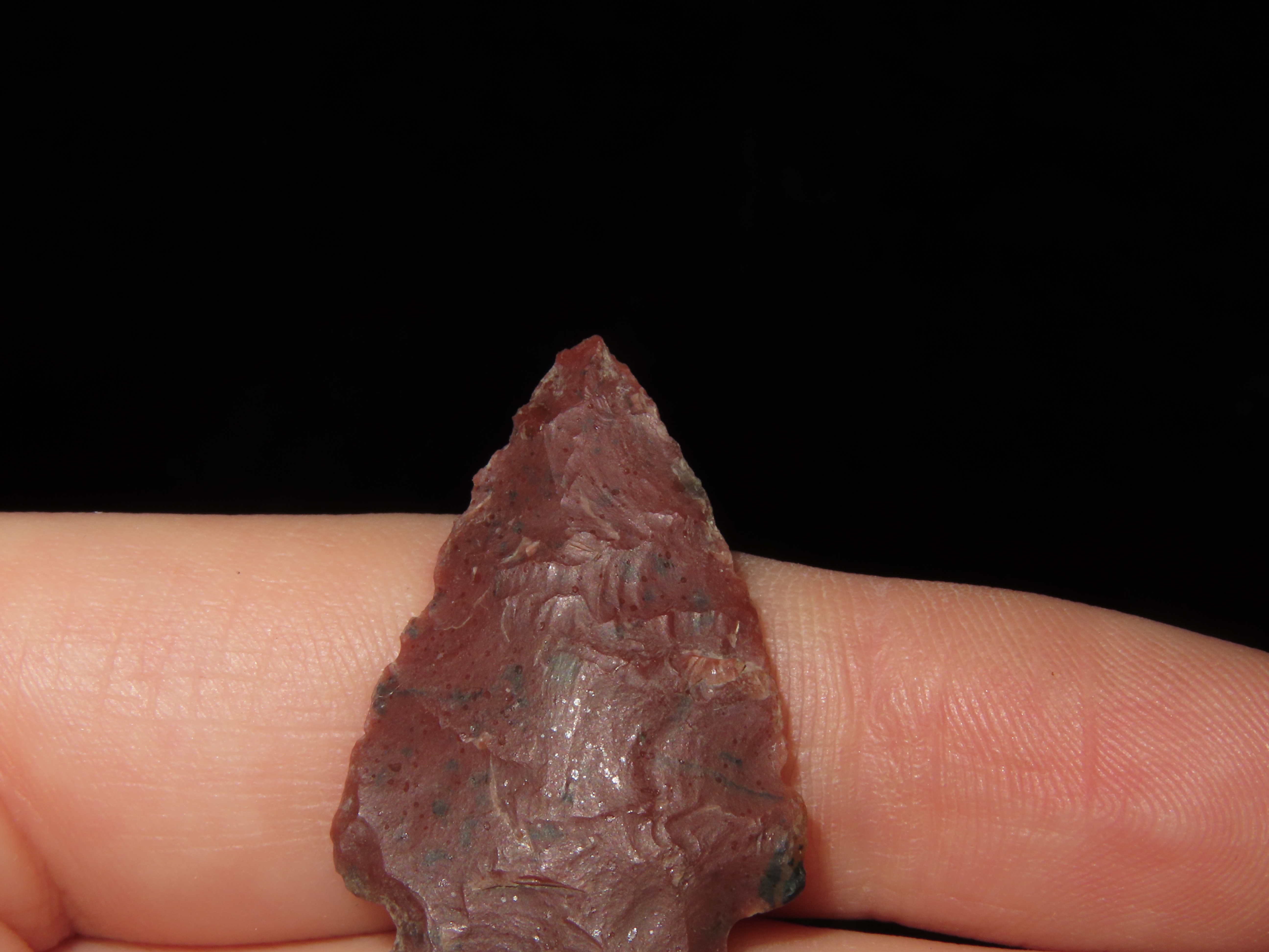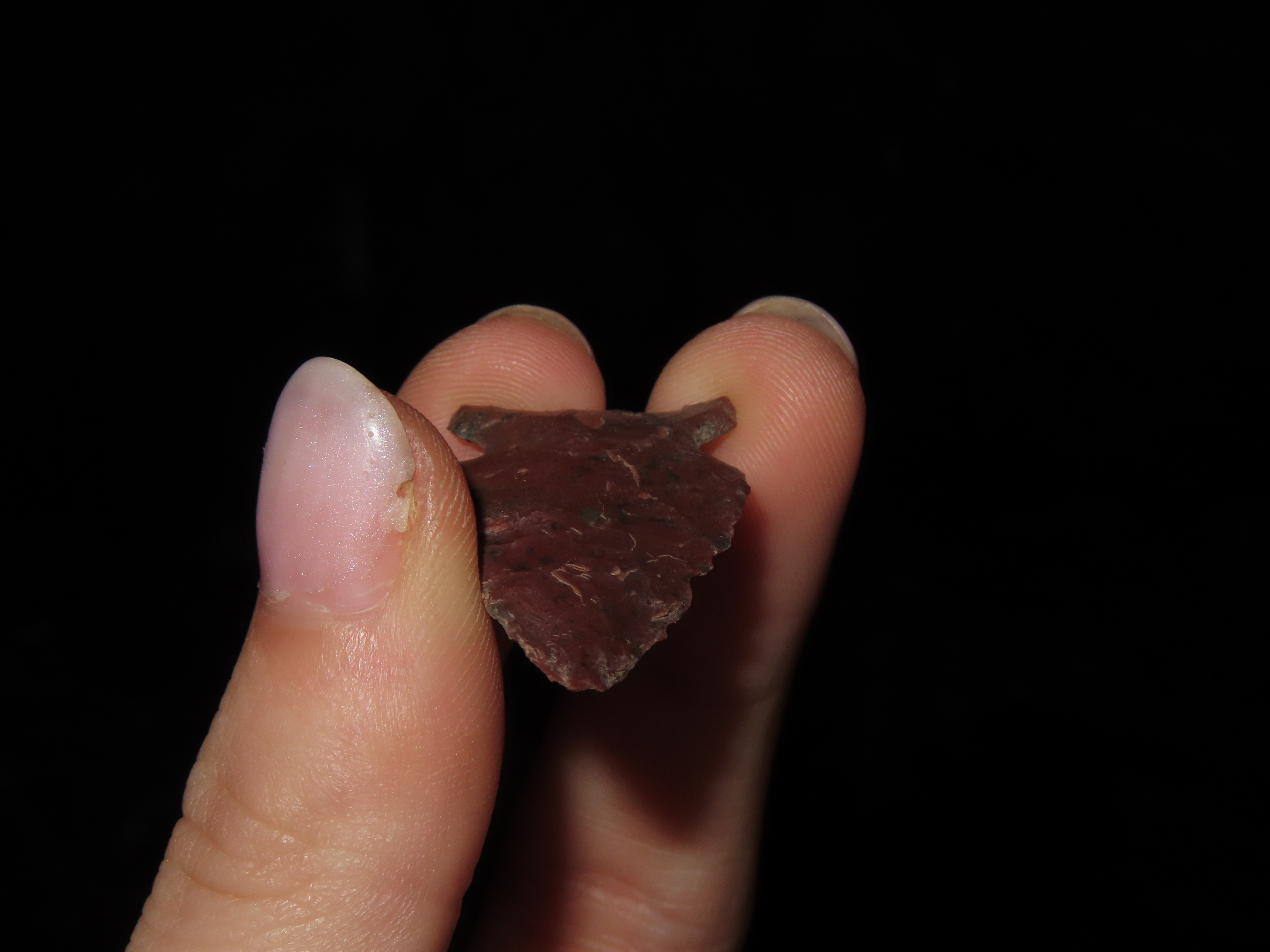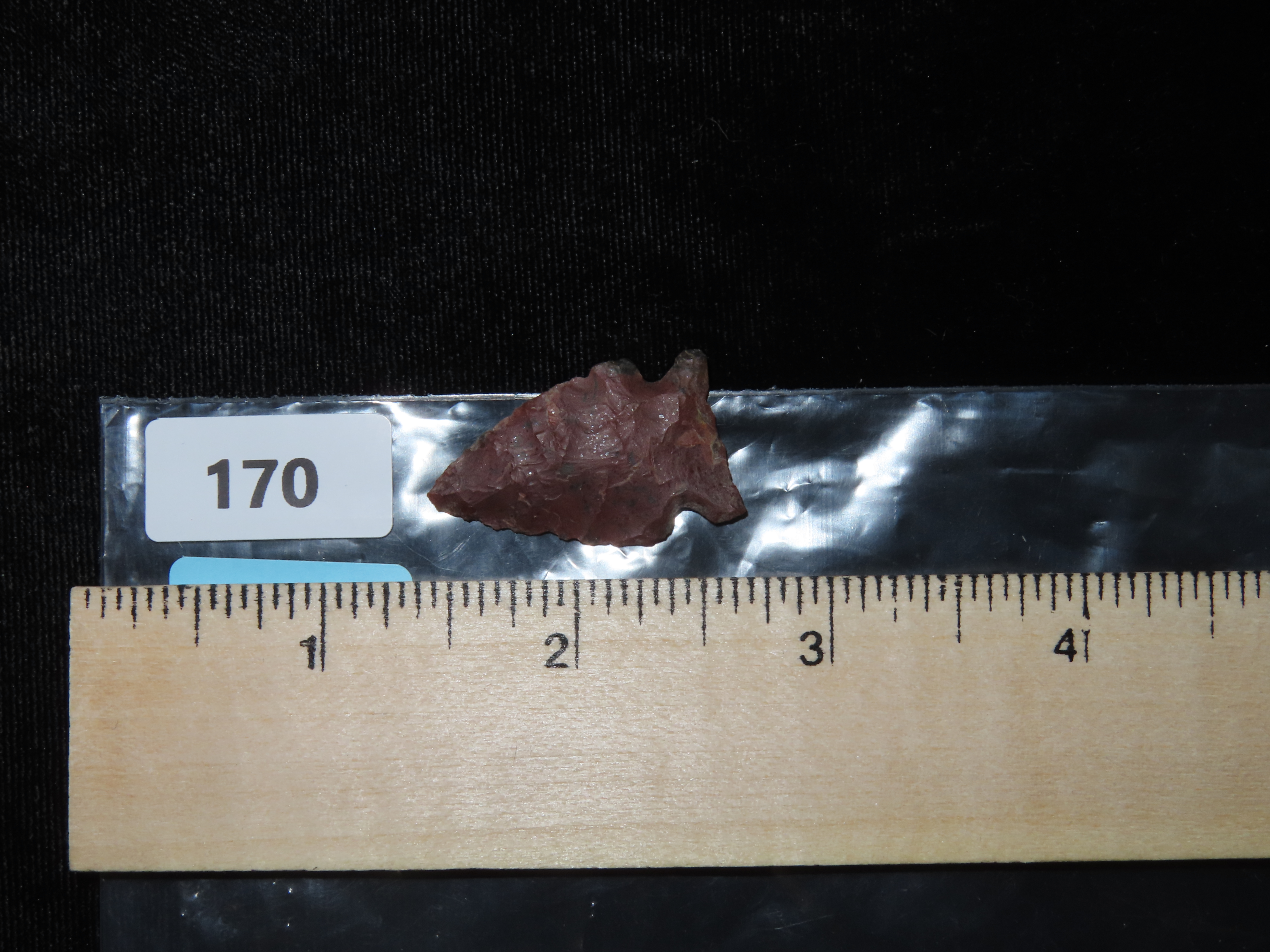 1 1/4″ Avonlea Type,Found in 1965, Kolstand Ranch, South Shore Tiber Reservoir, Made of Red Flint, Ex Richard Larson Collection