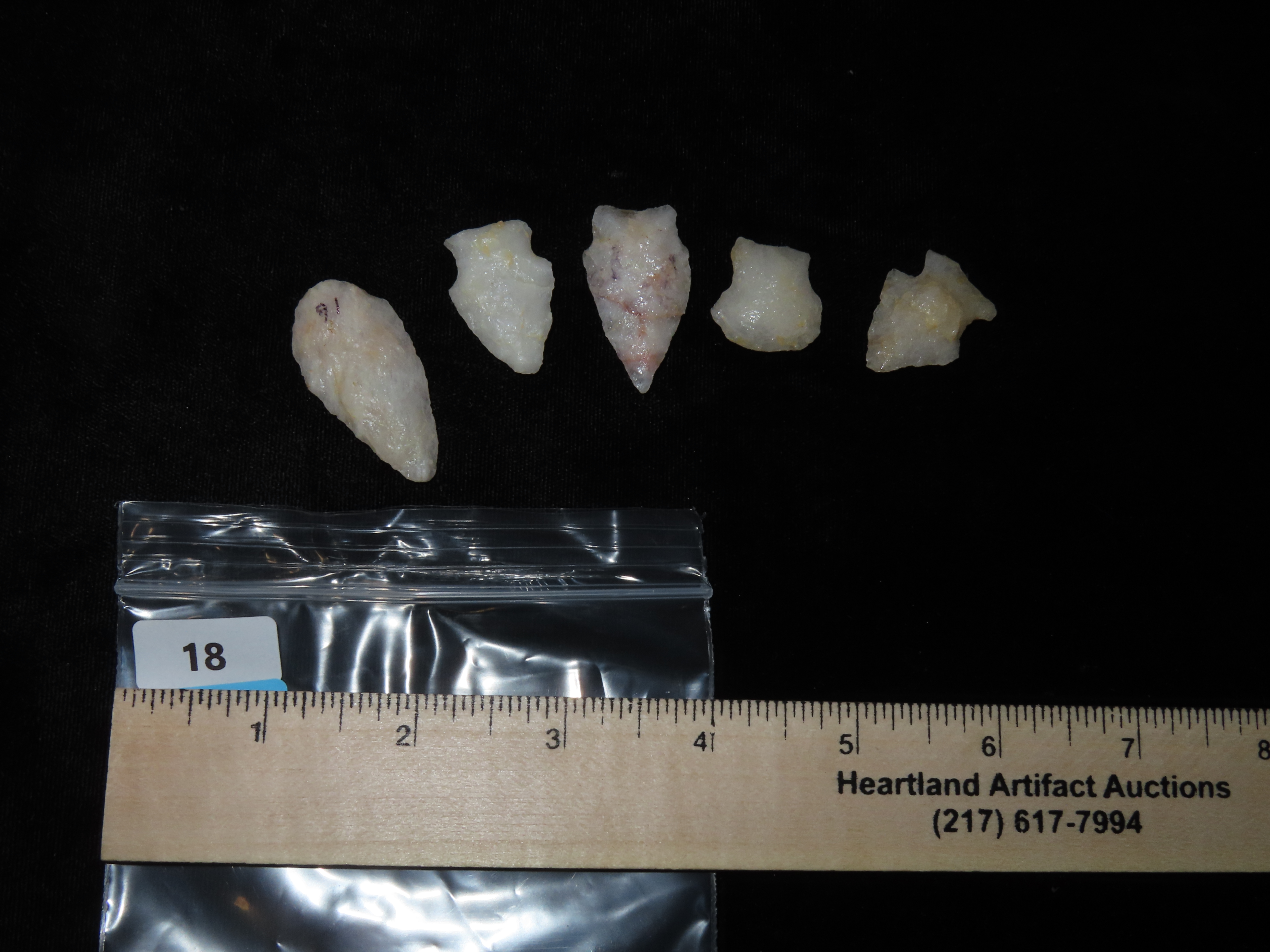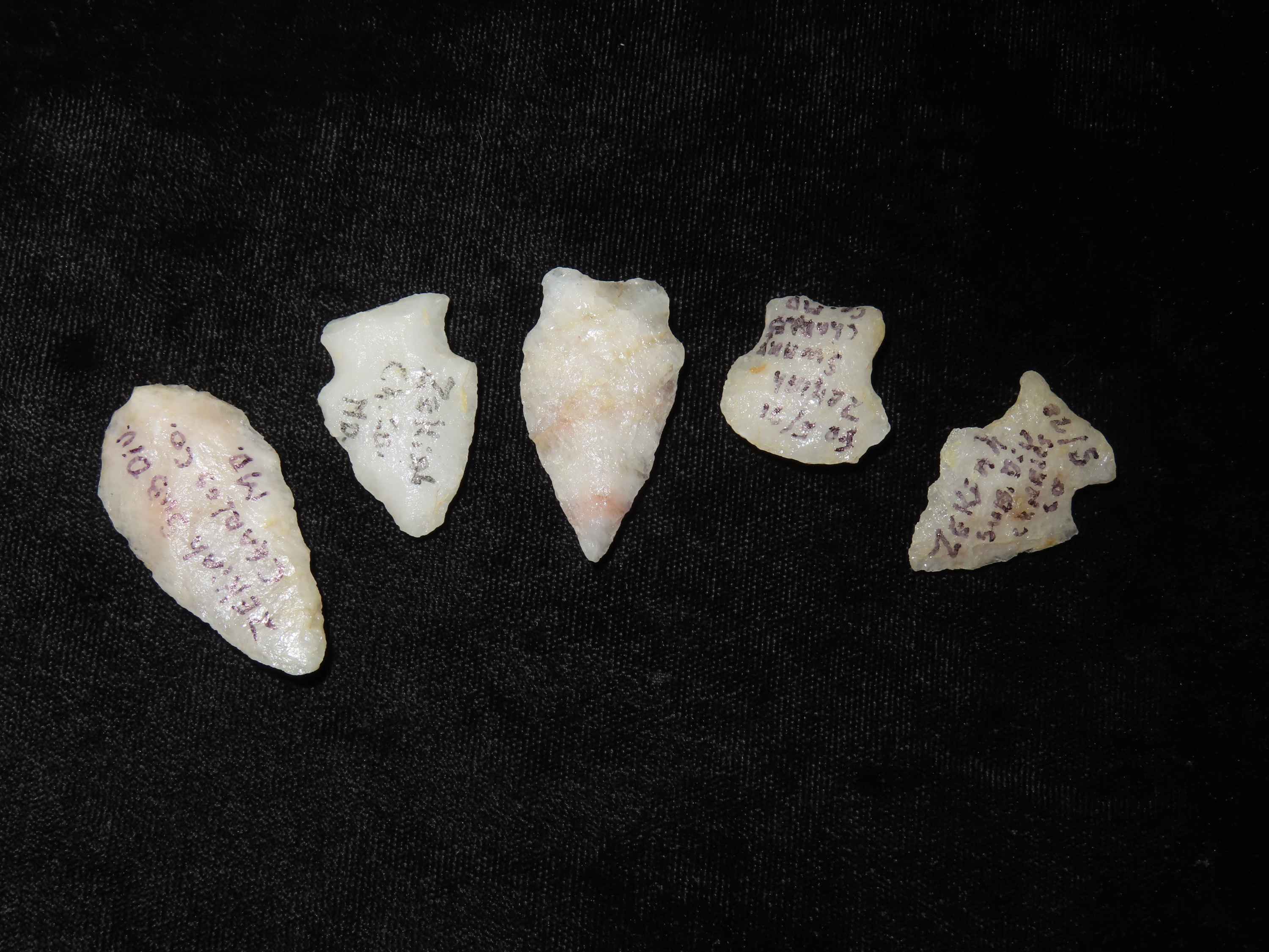 Lot of 5 Quartz Arrowheads, Charles County, Missouri